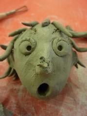 Can you start by making the playdough into a ball and to imagine that this is a head. Can you poke holes into the playdough for the eyes and to pinch the clay to form a nose. Then can you use tools to make the mouth. Can you pinch the playdough at the sides of the head to make the ears and then scratch the playdough to make marks for the hair and eyebrows.