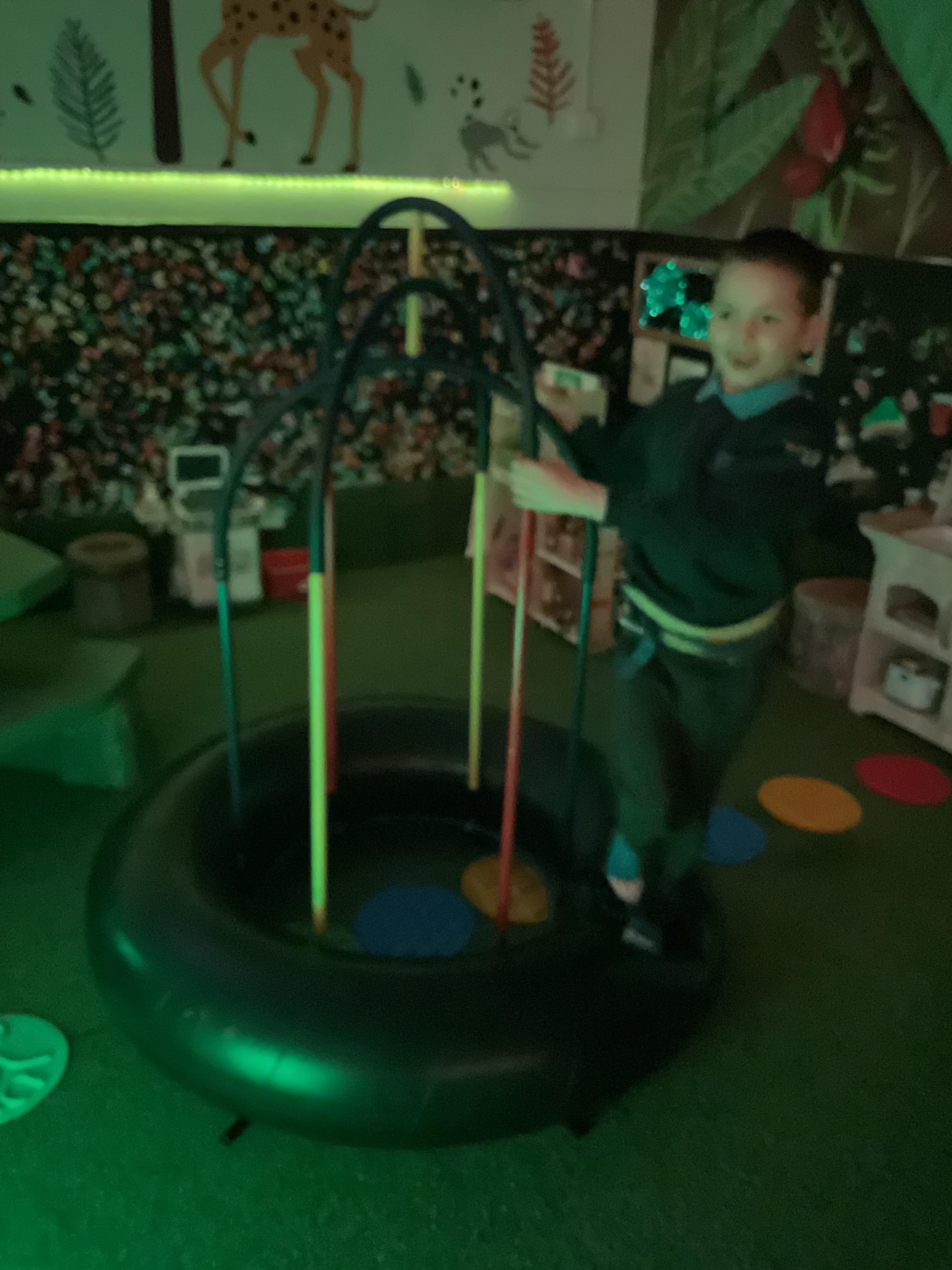 Today we had our rebound session. We use rebound to develop our gross motor skills, balance and co-ordination. It can also be used as a form of self regulation but most importantly we have lots of fun!