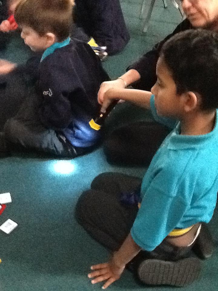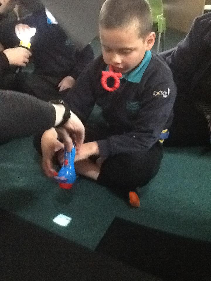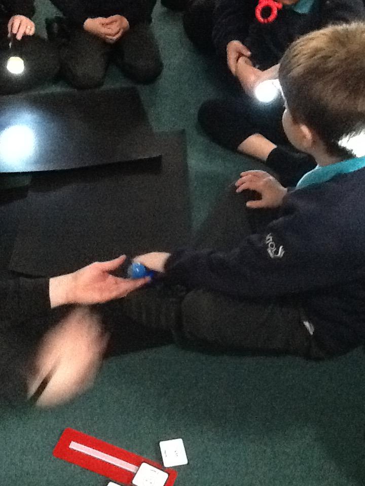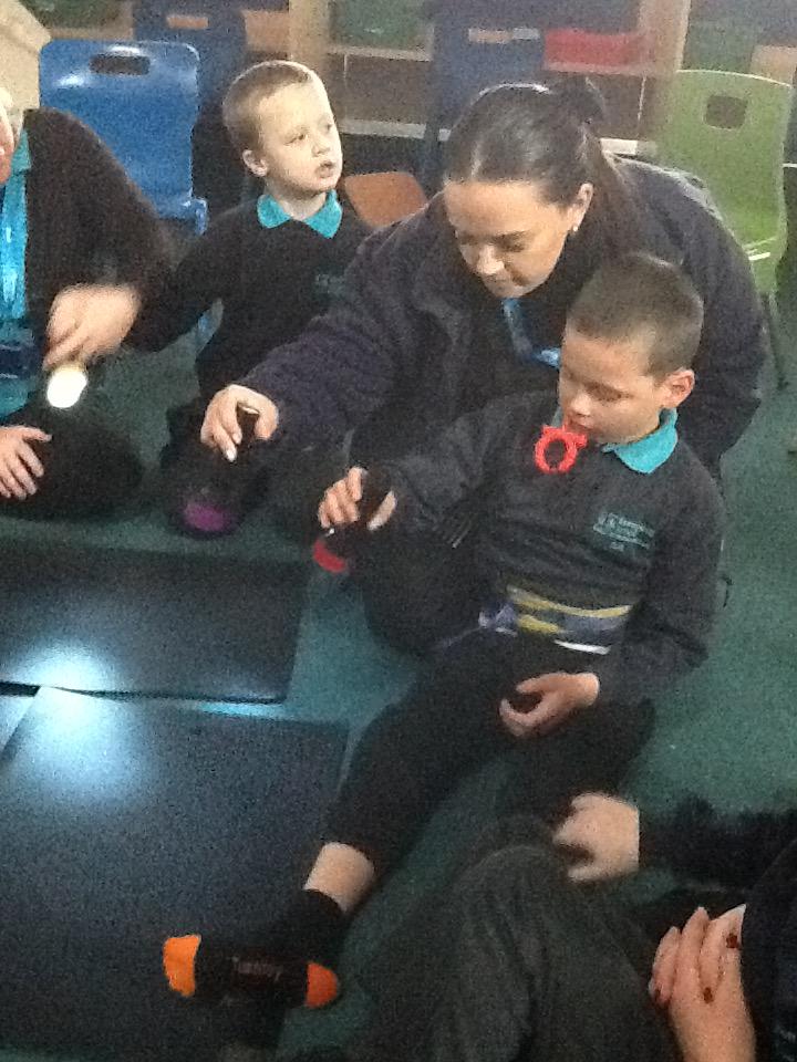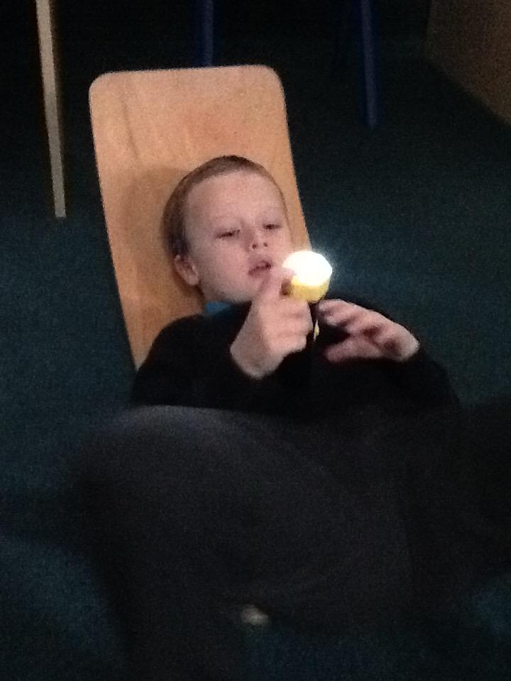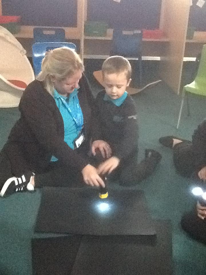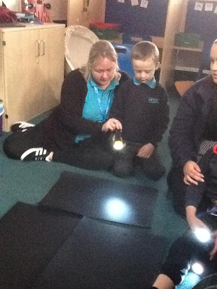 Today we explored light and dark with the torches! We turned off all the lights and discovered what happened when moving the lights around different objects and also moving the closer and further away.