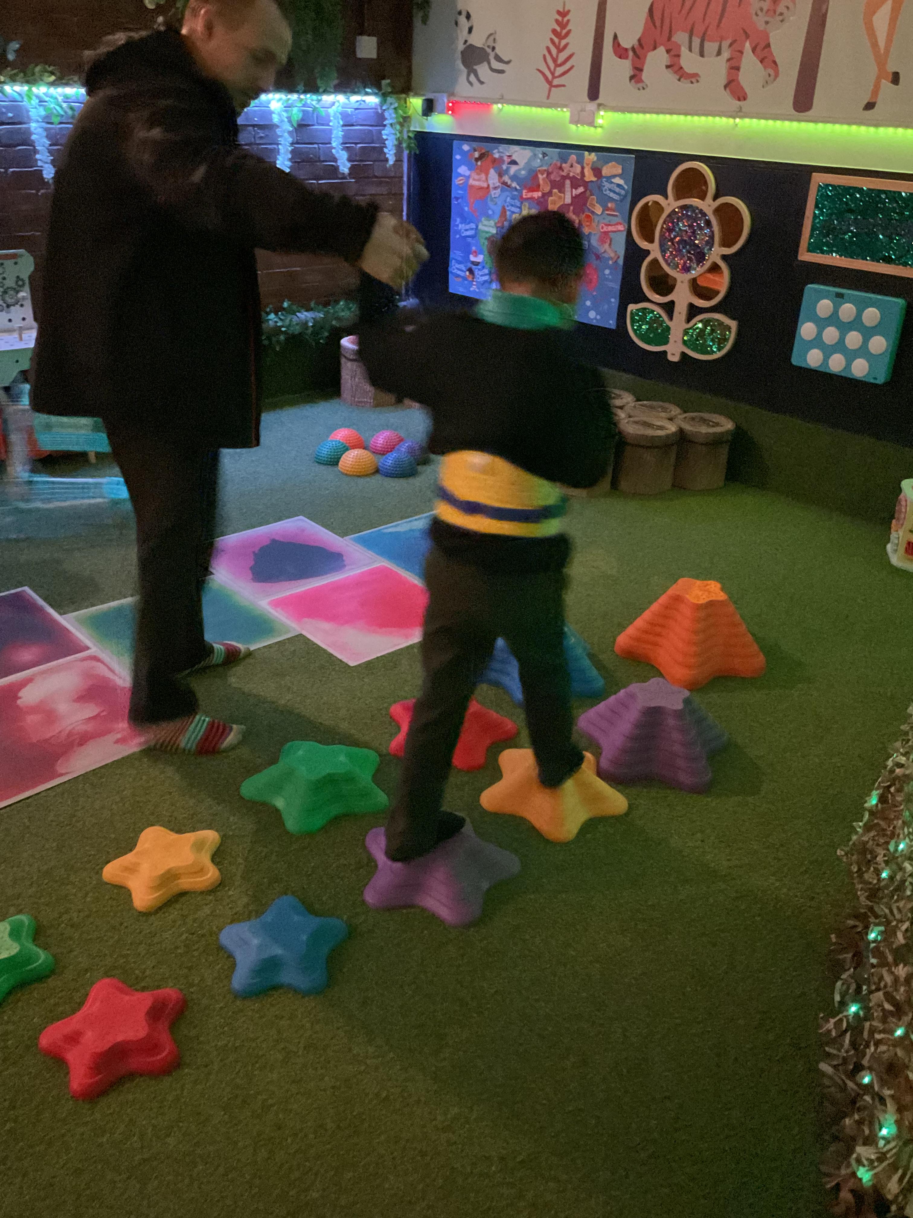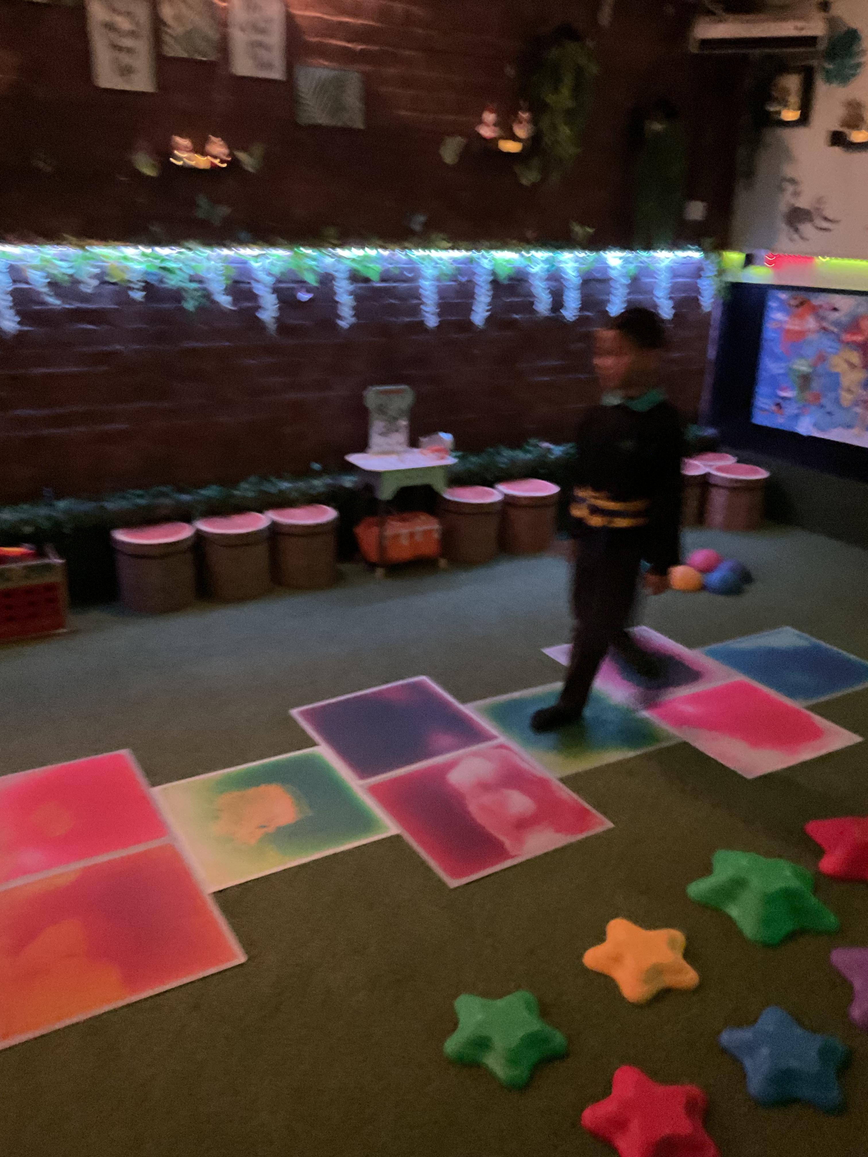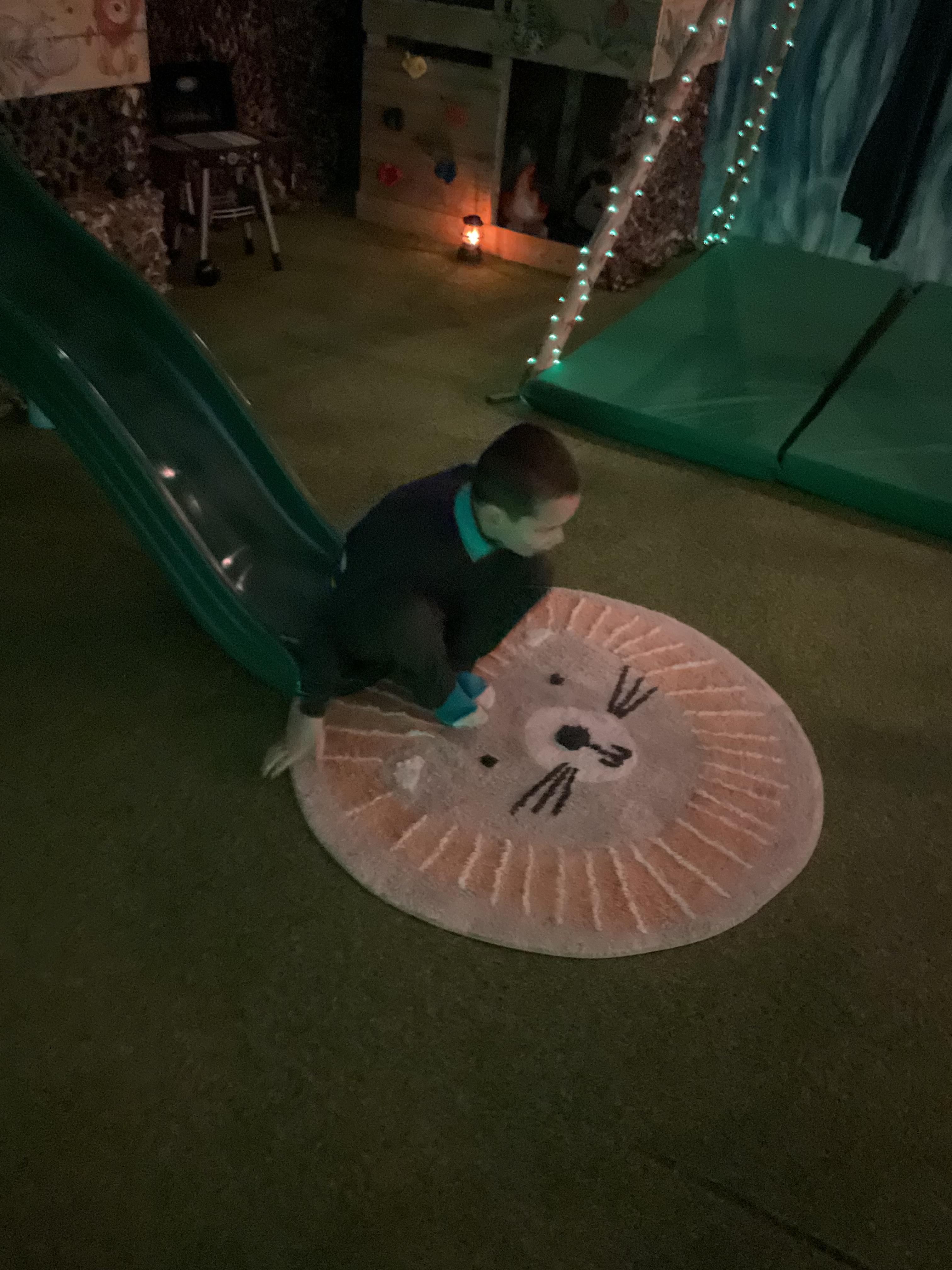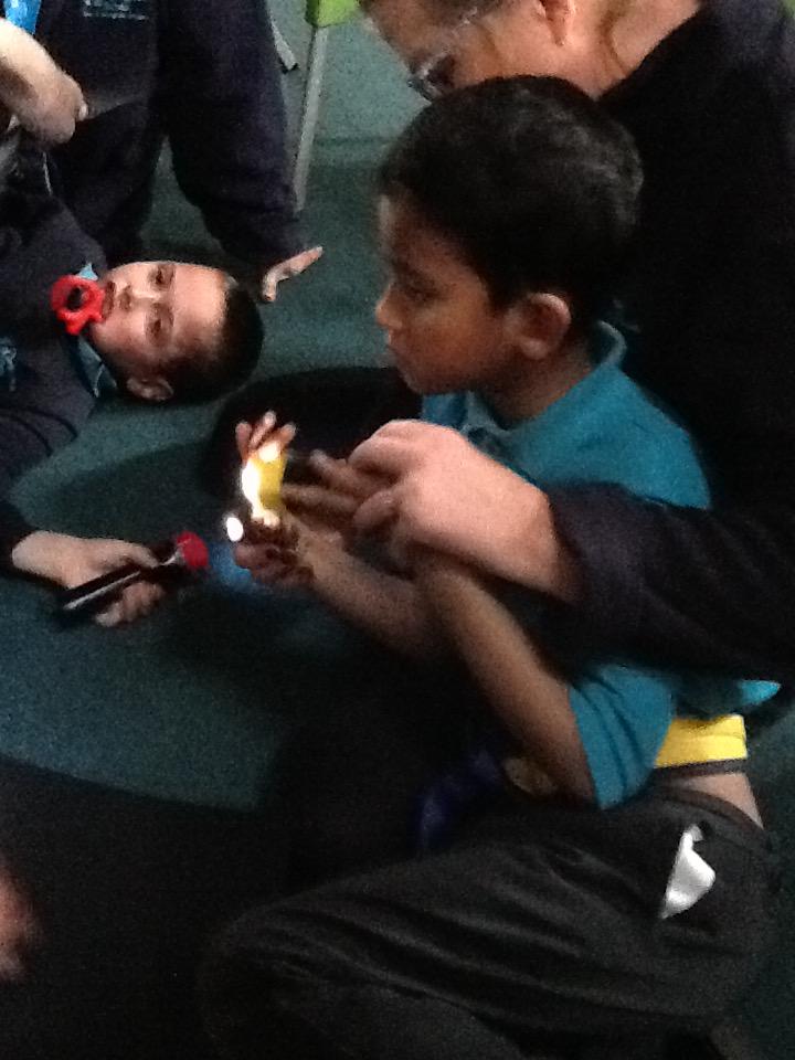 Today we explored light and dark with the torches! We turned off all the lights and discovered what happened when moving the lights around different objects and also moving the closer and further away.