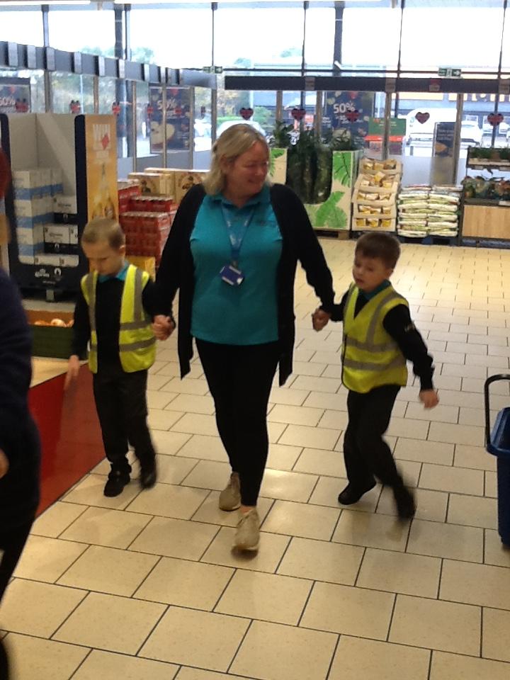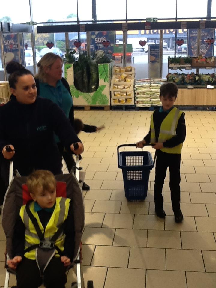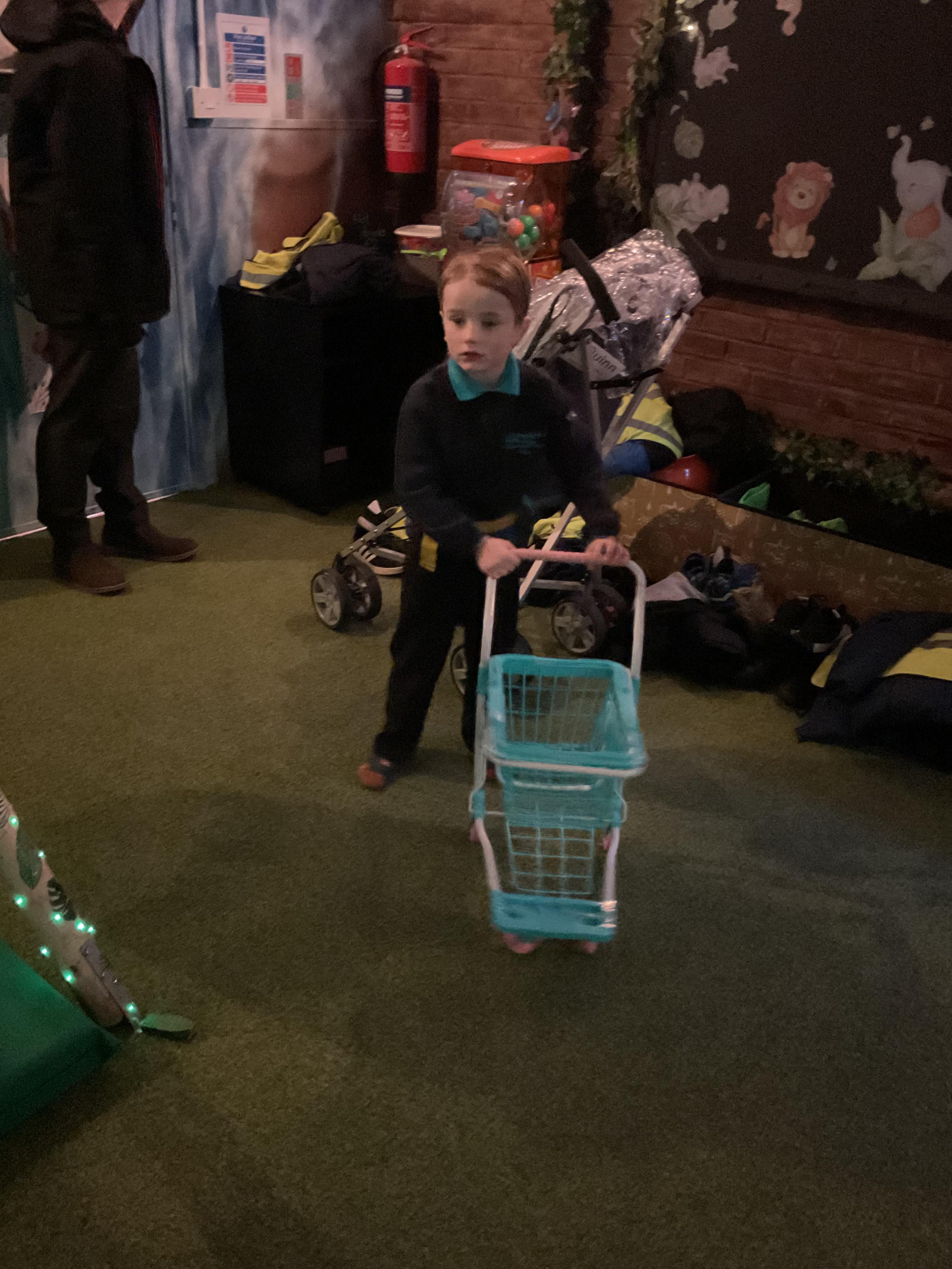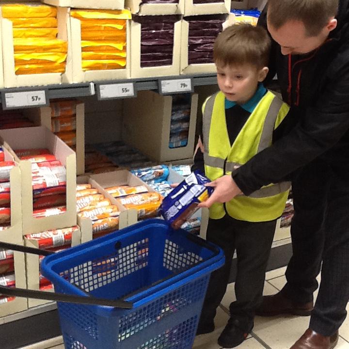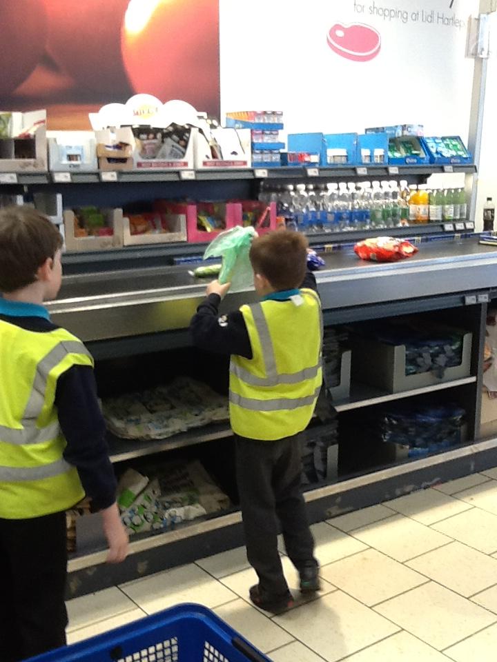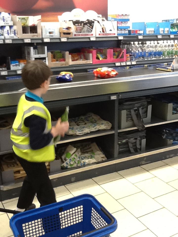 Today we went on the bus and went to Lidl. We walked around the shop and choose some treats for snack time, we then used our money to pay the cashier, just like Jasper does in our story.