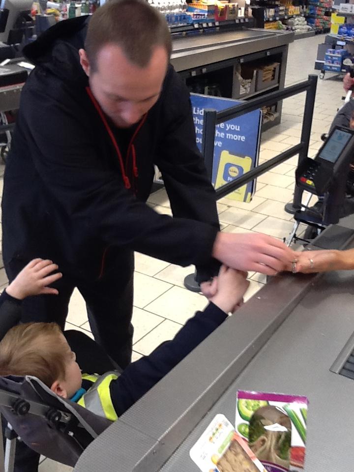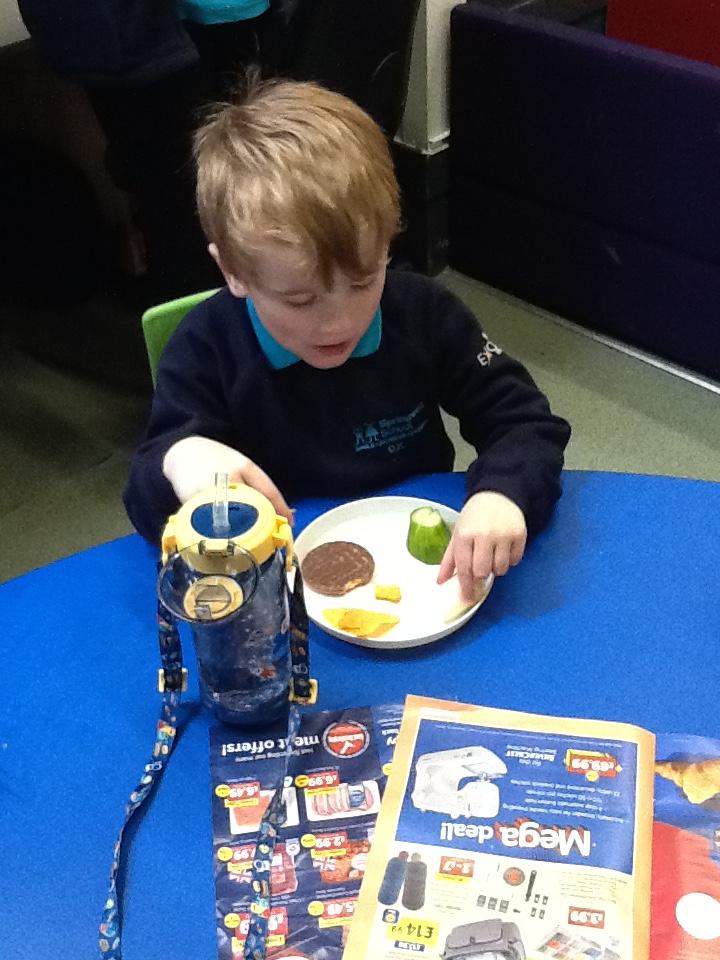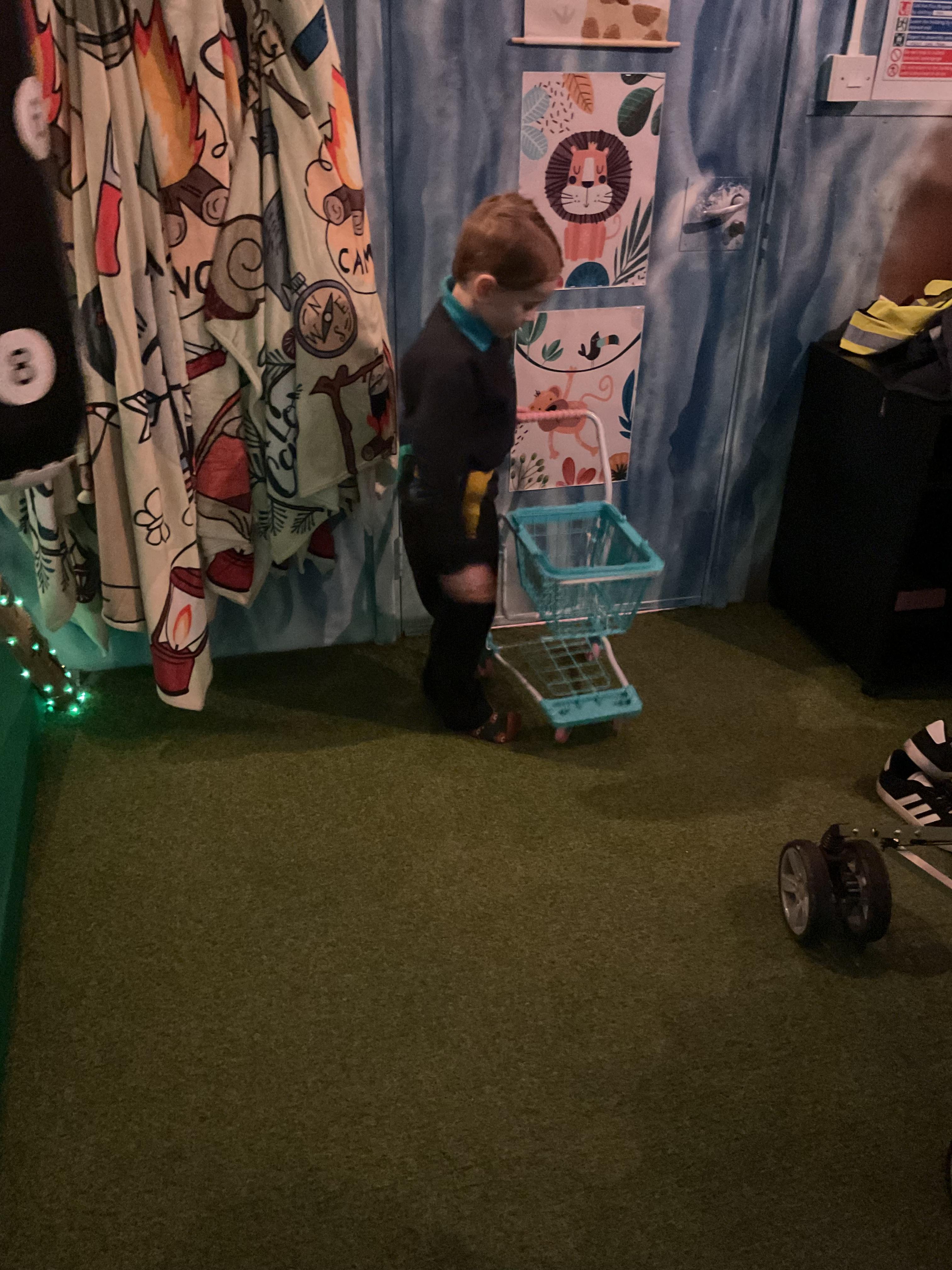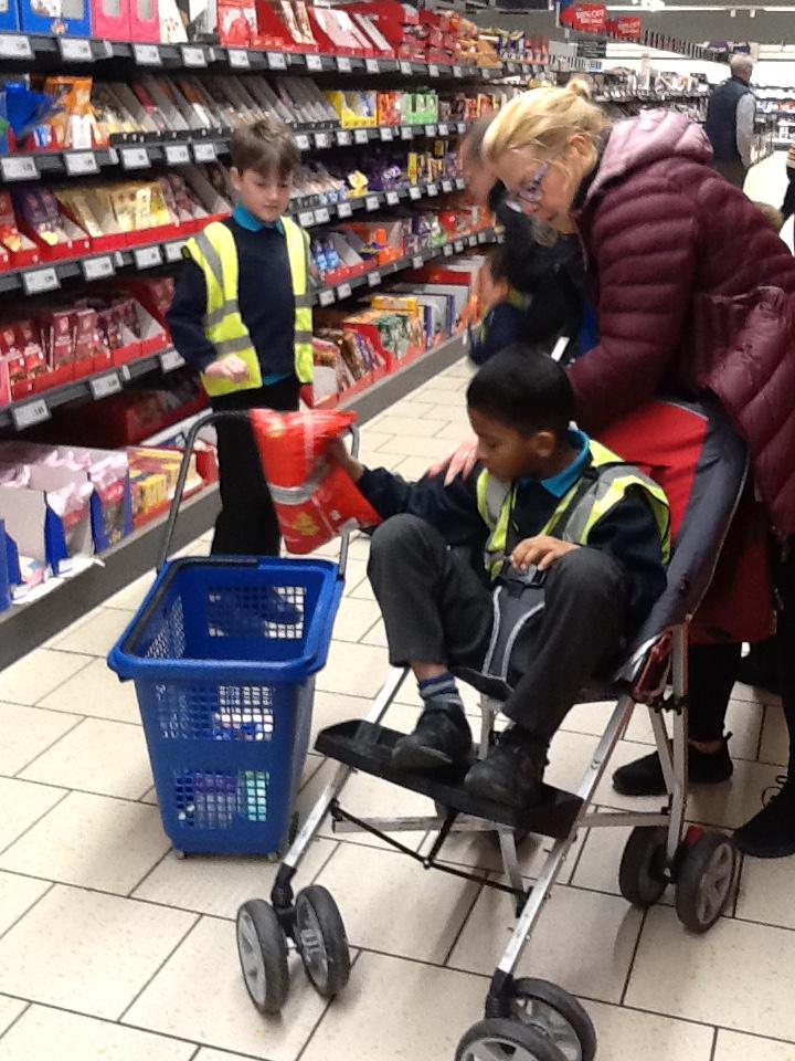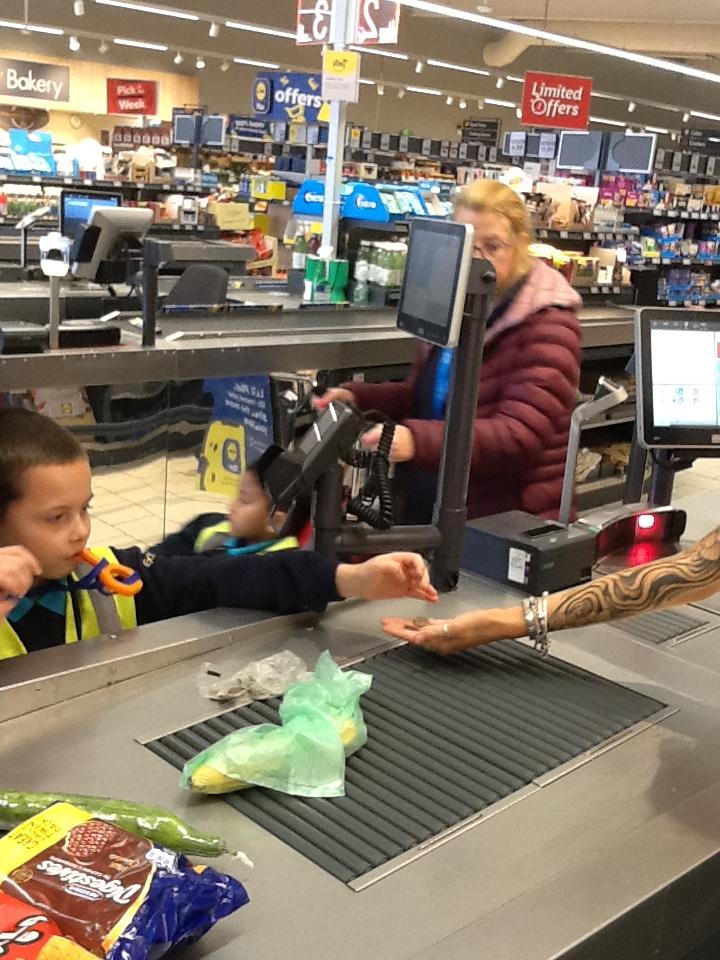 Today we went on the bus and went to Lidl. We walked around the shop and choose some treats for snack time, we then used our money to pay the cashier, just like Jasper does in our story.