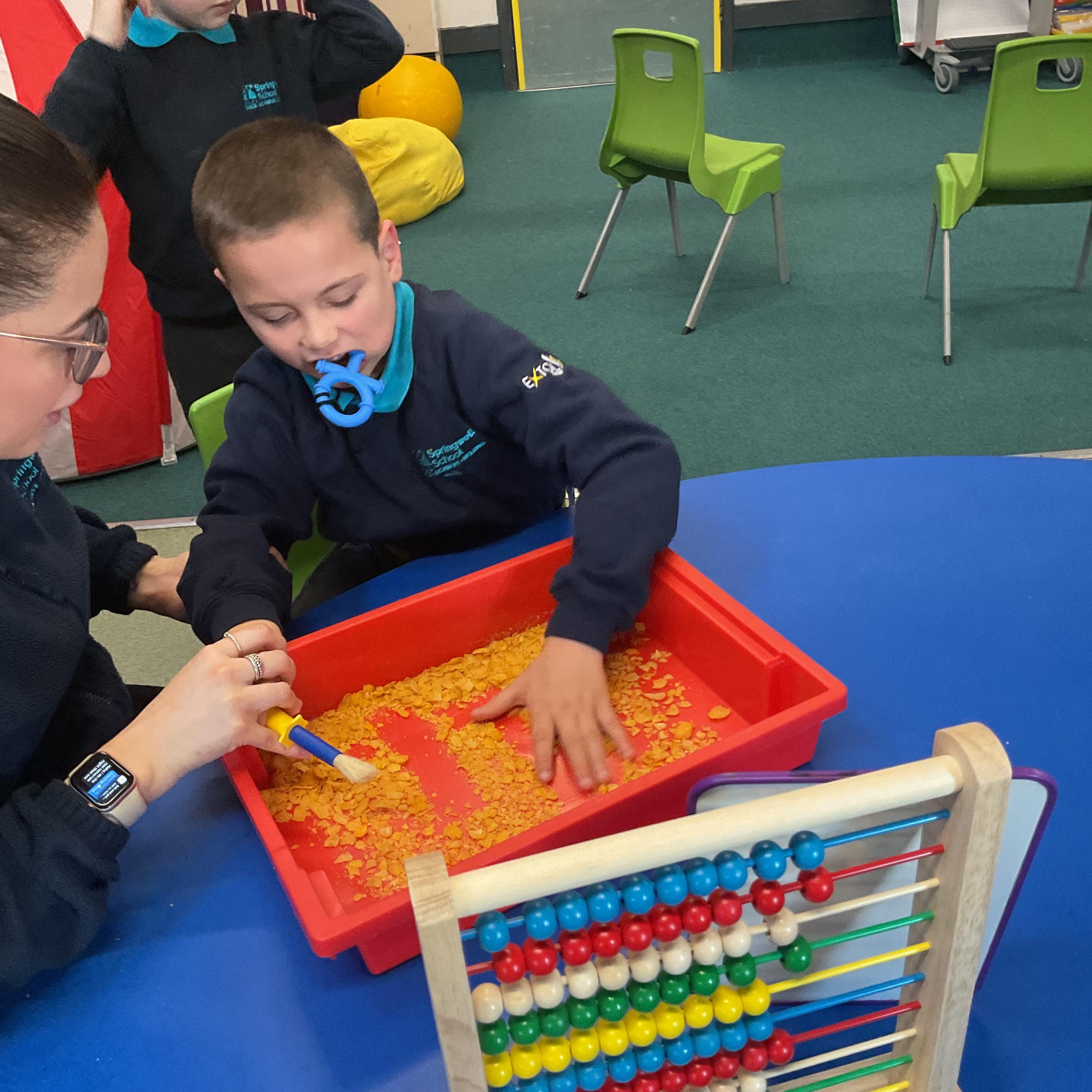 This week in PSHE we did a TACPAC session. Children relaxed and listened to the calming music while staff used the different objects and materials to massage and engage the children.