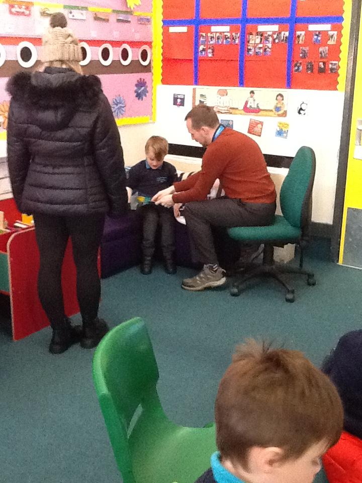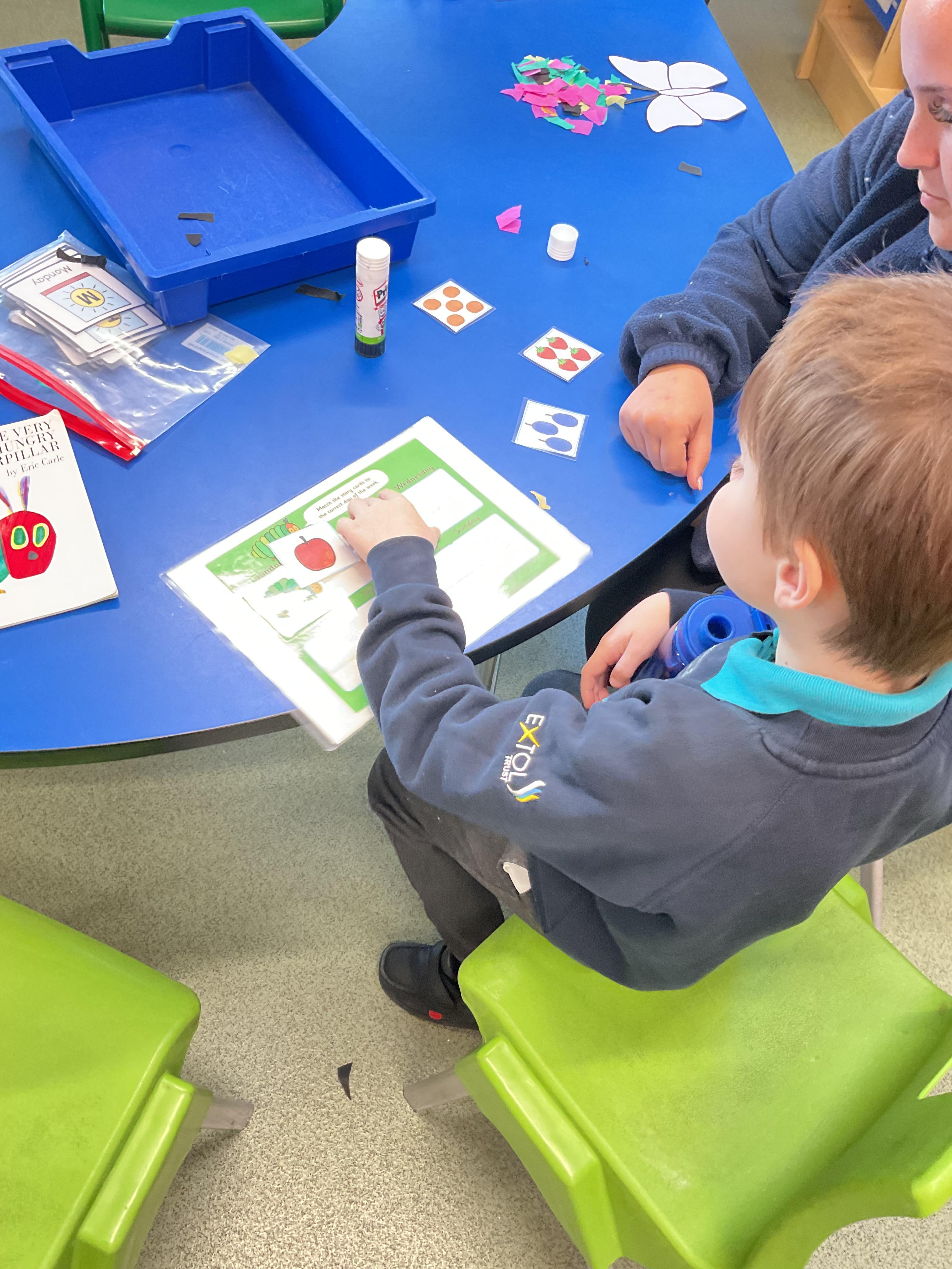 Today we invited our families into school for our 'share a story' afternoon. We read The Very Hungry Caterpillar and then completed some activities based on the story. We really enjoyed showing our parents all the activities we do.