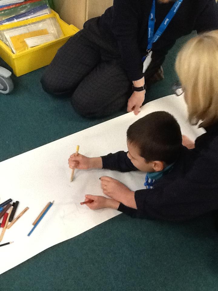 This week in literacy we followed the writing programme "Squiggle while you Wiggle", children danced and wiggled to the music and then scribbled and squiggled on the paper with pencils and crayons. We practised back and forth line making and big circles.