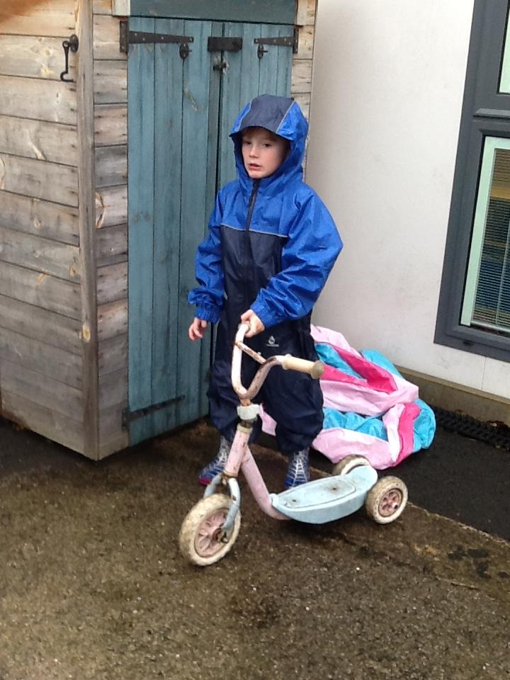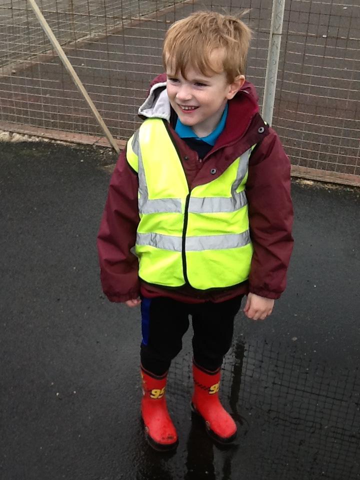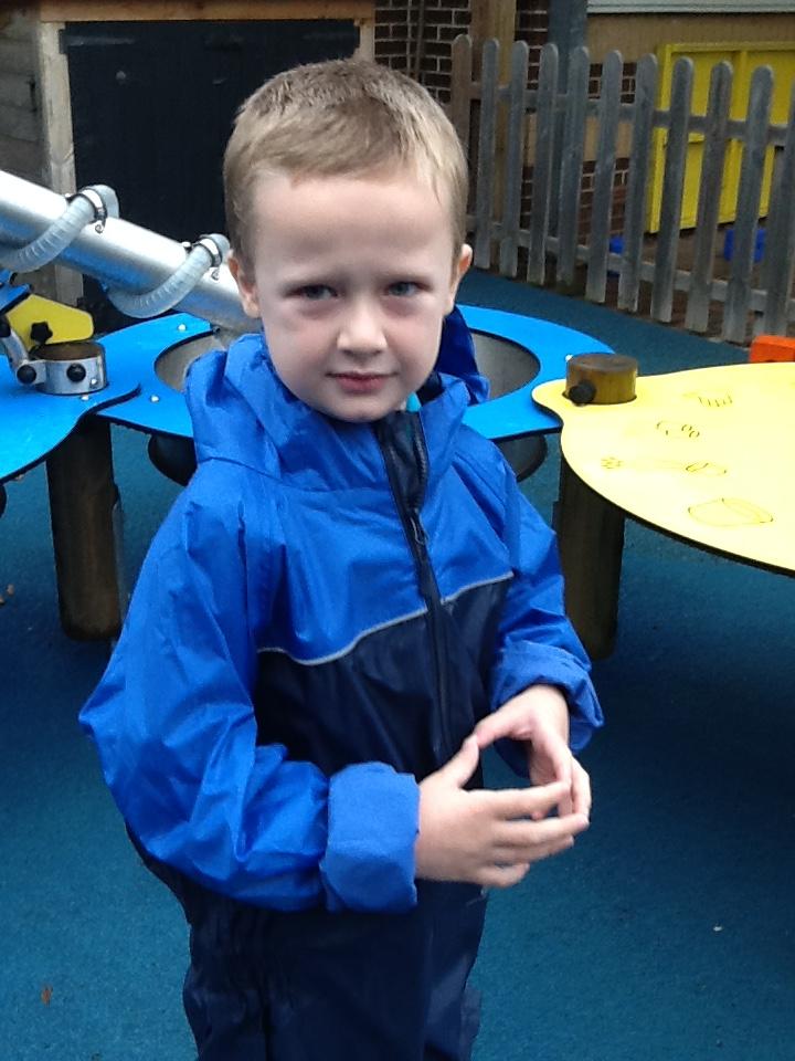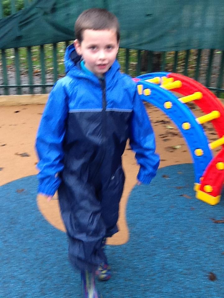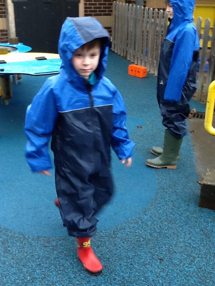 We got all wrapped up in schools new wetsuits and wellies and had wet outdoor play! We had so much fun jumping in puddles!