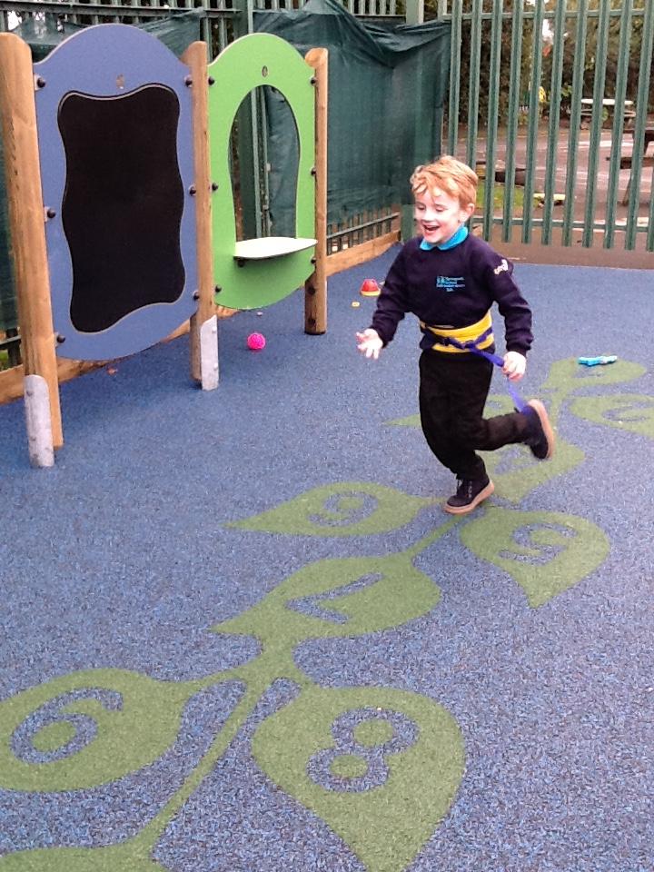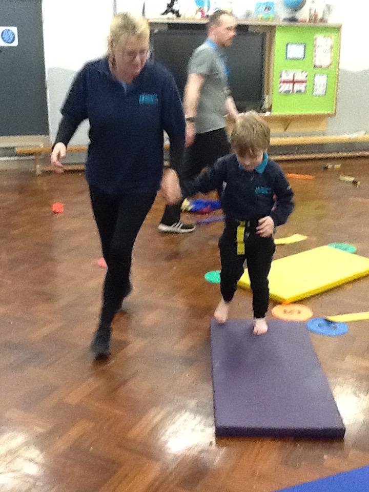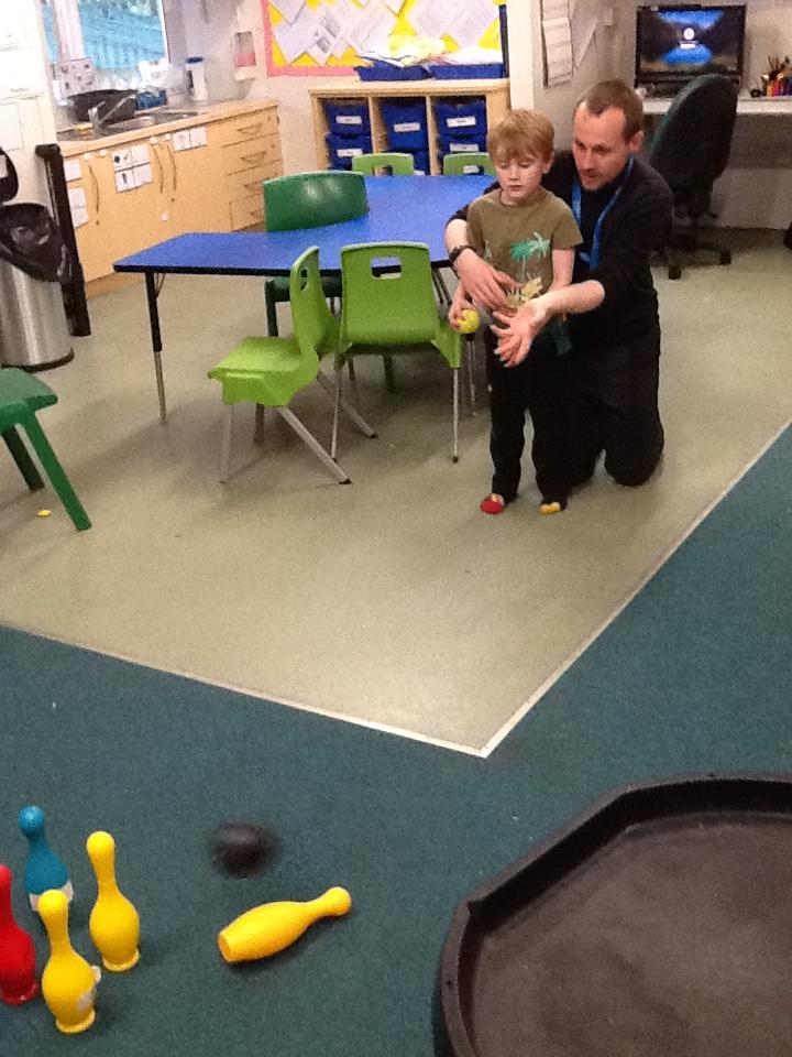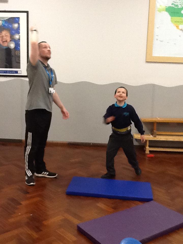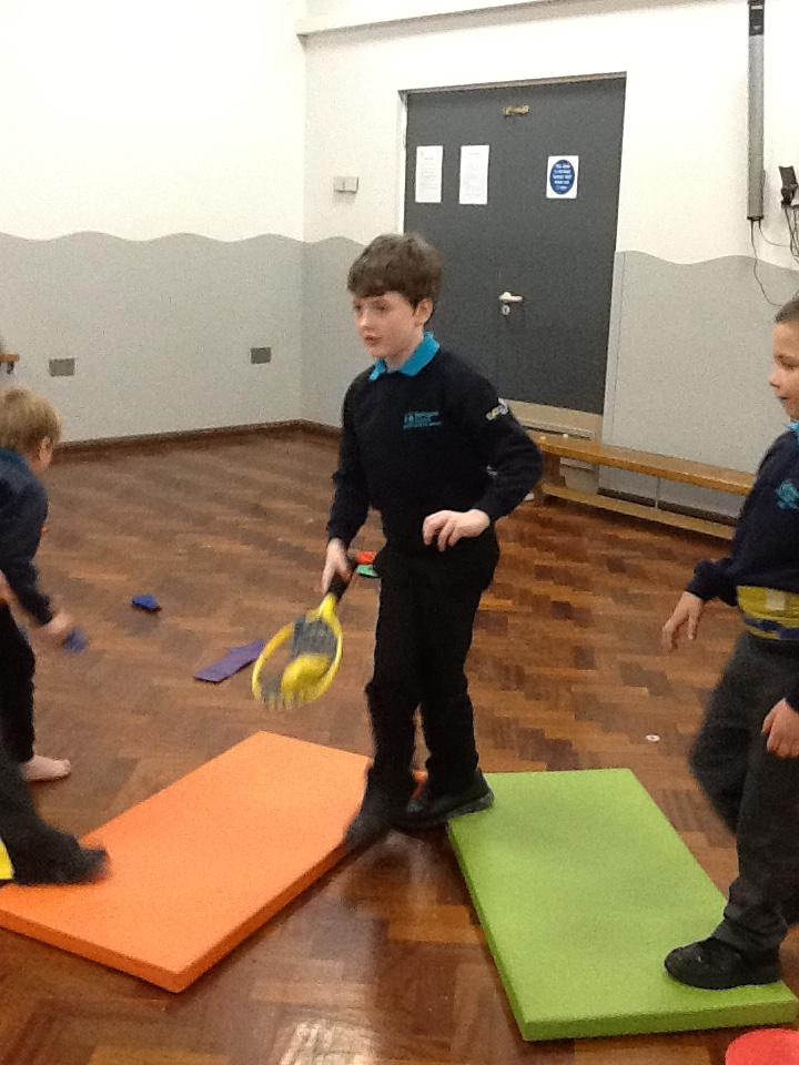 Today we set up lots of activites in the hall to explore, we were using our gross motor skills to run, jump, throw and catch.