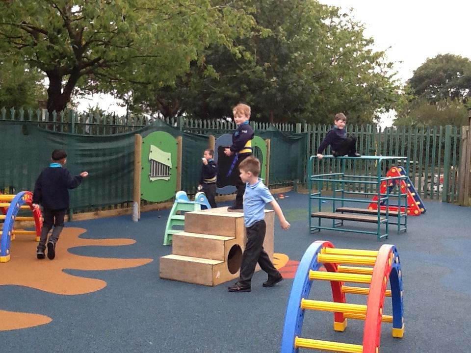 We have been doing art, DT and been exploring our BRAND NEW outside area!