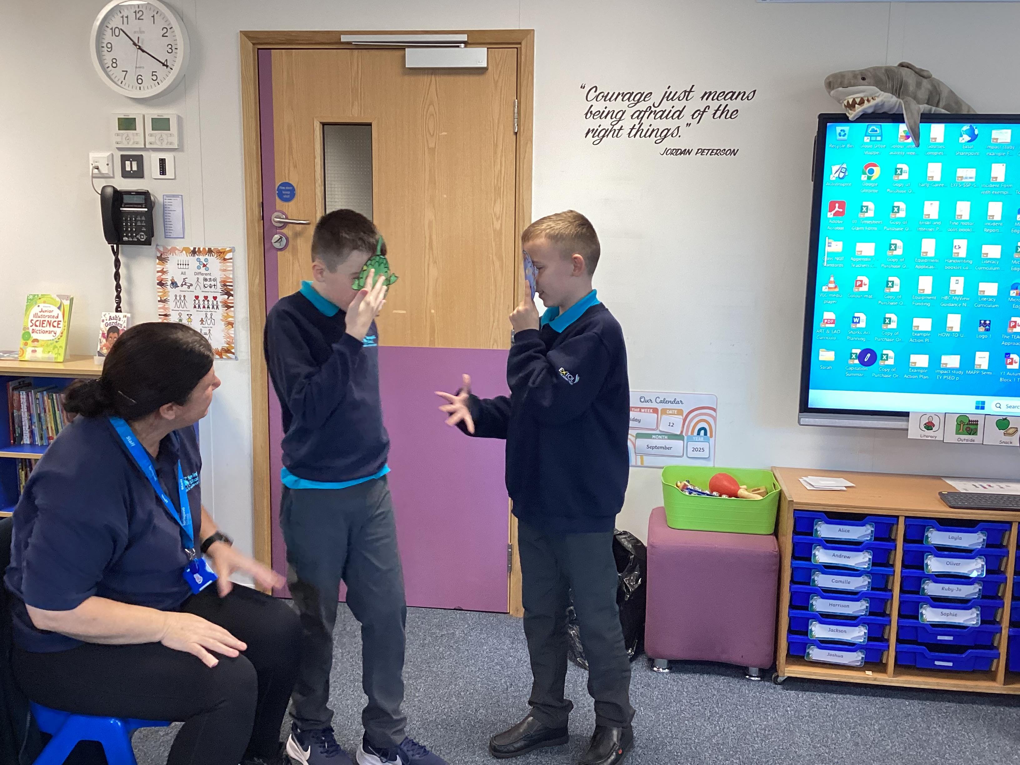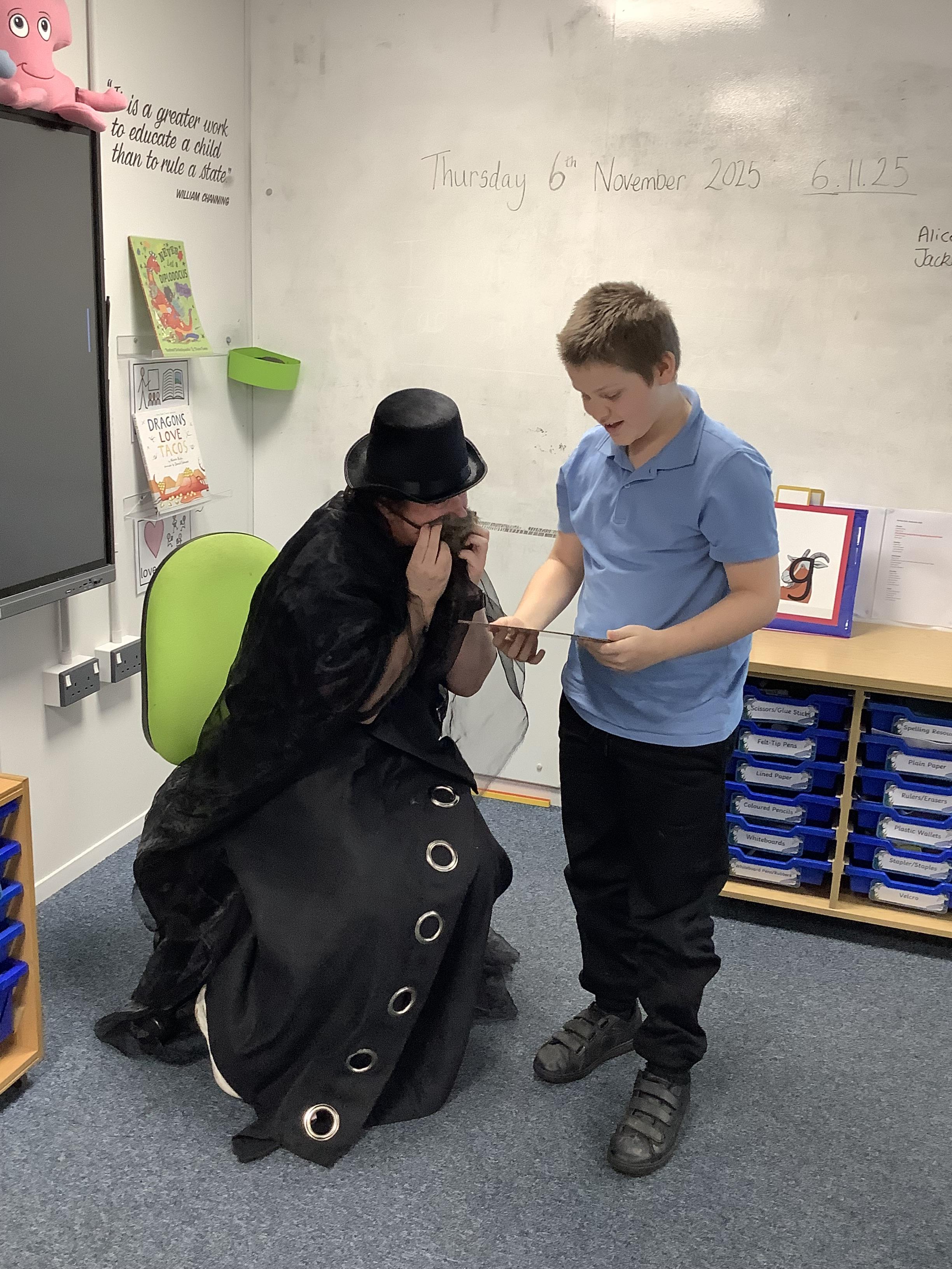 Thursday 23rd October 2025 - In Literacy today, we had lots of fun role-playing the story Mrs Blackhat. We have some amazing actors in Sharks!