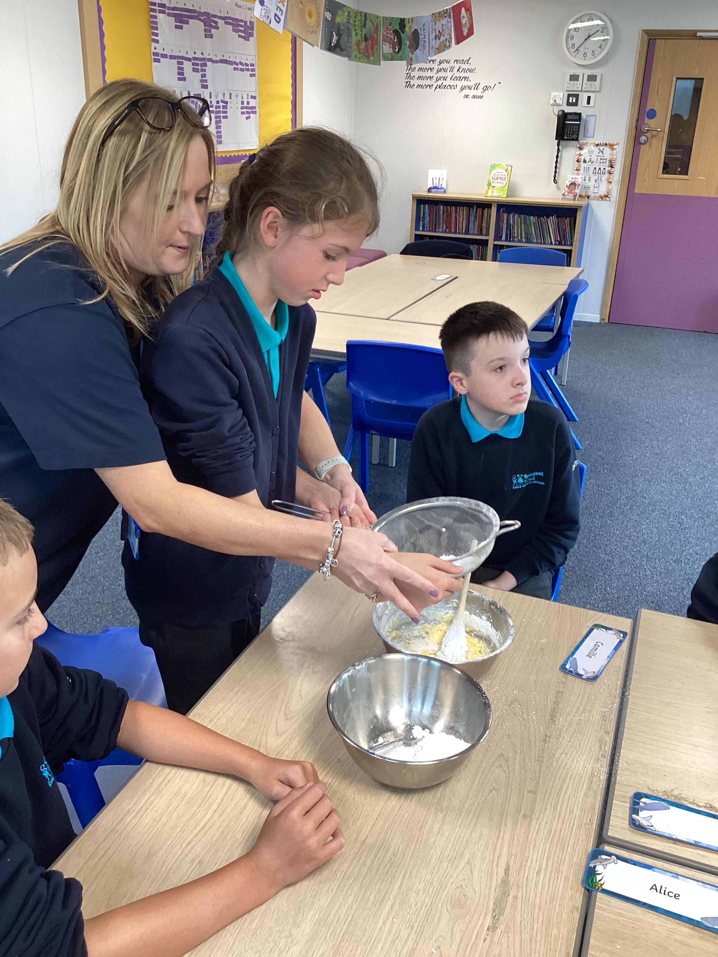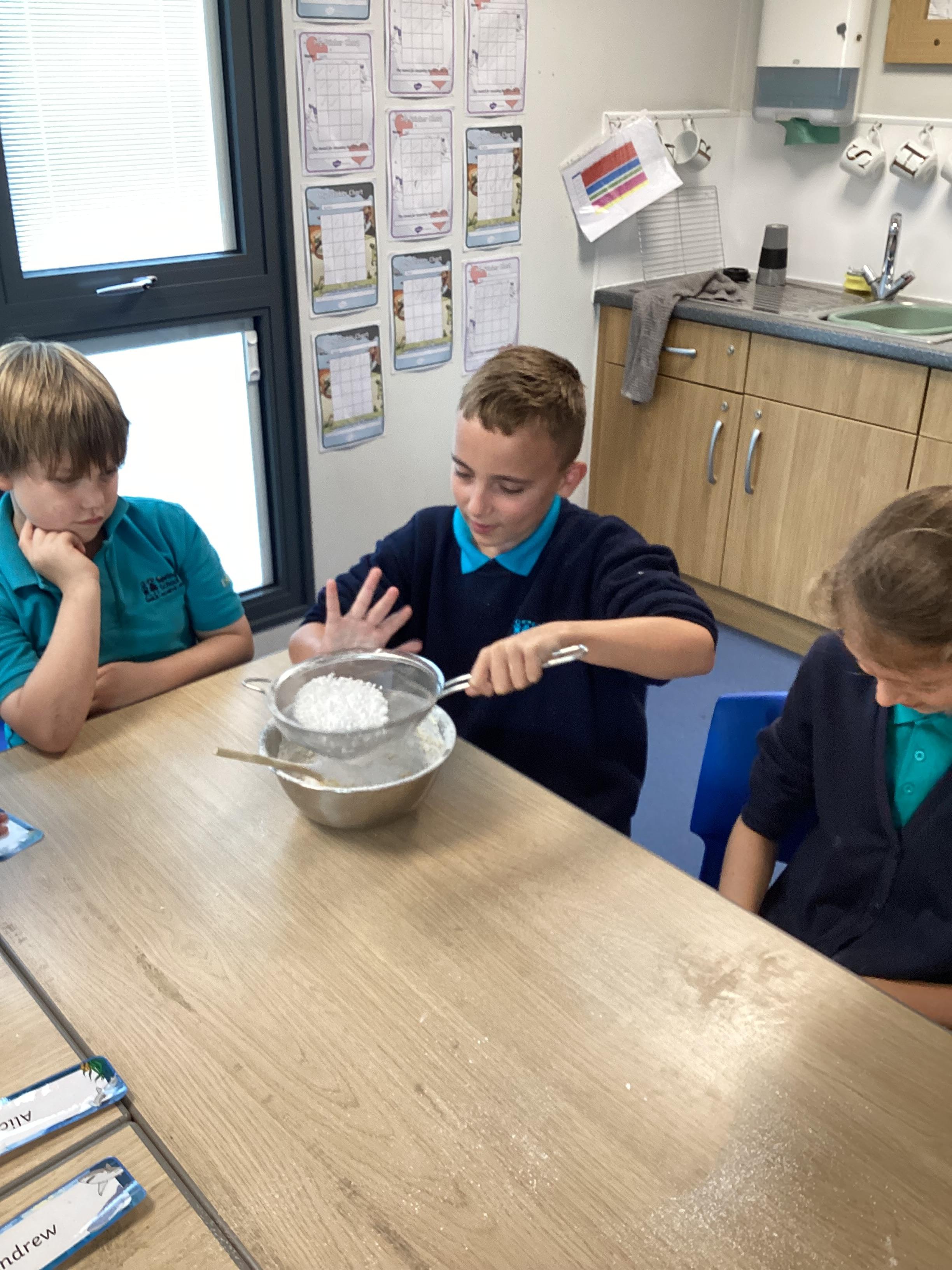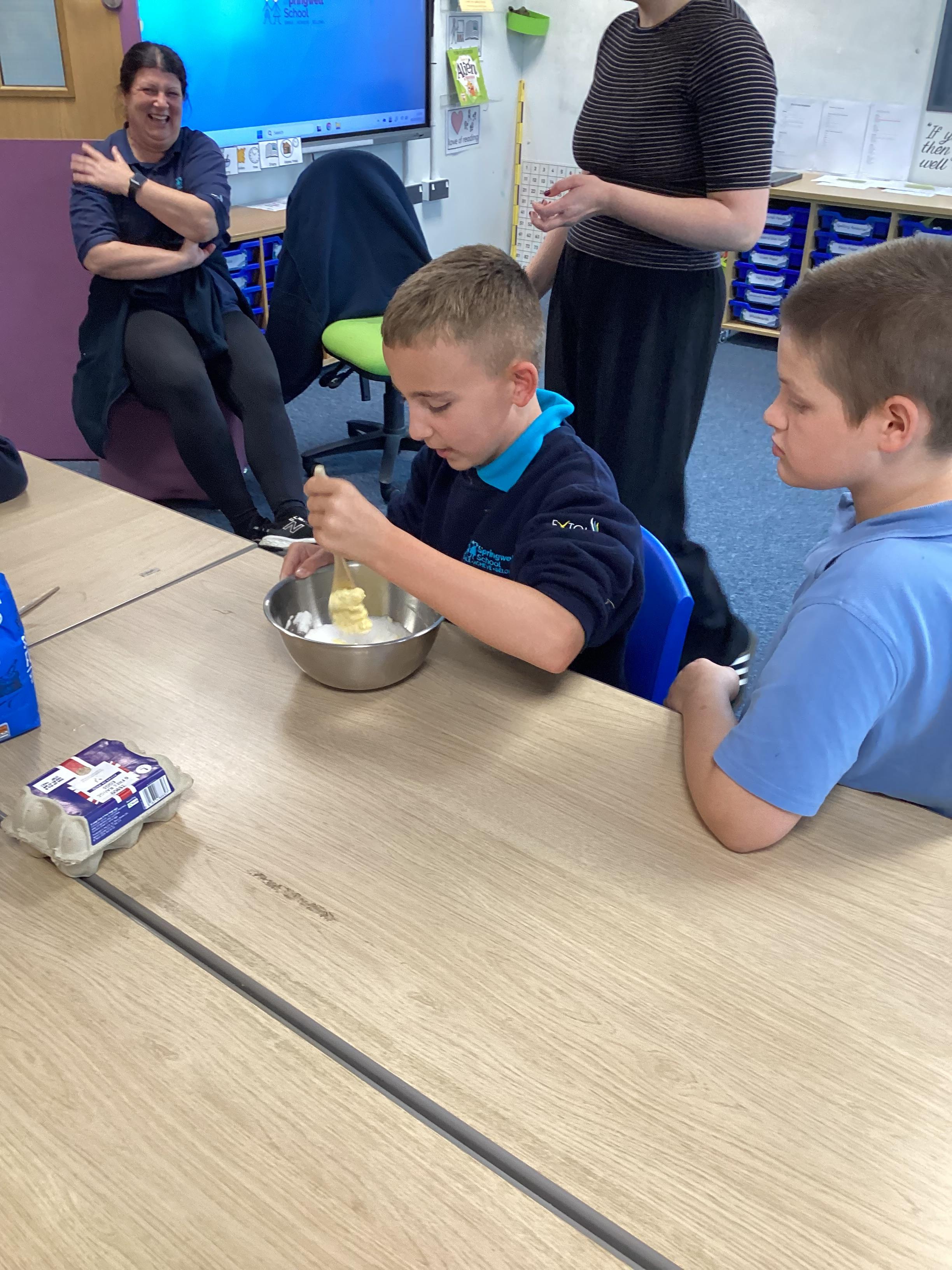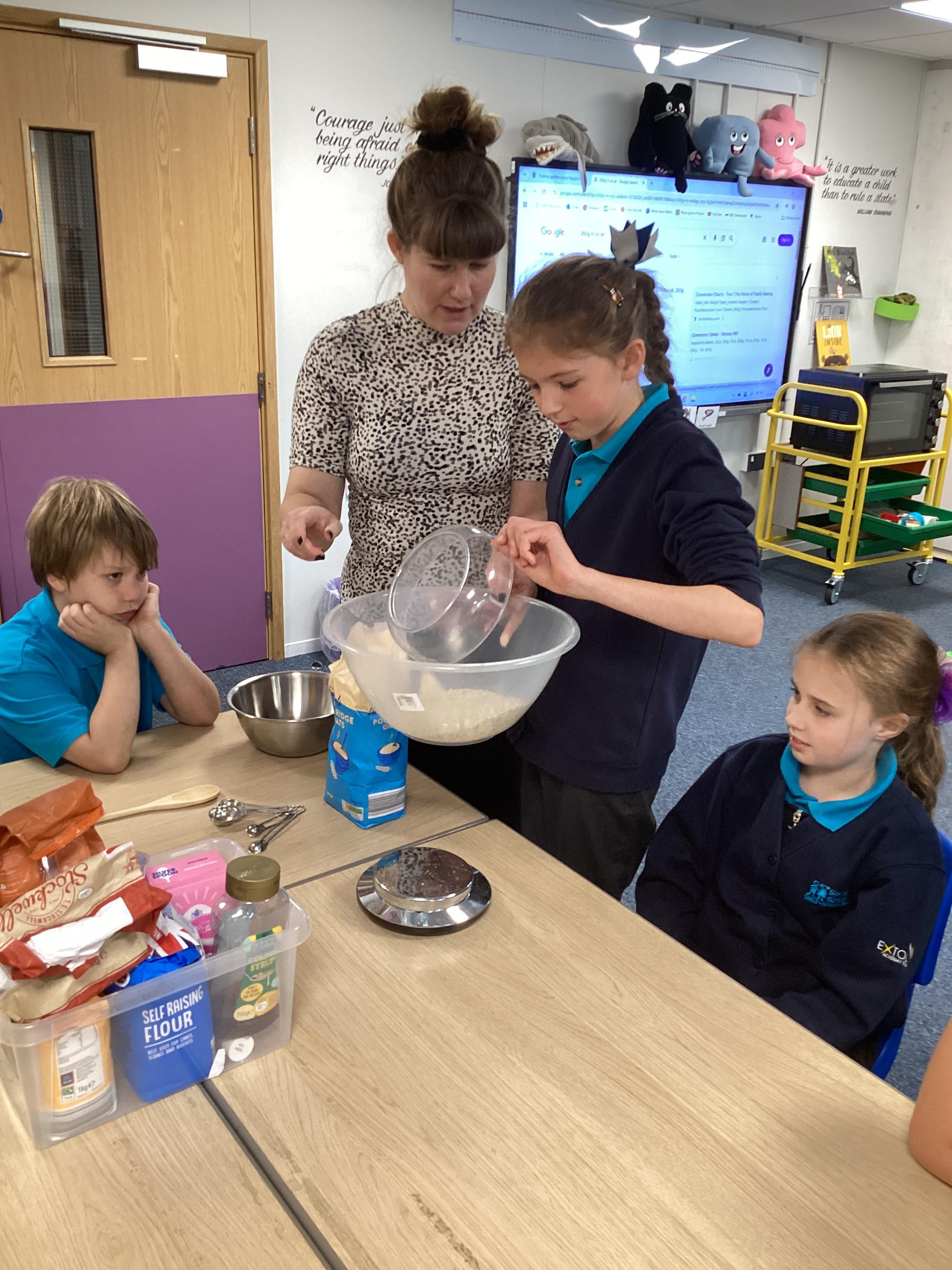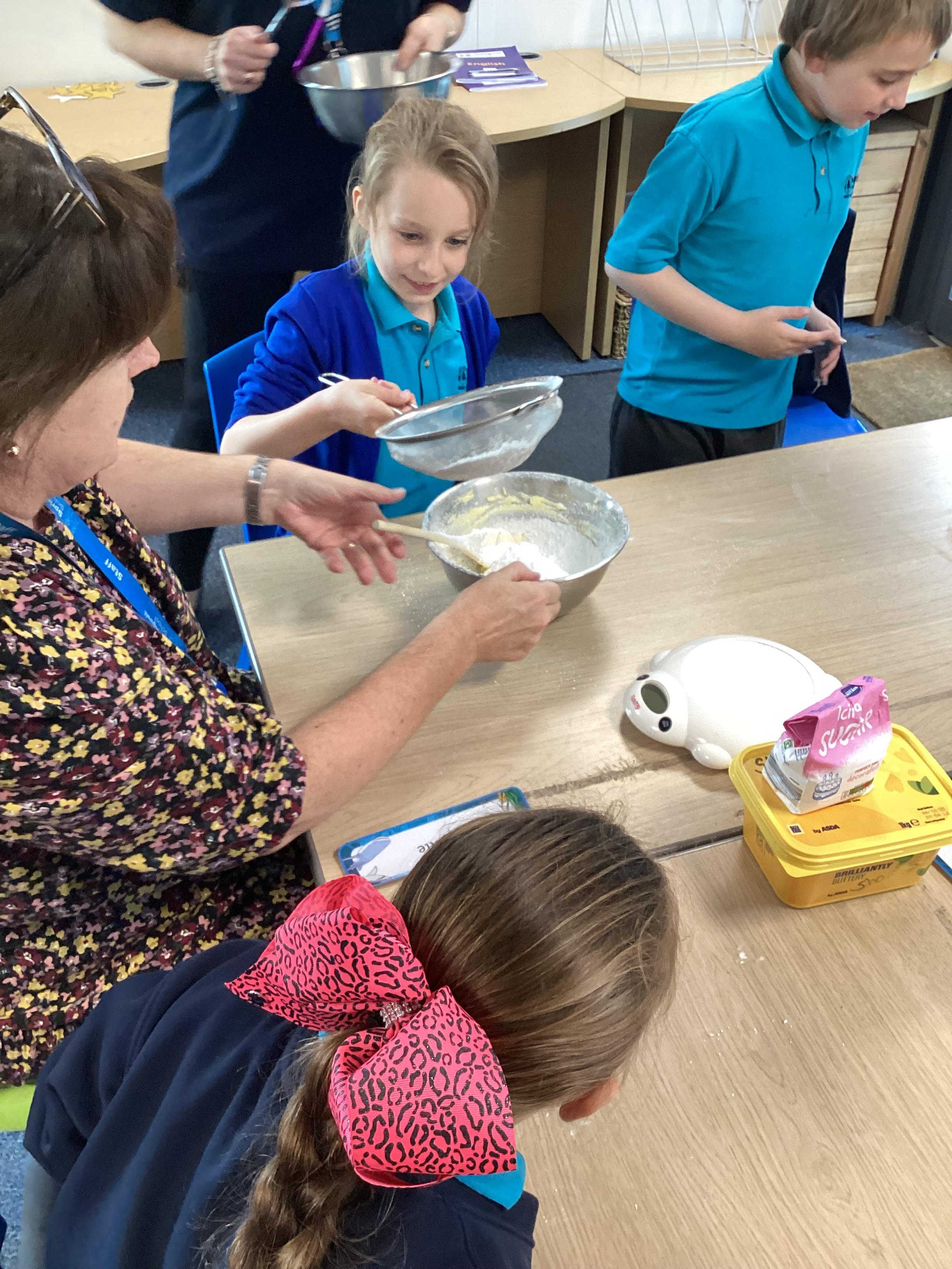 Wednesday 1st October 2025 - In Cookery today, we made some cakes. We took our time measuring out the ingredients. We then took turns to mix the ingredients and put the mixture into the cake cases.