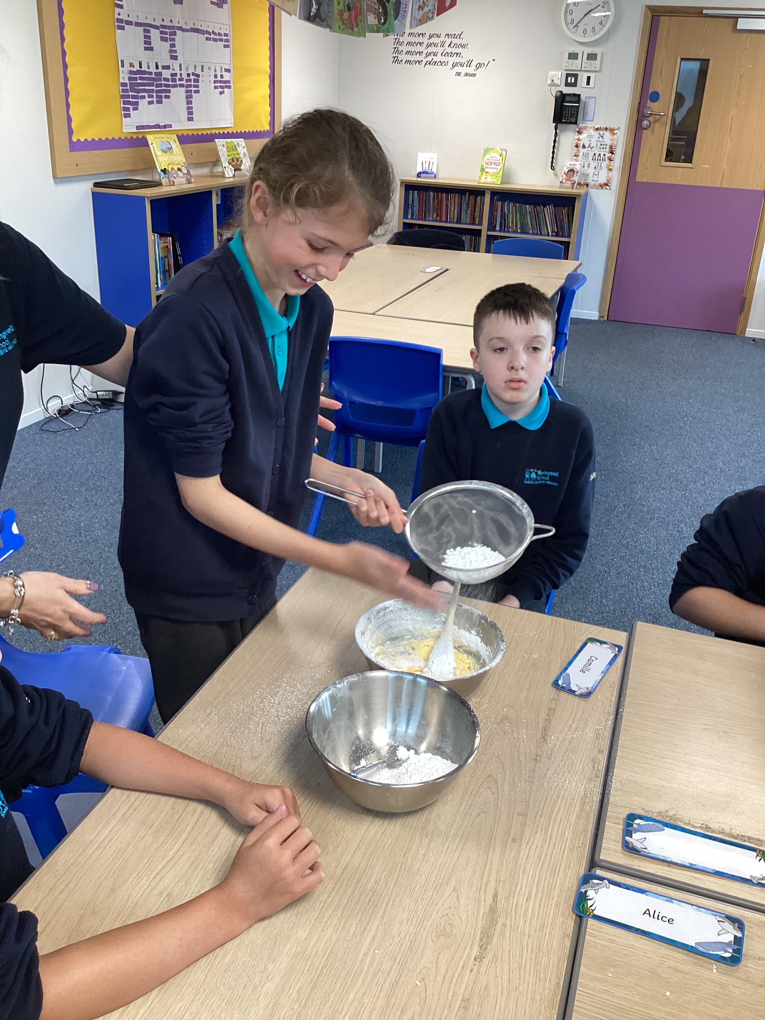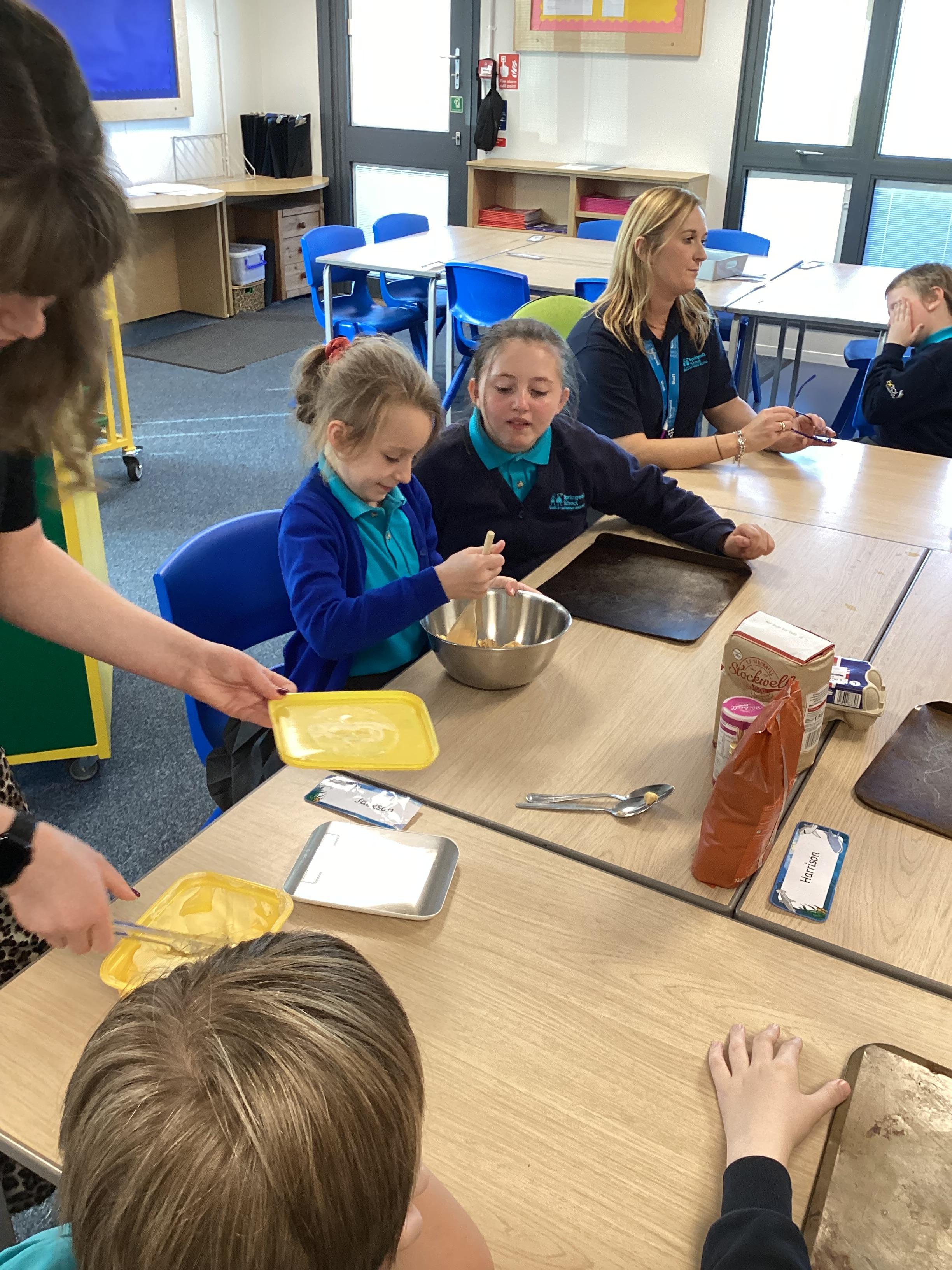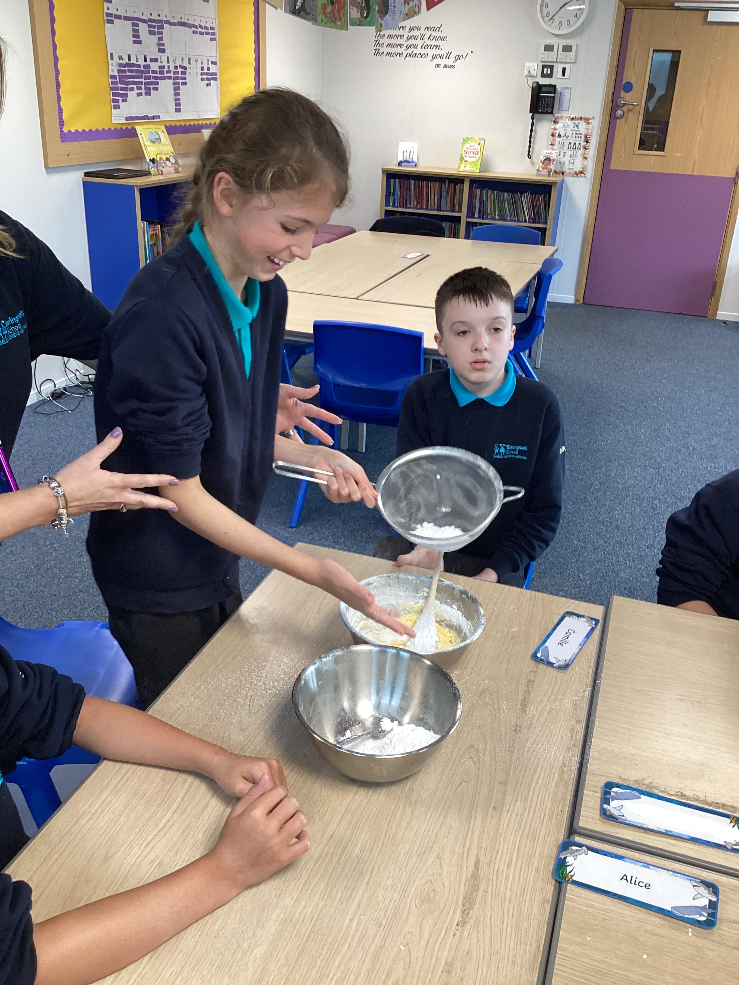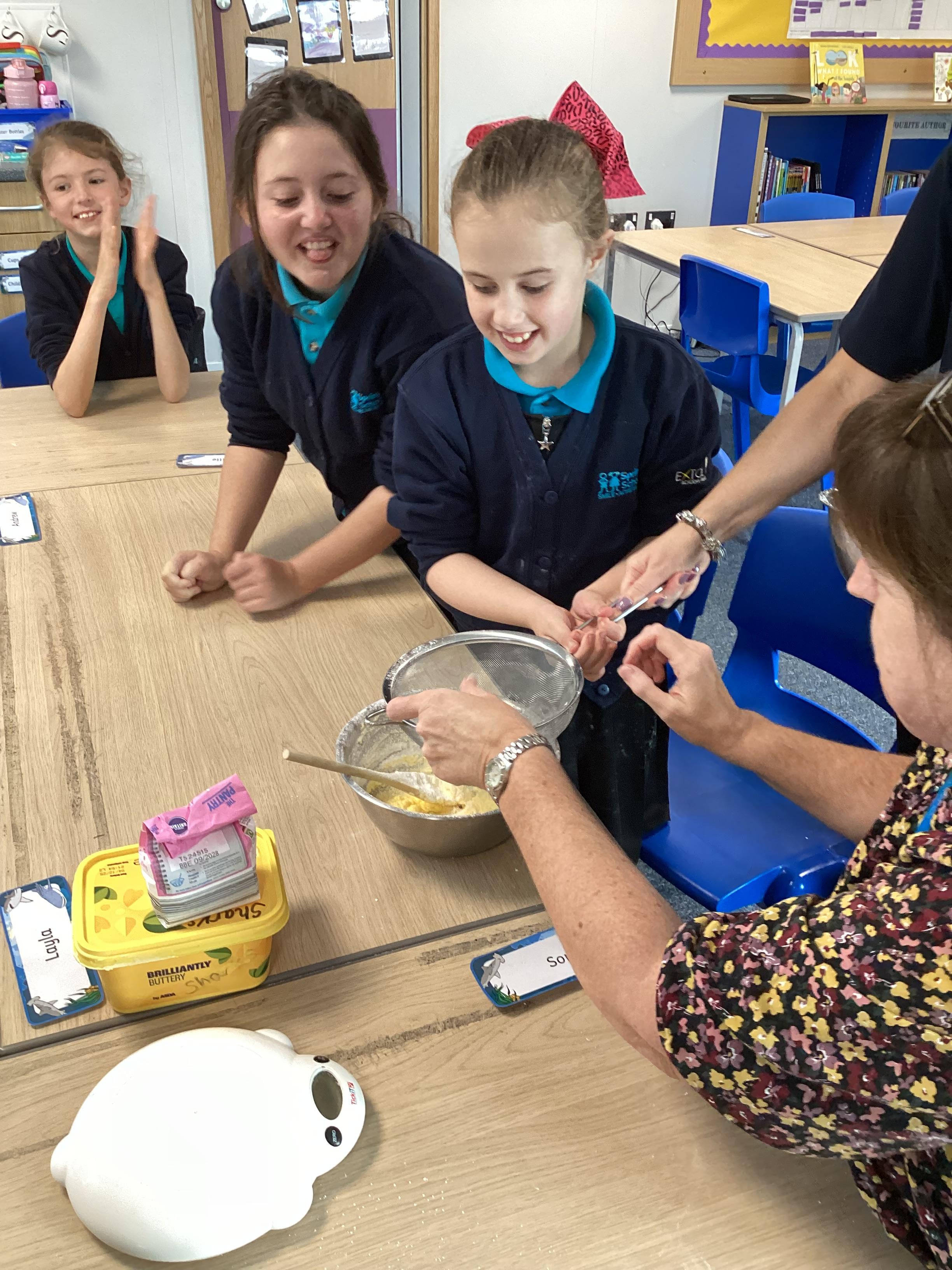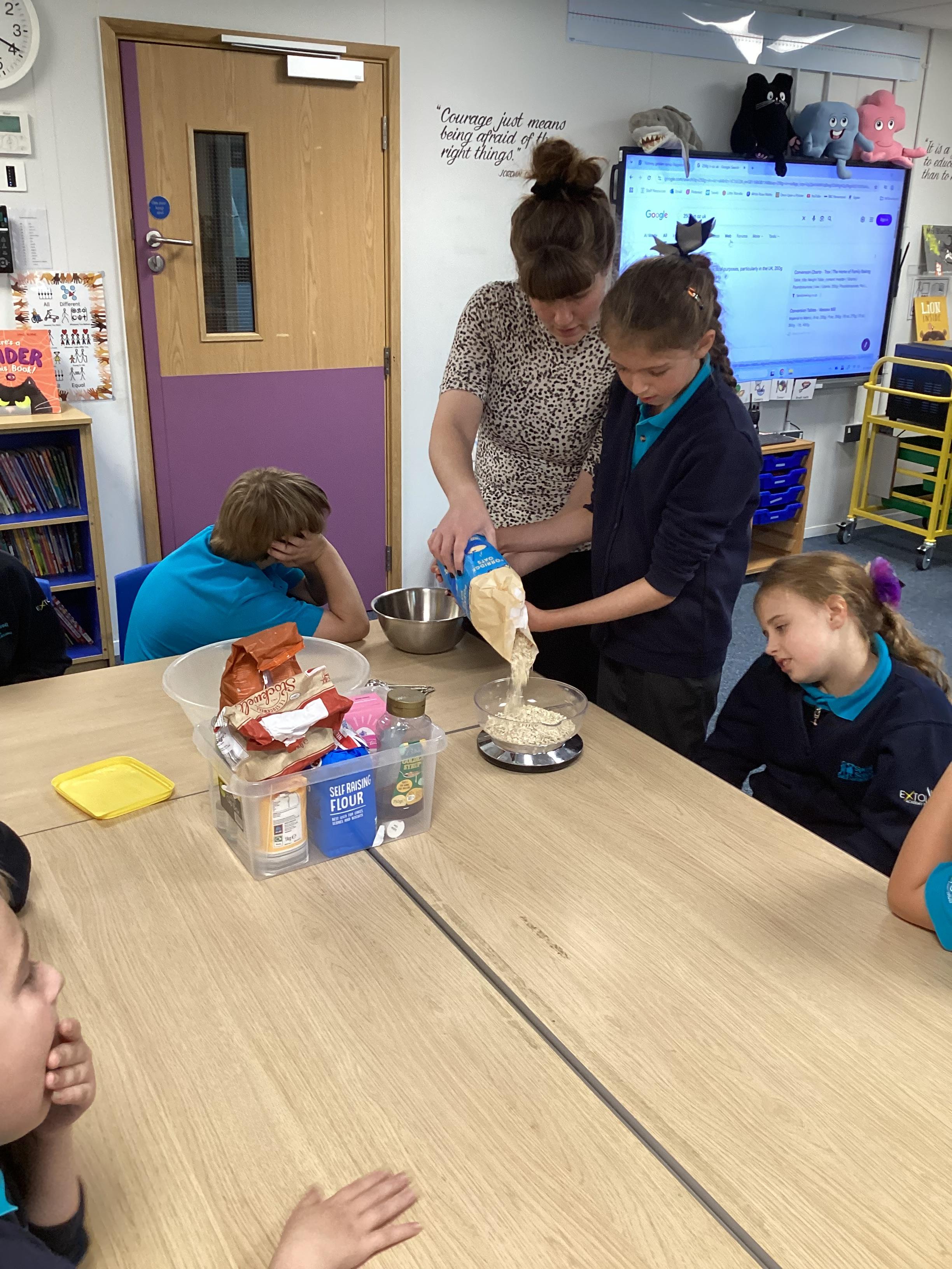 Wednesday 1st October 2025 - In Cookery today, we made some cakes. We took our time measuring out the ingredients. We then took turns to mix the ingredients and put the mixture into the cake cases.