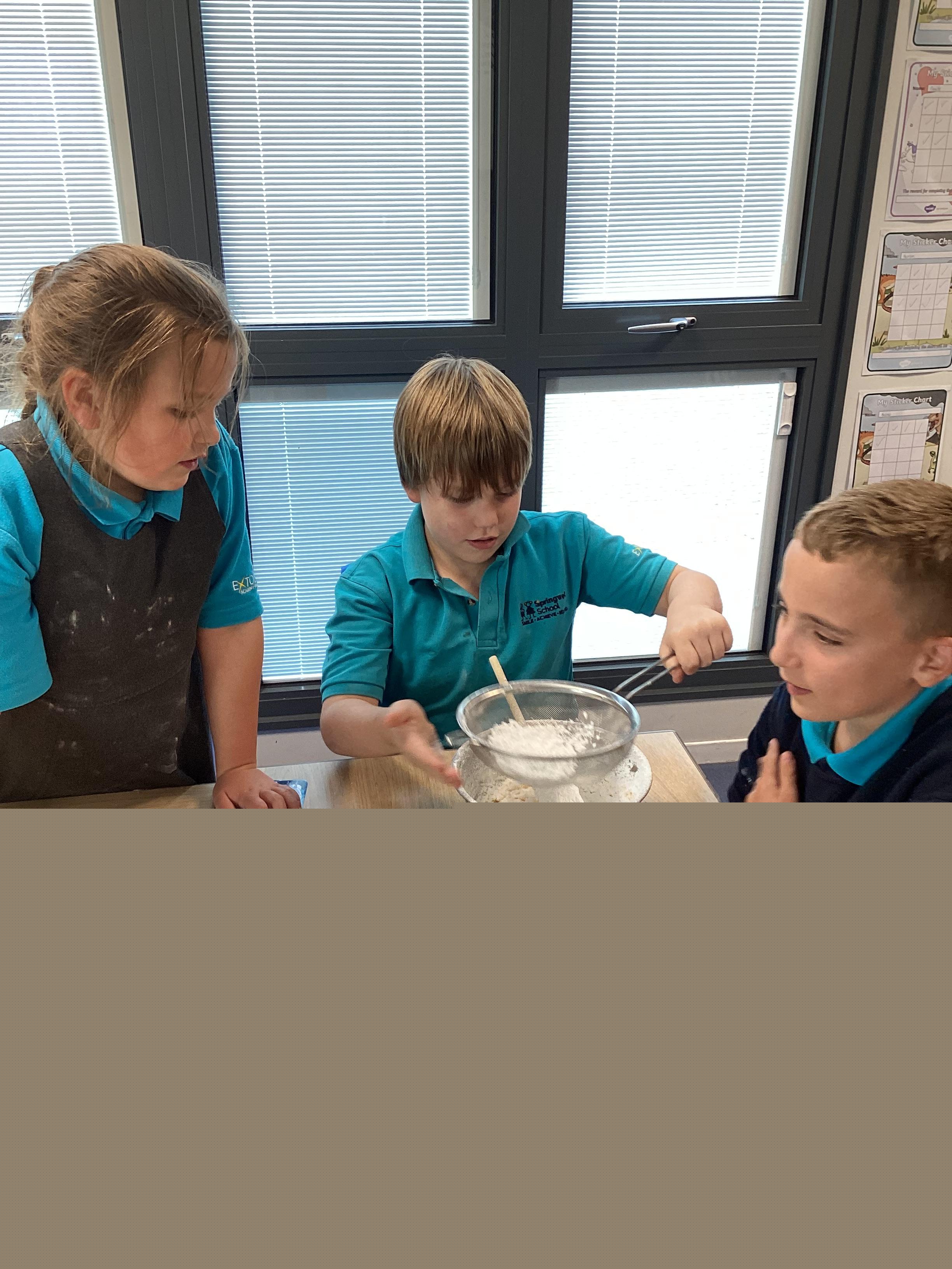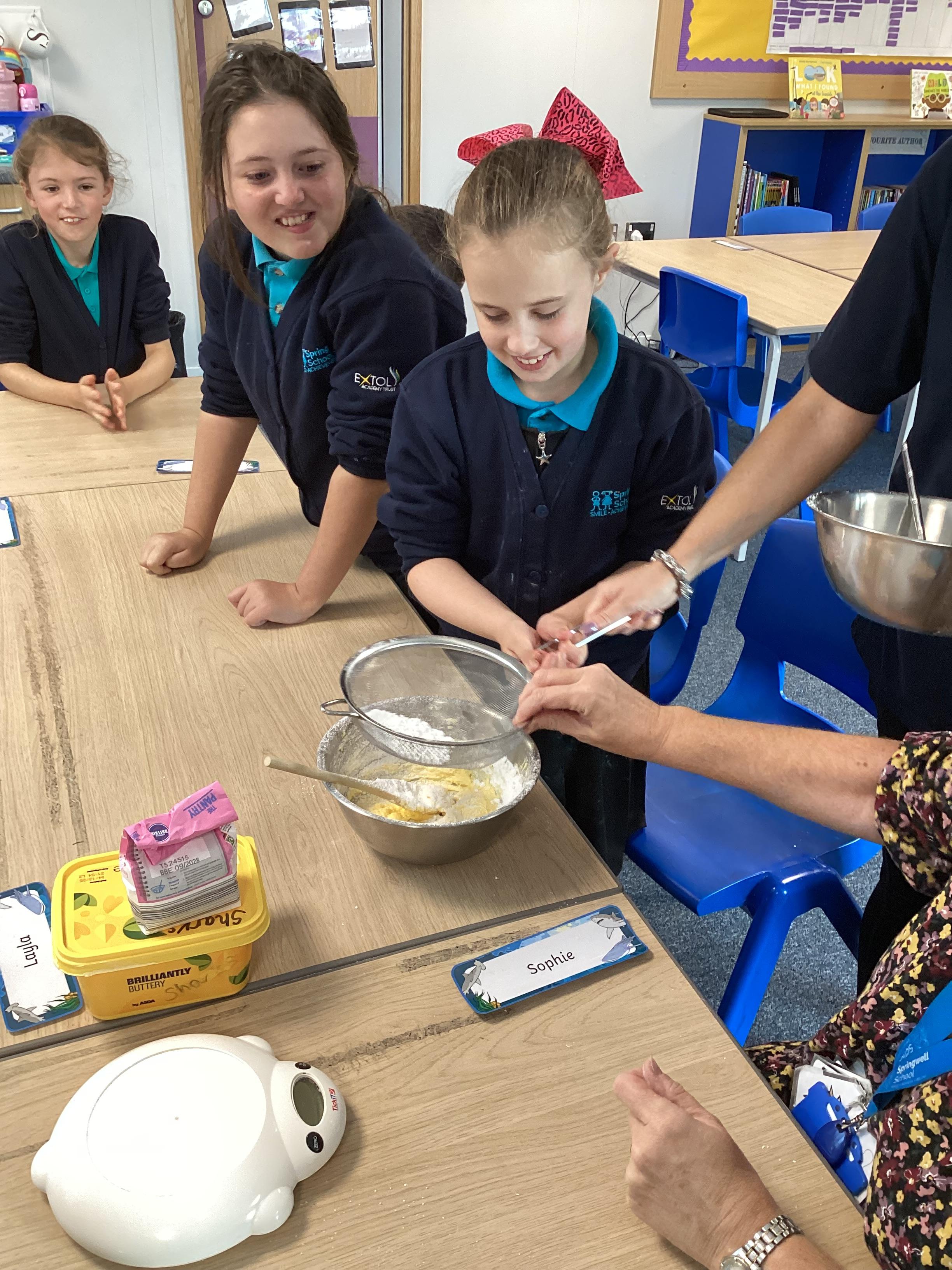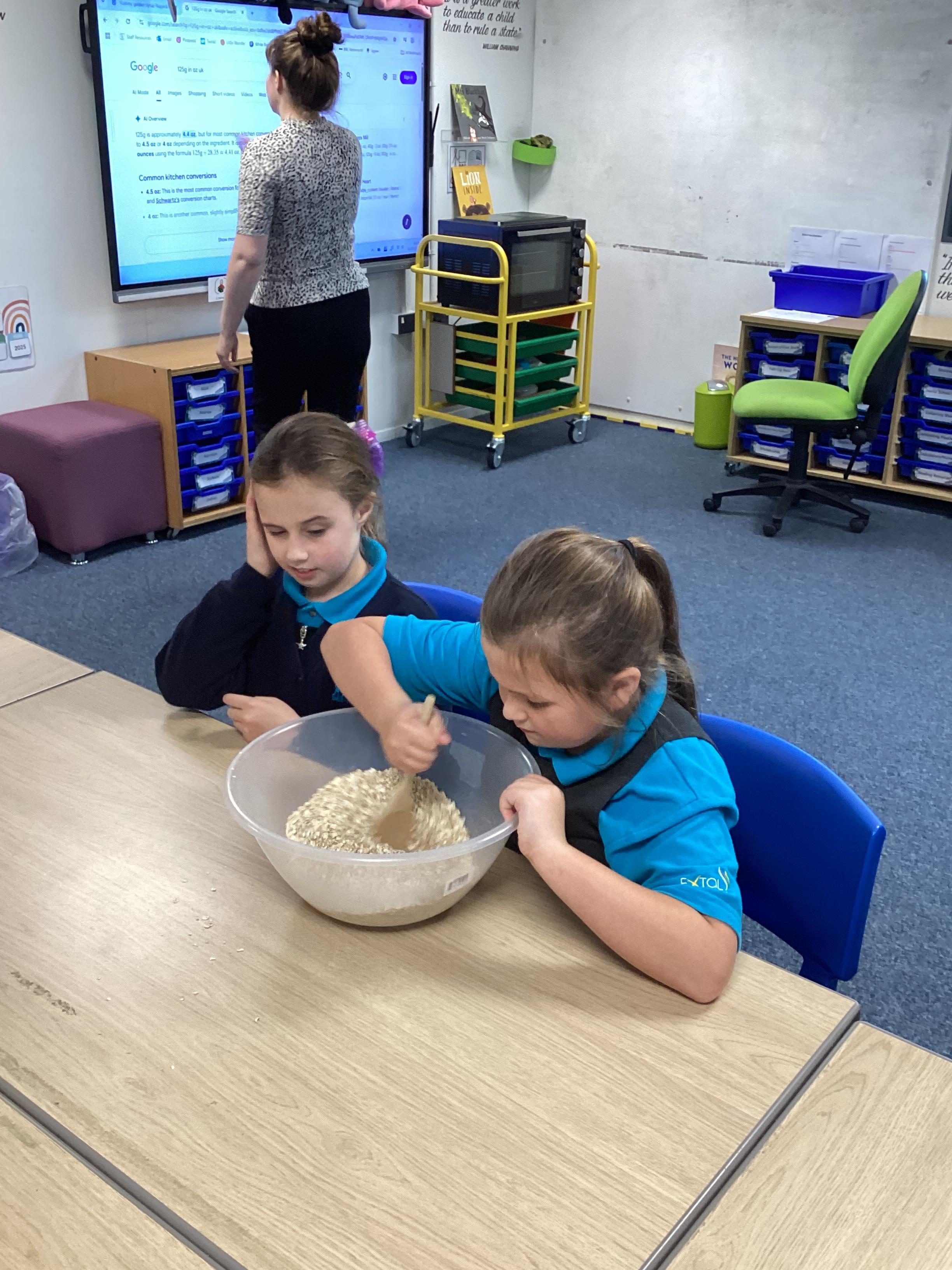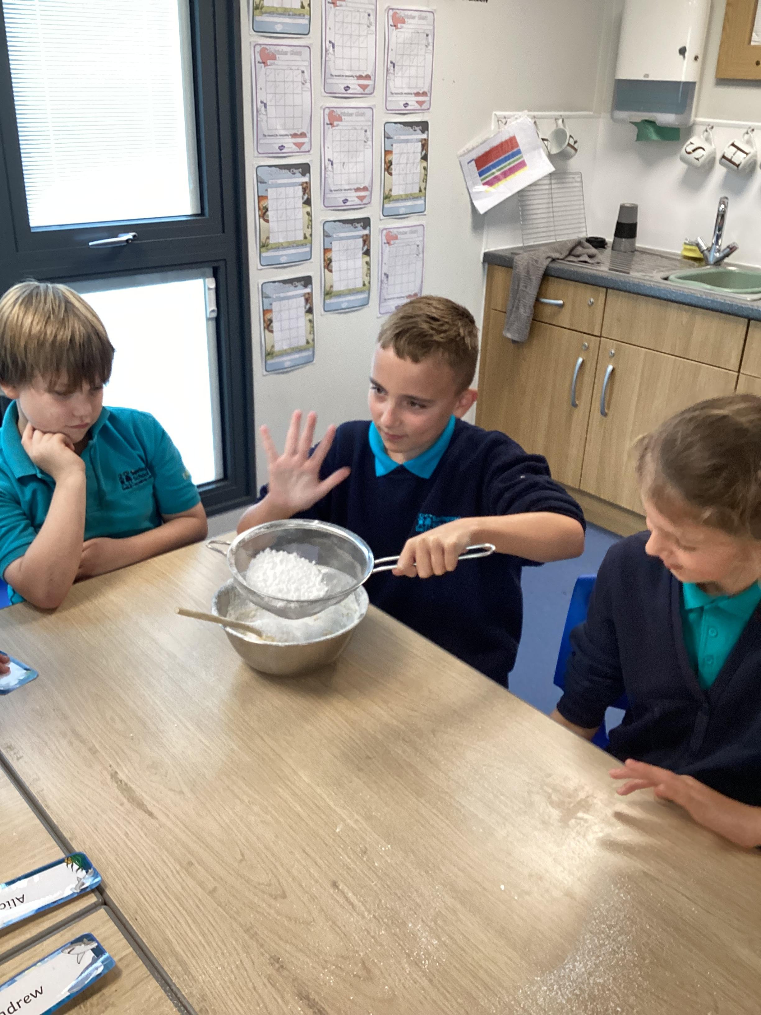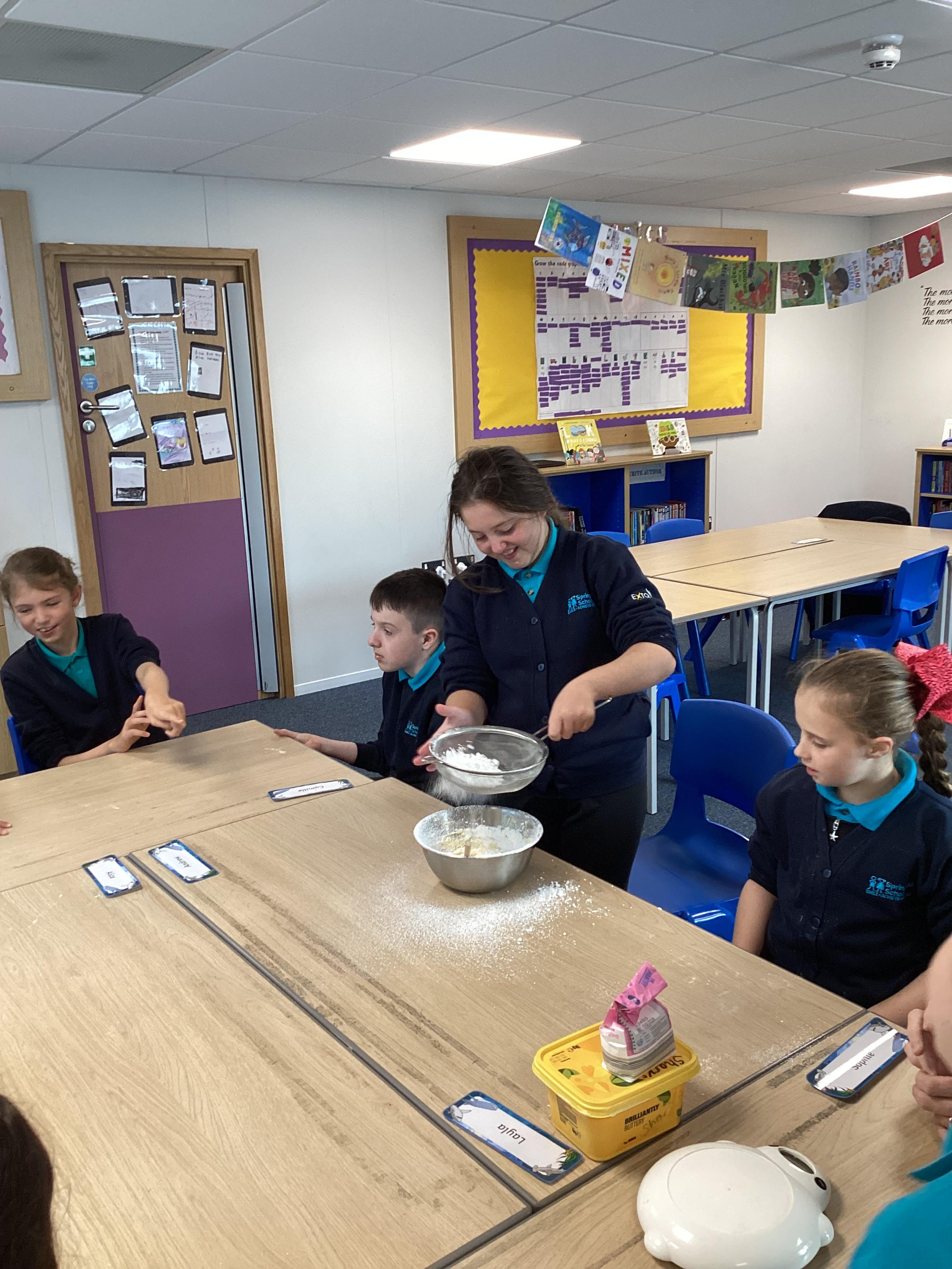 Wednesday 1st October 2025 - In Cookery today, we made some cakes. We took our time measuring out the ingredients. We then took turns to mix the ingredients and put the mixture into the cake cases.
