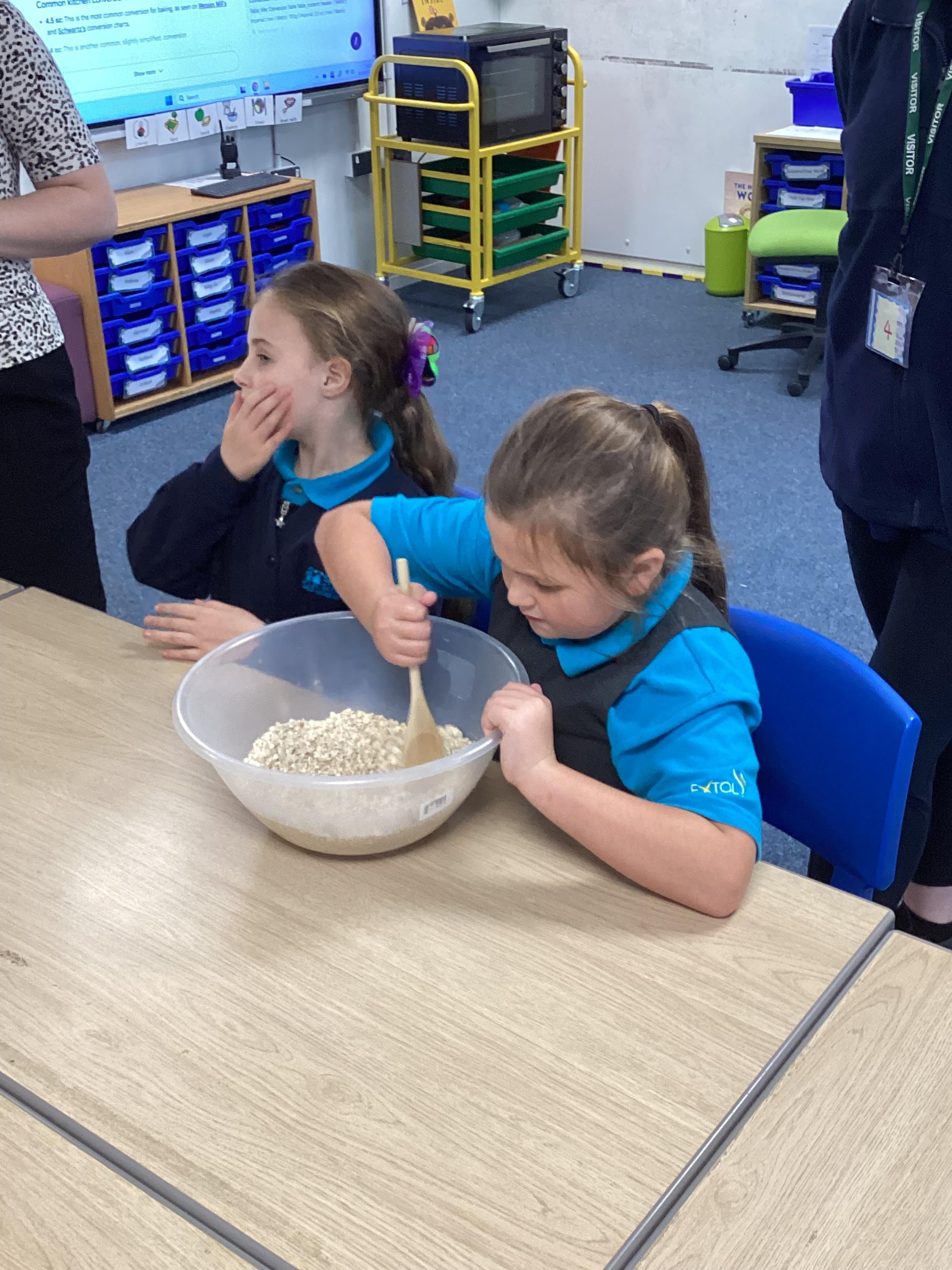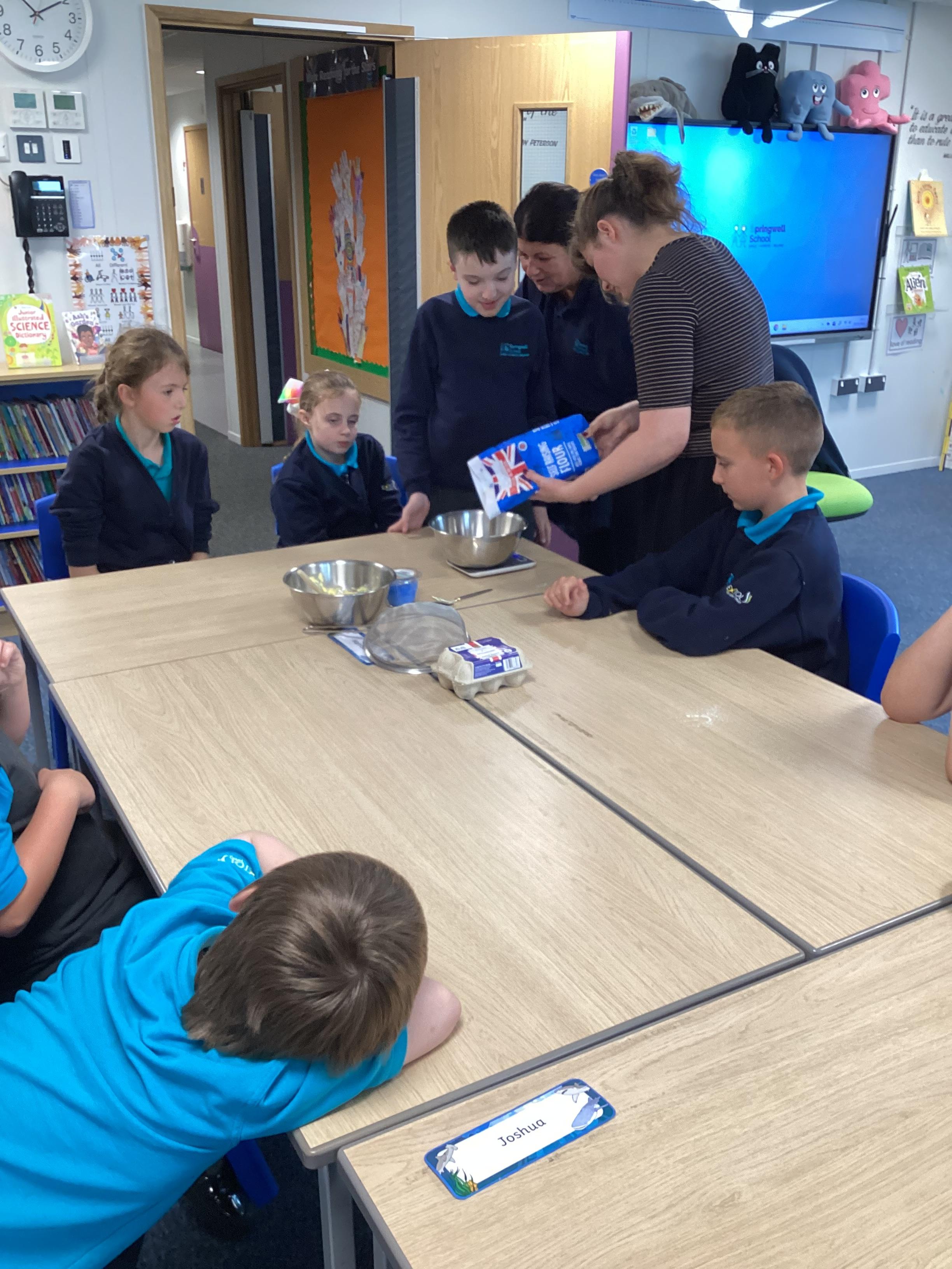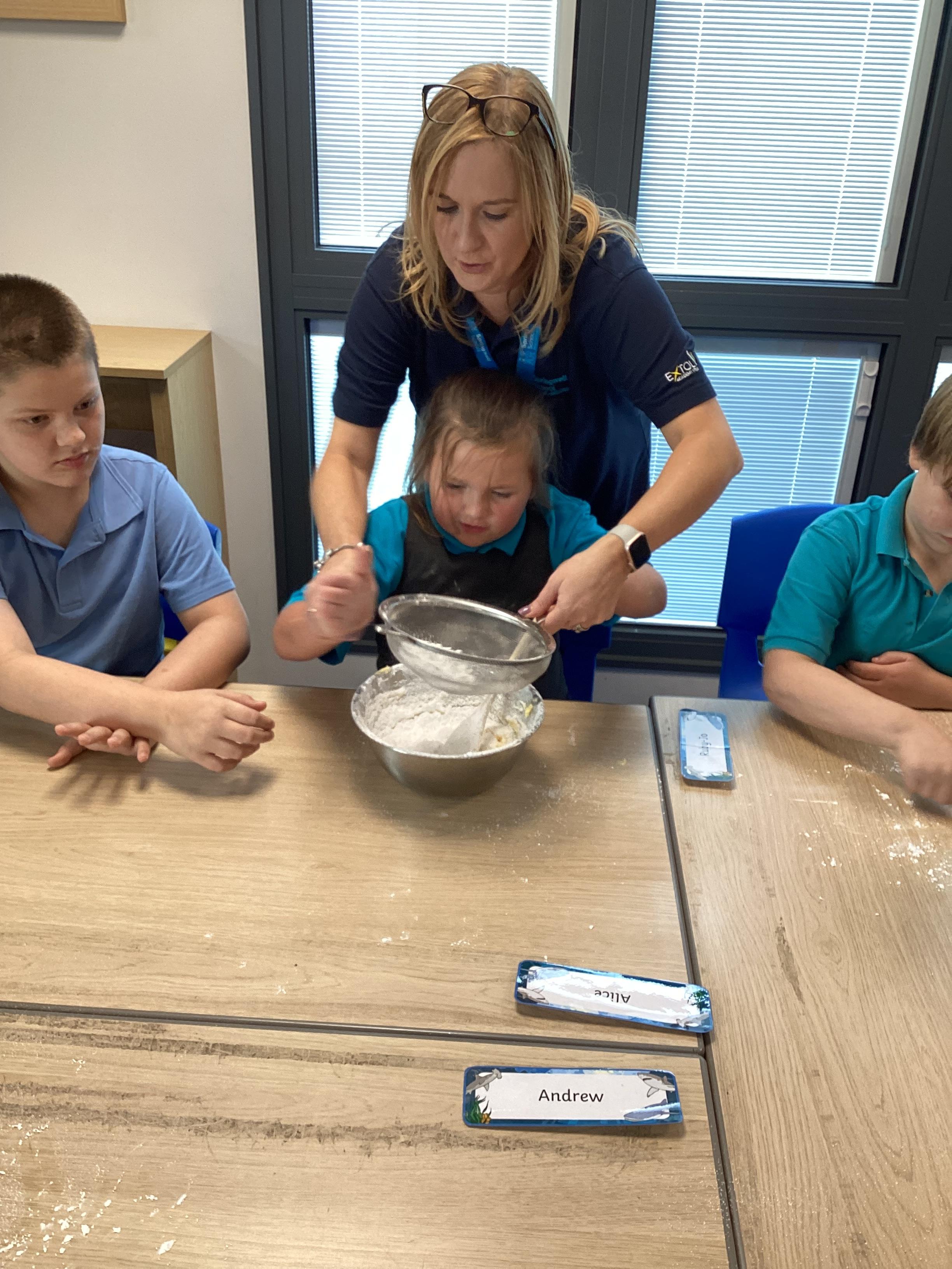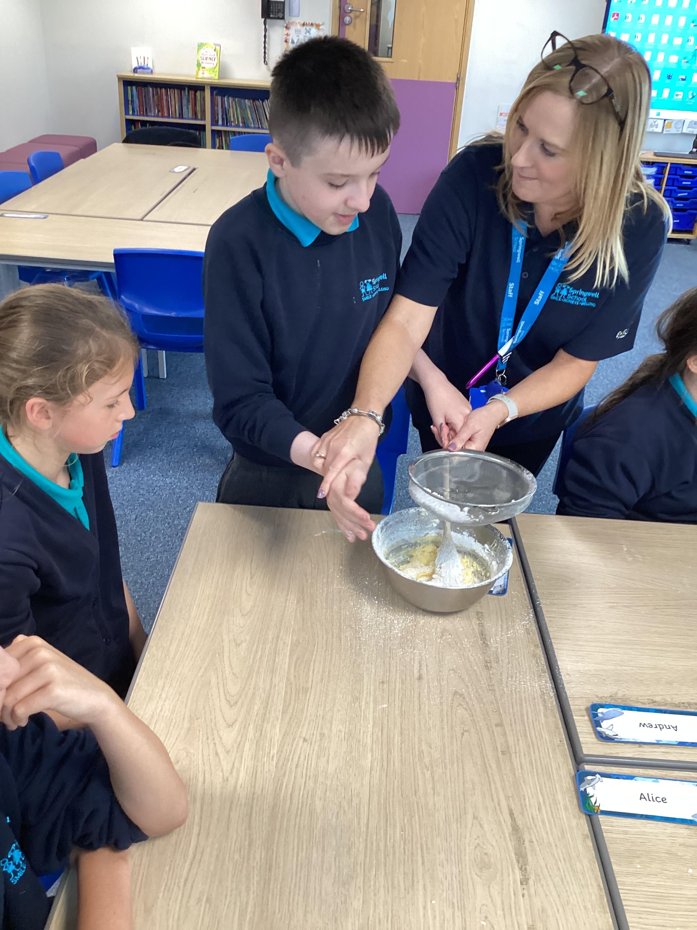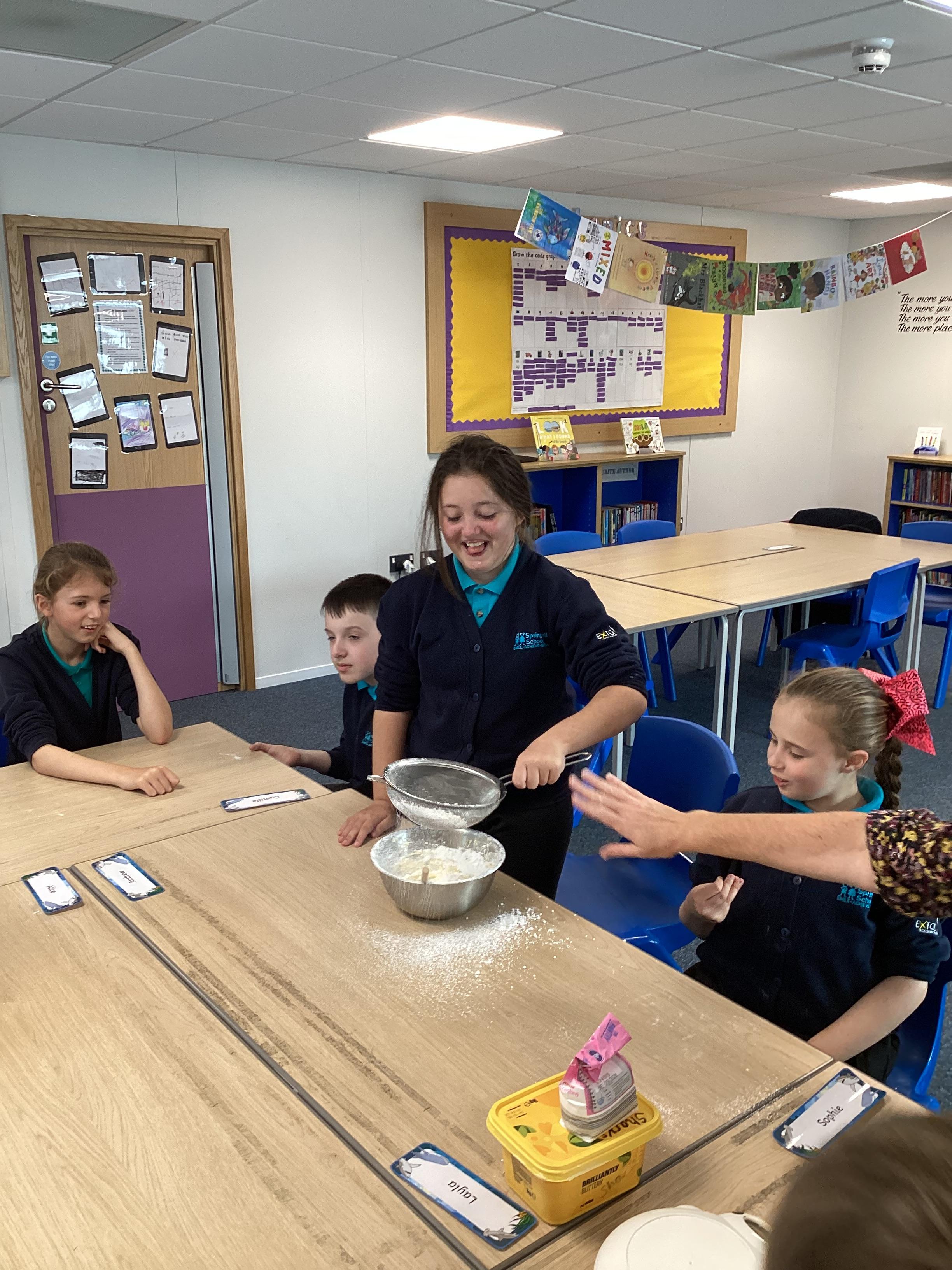 Wednesday 1st October 2025 - In Cookery today, we made some cakes. We took our time measuring out the ingredients. We then took turns to mix the ingredients and put the mixture into the cake cases.