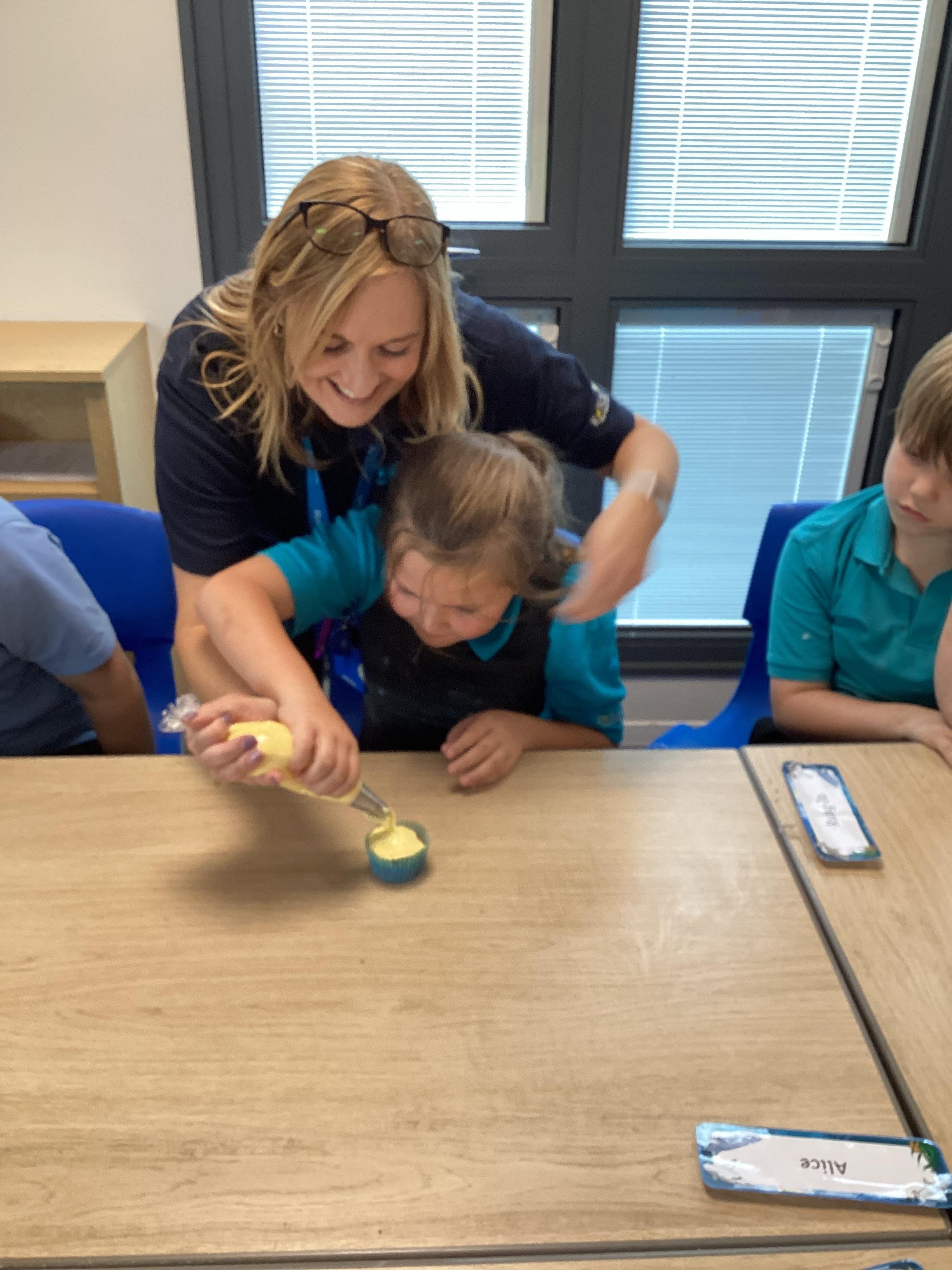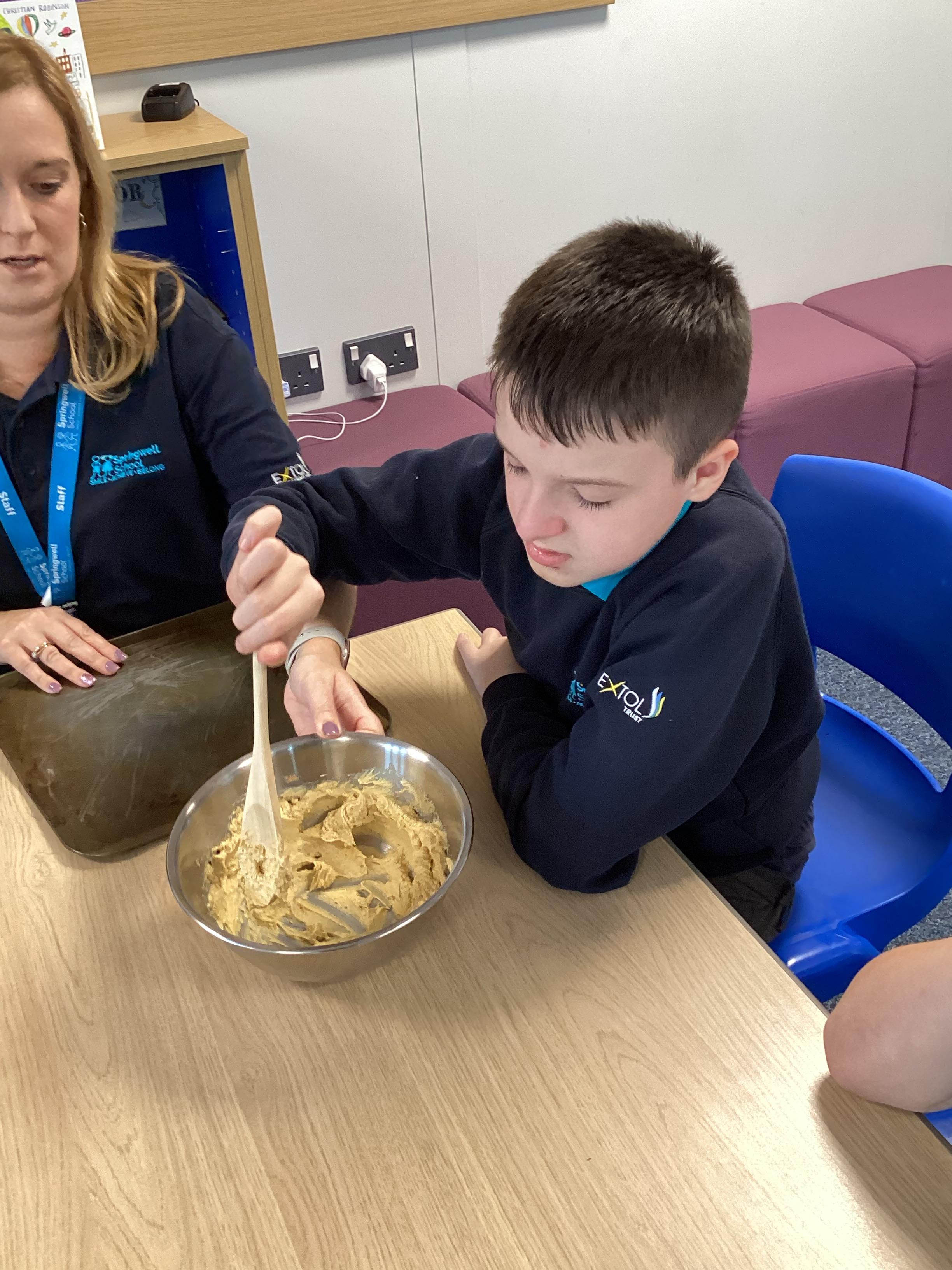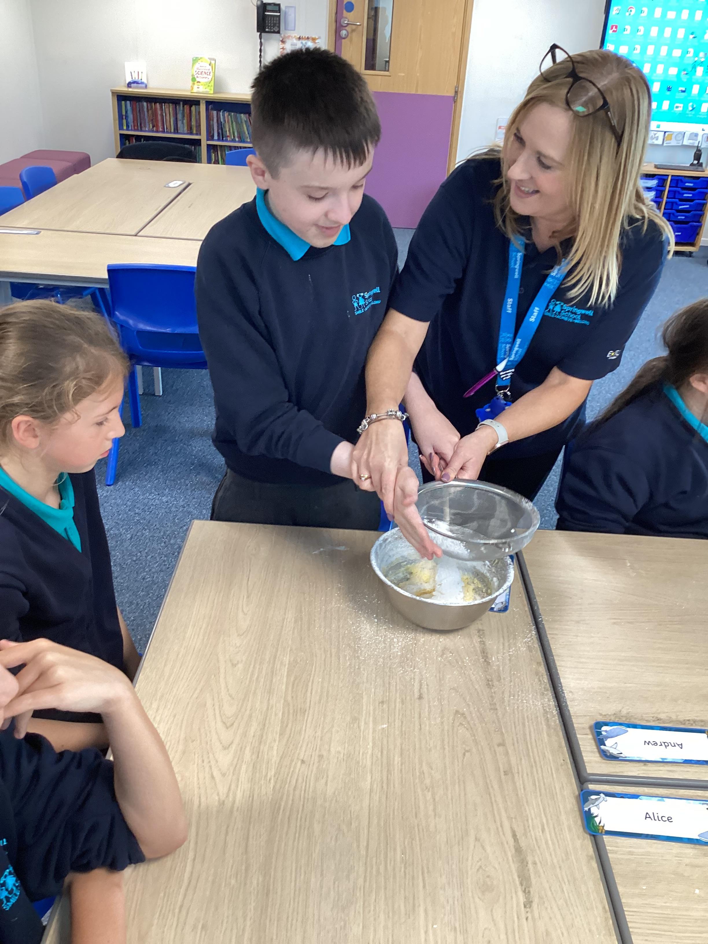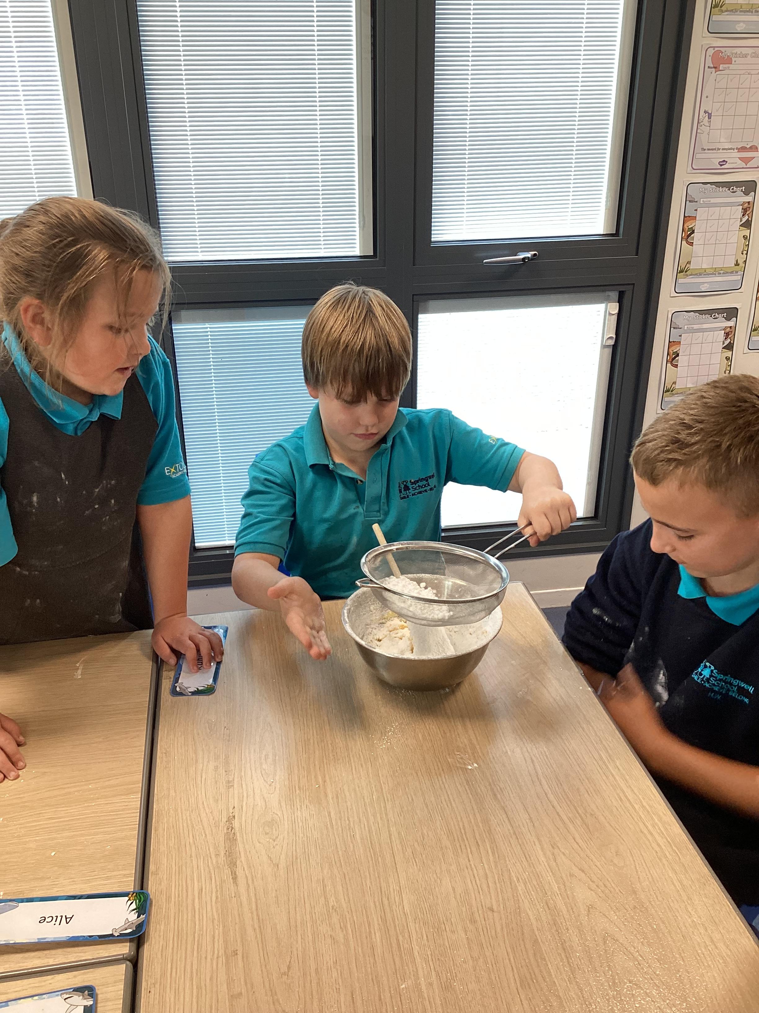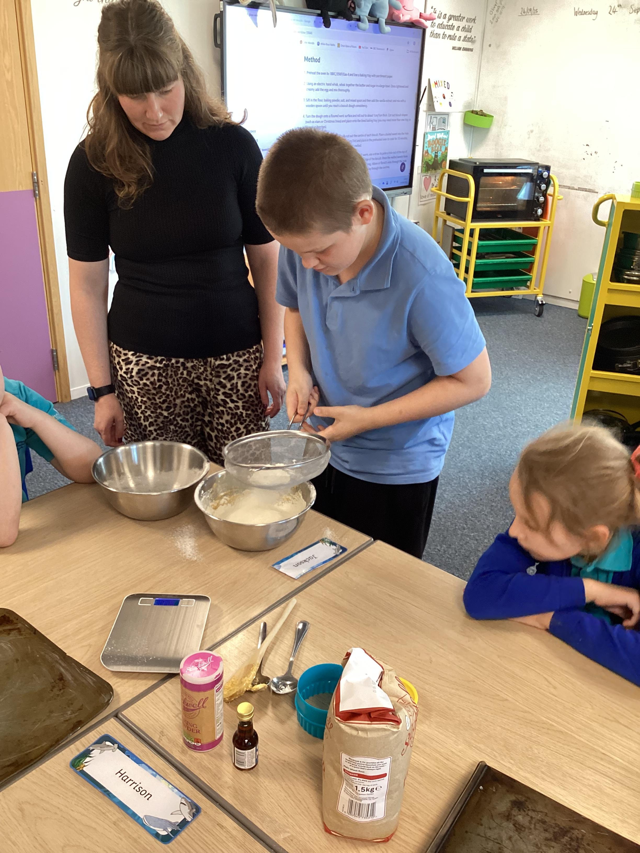 Wednesday 1st October 2025 - In Cookery today, we made some cakes. We took our time measuring out the ingredients. We then took turns to mix the ingredients and put the mixture into the cake cases.