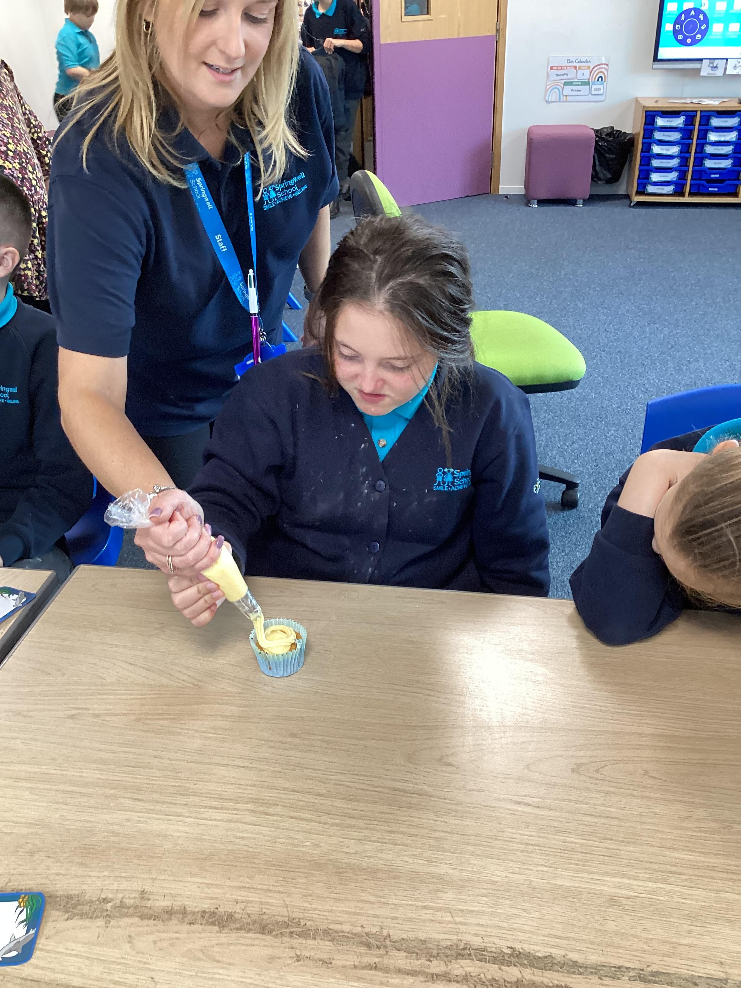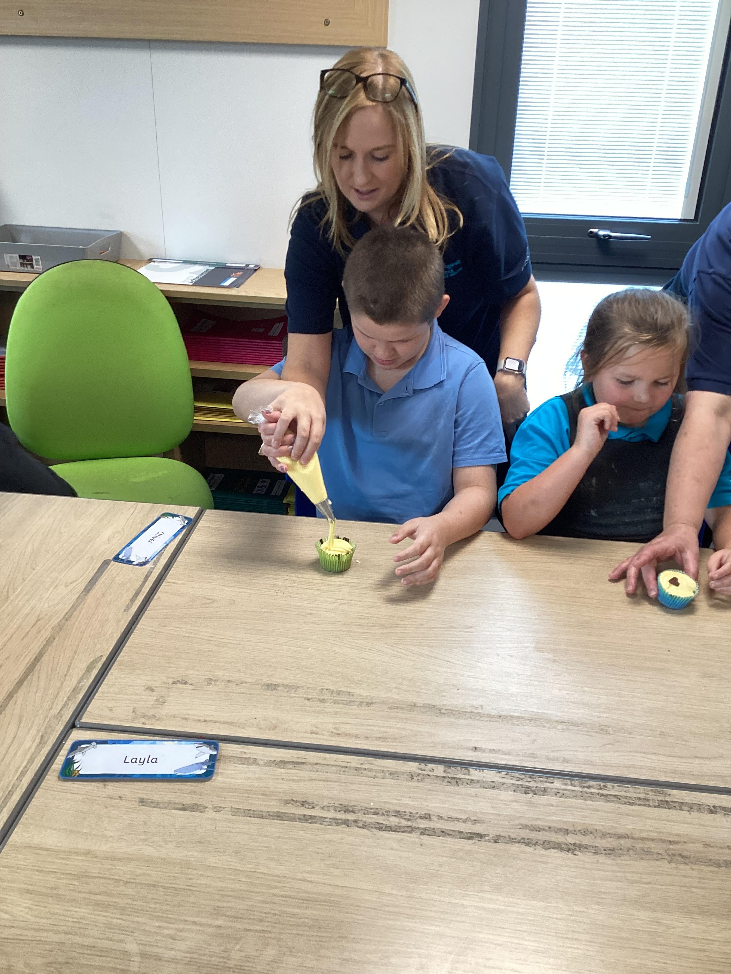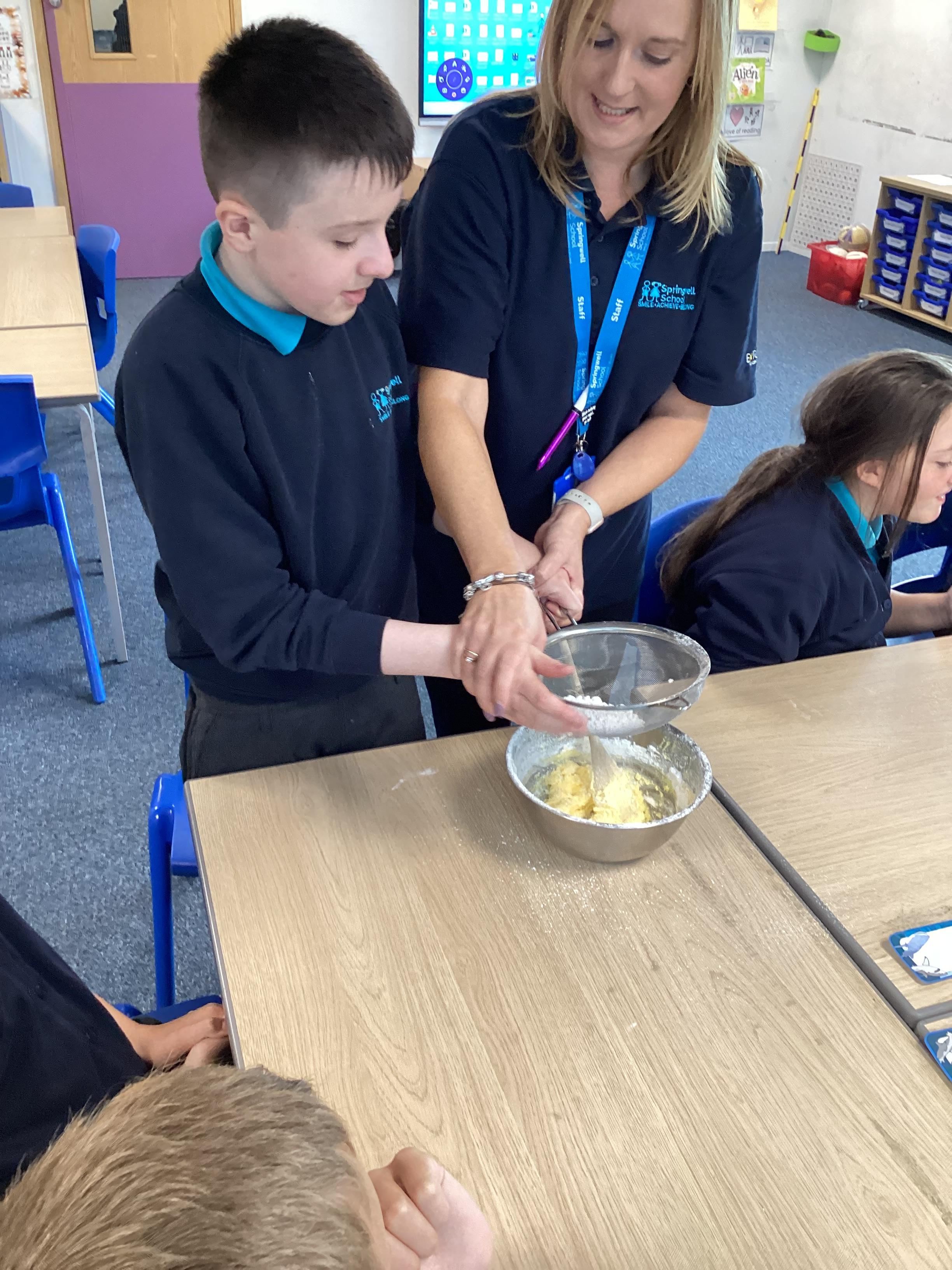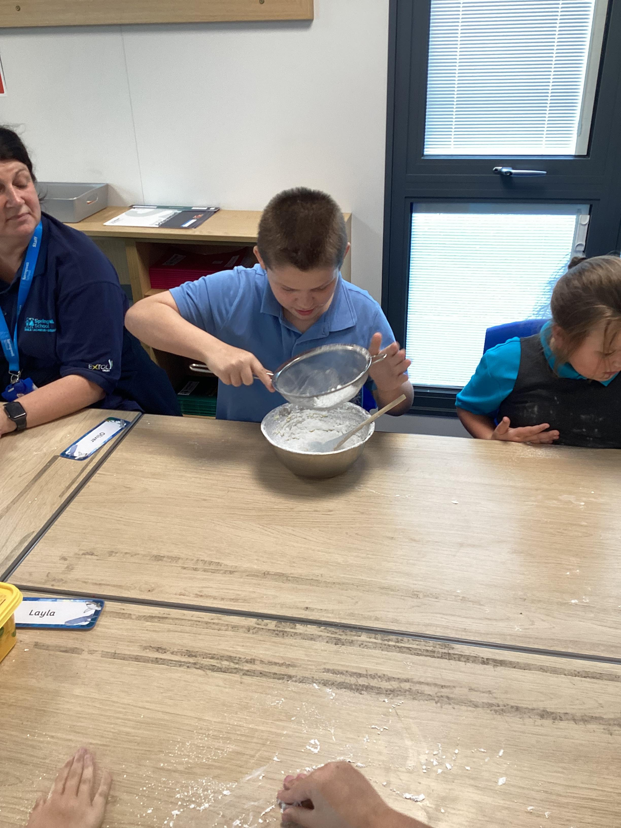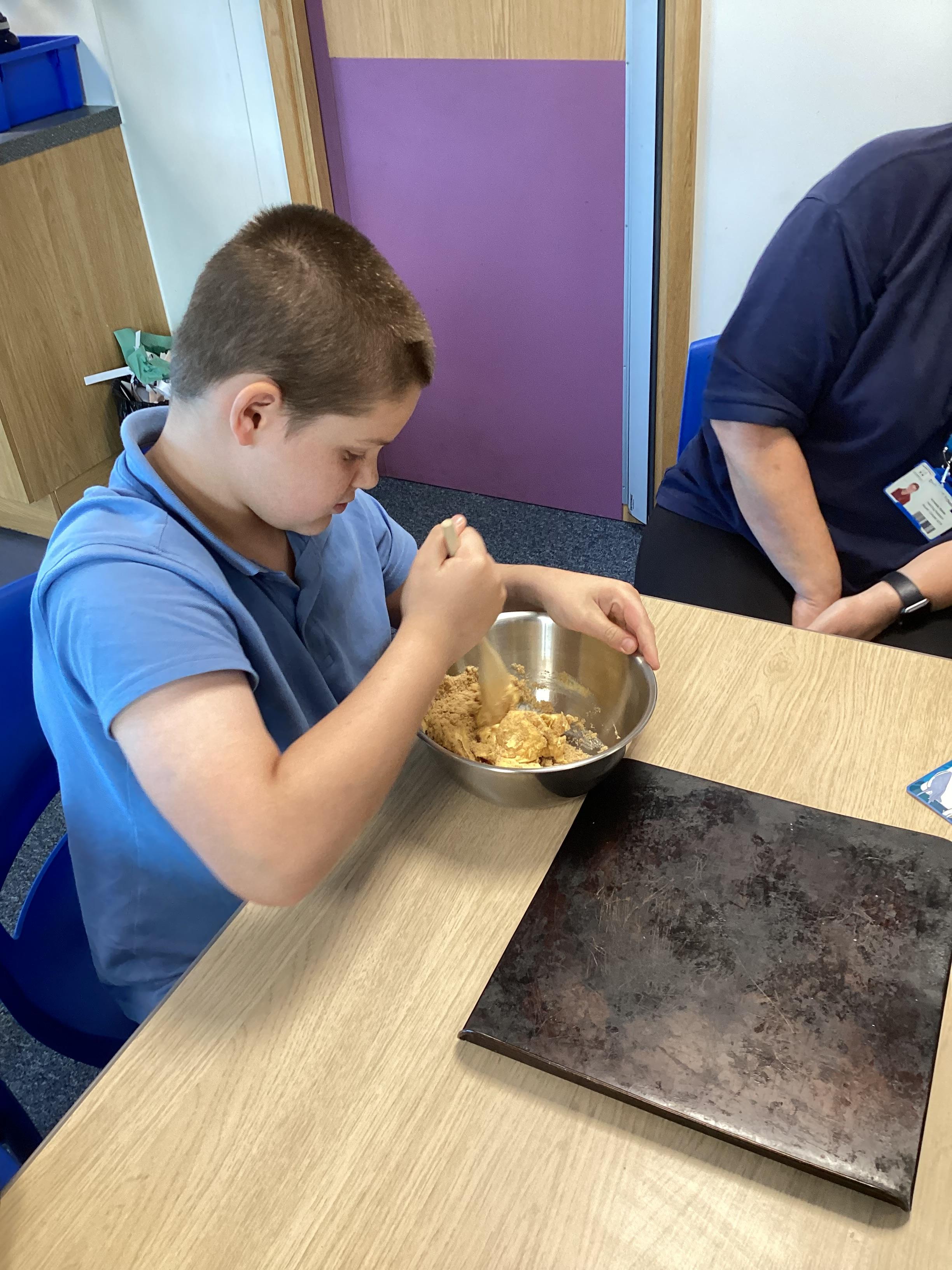Wednesday 1st October 2025 - In Cookery today, we made some cakes. We took our time measuring out the ingredients. We then took turns to mix the ingredients and put the mixture into the cake cases.