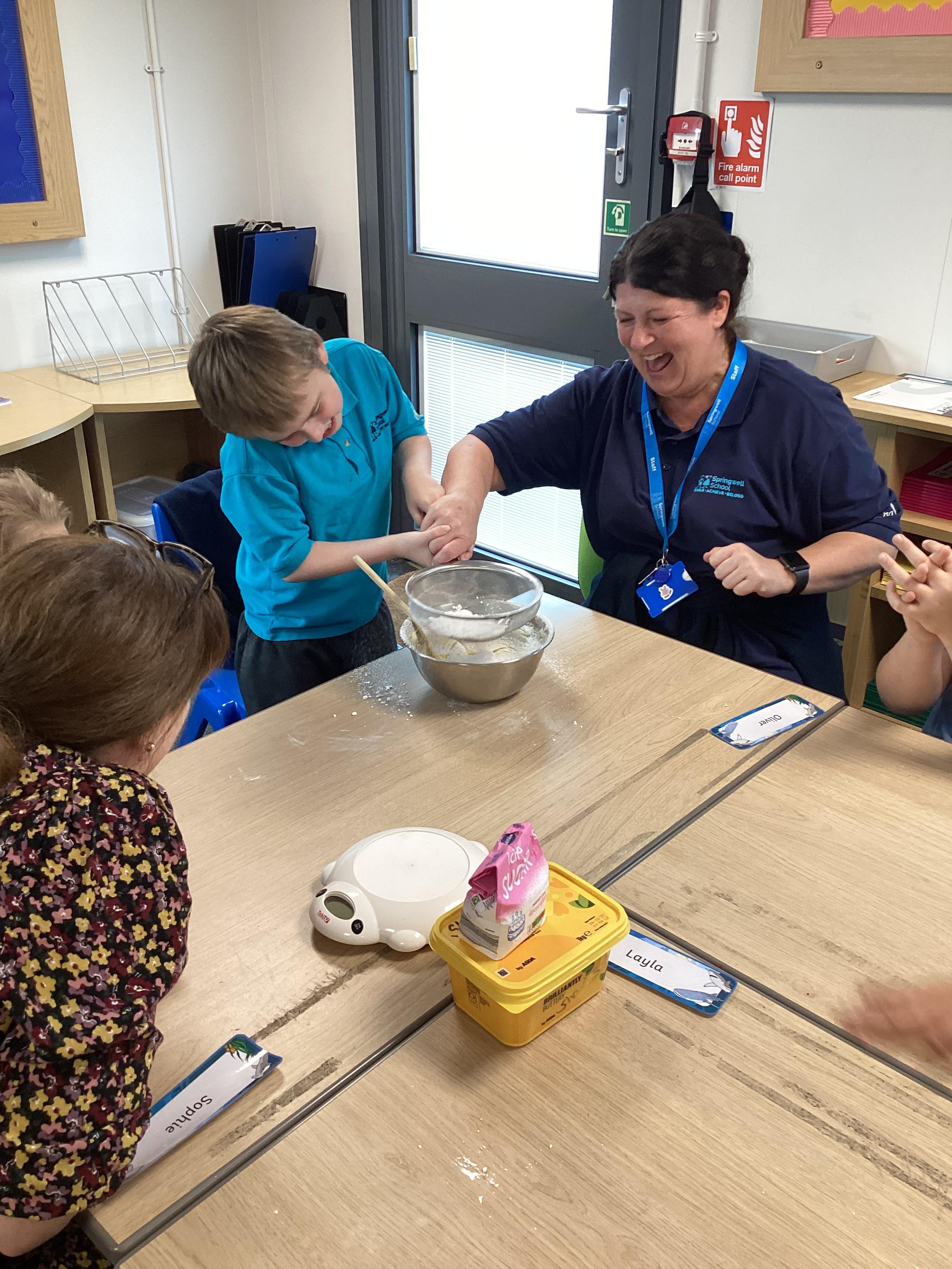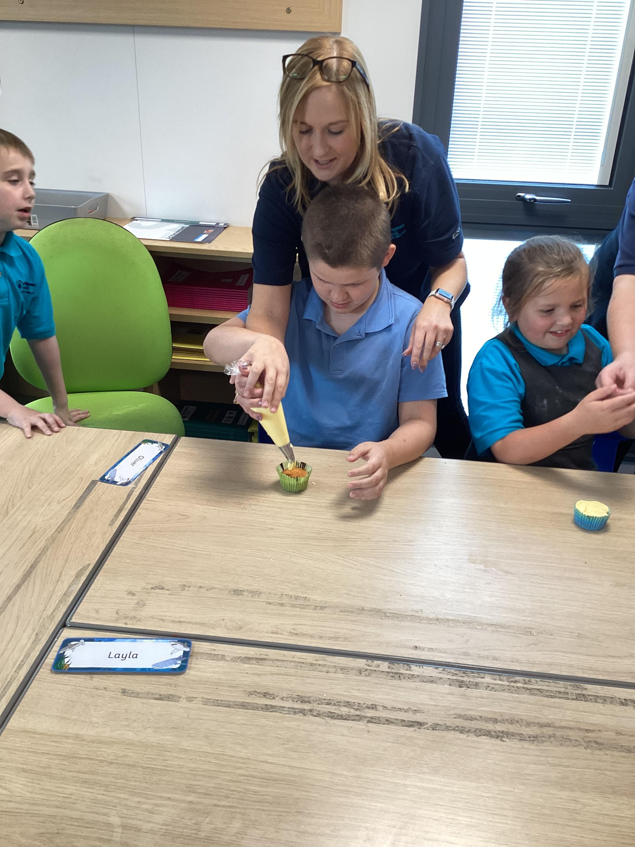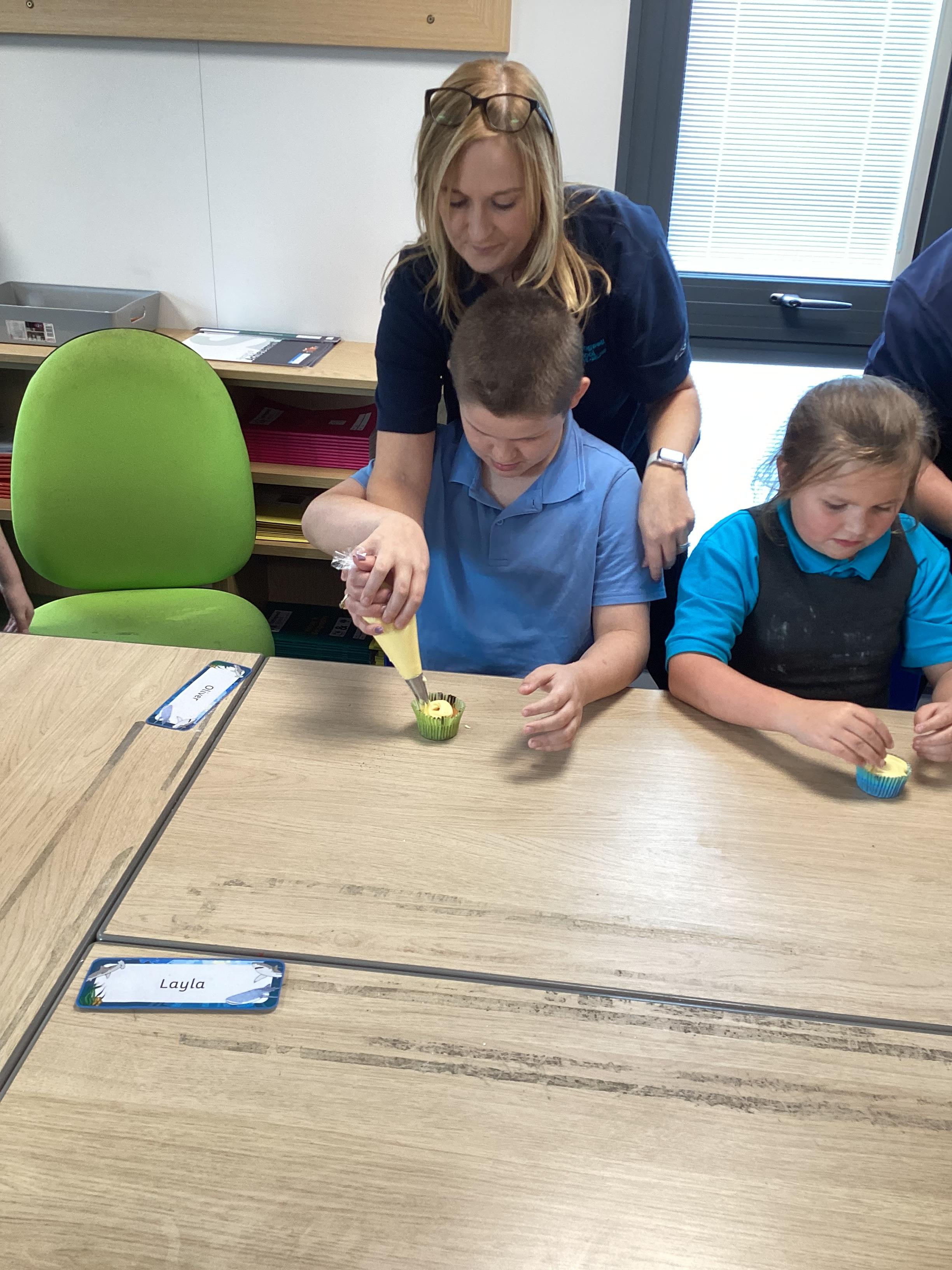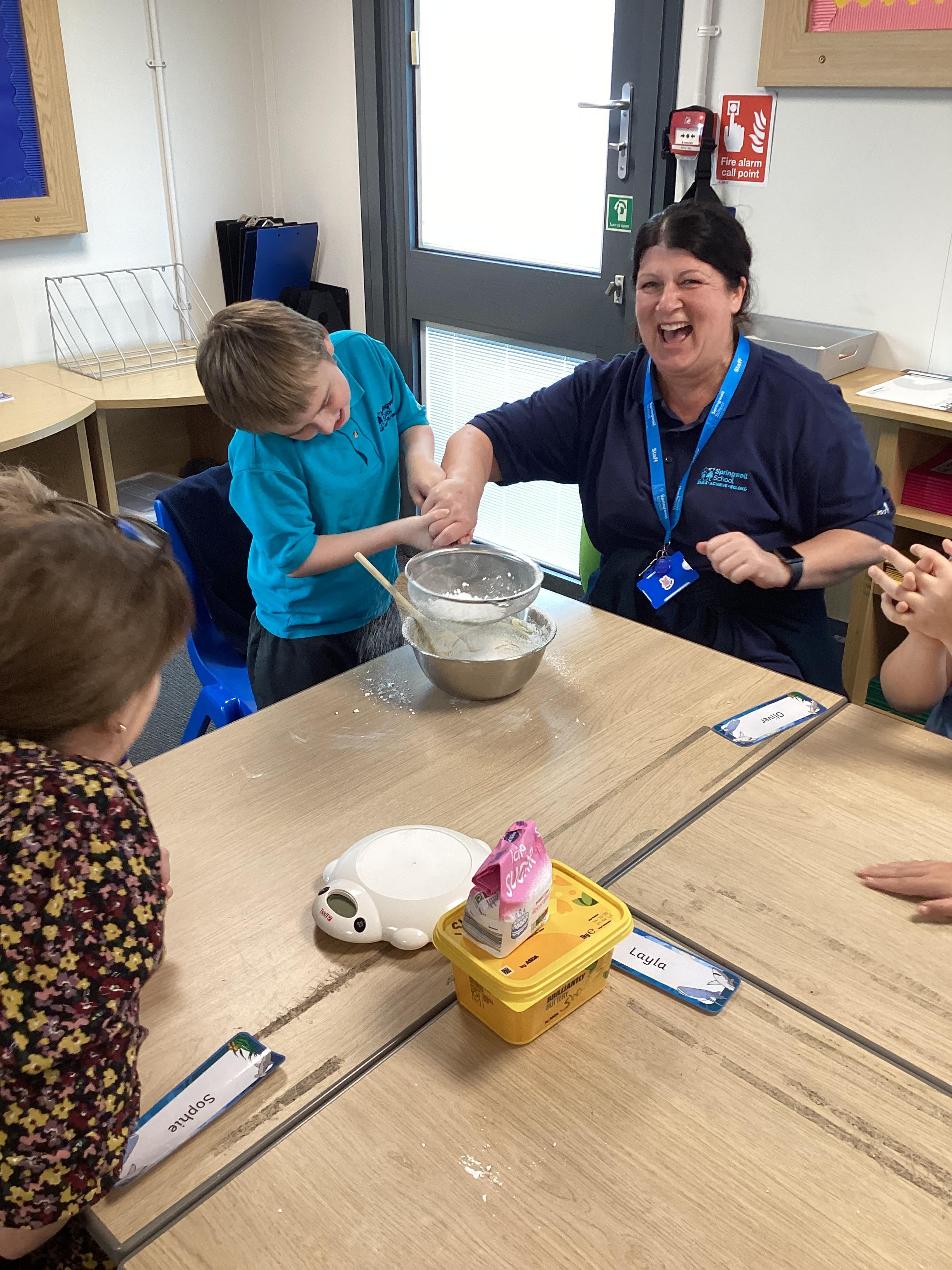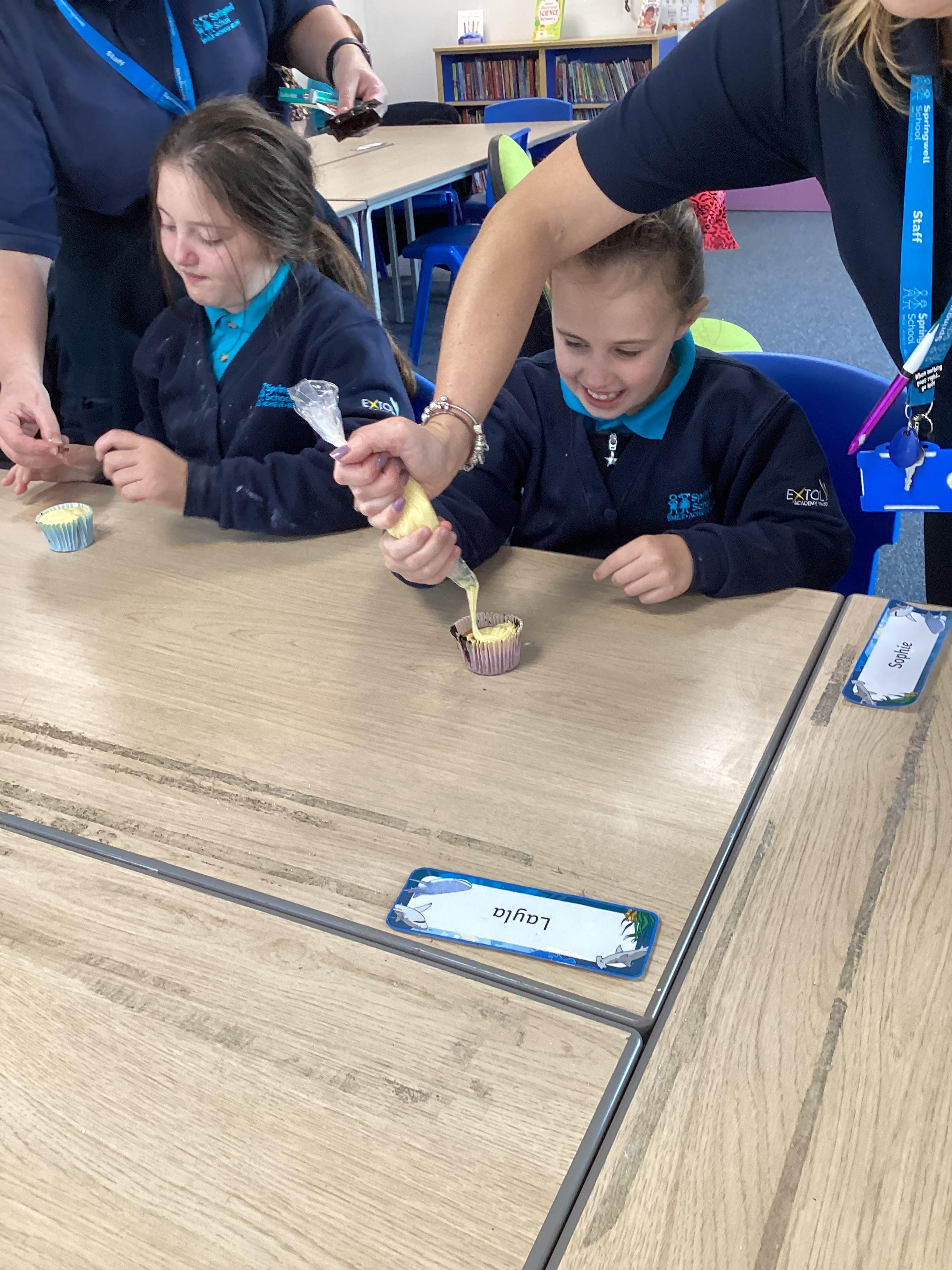 Wednesday 1st October 2025 - In Cookery today, we made some cakes. We took our time measuring out the ingredients. We then took turns to mix the ingredients and put the mixture into the cake cases.