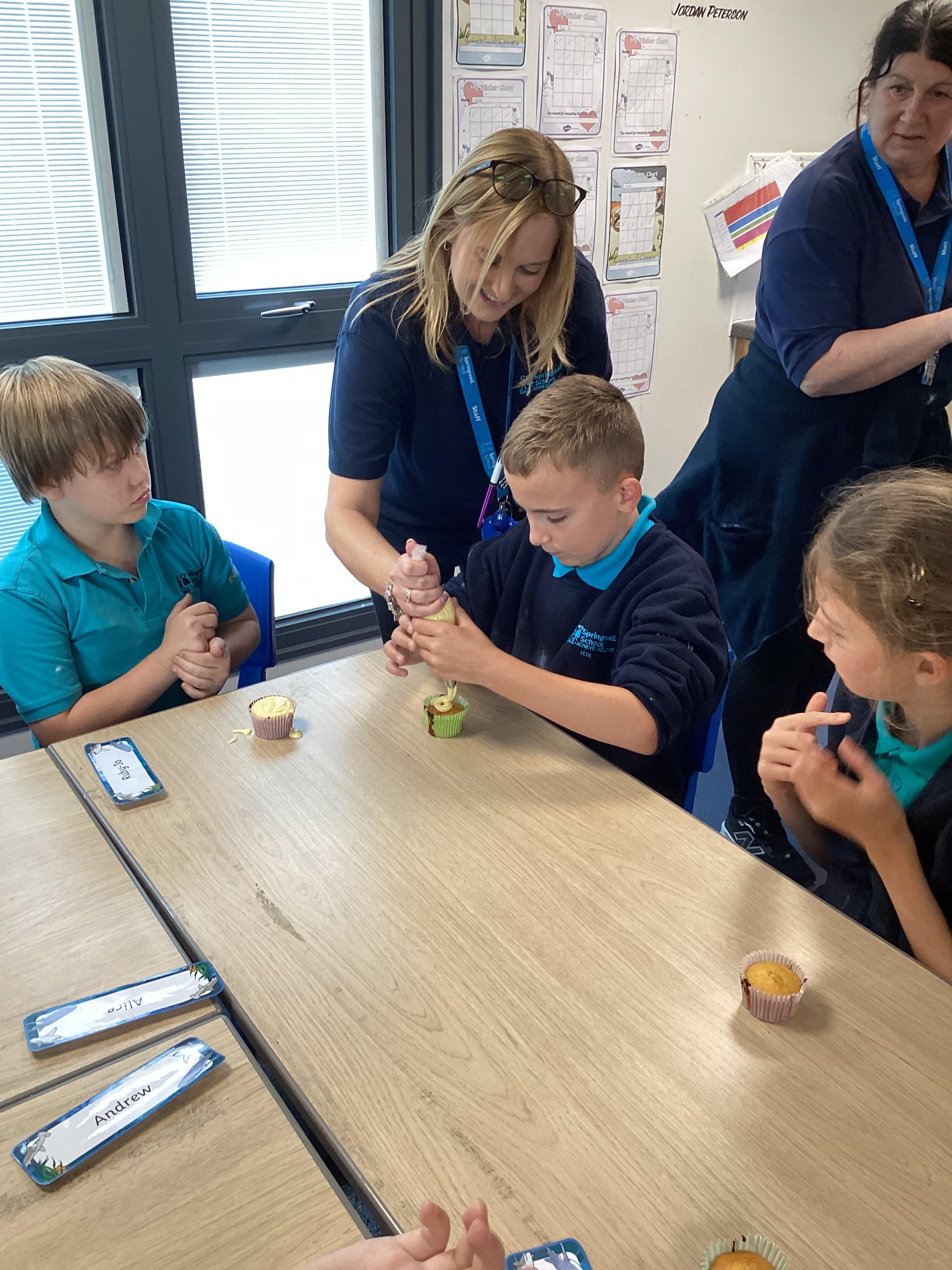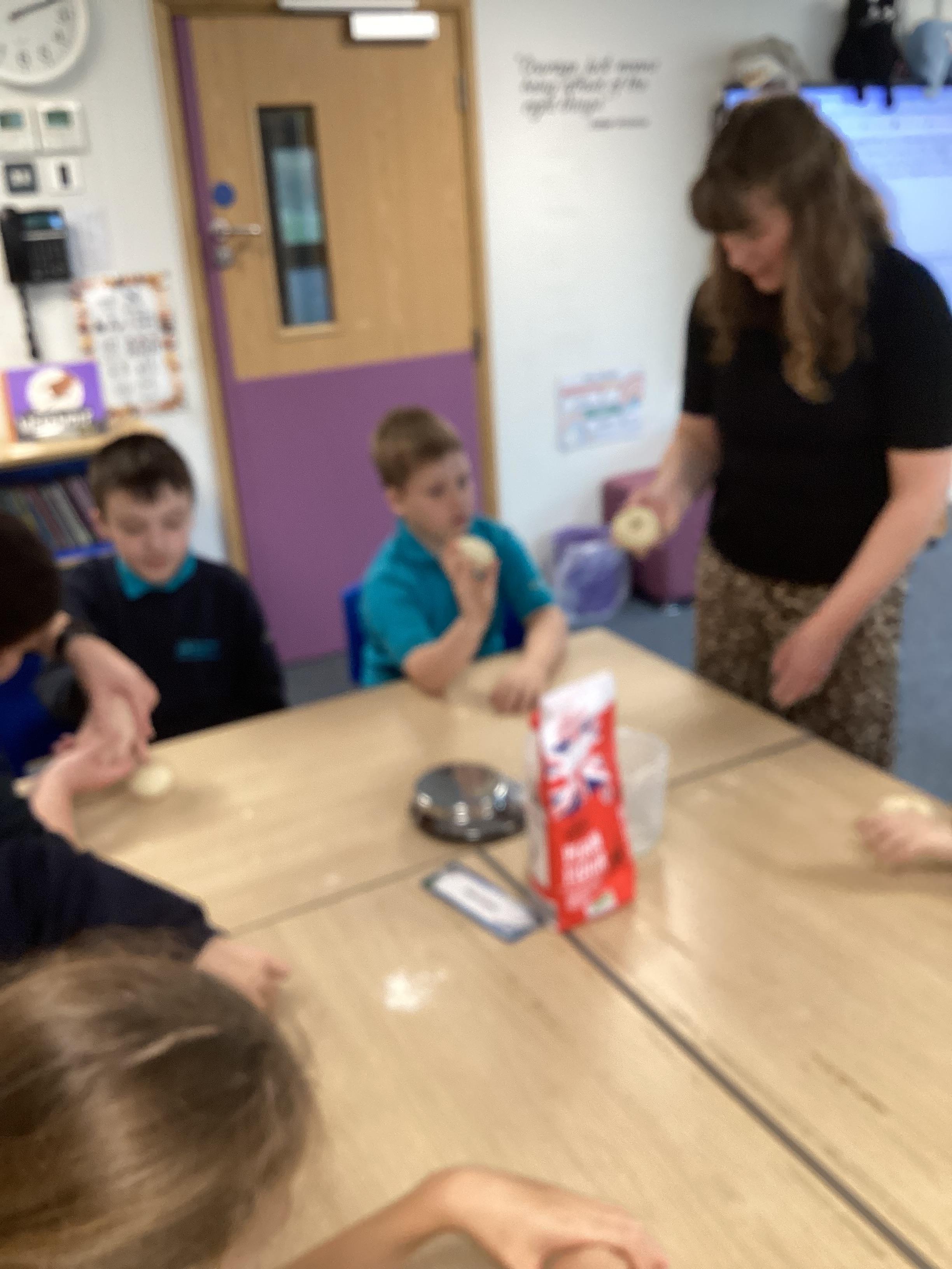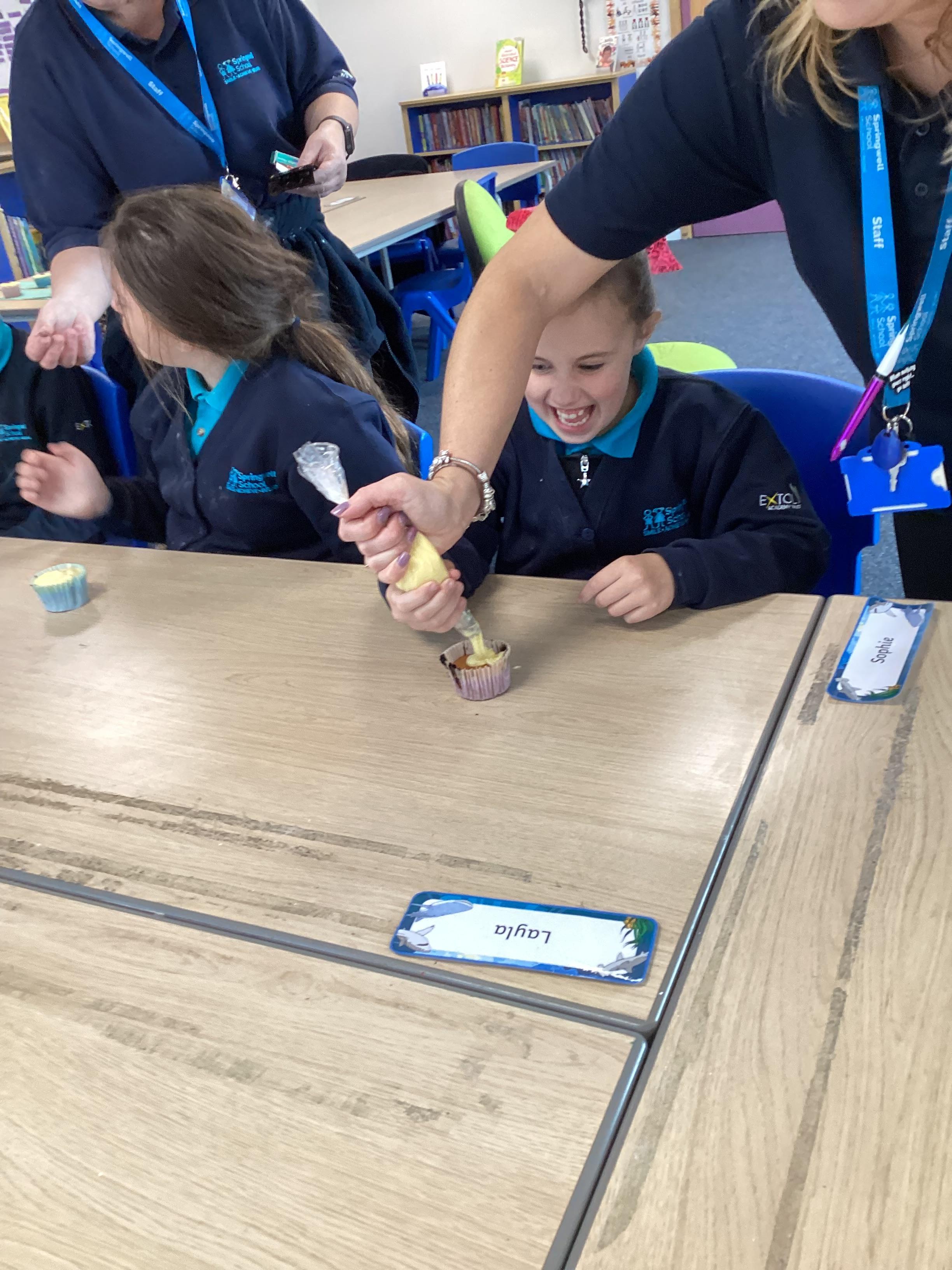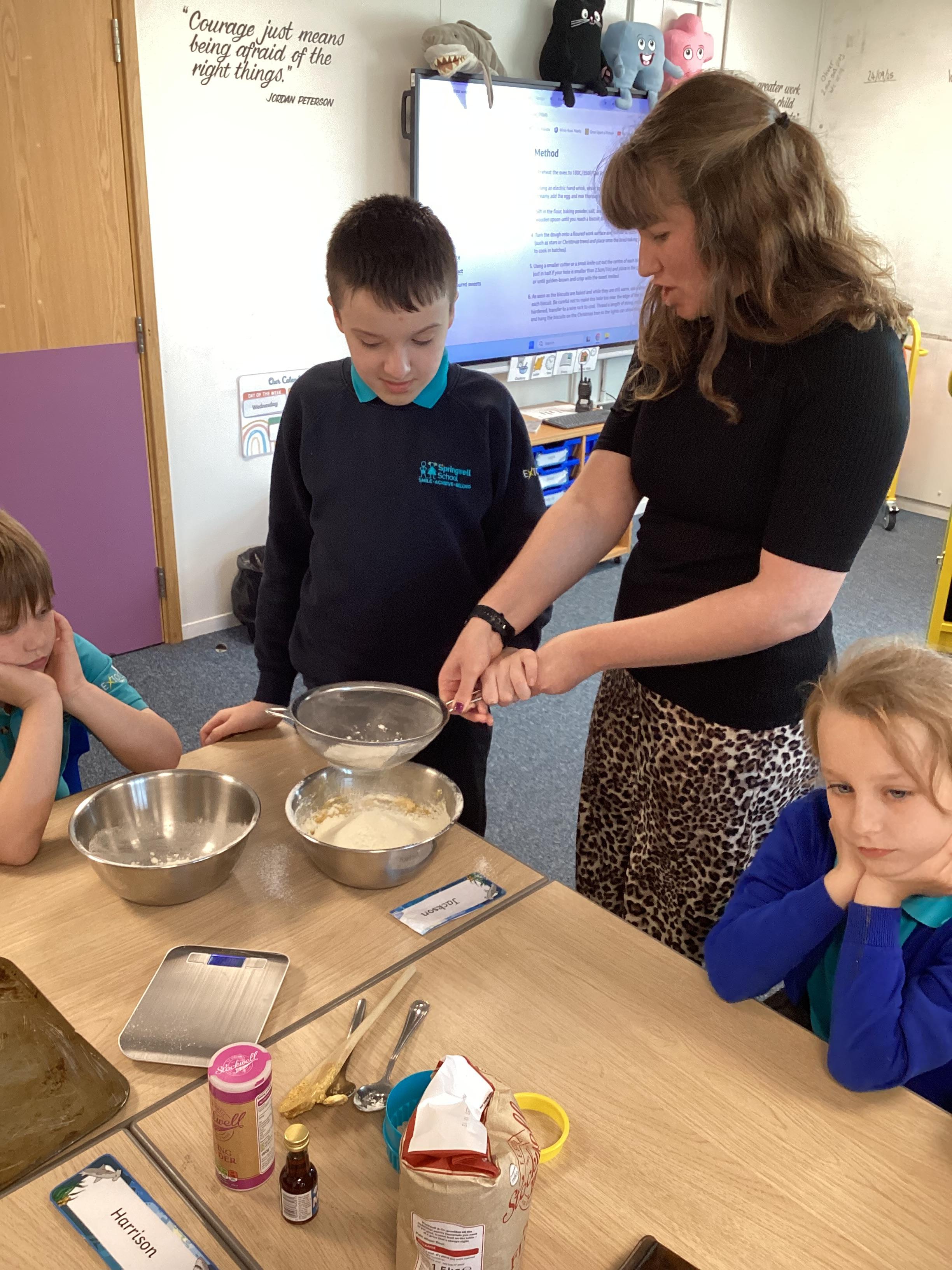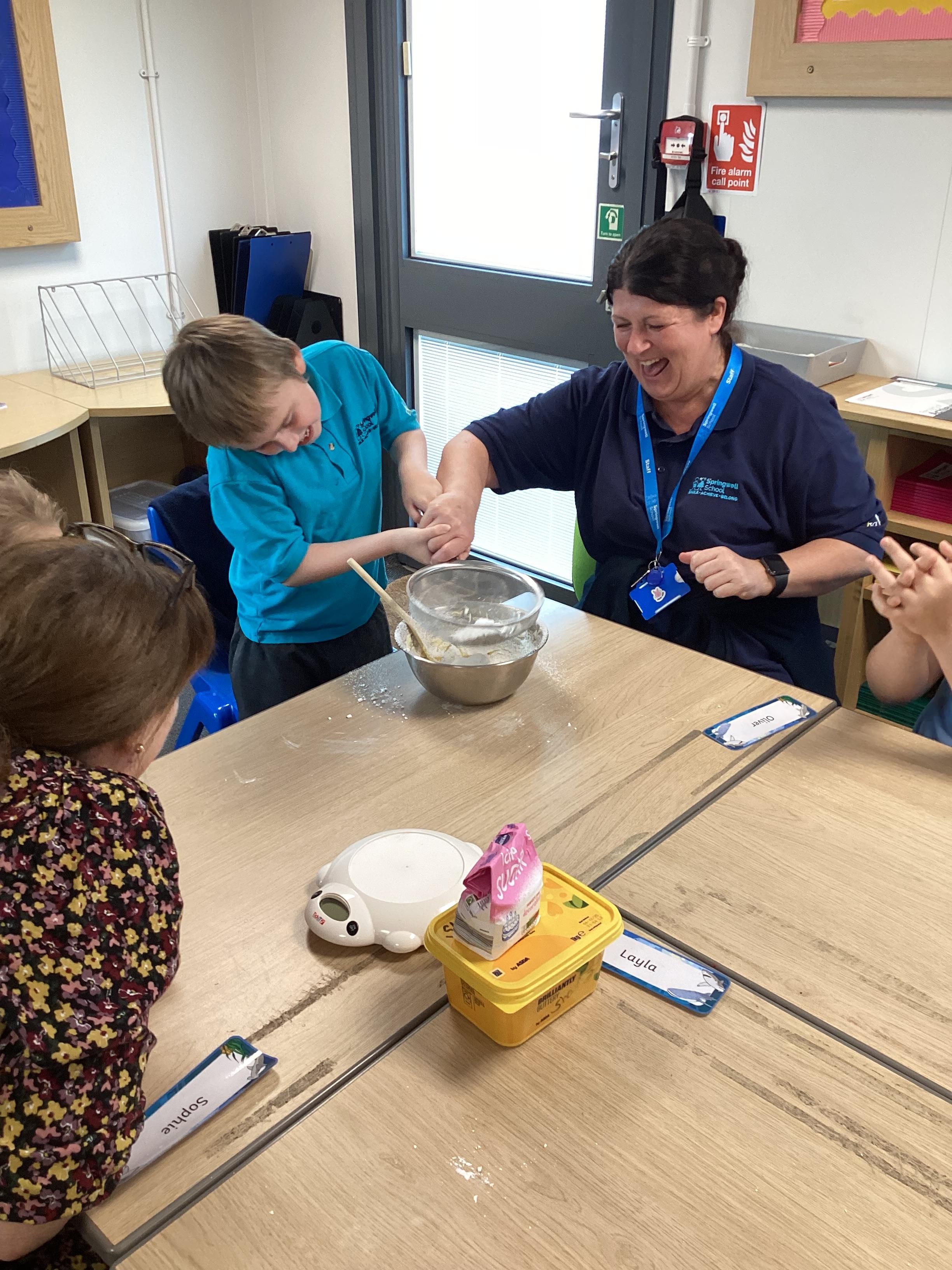 Wednesday 1st October 2025 - In Cookery today, we made some cakes. We took our time measuring out the ingredients. We then took turns to mix the ingredients and put the mixture into the cake cases.