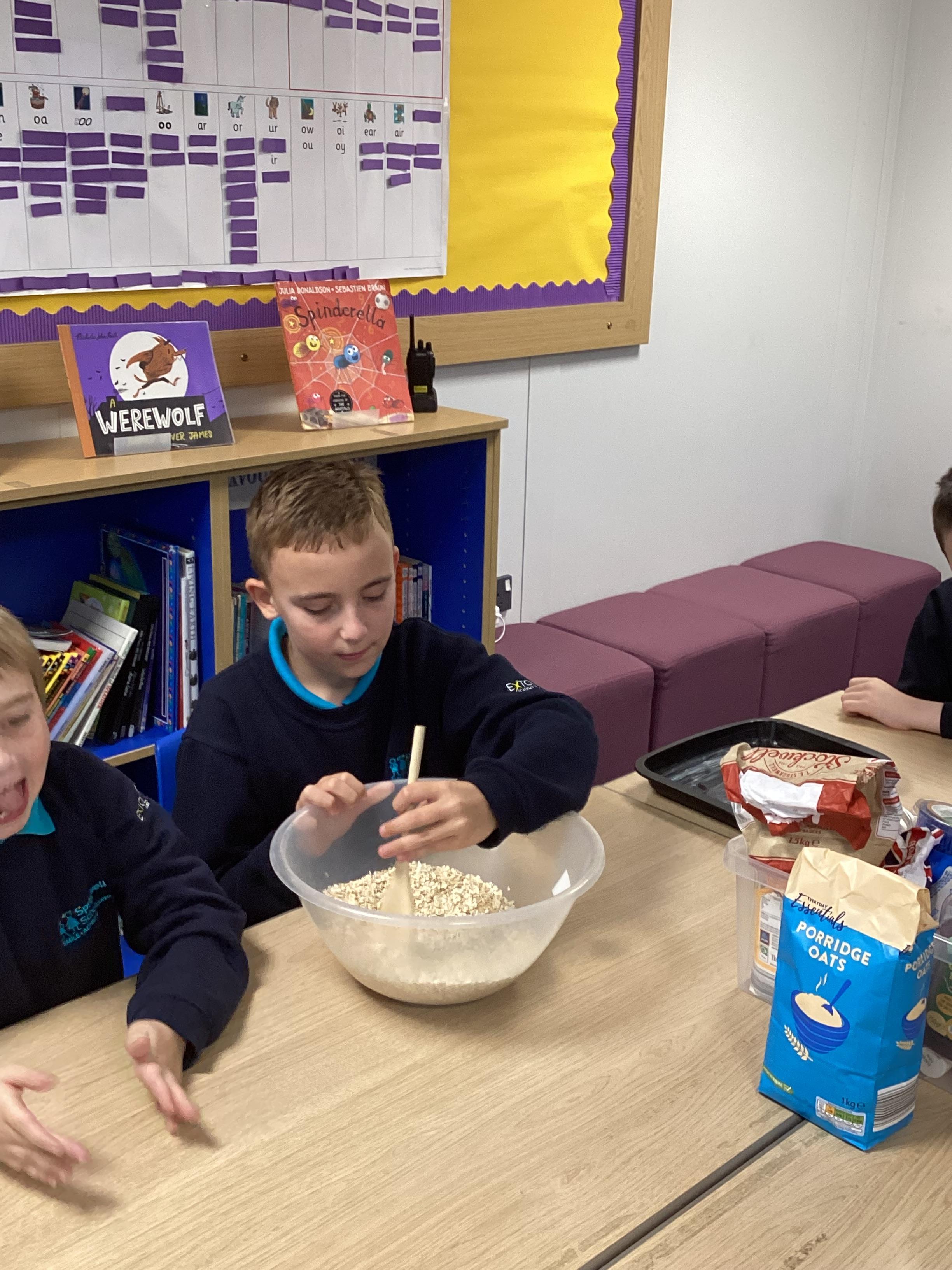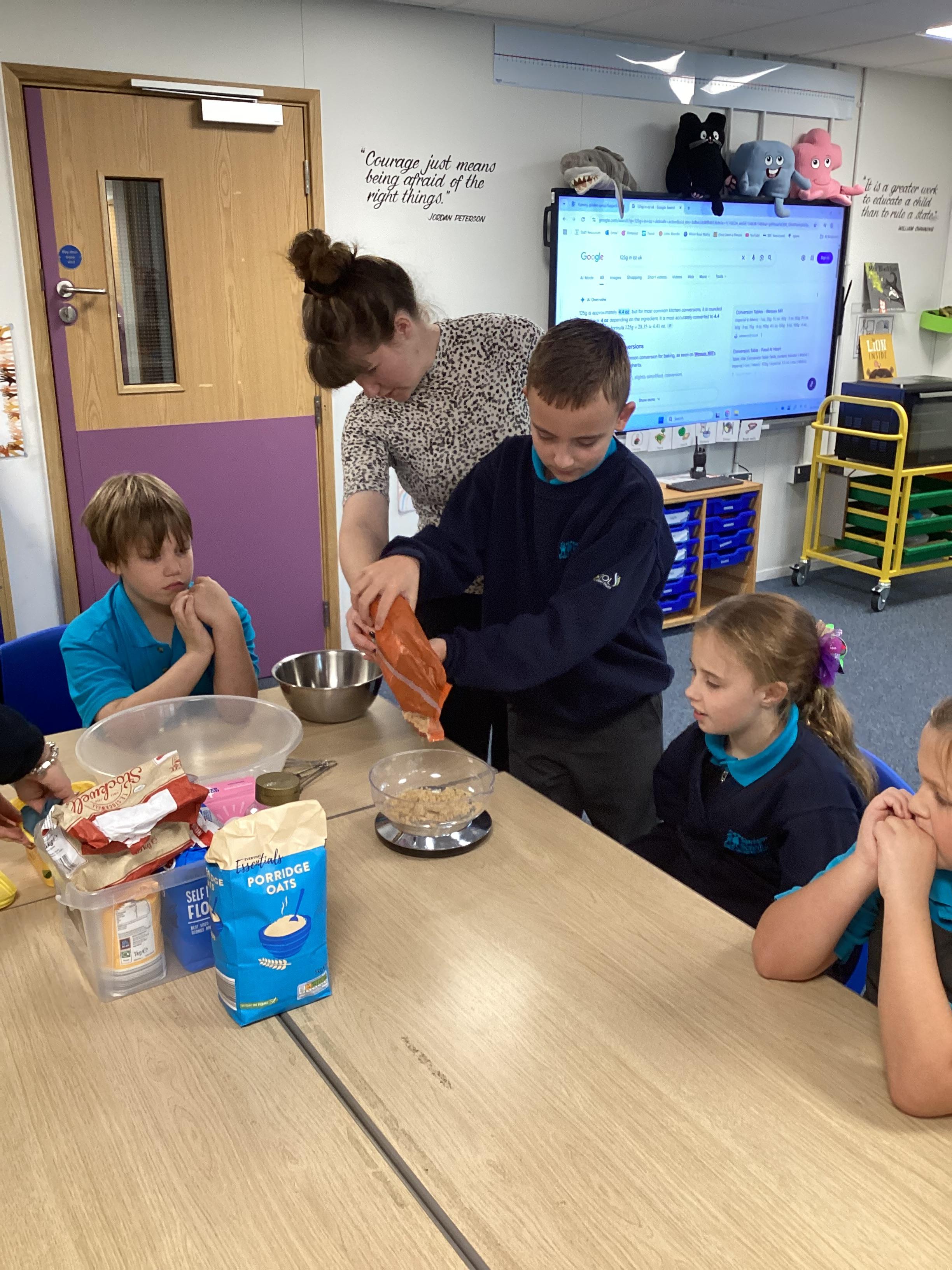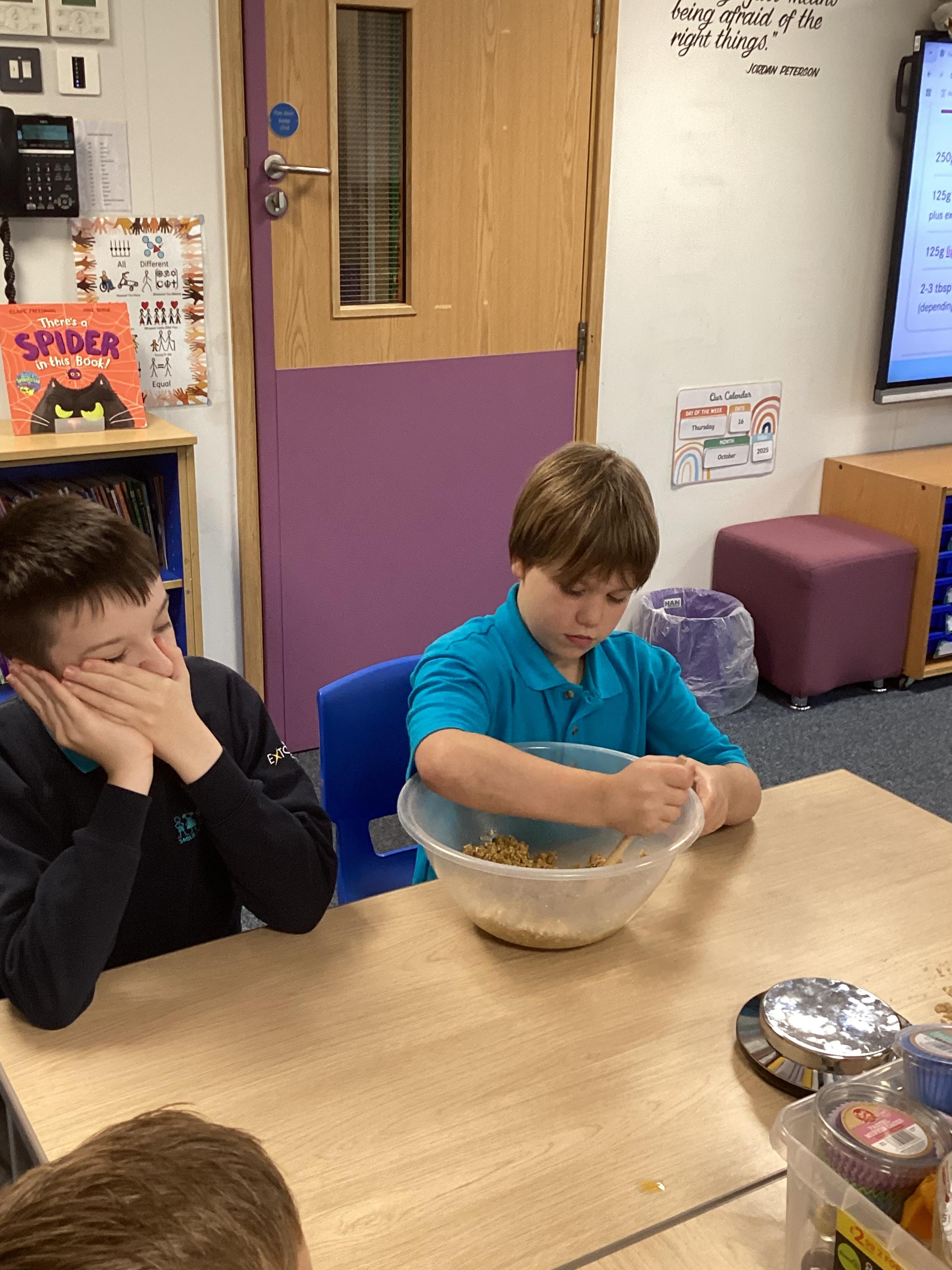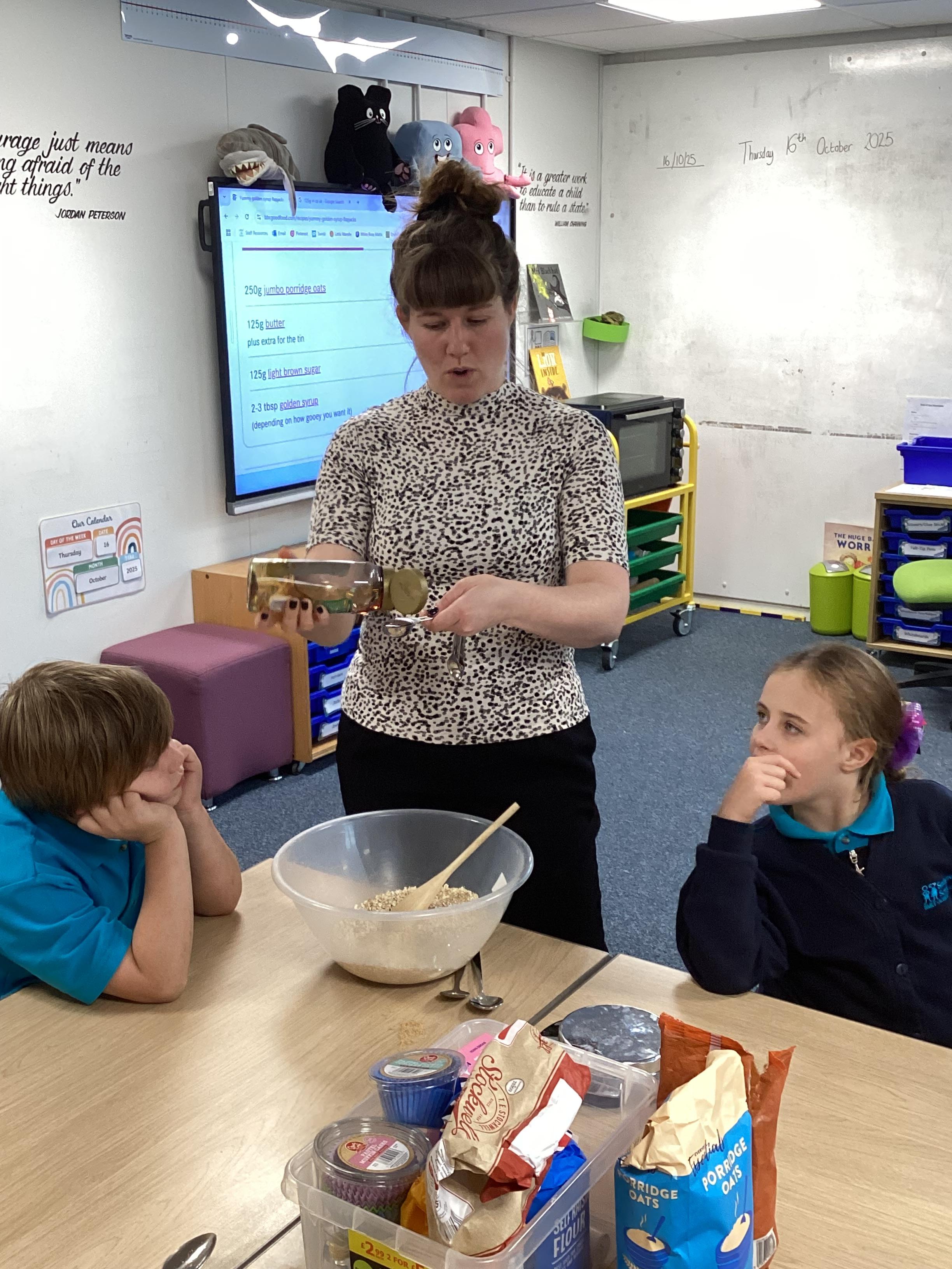 Thursday 16th October 2025 - In Cookery today, we made flapjacks. We measured out and mixed the ingredients before adding to tray and baking. They were yummy!