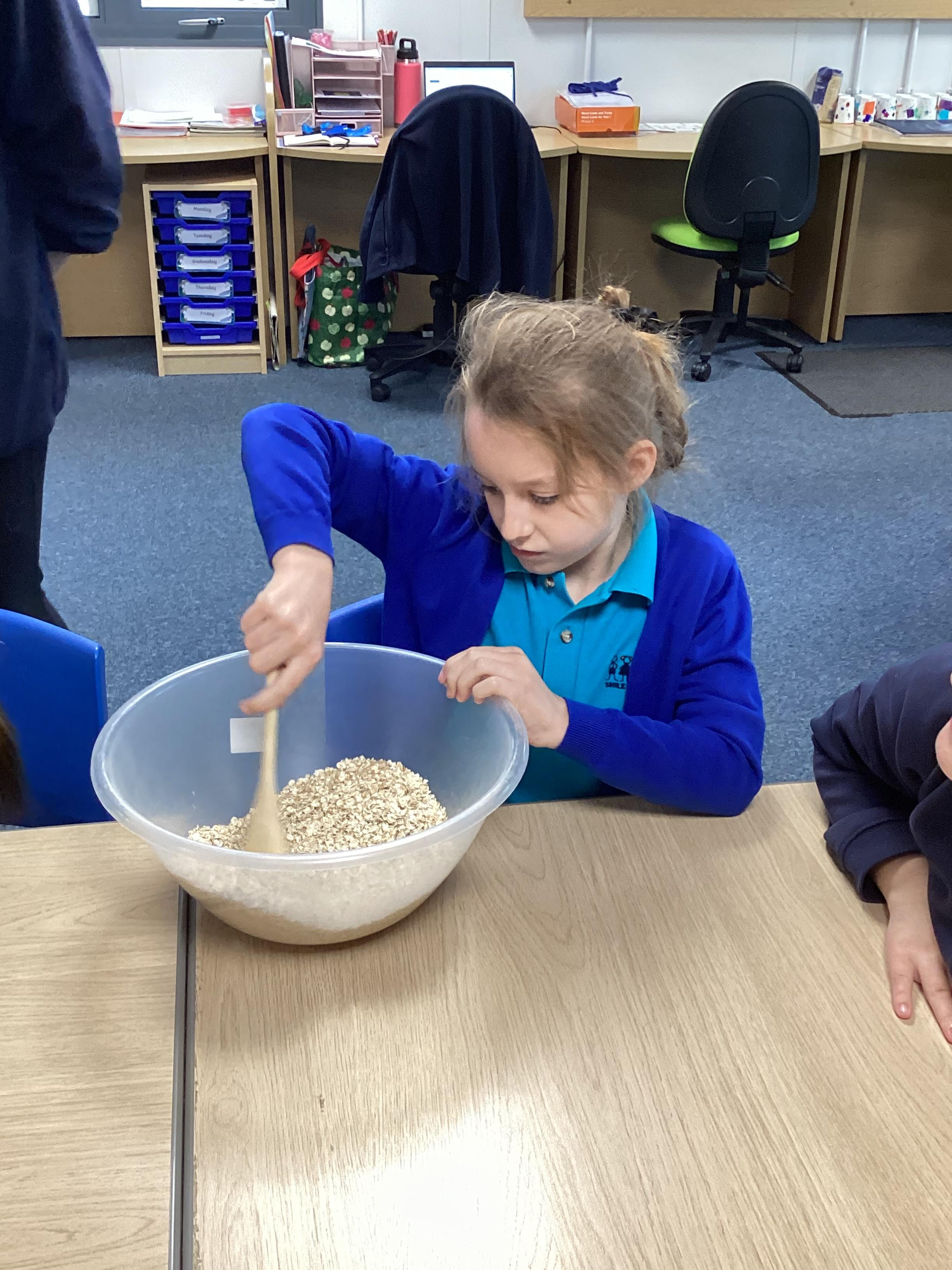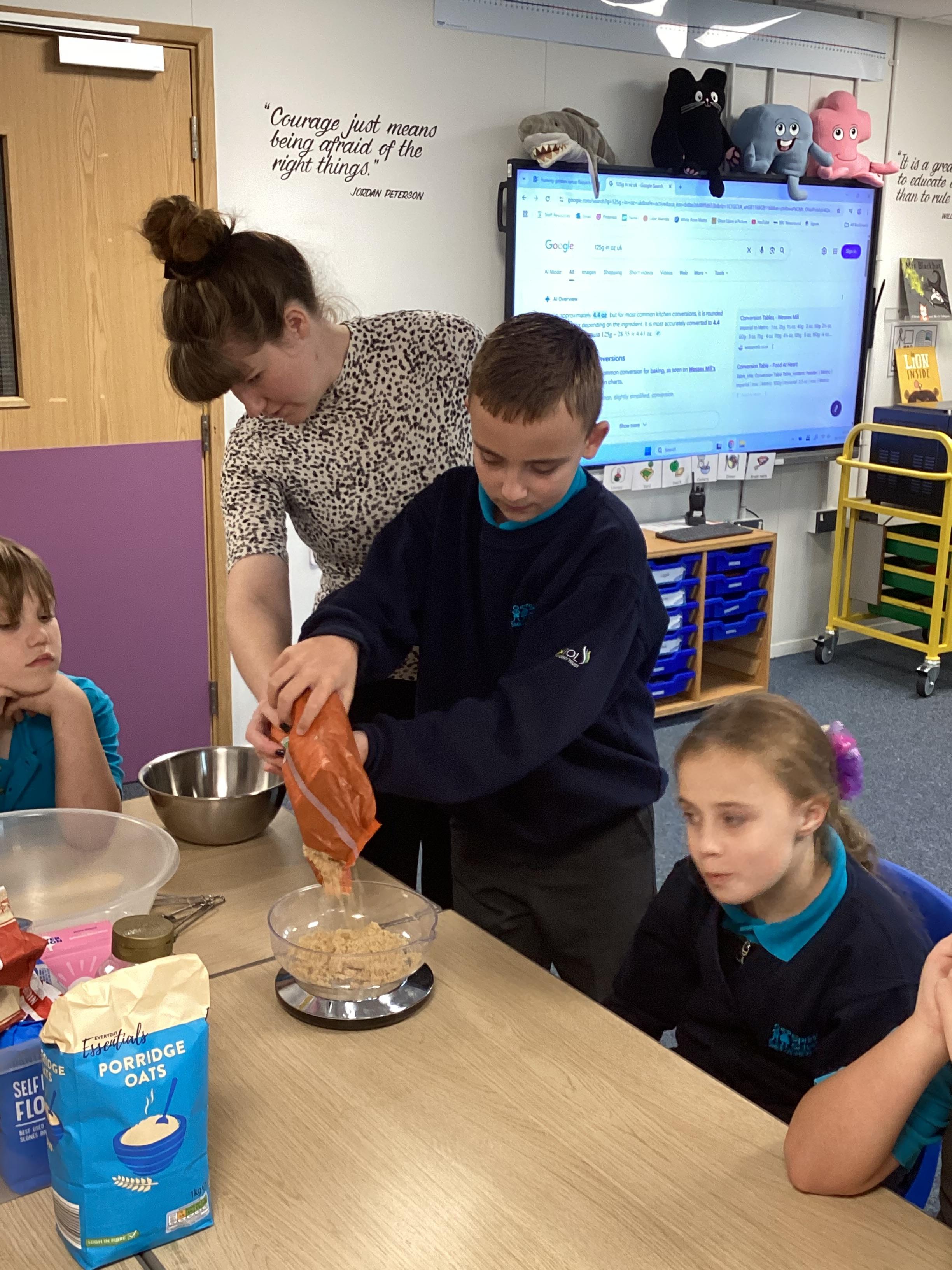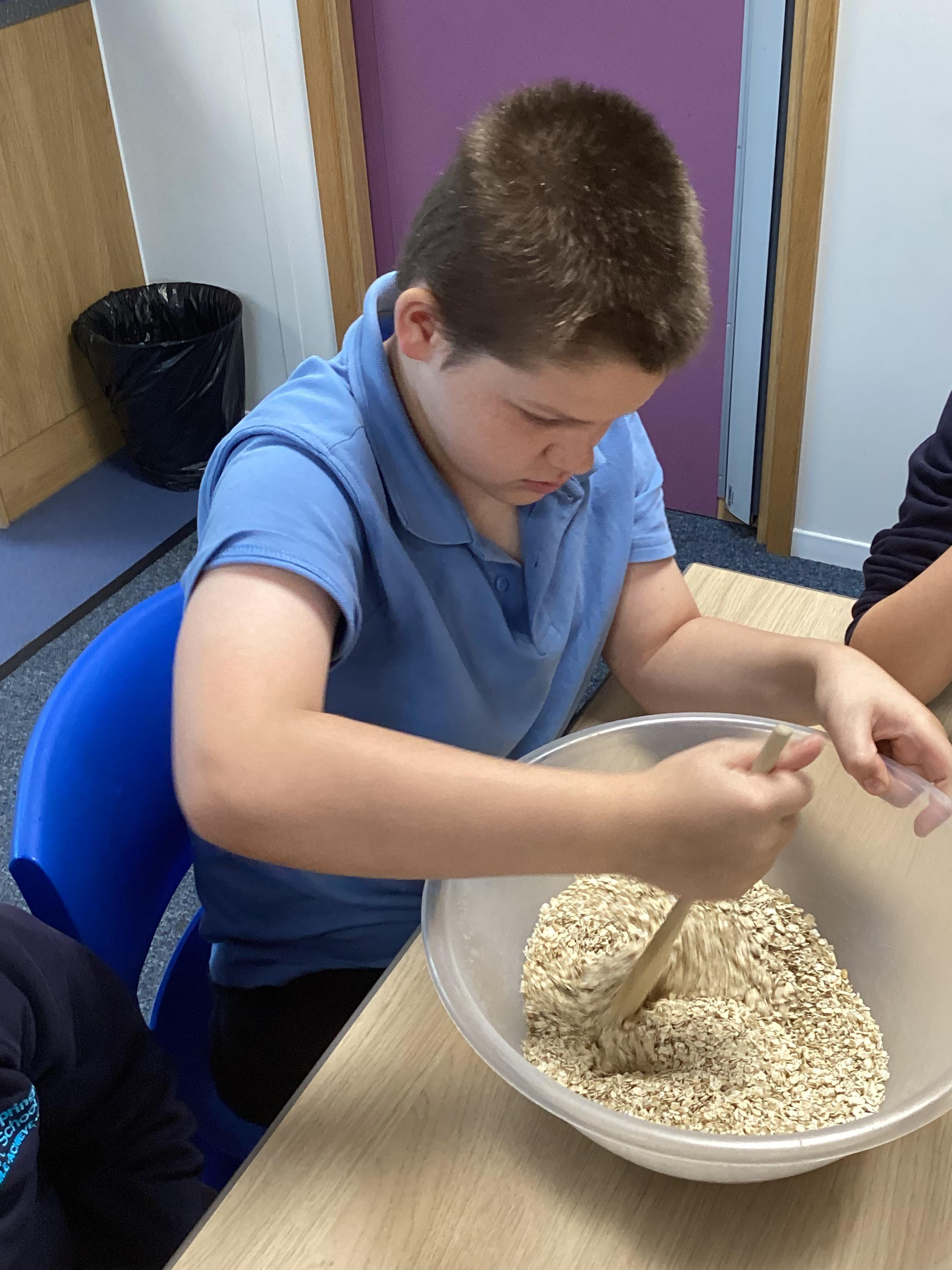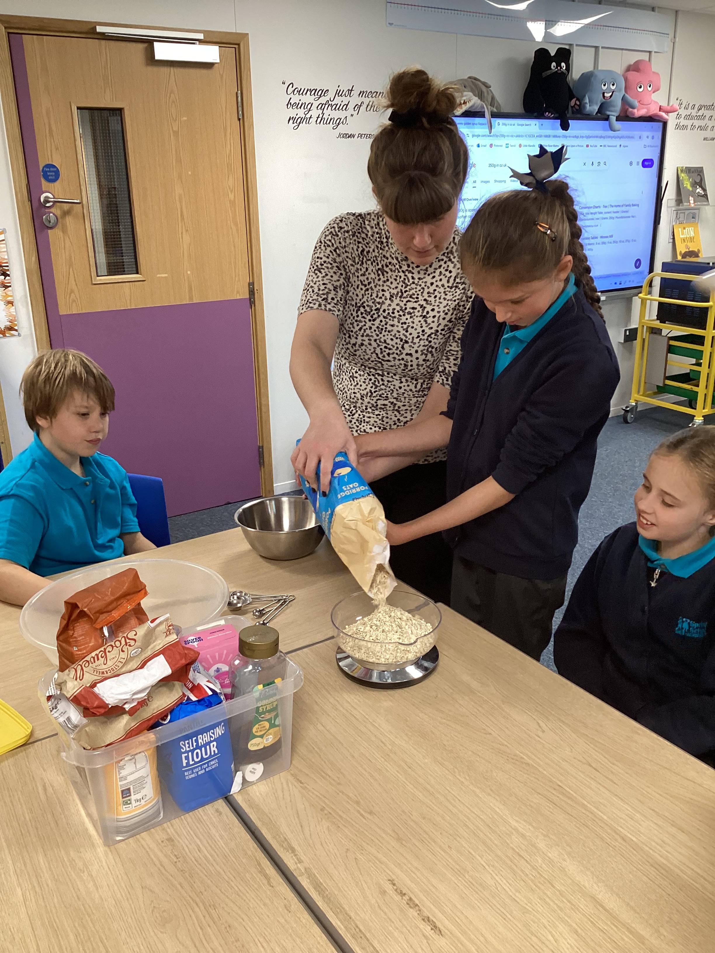 Thursday 16th October 2025 - In Cookery today, we made flapjacks. We measured out and mixed the ingredients before adding to tray and baking. They were yummy!