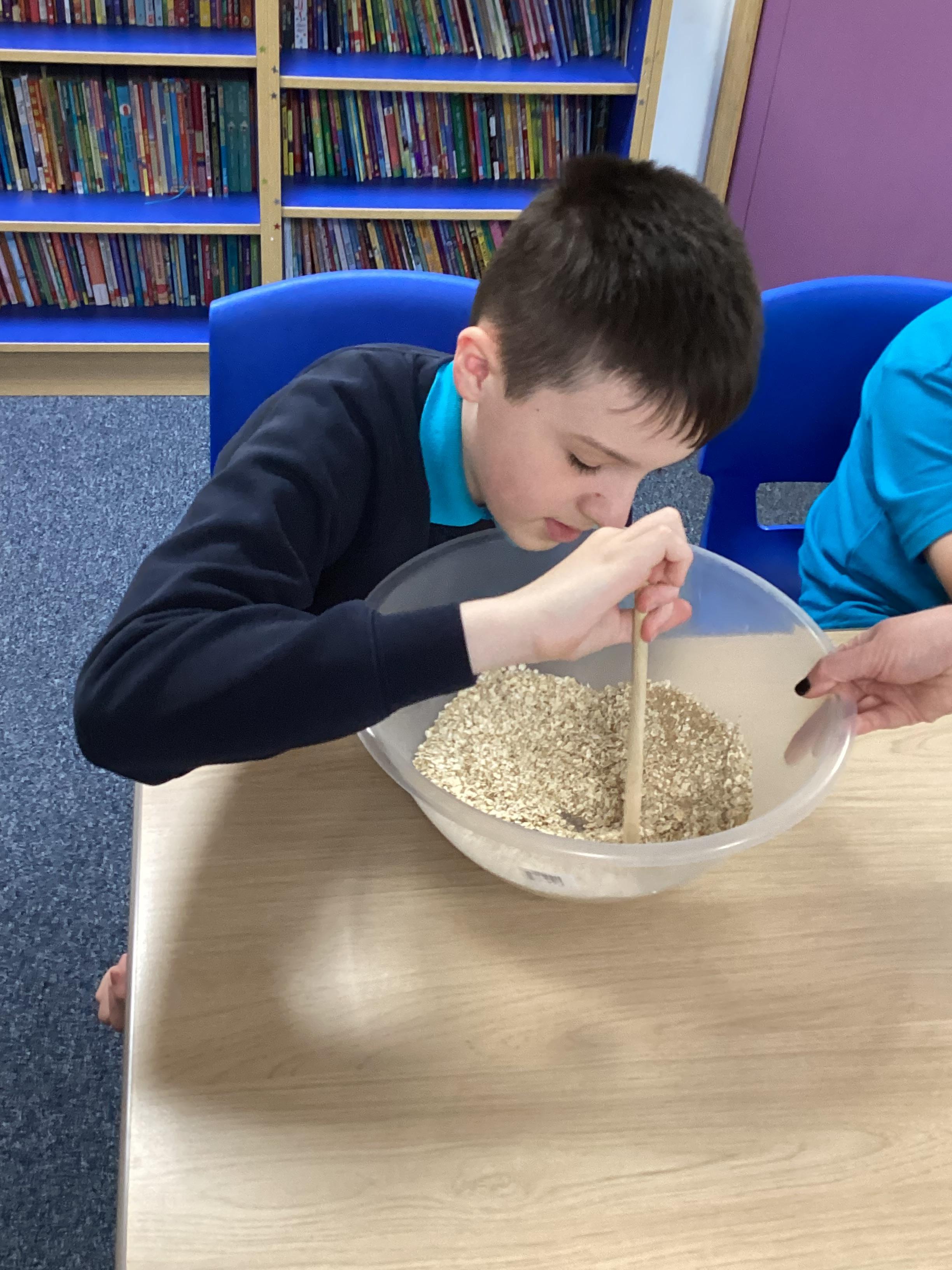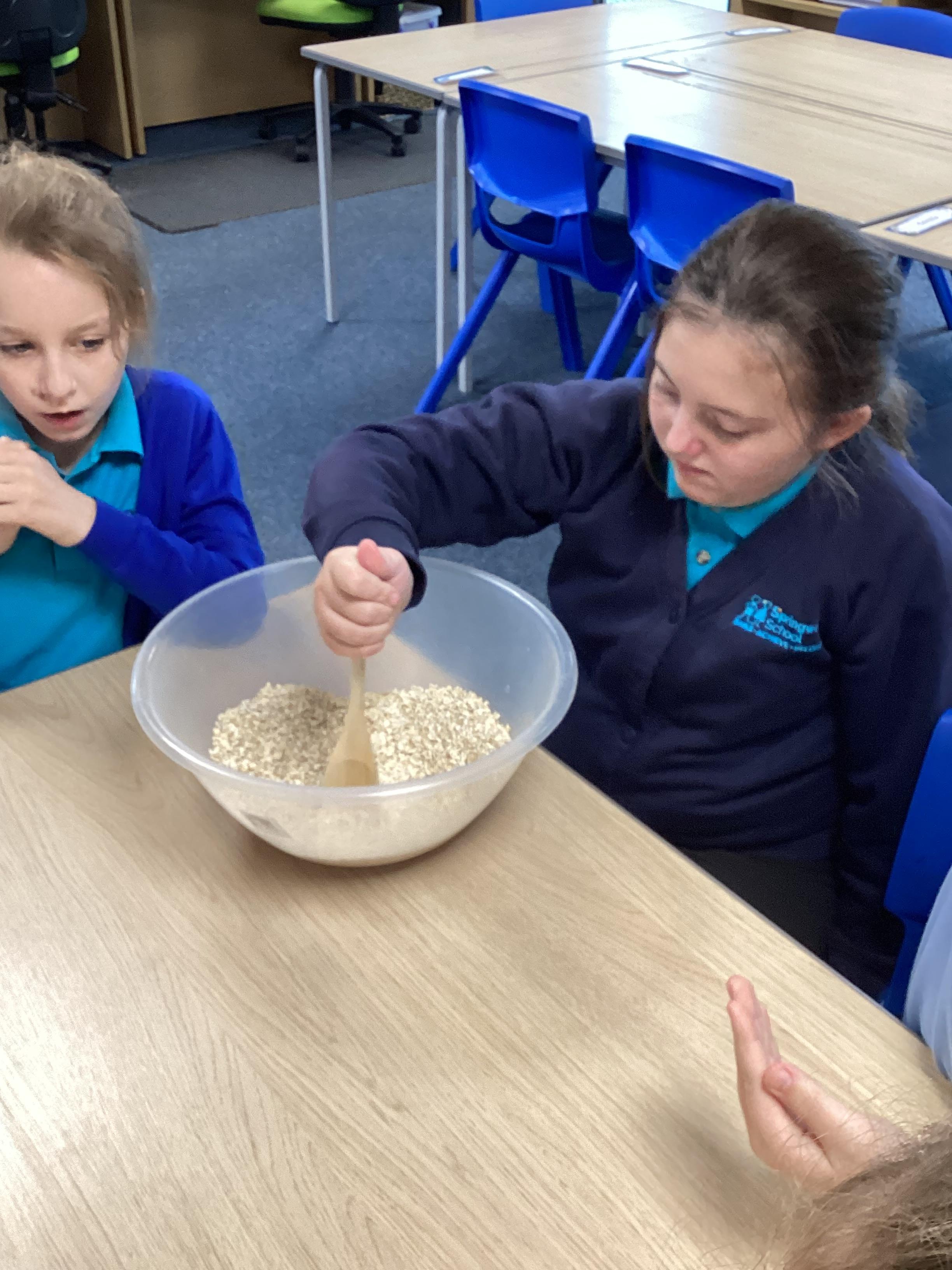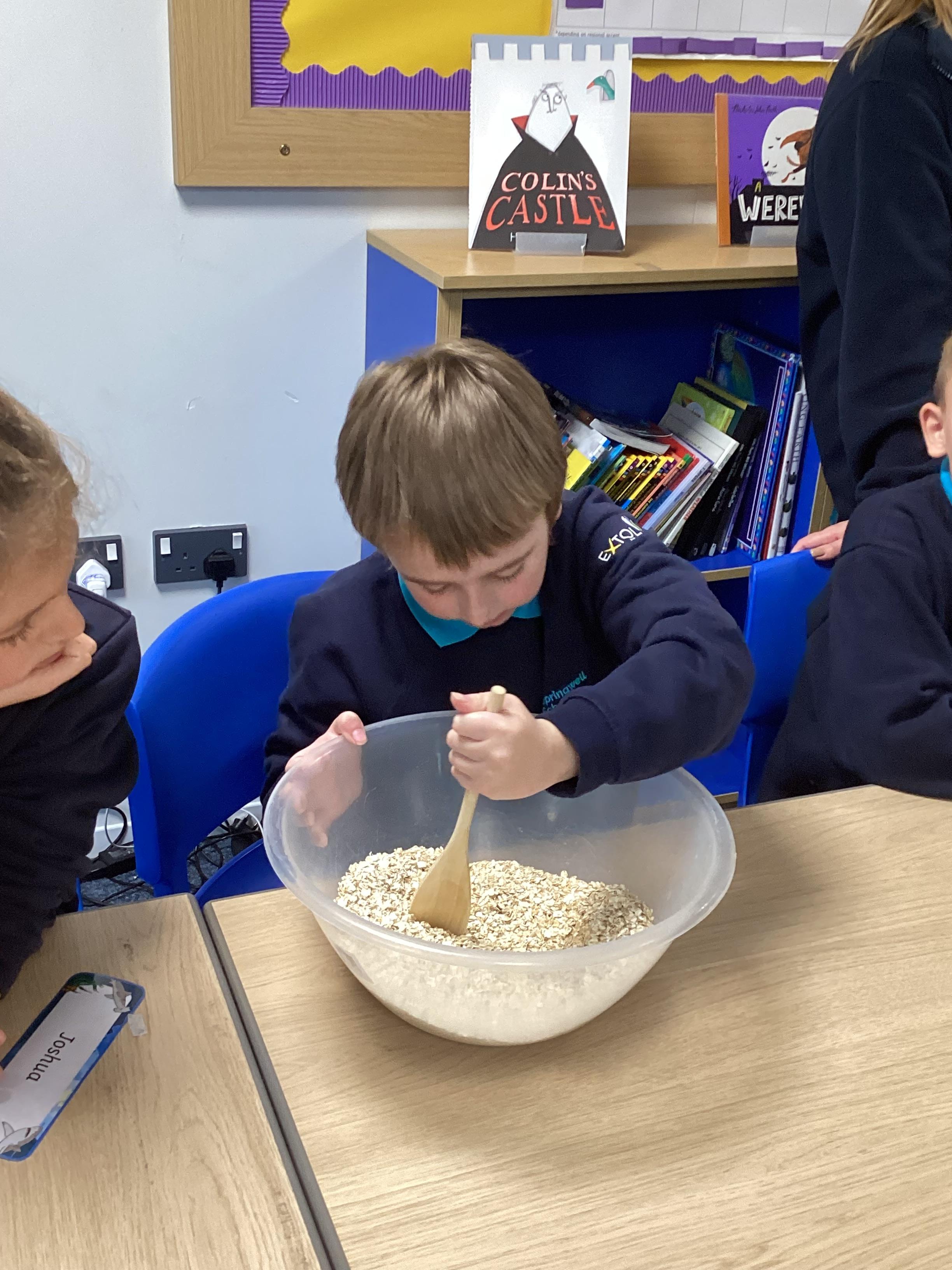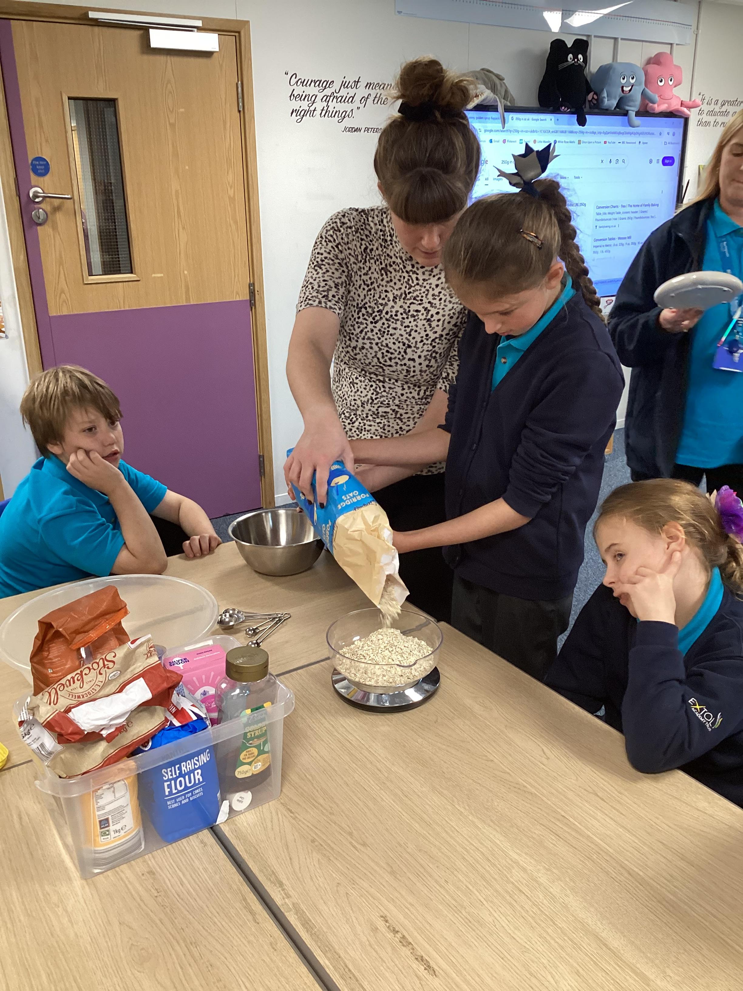 Thursday 16th October 2025 - In Cookery today, we made flapjacks. We measured out and mixed the ingredients before adding to tray and baking. They were yummy!
