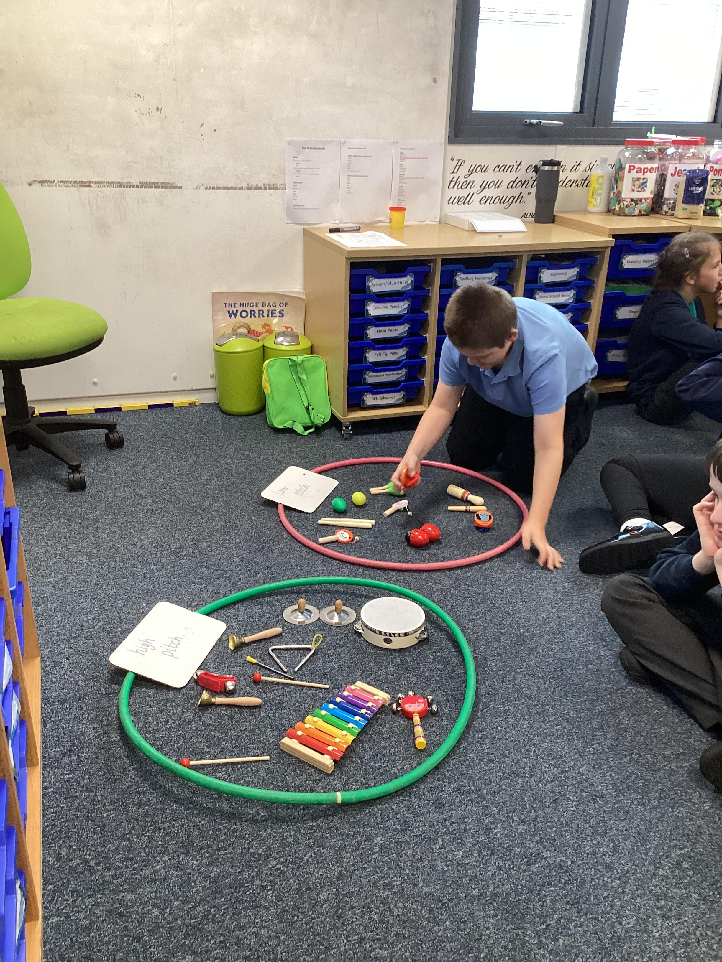 Tuesday 14th October 2025 - In Music today, we recapped 'pitch' and sorted our different instruments into 'high pitch' and 'low pitch' instruments. We then made some fantastic instruments, using paper cups and rice!