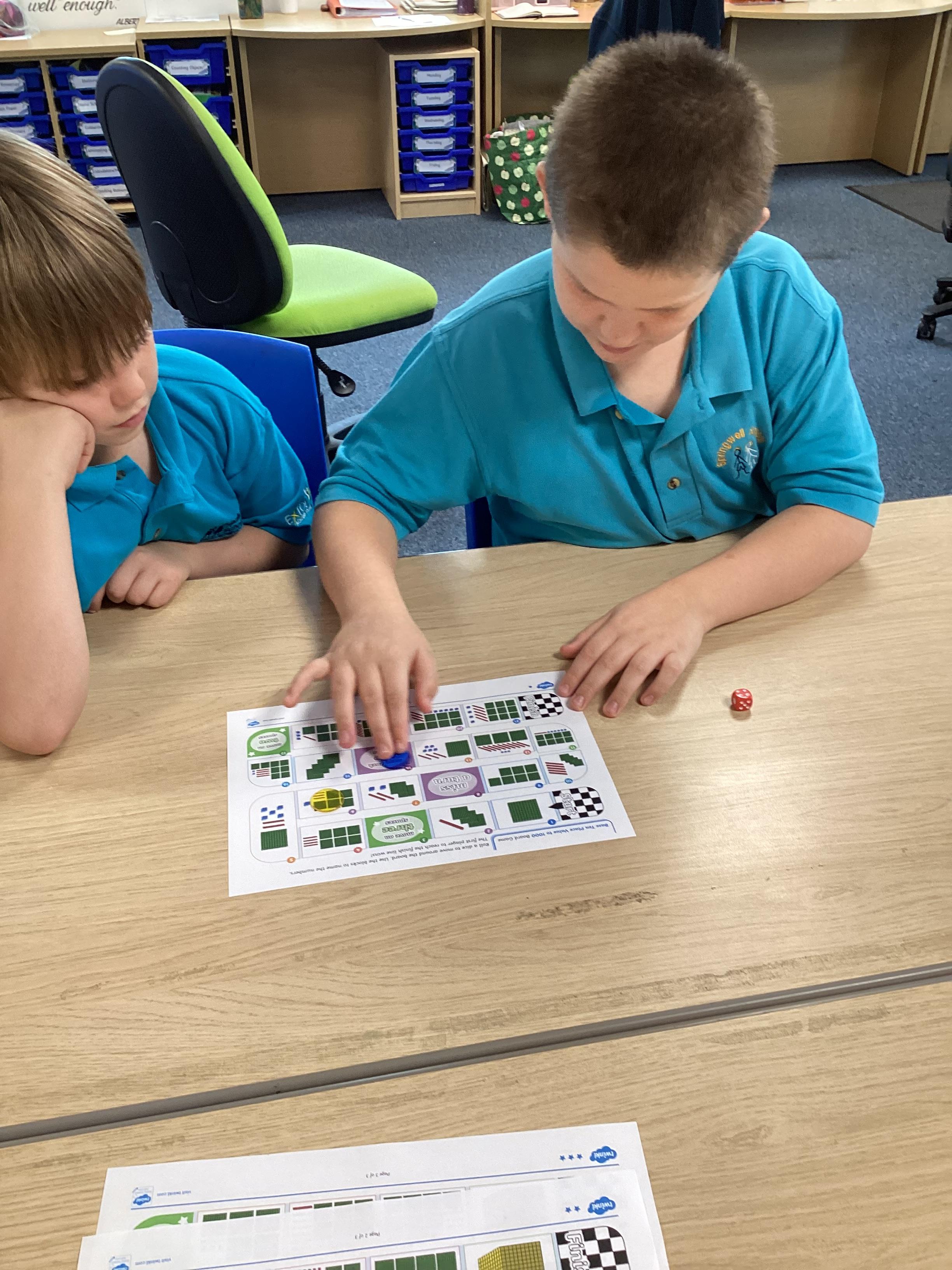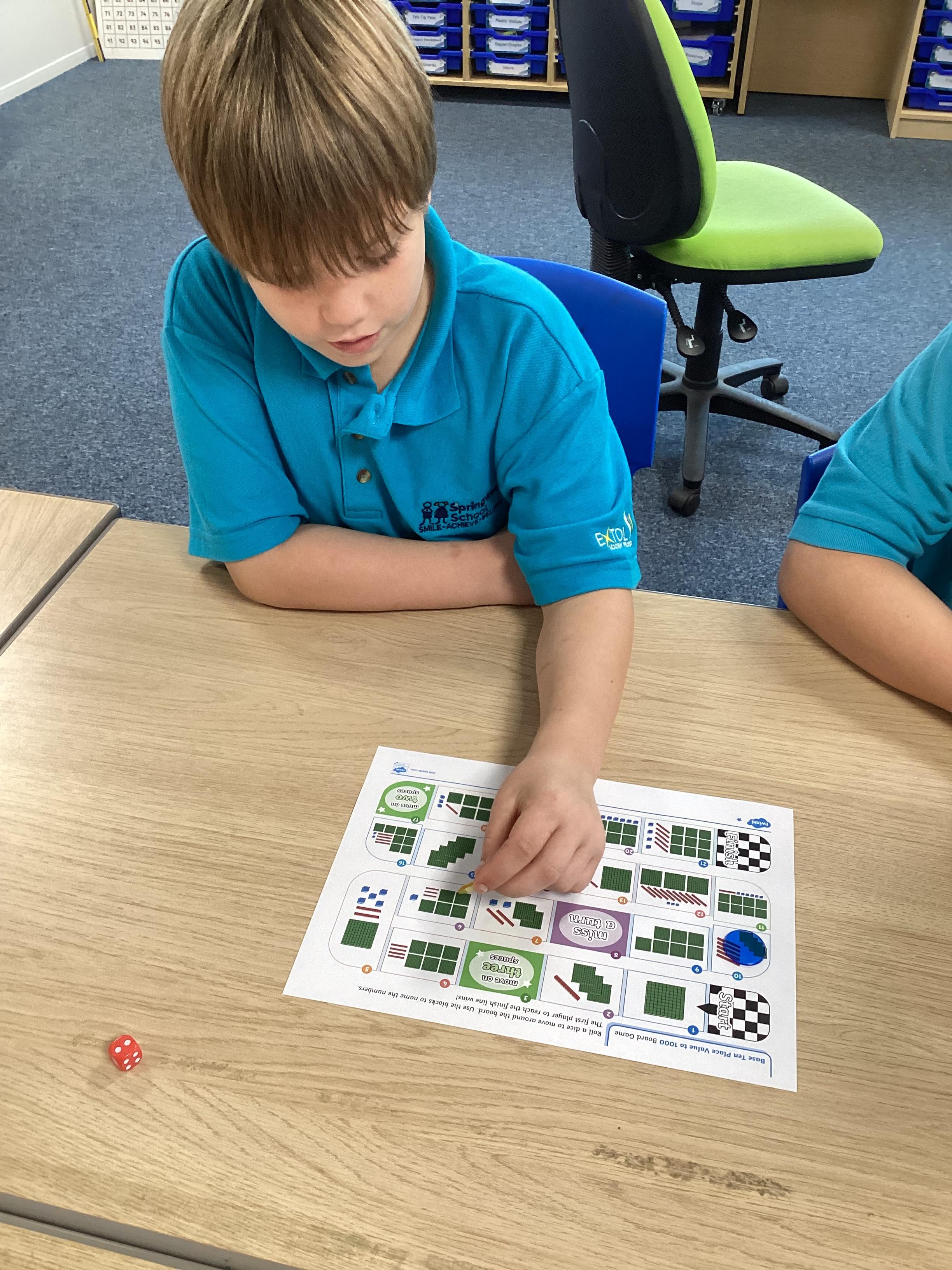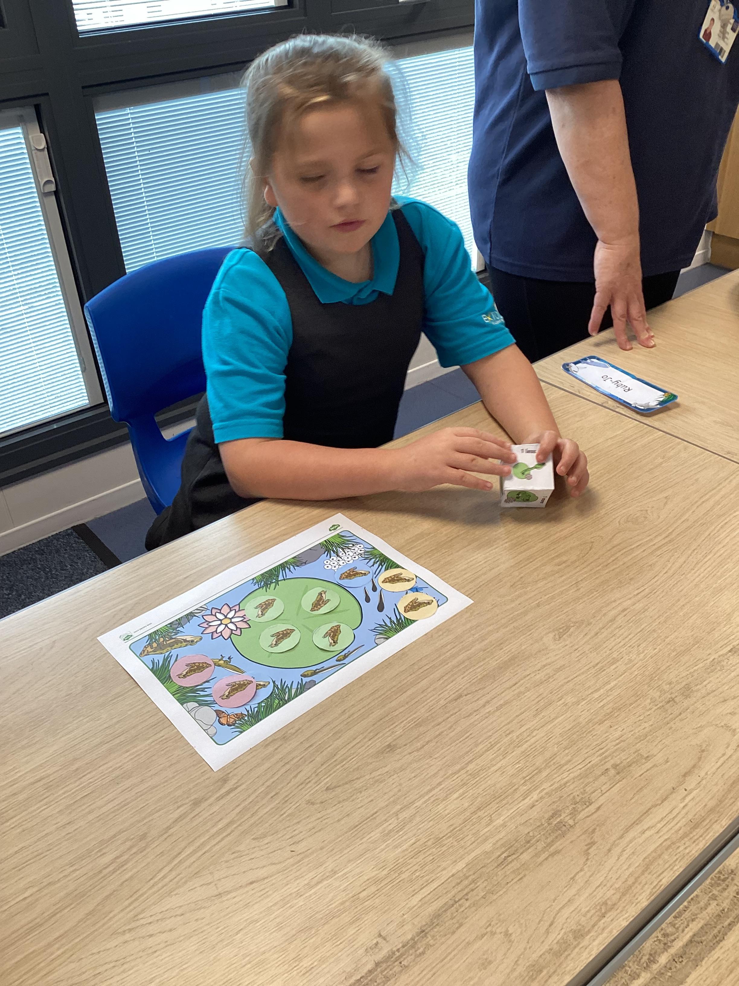 Monday 13th October 2025 - In Maths today, we played some different board games. One More & One Less Frog Game, where we had to roll a dice and add one more or one less frogs to the lily pads. Another game where we rolled the dice, then whichever square we landed on, we had to say the amount, counting the hundreds, tens and ones. We have some very competitive children in Shark class!