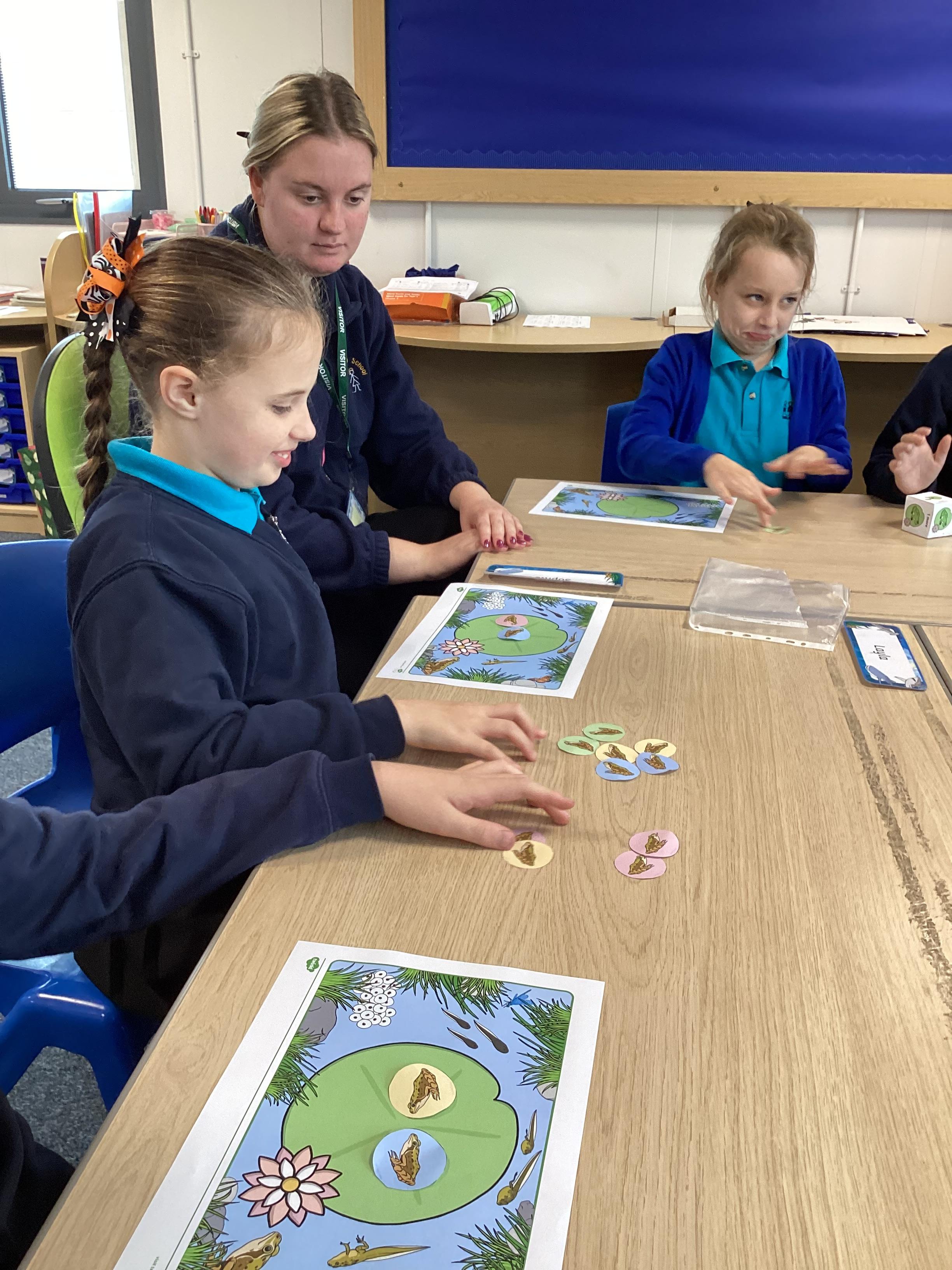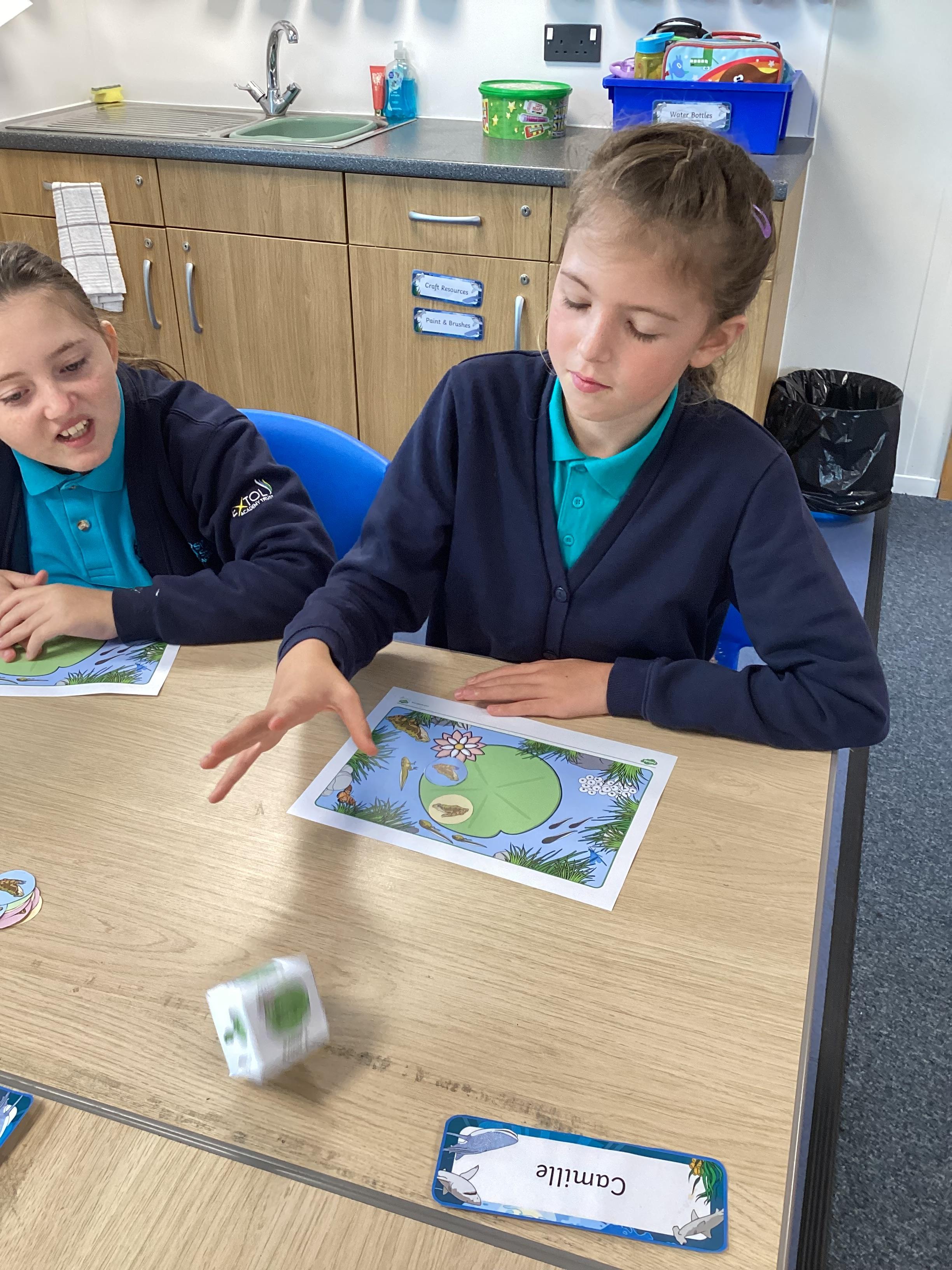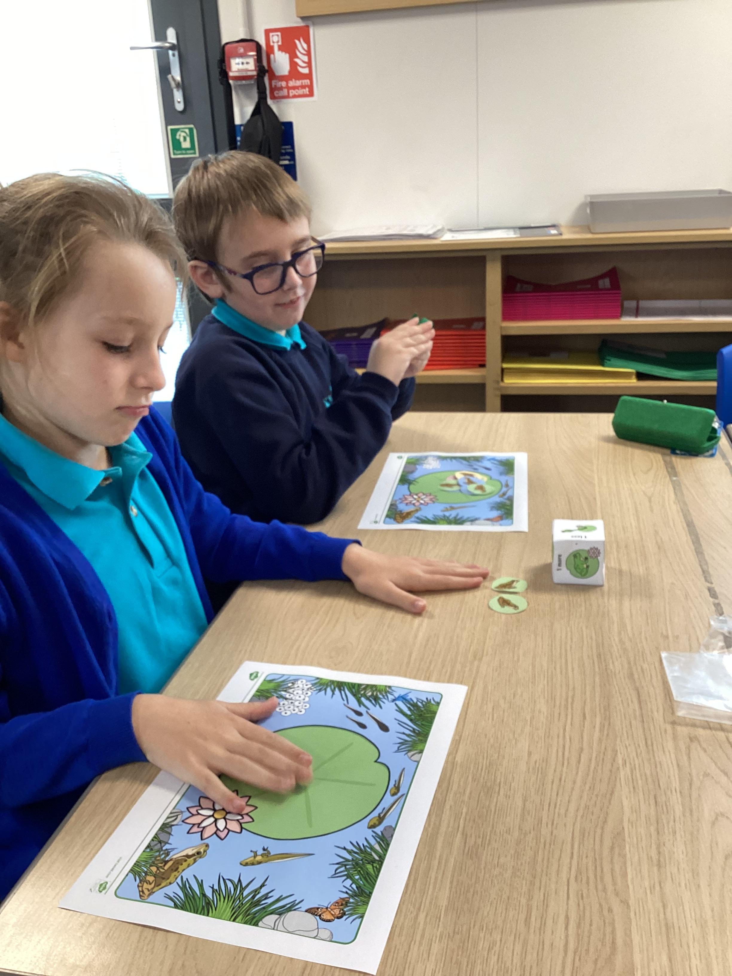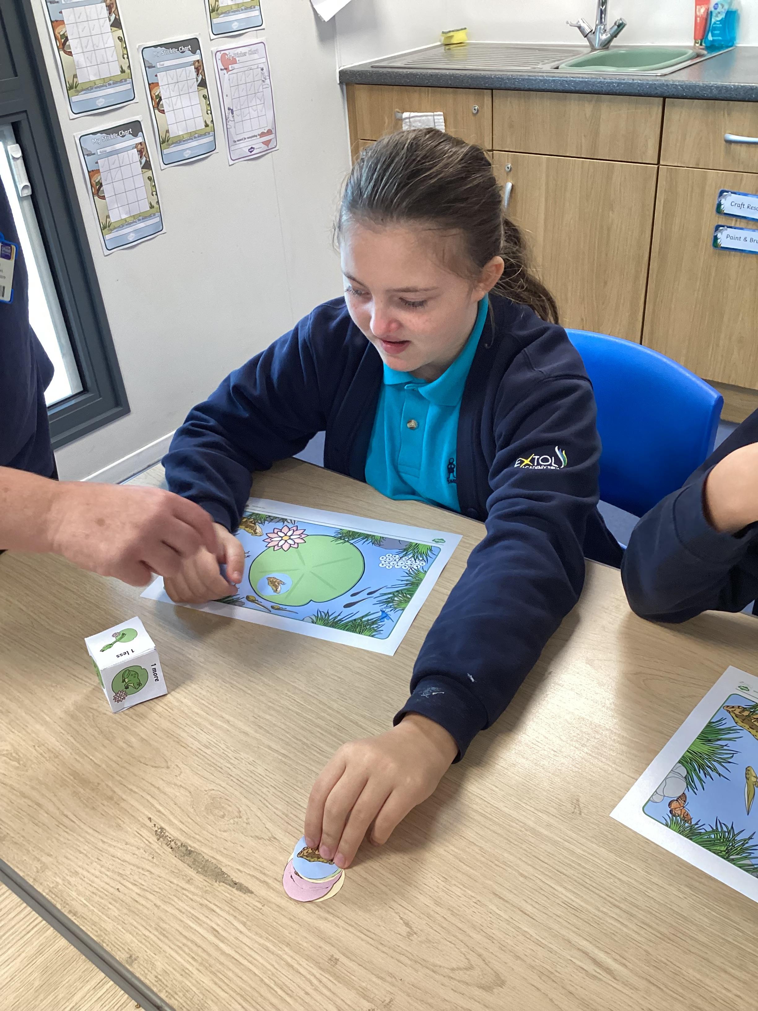 Monday 13th October 2025 - In Maths today, we played some different board games. One More & One Less Frog Game, where we had to roll a dice and add one more or one less frogs to the lily pads. Another game where we rolled the dice, then whichever square we landed on, we had to say the amount, counting the hundreds, tens and ones. We have some very competitive children in Shark class!