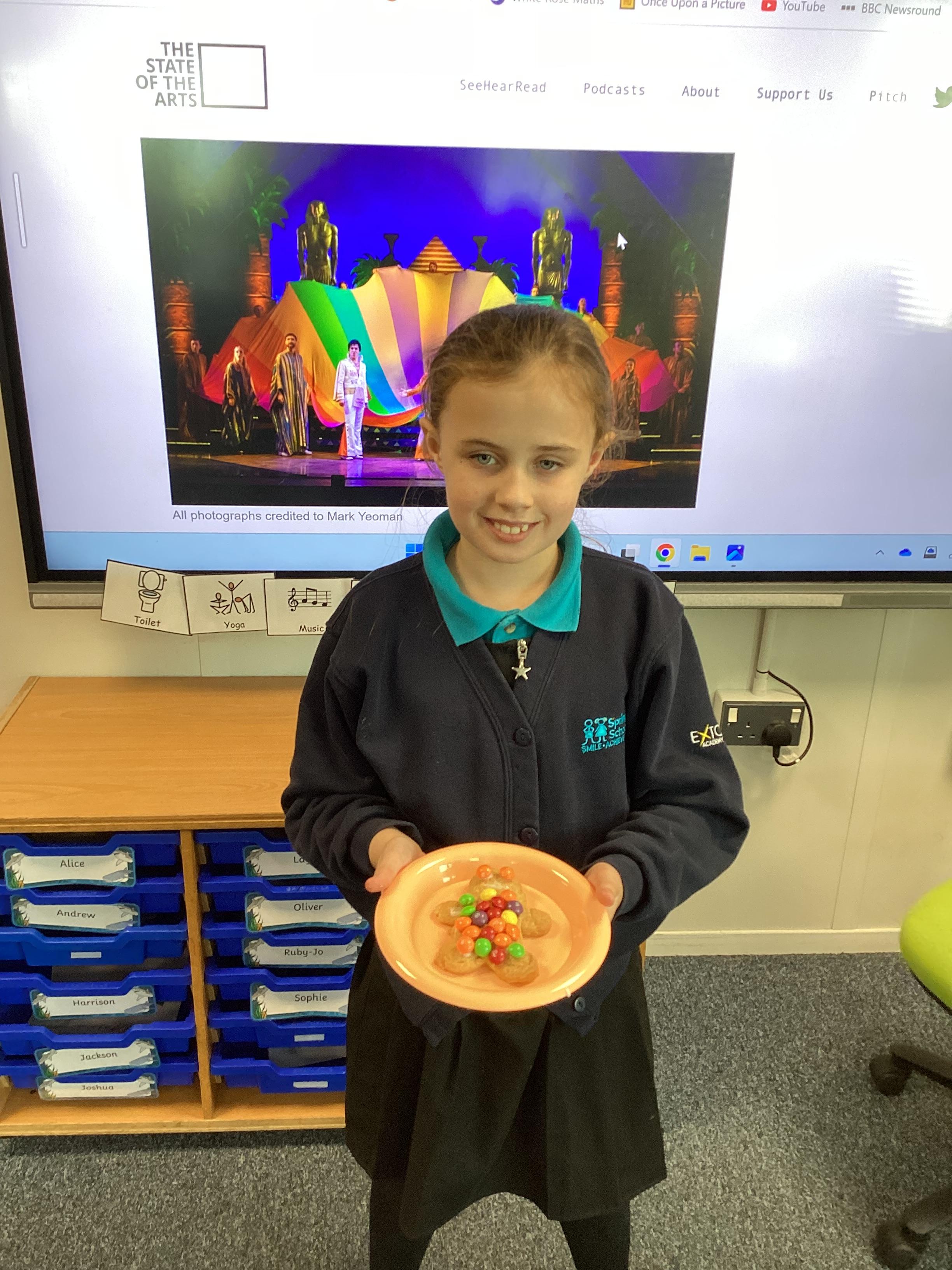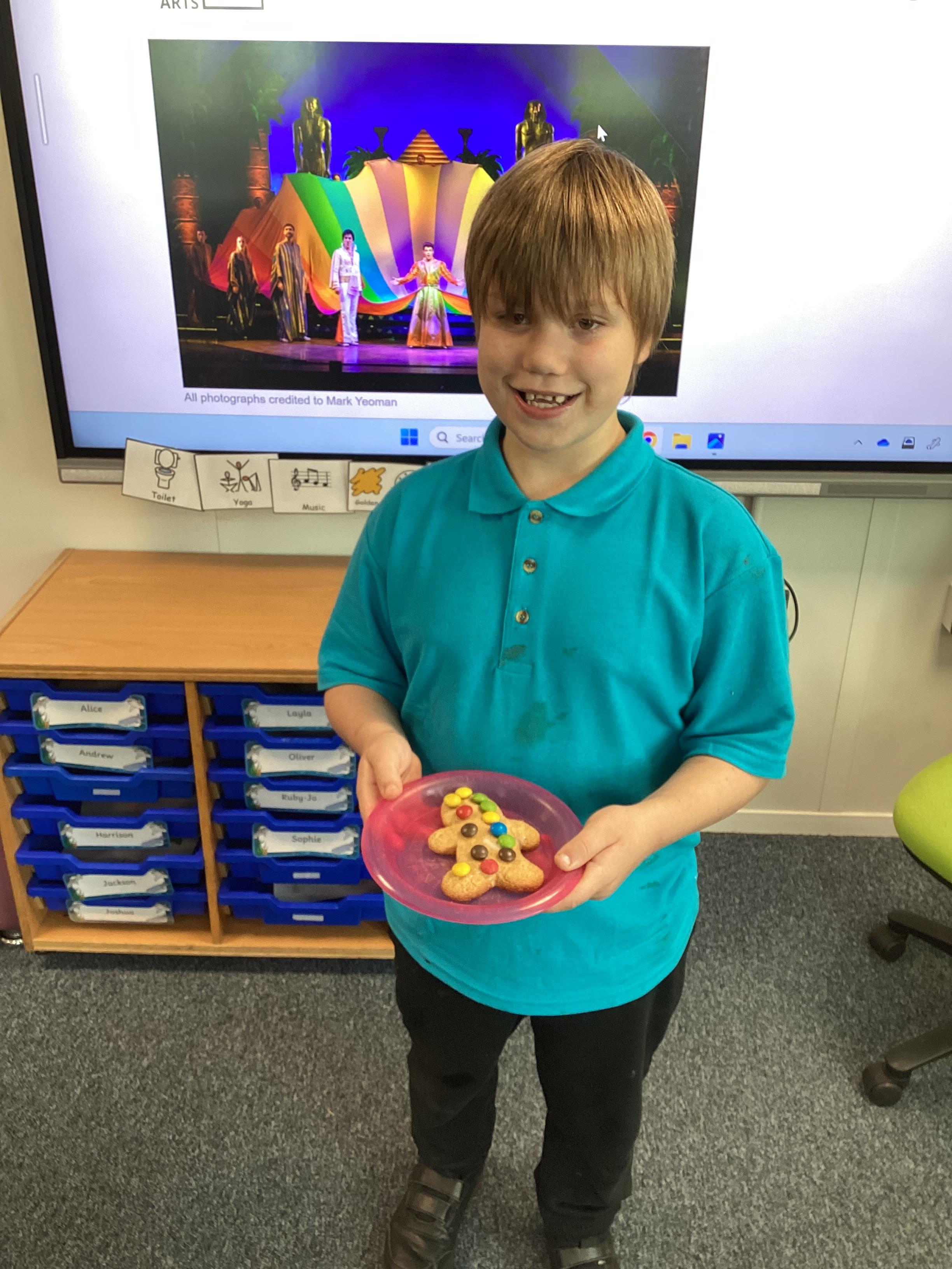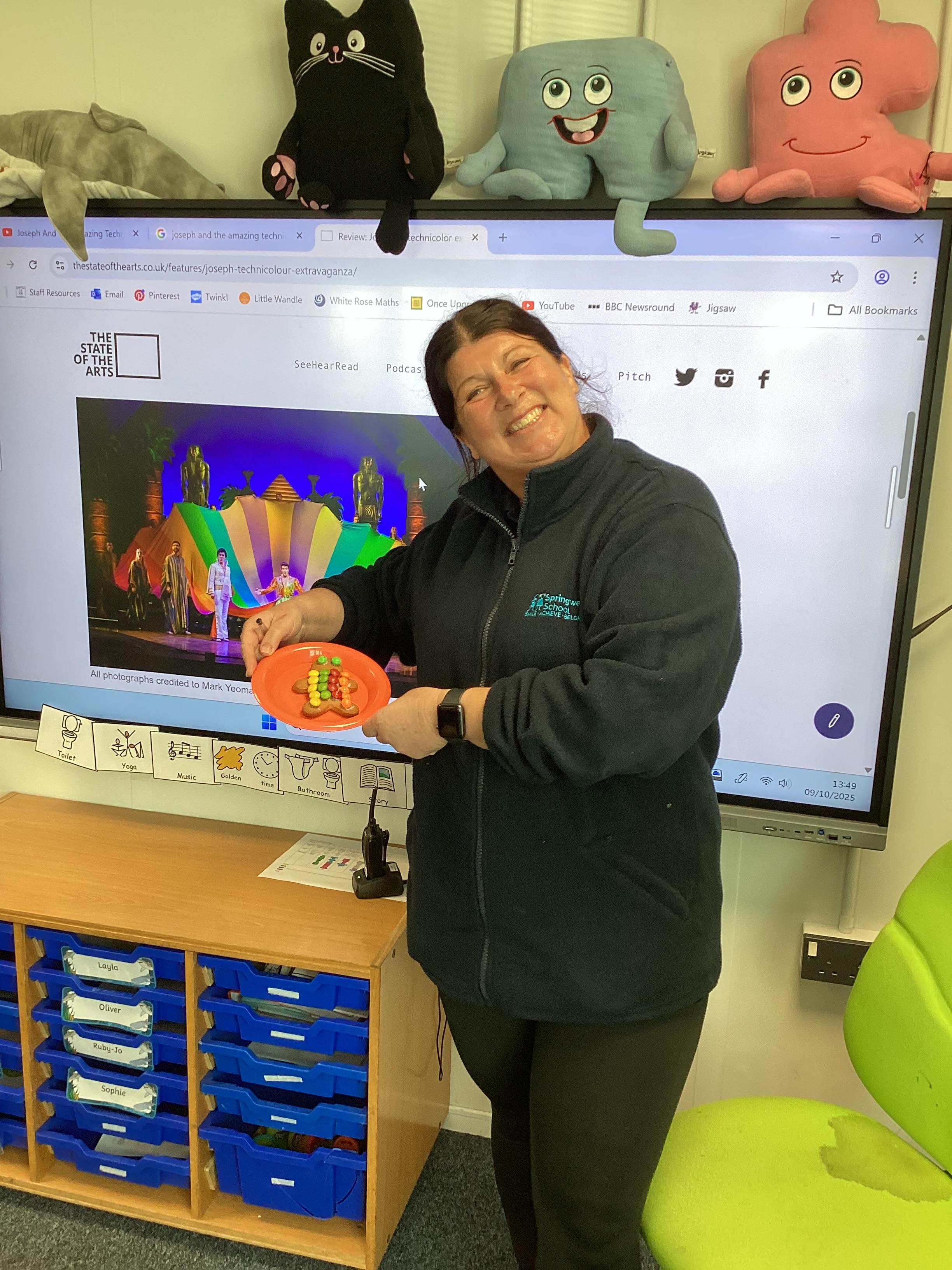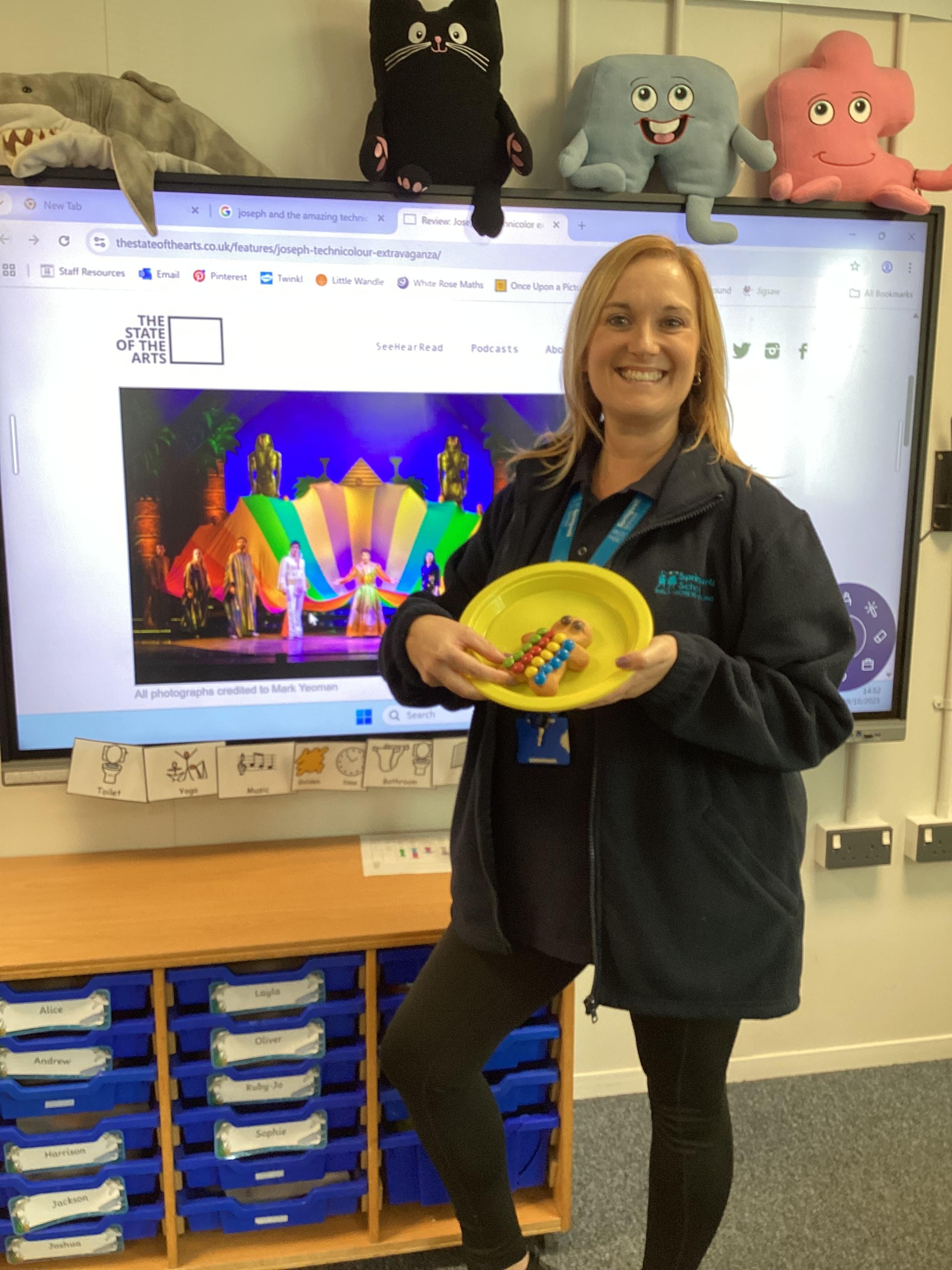 Thursday 9th October 2025 - In Music today, we made gingerbread men which we later decorated to look like Joseph in his colourful coat. We then began to watch the musical 'Joseph and His Technicoloured Dreamcoat'. It was fantastic - lots of singing along too!
