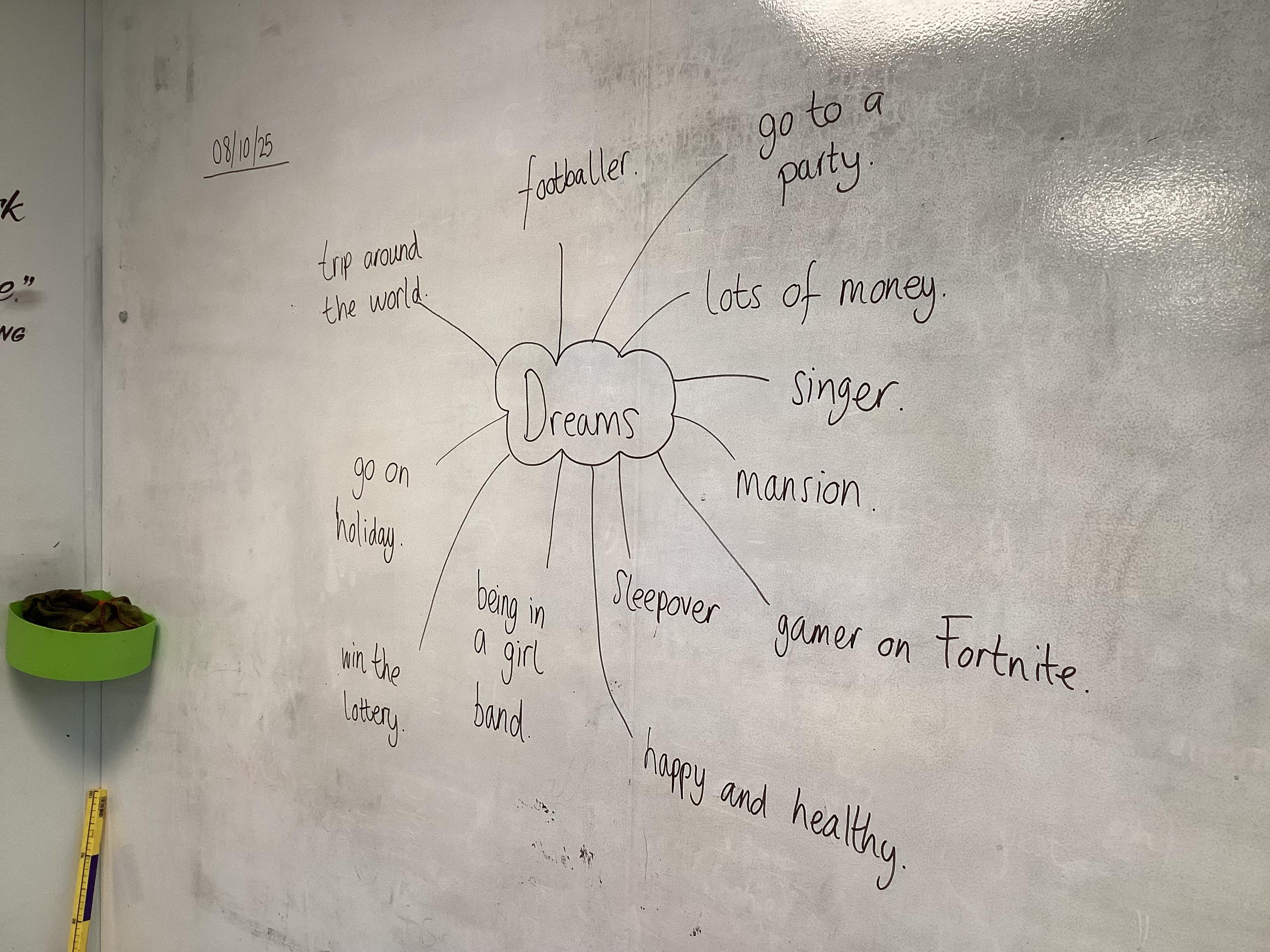 Wednesday 8th October 2025 - In Music this half-term, we have started focusing on some of the songs from 'Joseph and His Technicoloured Dreamcoat'. Today we read the story of Joseph and listened to the song 'Any Dream Will Do', playing musical instruments along with this. We then discussed what dreams are and what we would love to dream about/happen to us. We coloured in pictures of Joseph's coat and wrote our dreams beside it. What a lovely lesson!