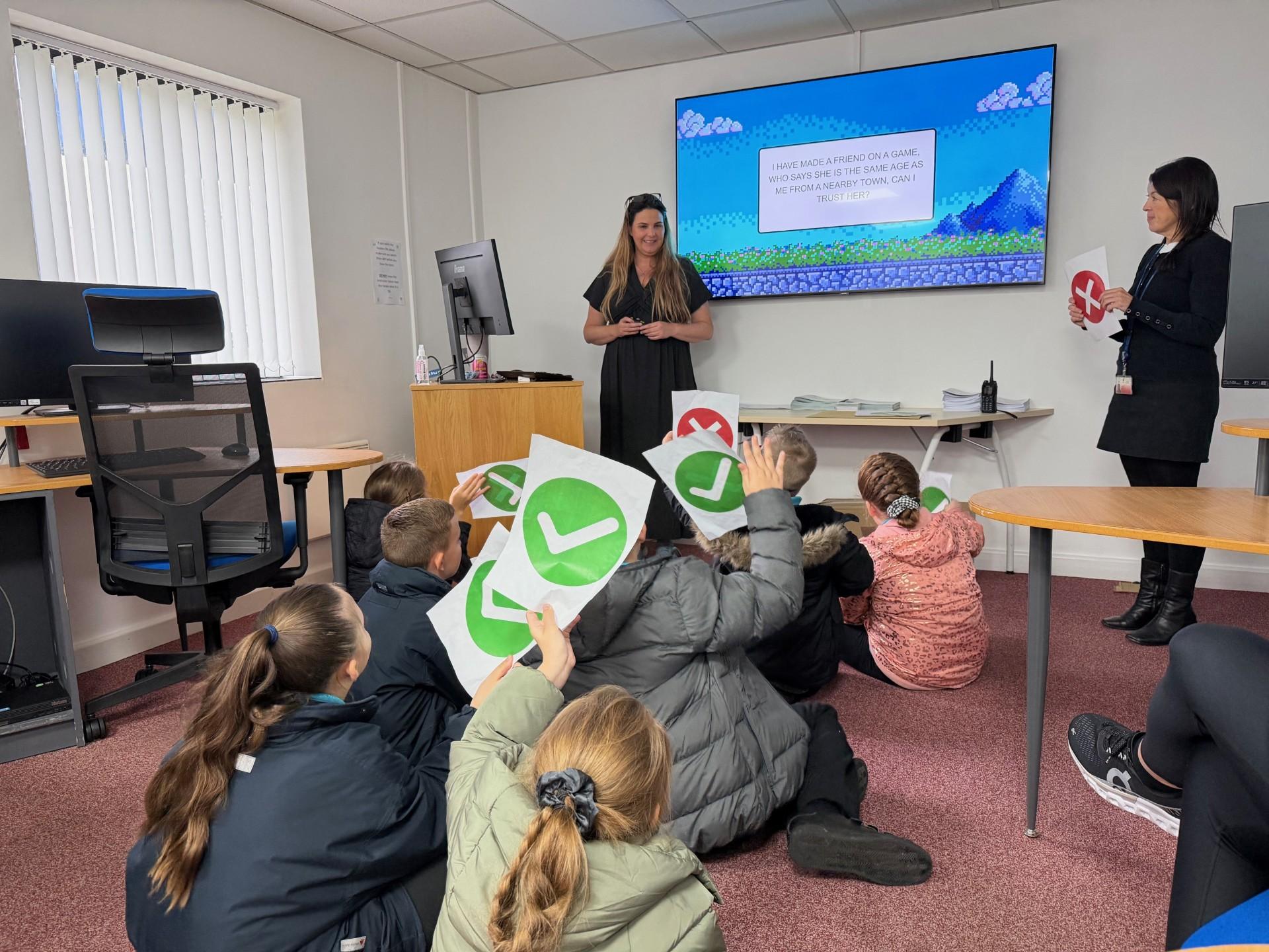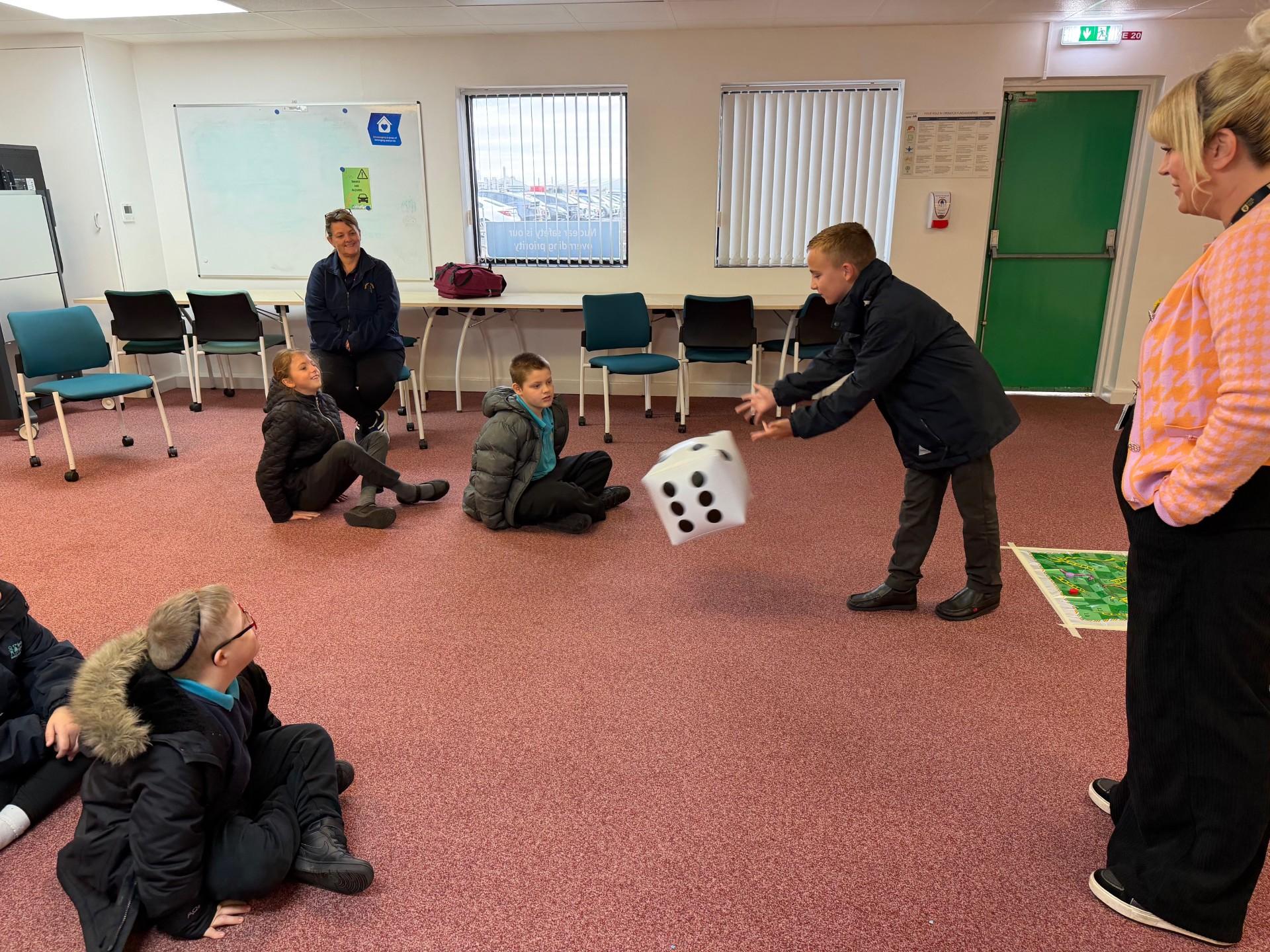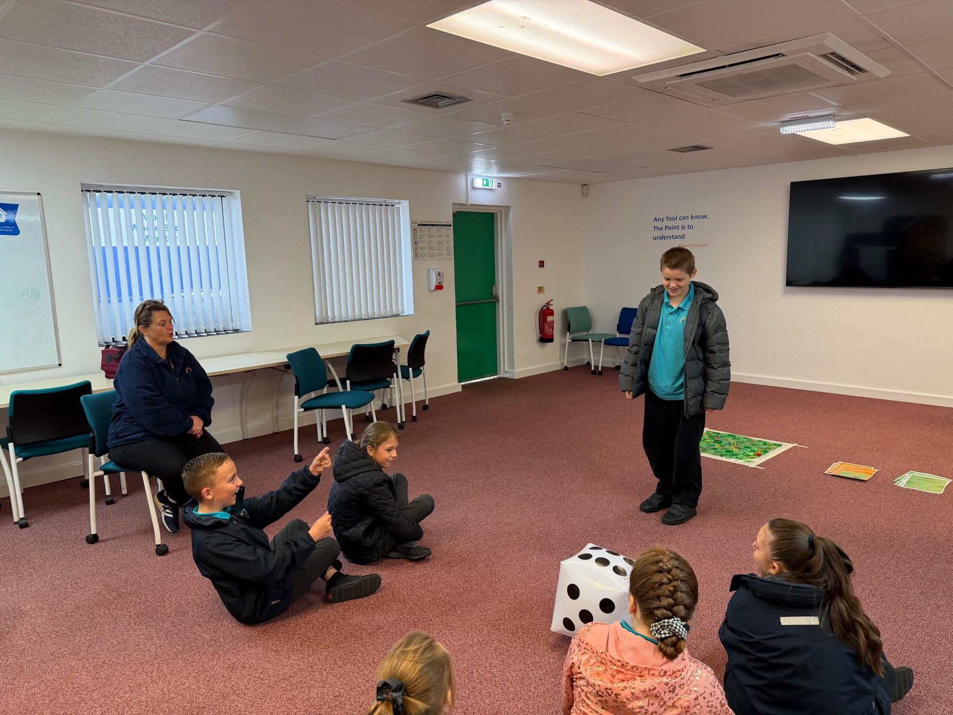 Tuesday 7th October 2025 - Today, some of Shark Class and Dragon Class went to Crucial Crew. They all participated in workshops about keeping safe including, electrical safety, water safety, road safety, cyber safety and first aid. Our favourite workshop was road safety with a game of snakes and ladders. Well done to the red team, who won the game!