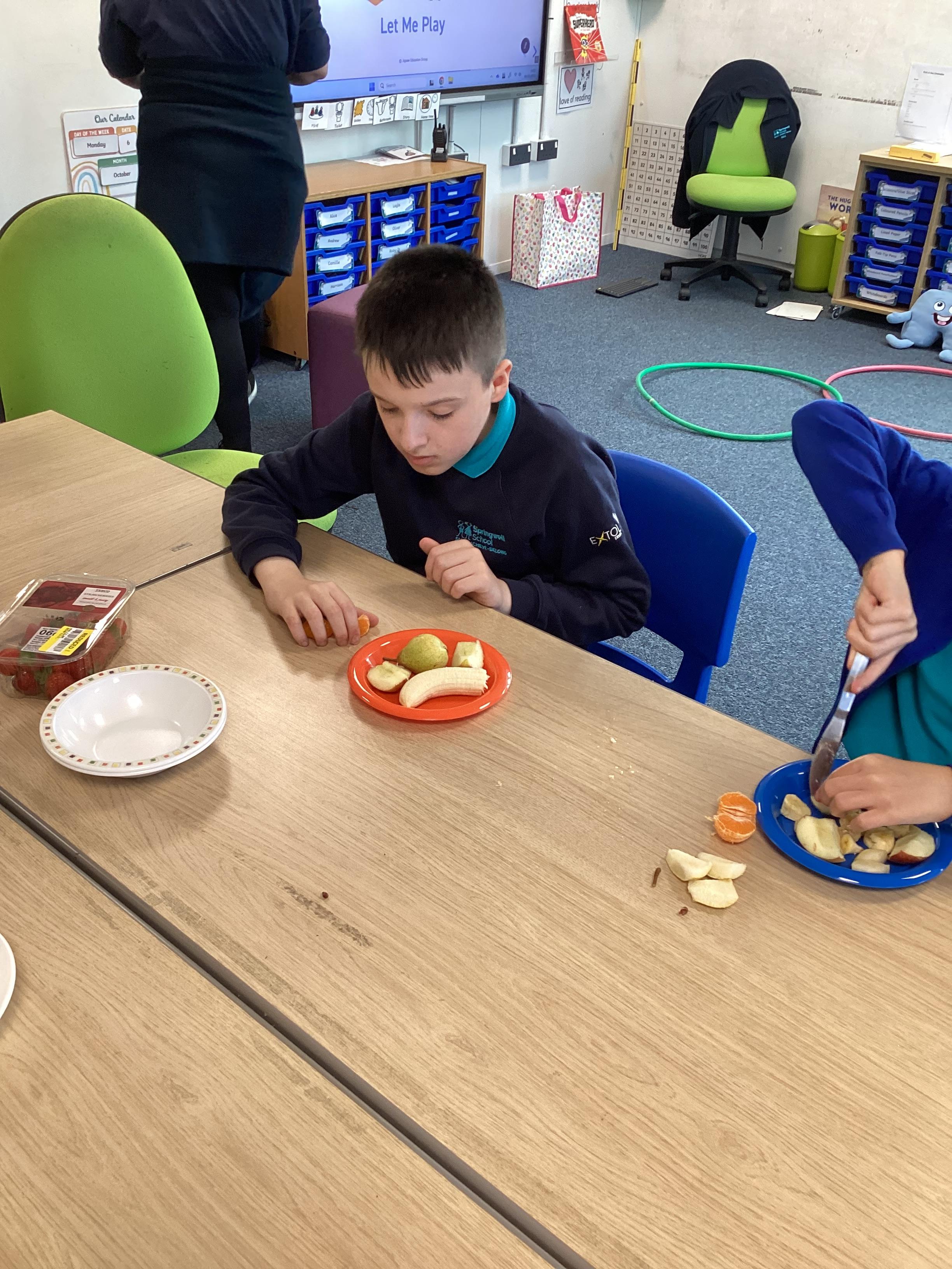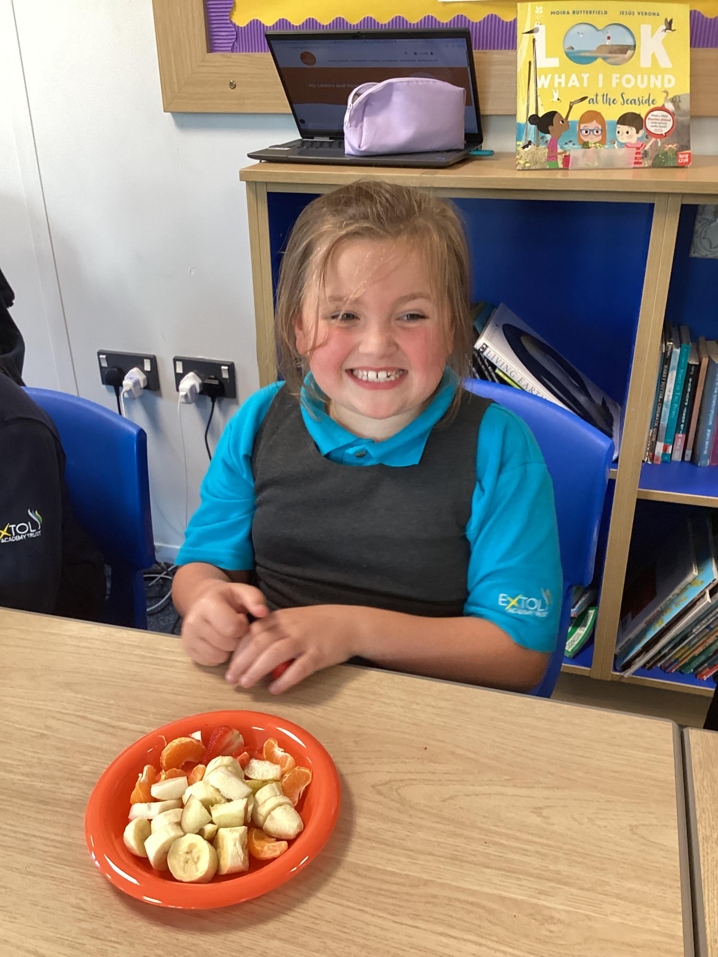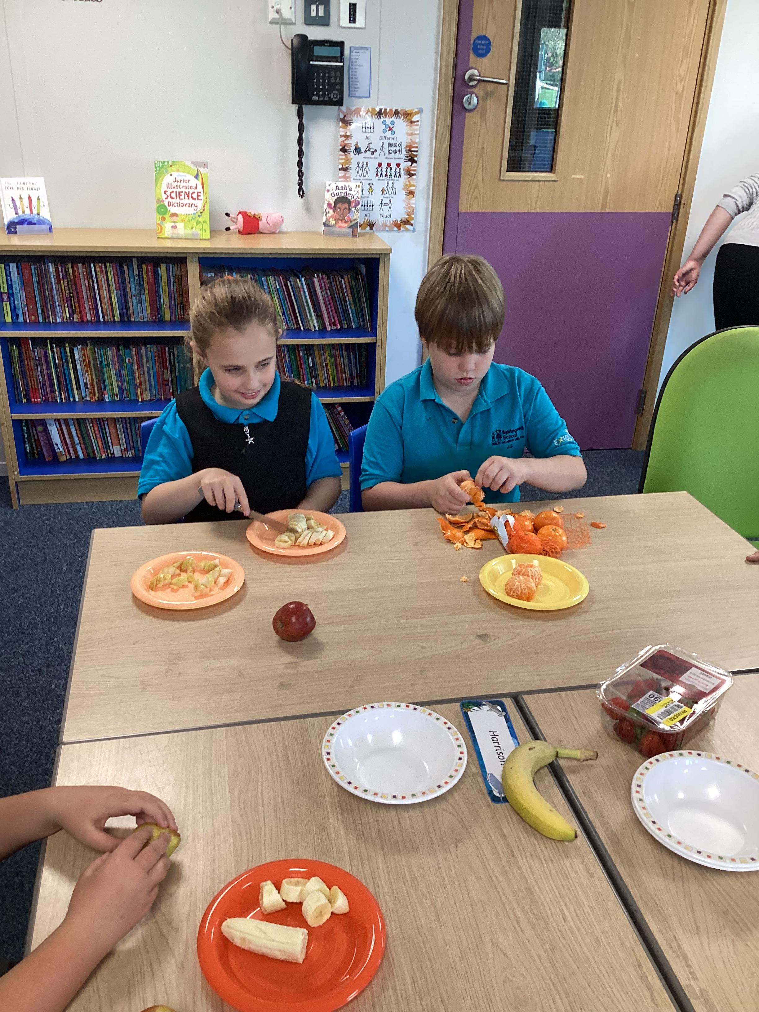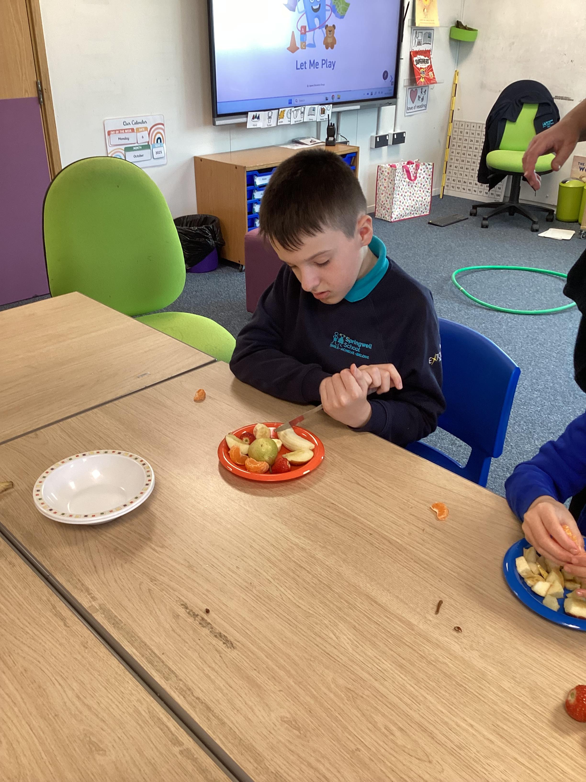 Monday 6th October 2025 - In PSHRE today, we have been leaning all about healthy and unhealthy foods. We looked at and discussed various foods, then sorted the foods into these two groups. We also chopped up various fruits to make our own, individual fruit salads. It was delicious!
