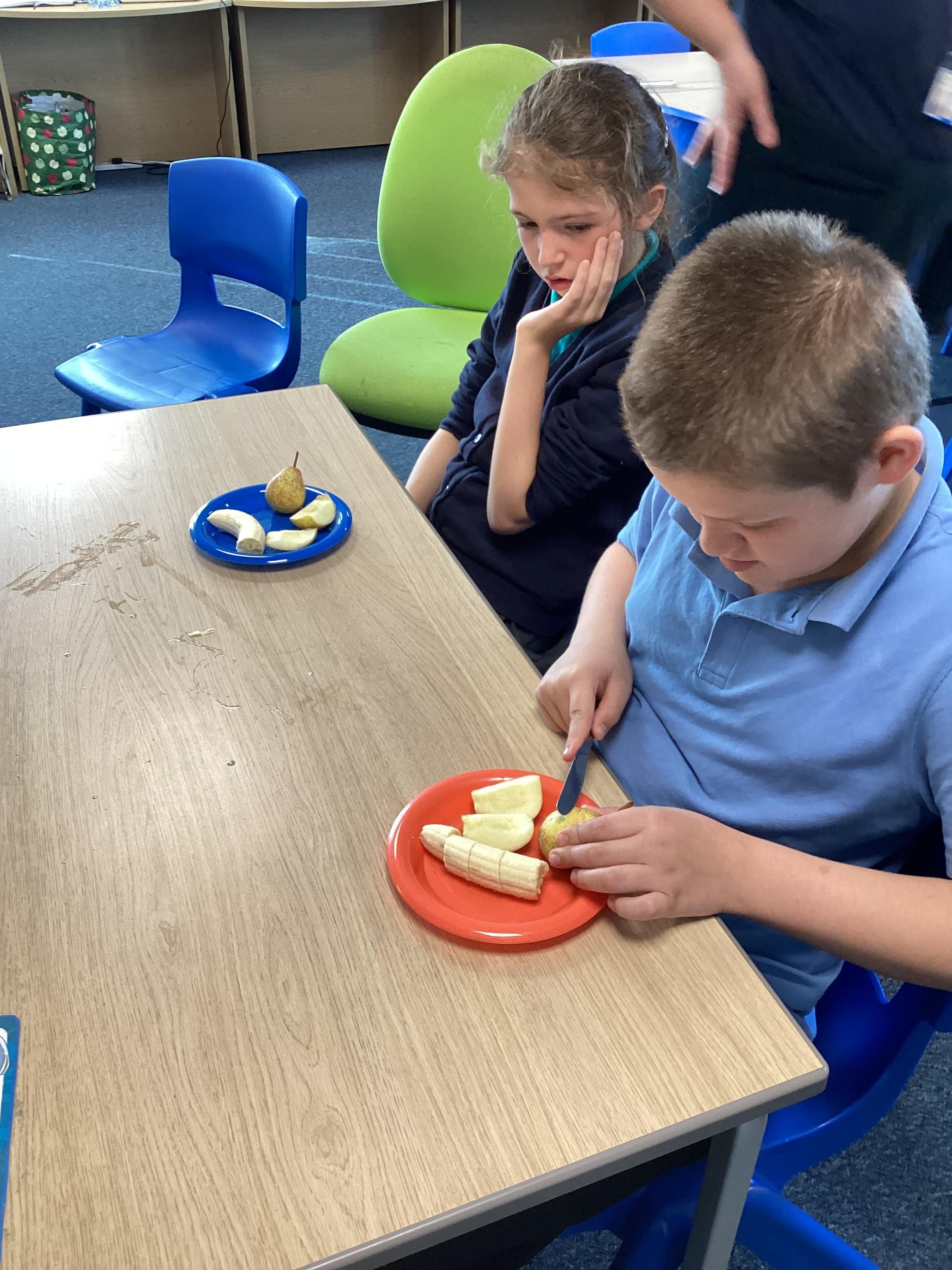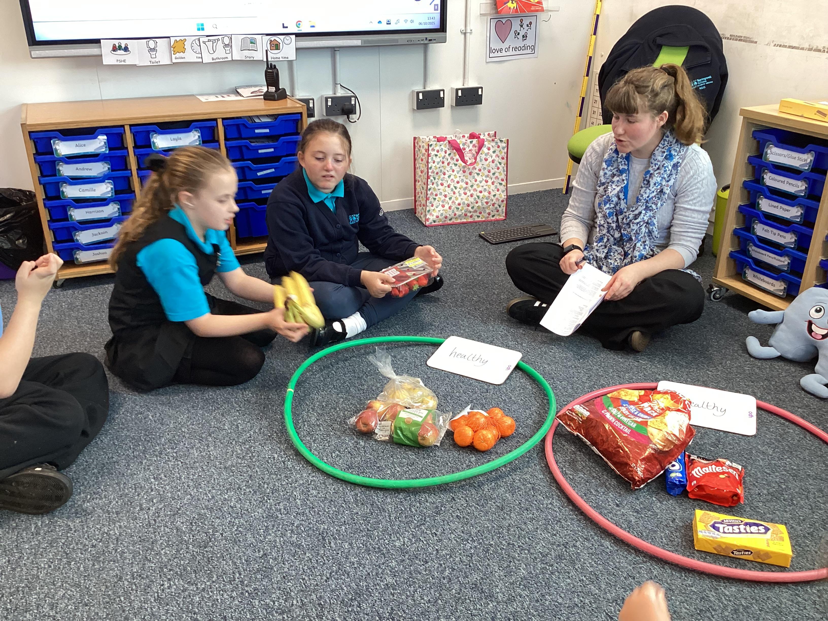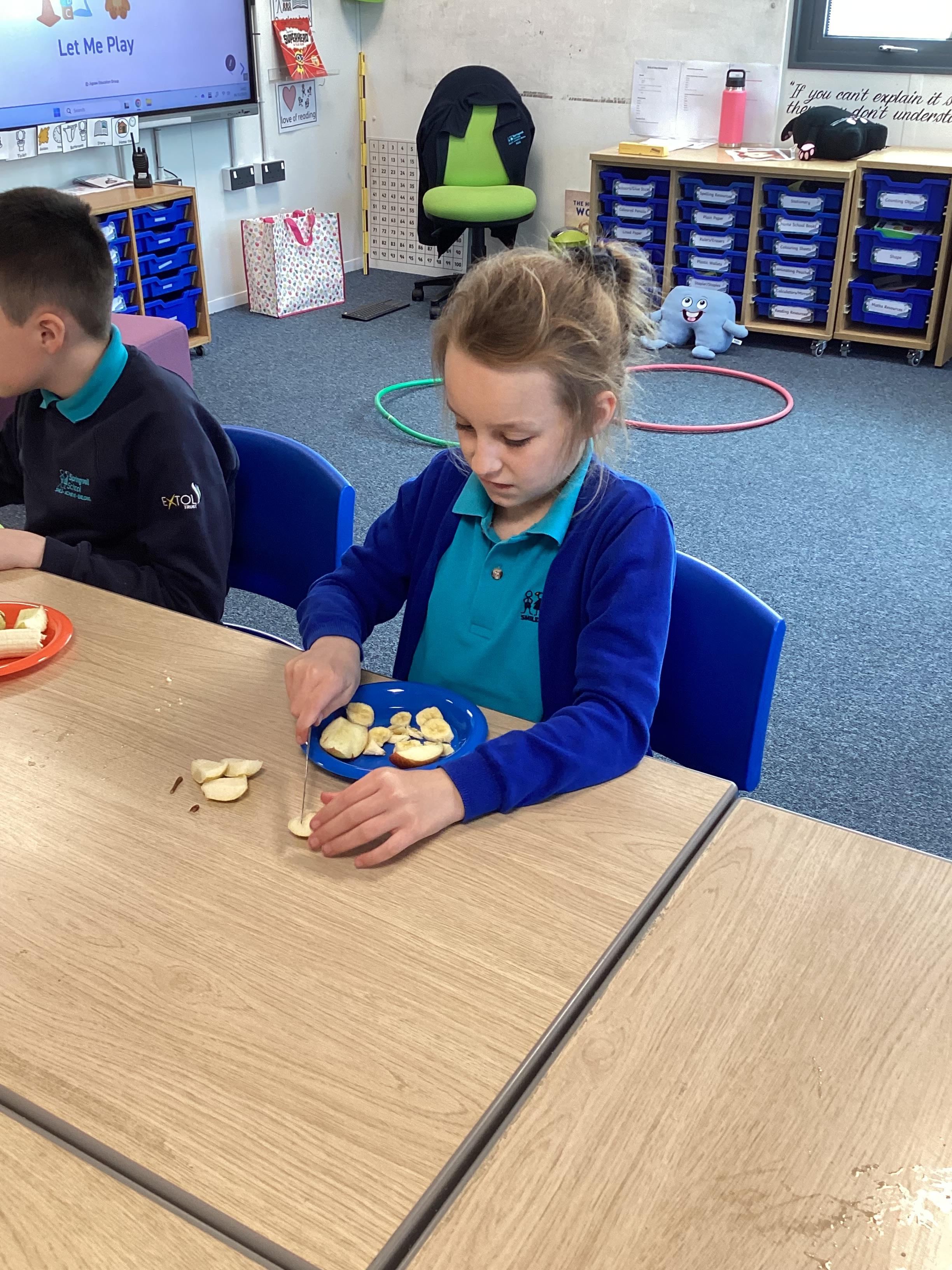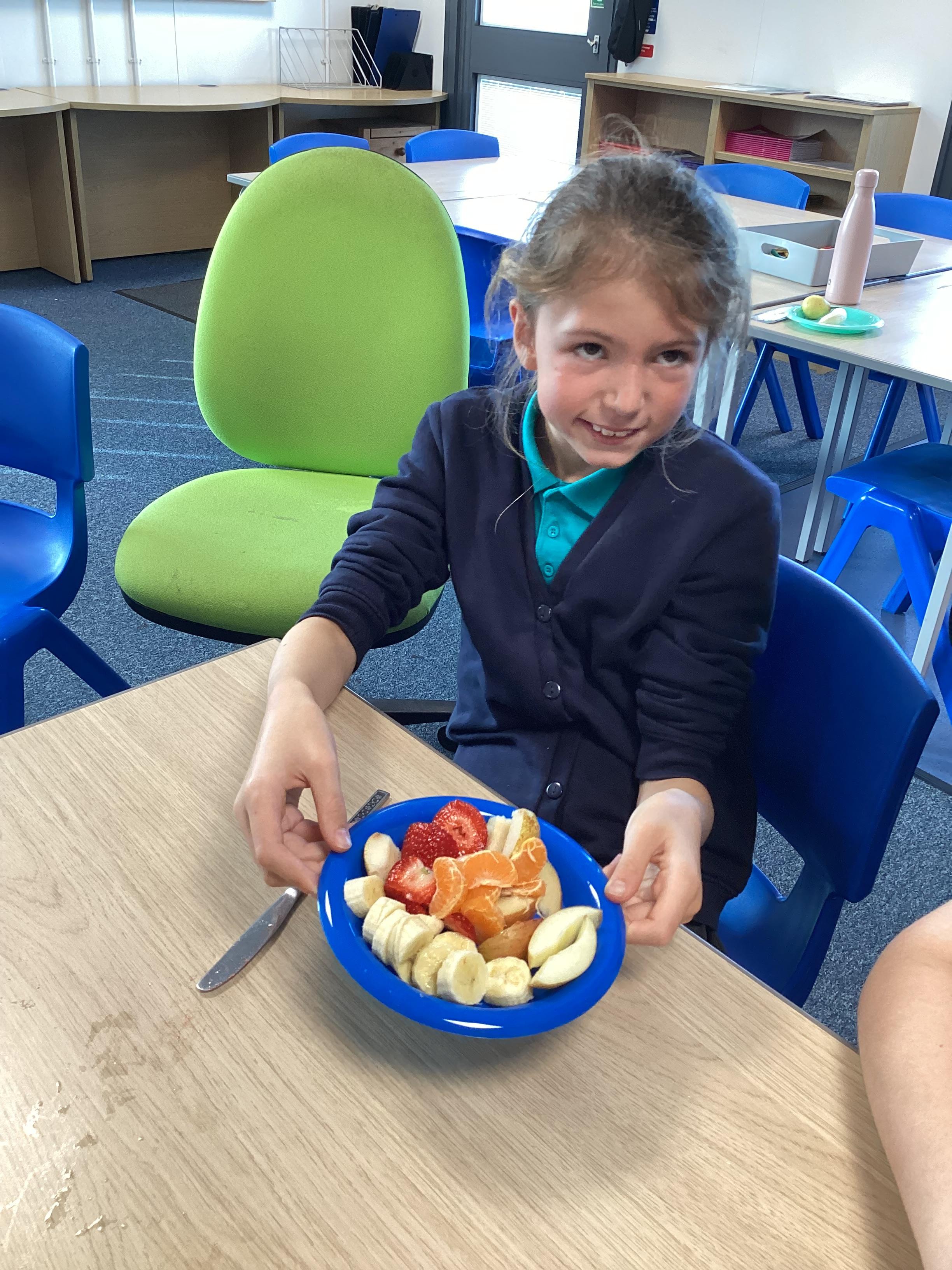 Monday 6th October 2025 - In PSHRE today, we have been leaning all about healthy and unhealthy foods. We looked at and discussed various foods, then sorted the foods into these two groups. We also chopped up various fruits to make our own, individual fruit salads. It was delicious!