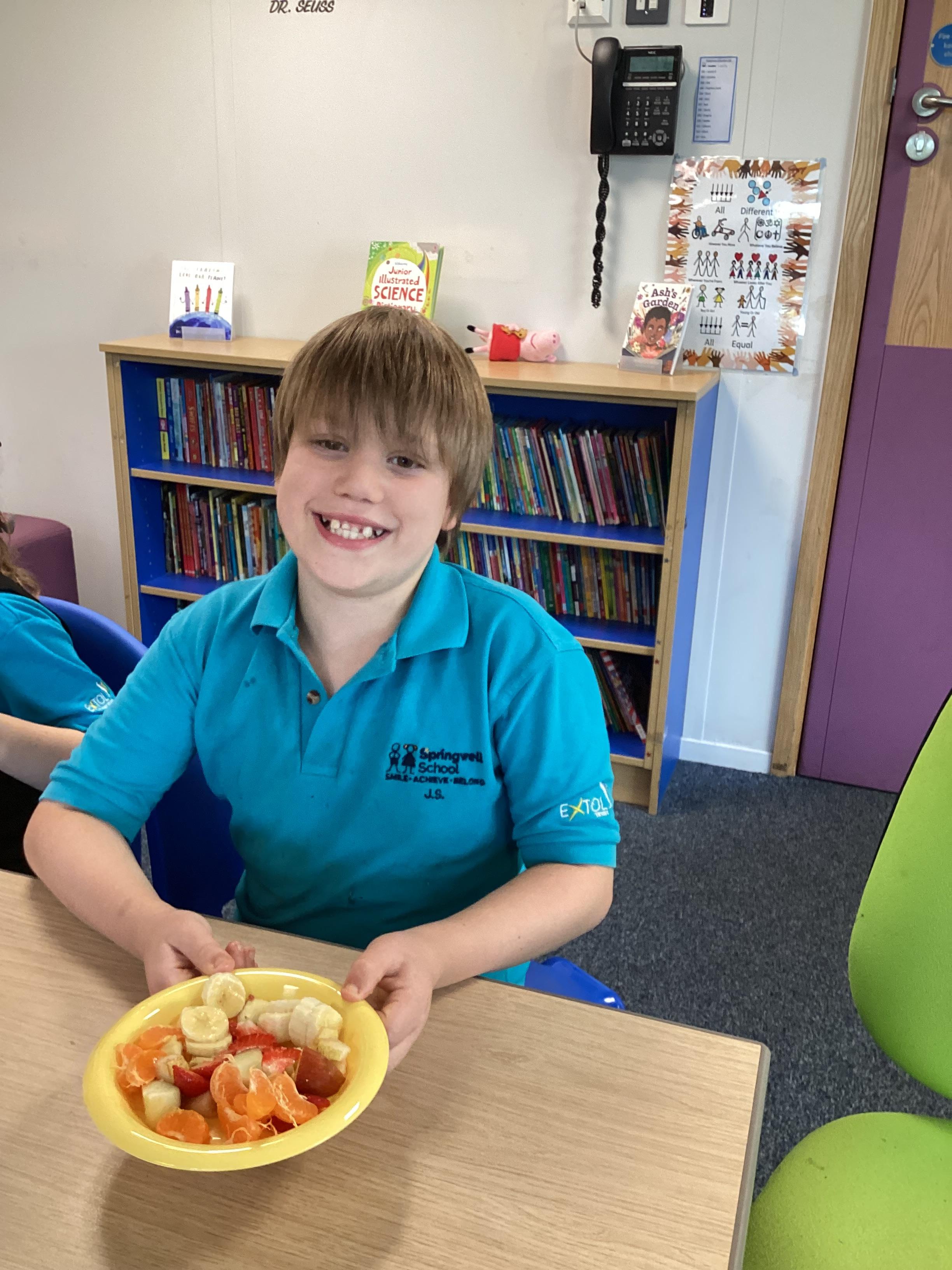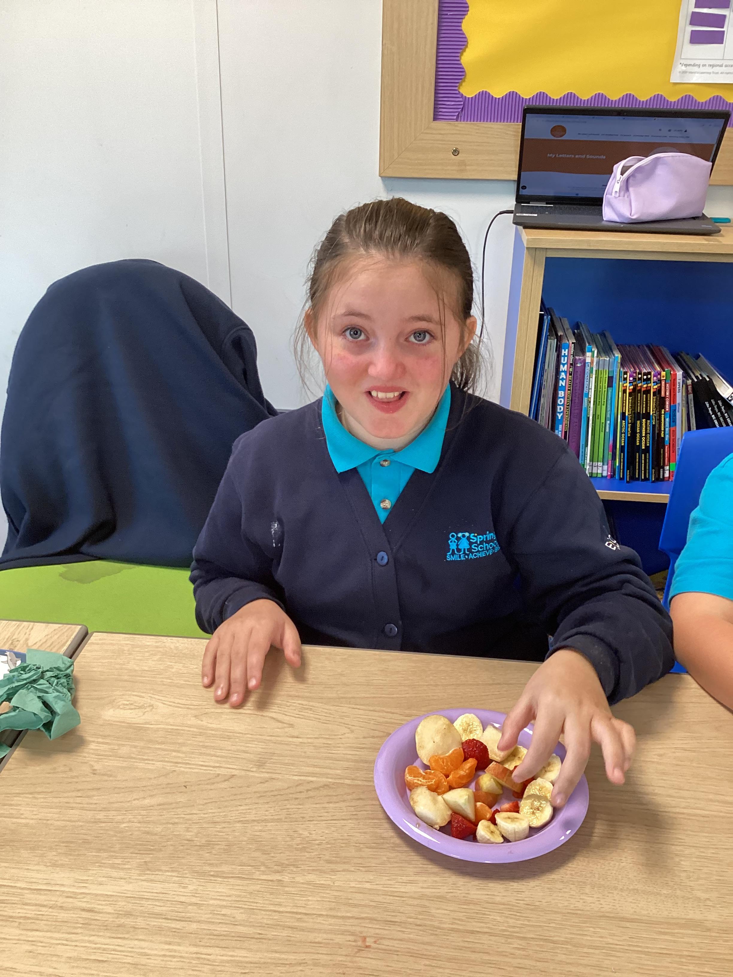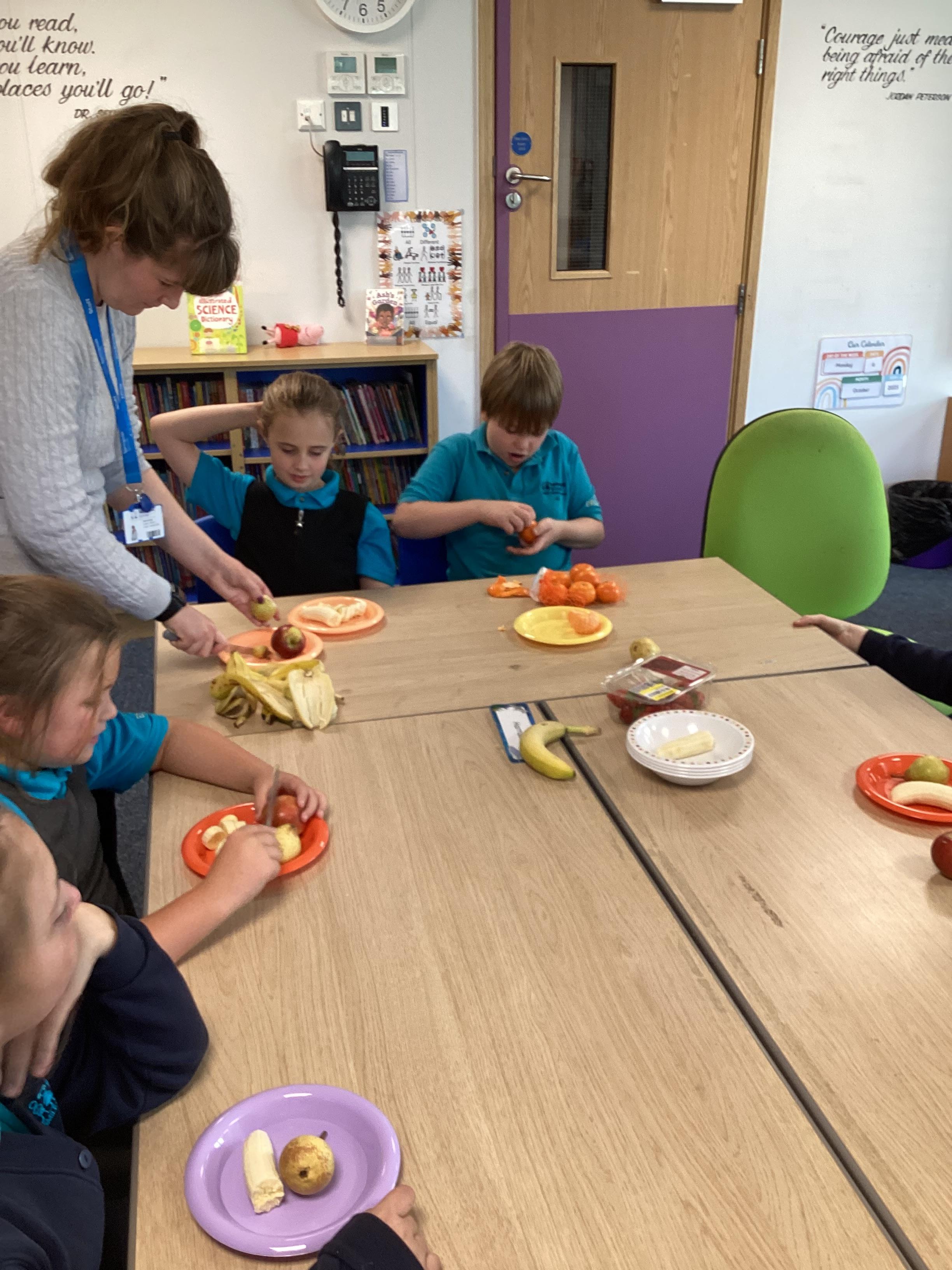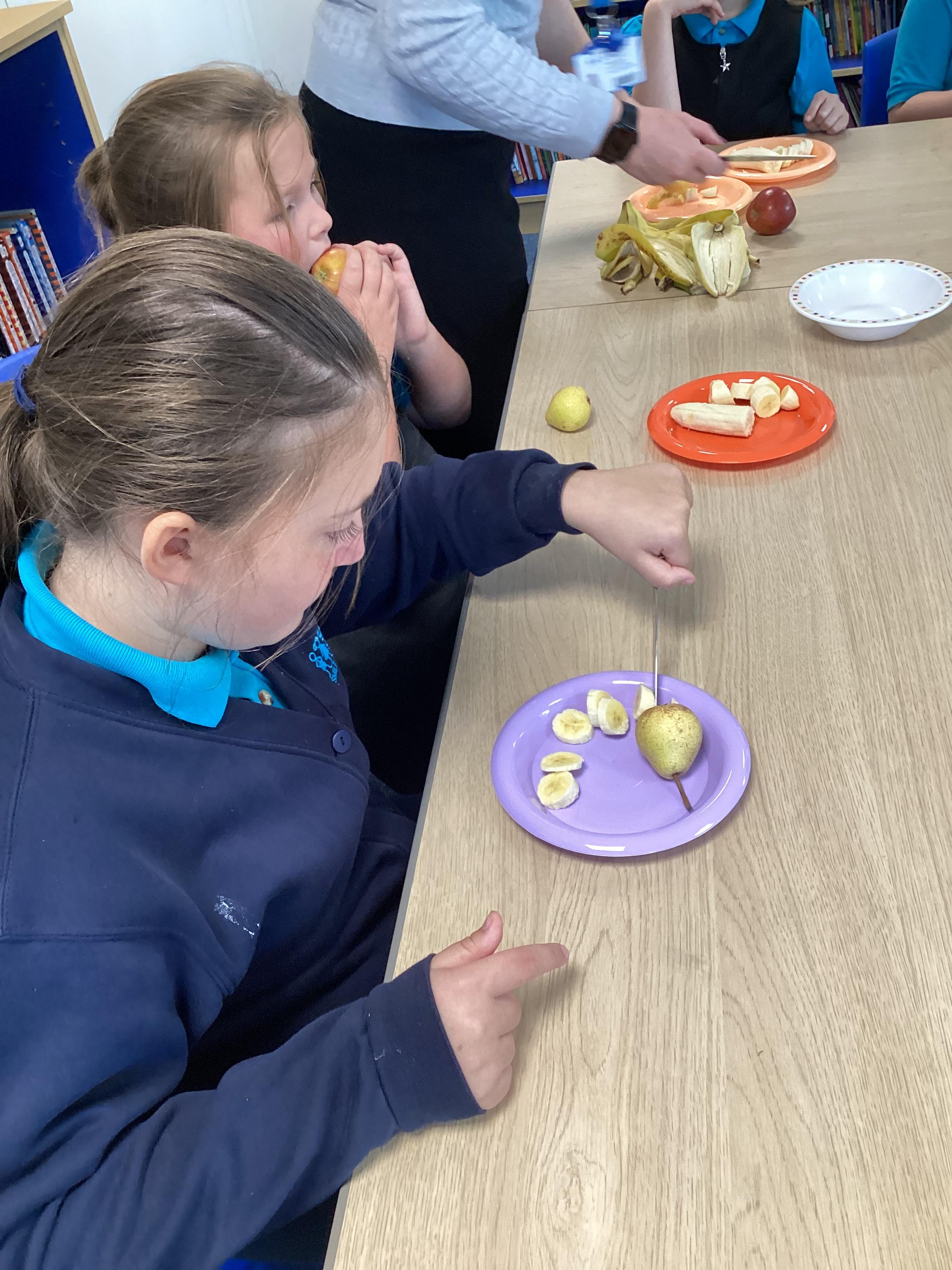 Monday 6th October 2025 - In PSHRE today, we have been leaning all about healthy and unhealthy foods. We looked at and discussed various foods, then sorted the foods into these two groups. We also chopped up various fruits to make our own, individual fruit salads. It was delicious!