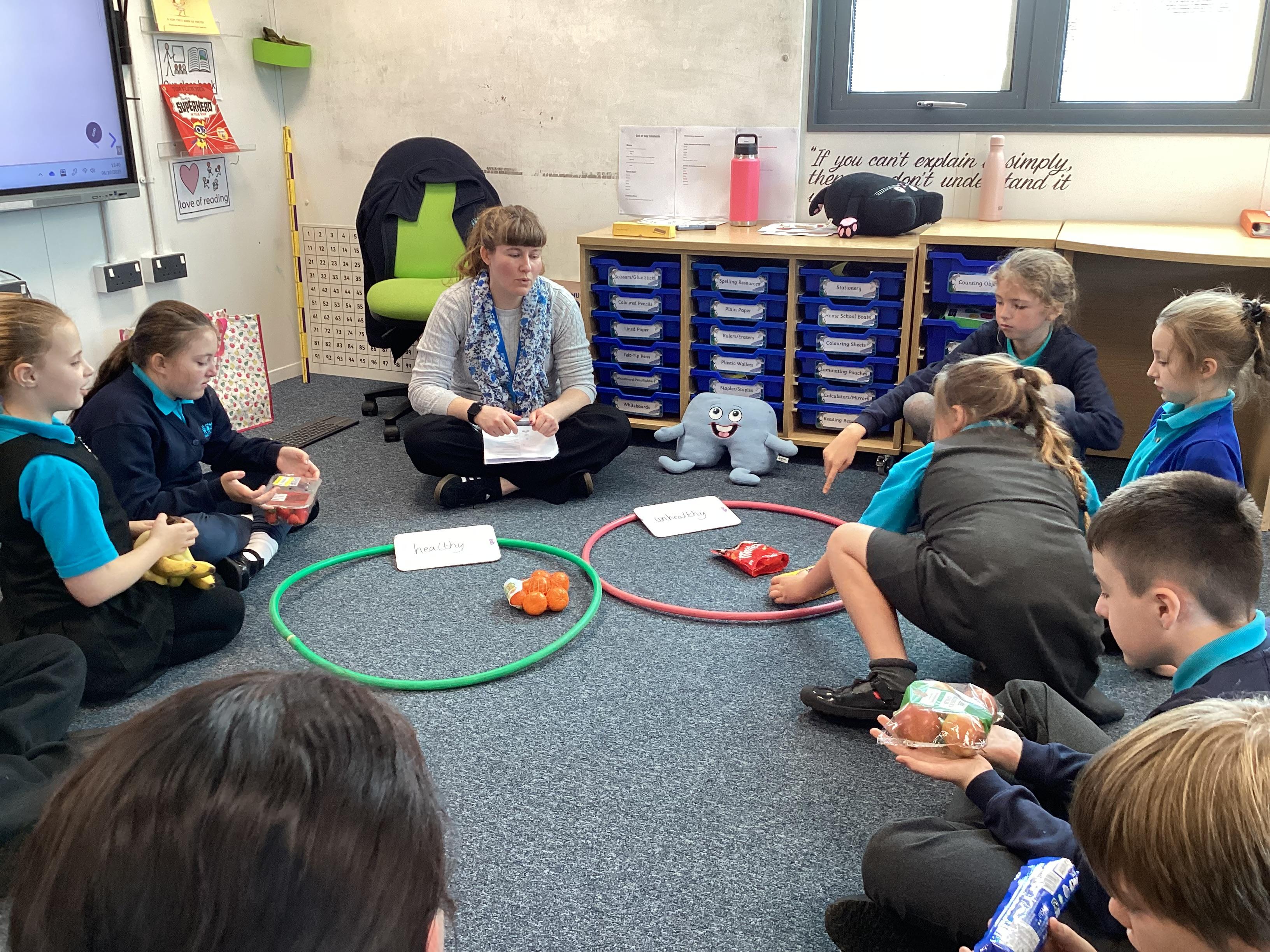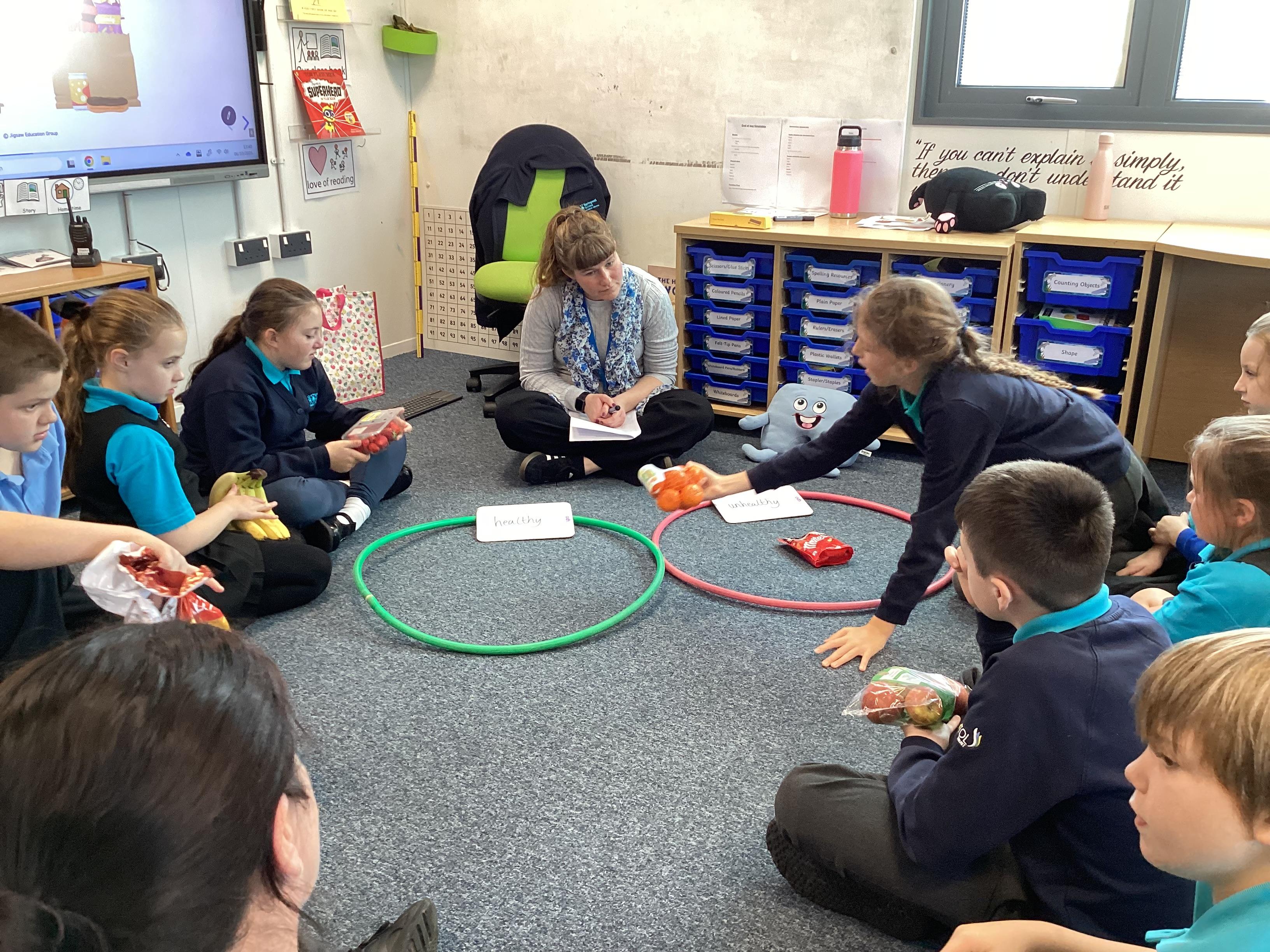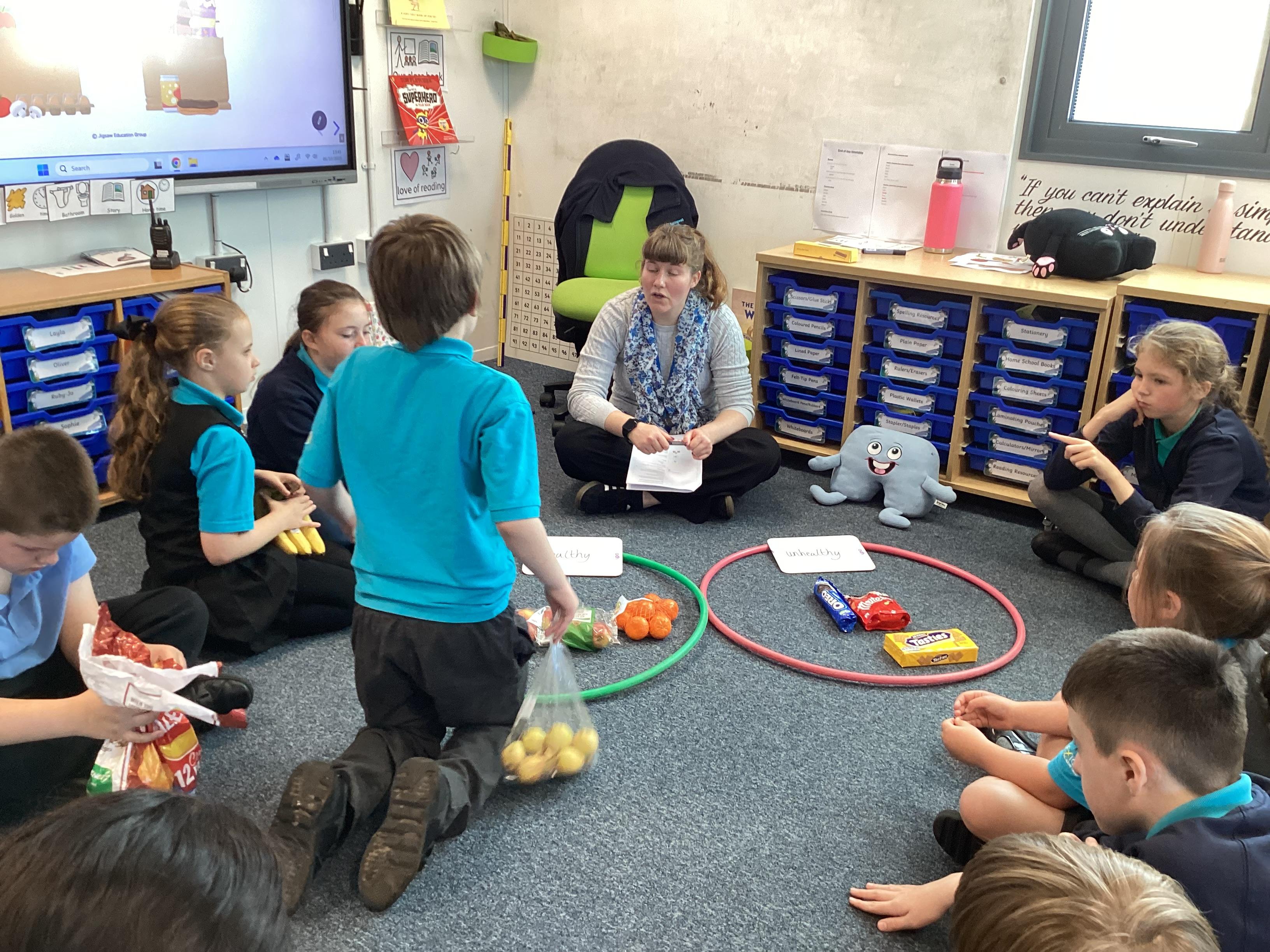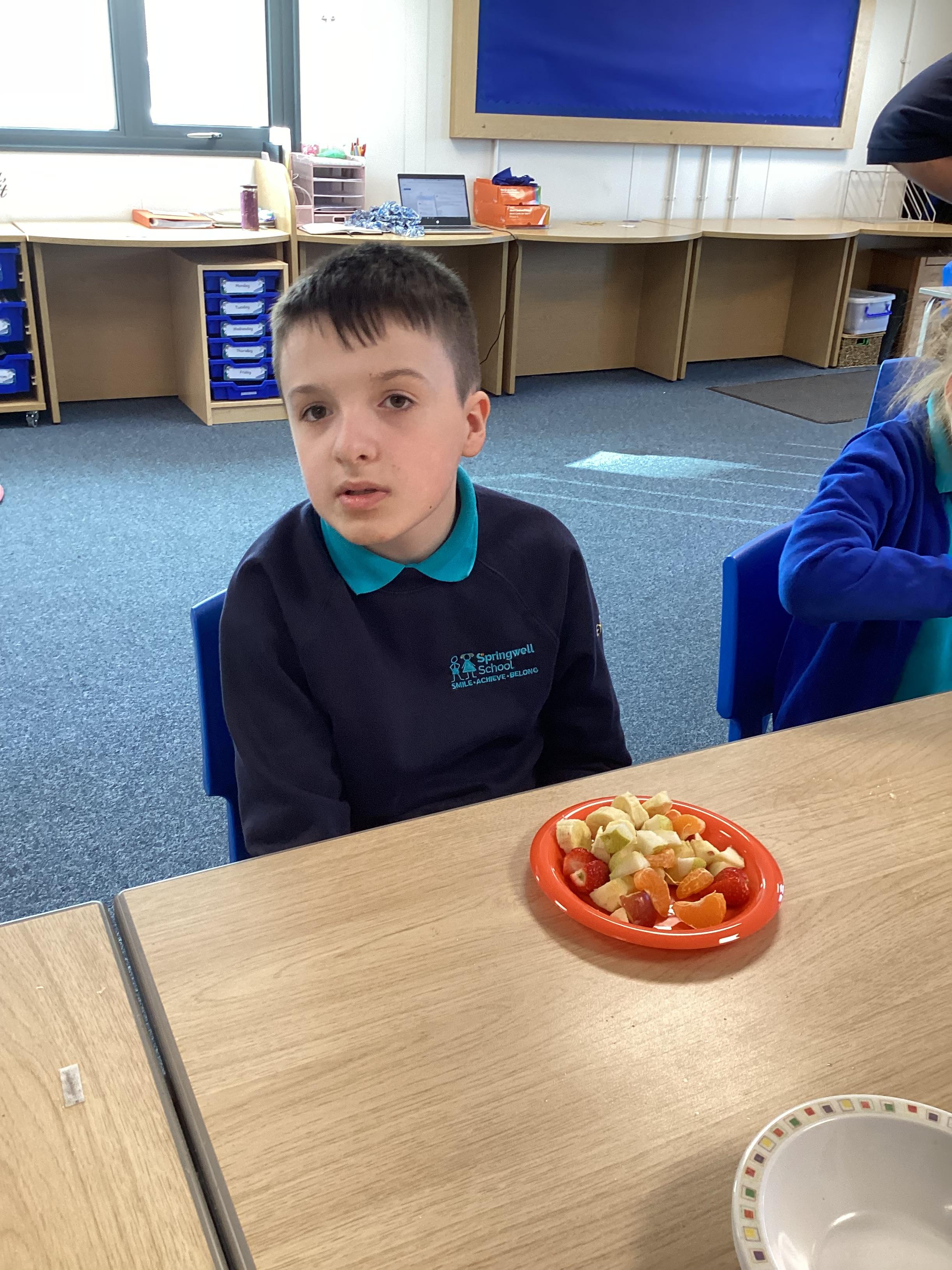Monday 6th October 2025 - In PSHRE today, we have been leaning all about healthy and unhealthy foods. We looked at and discussed various foods, then sorted the foods into these two groups. We also chopped up various fruits to make our own, individual fruit salads. It was delicious!