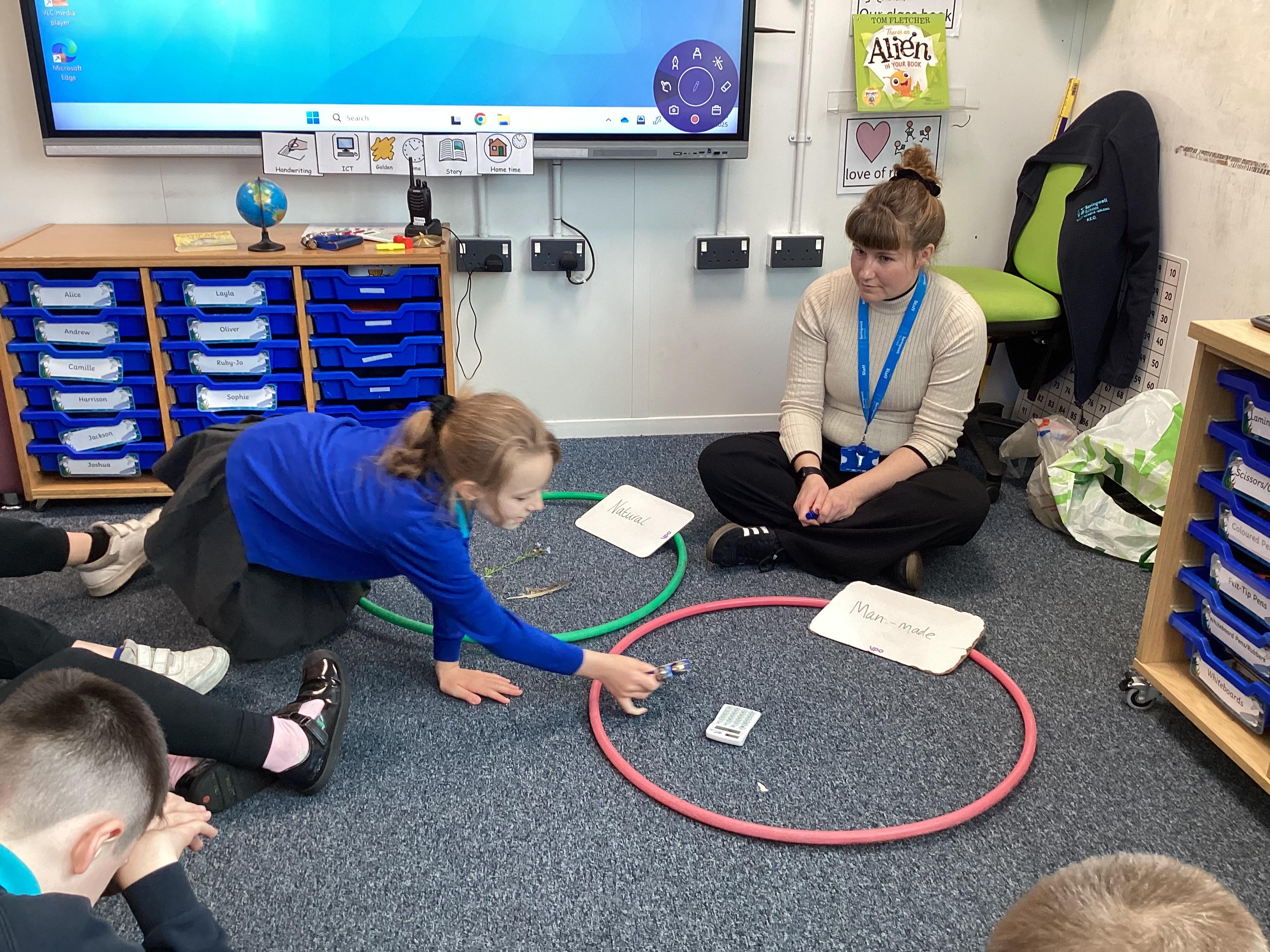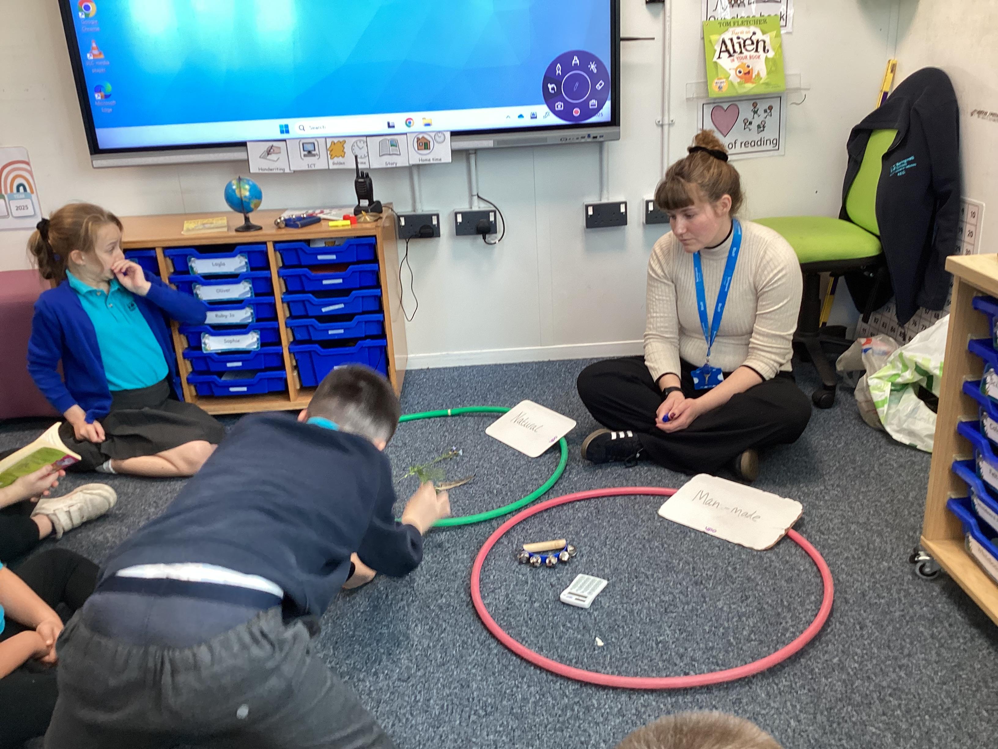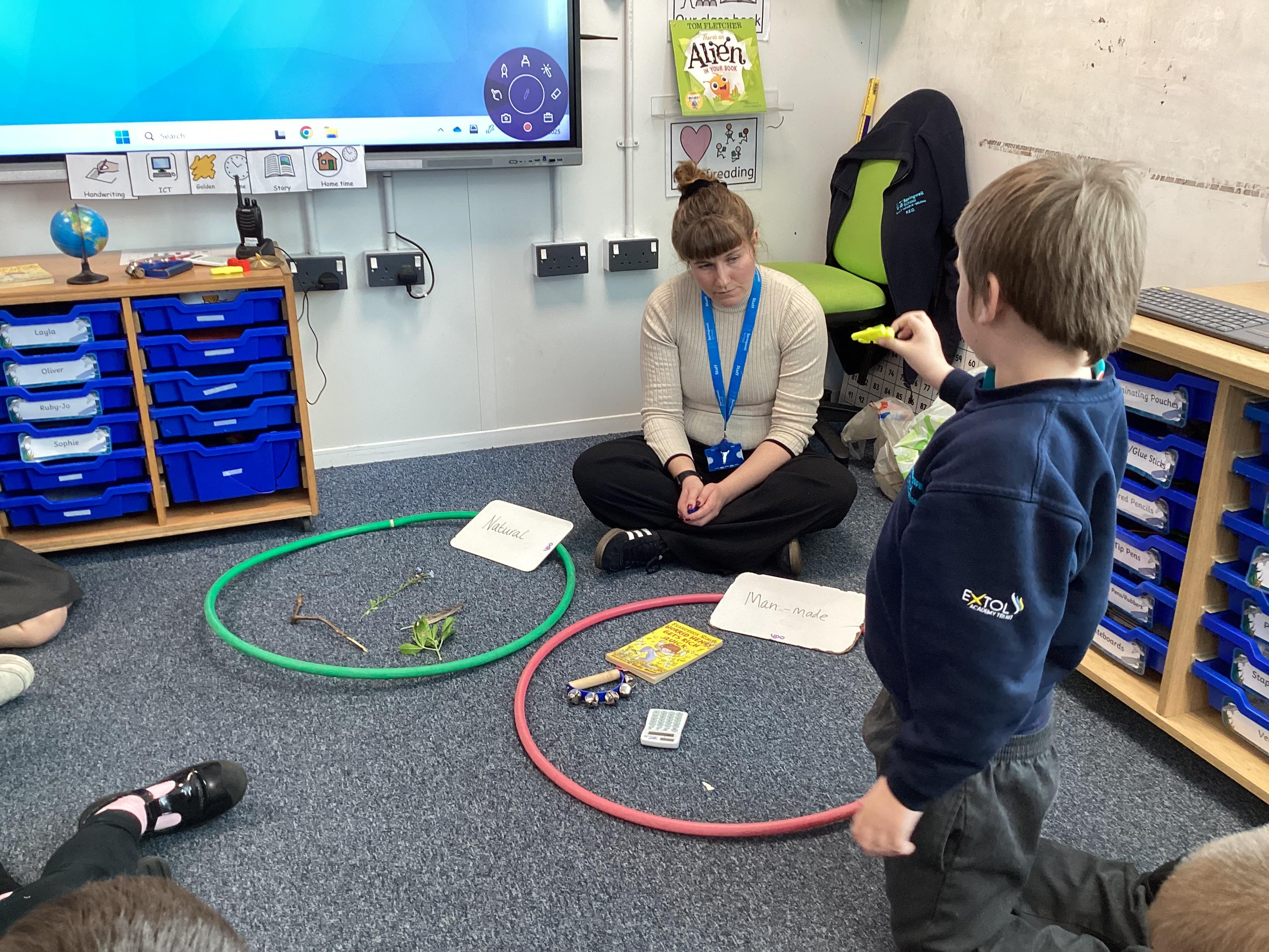 Tuesday 30th September 2025 - In Computing today, we went outside to find various natural items. We then discussed what 'natural' and 'man-made' mean. We played a game where we had to find the man-made items hidden in a bag, just by using our sense of touch. We then sorted the natural and man-made objects into hoops. Lots of FANTASTIC sorting!