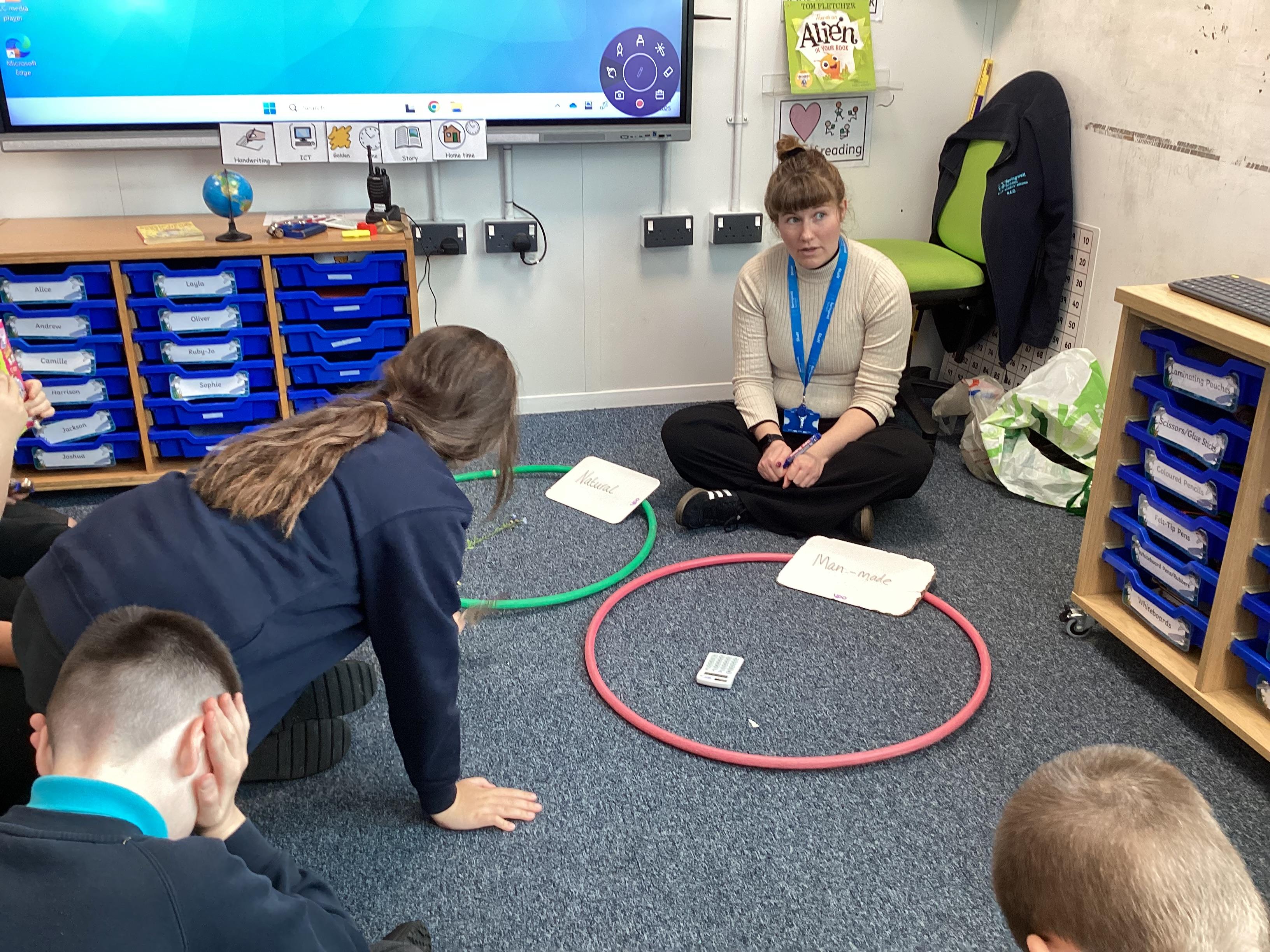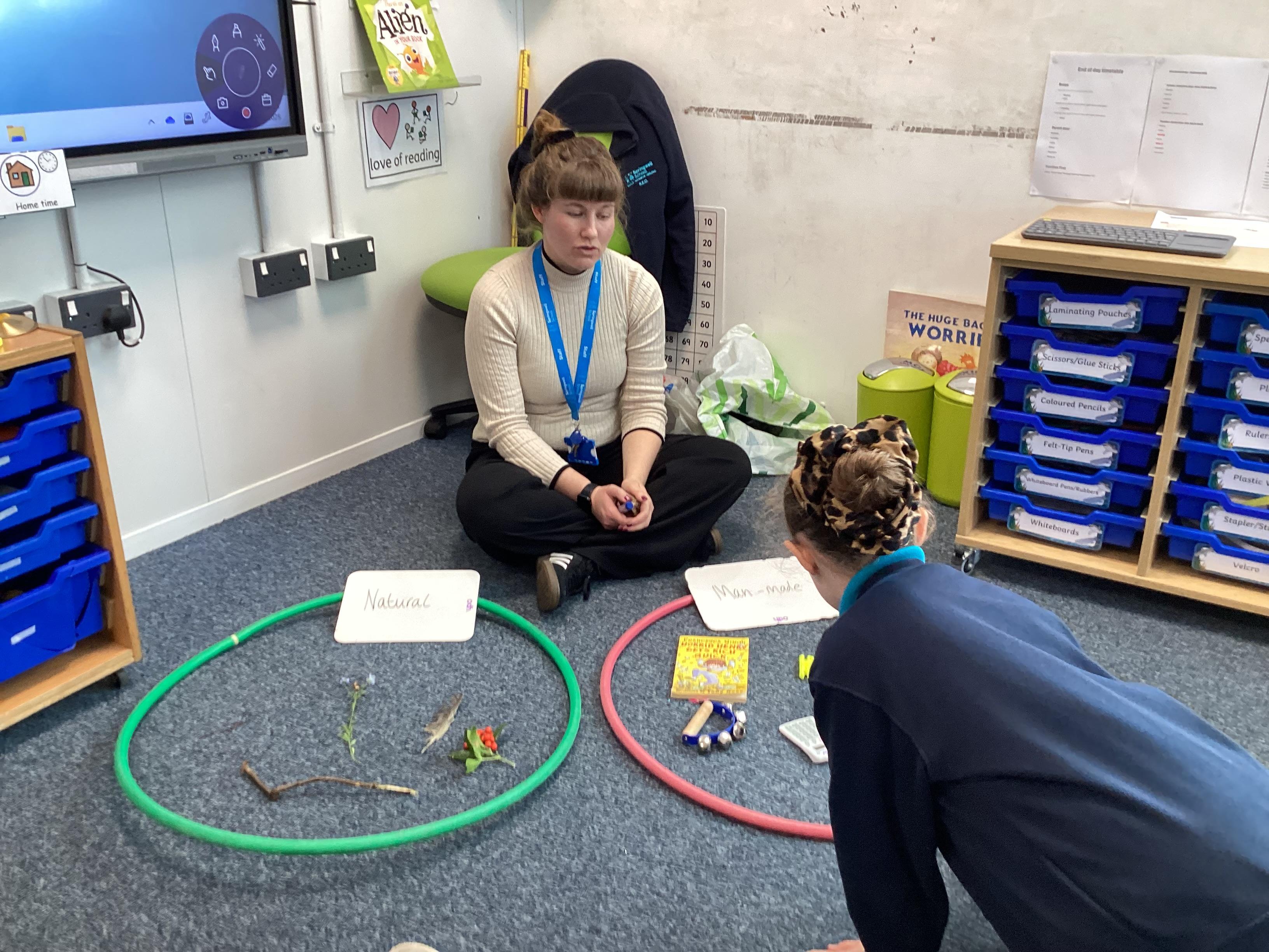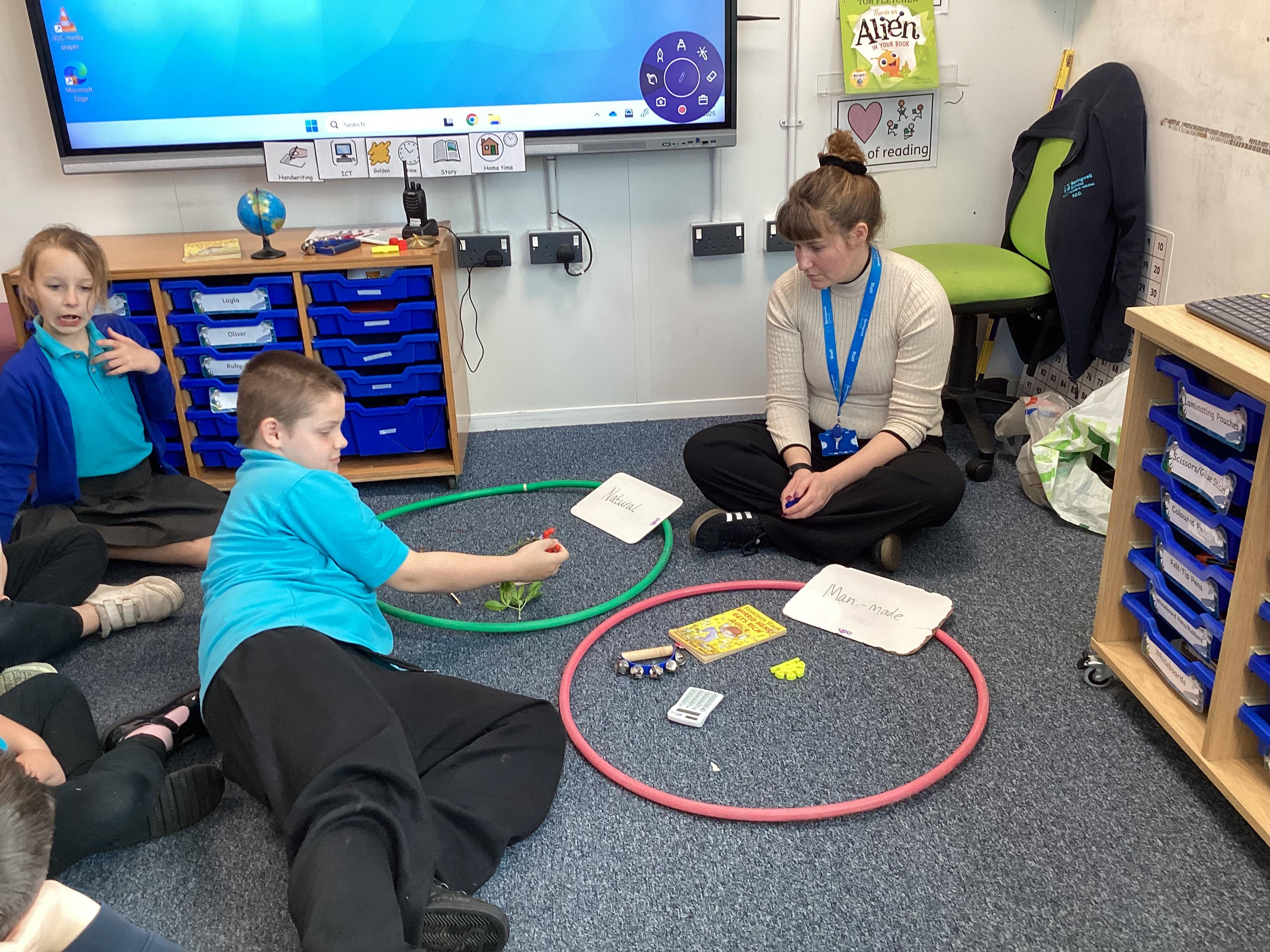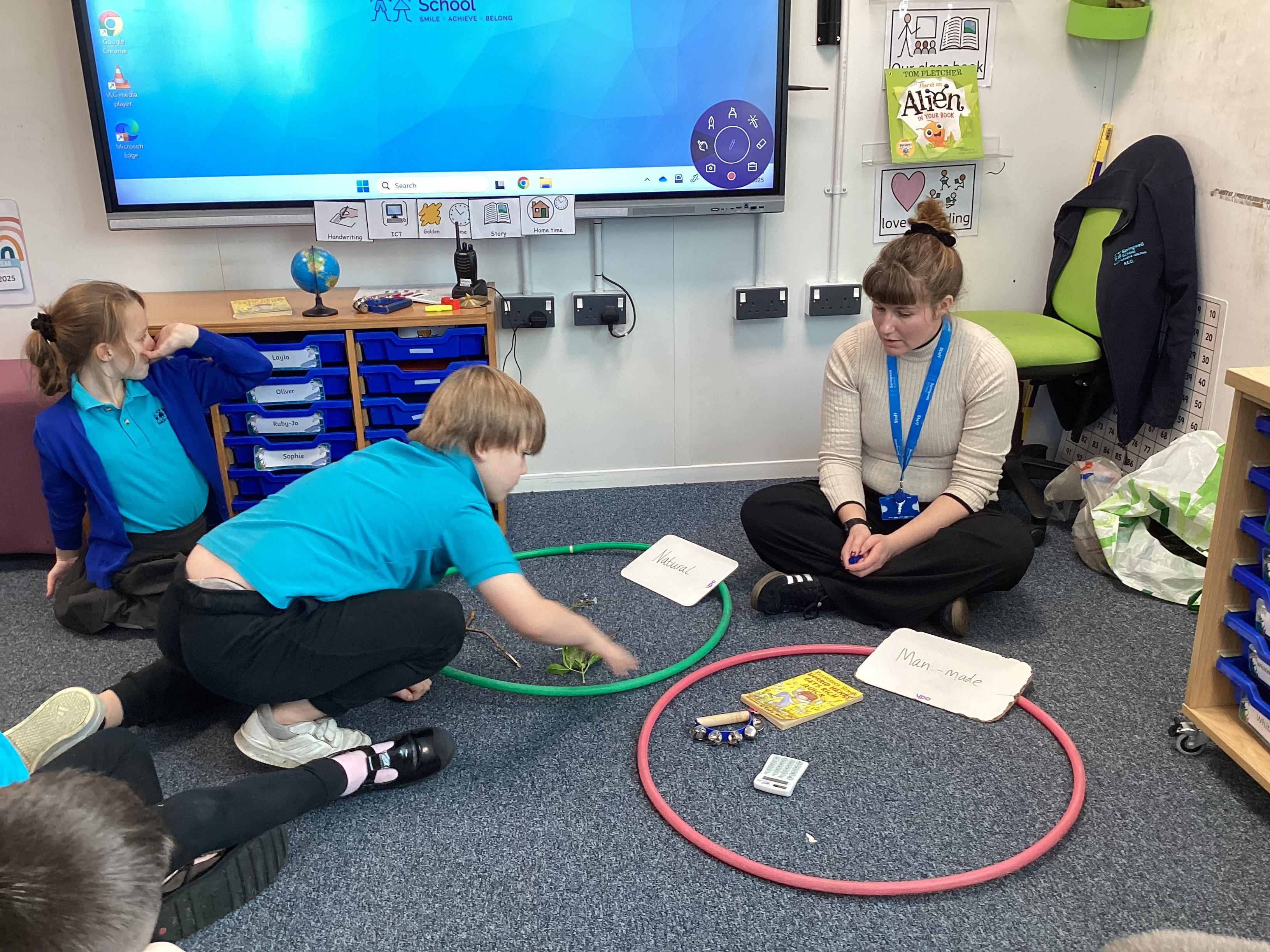 Tuesday 30th September 2025 - In Computing today, we went outside to find various natural items. We then discussed what 'natural' and 'man-made' mean. We played a game where we had to find the man-made items hidden in a bag, just by using our sense of touch. We then sorted the natural and man-made objects into hoops. Lots of FANTASTIC sorting!