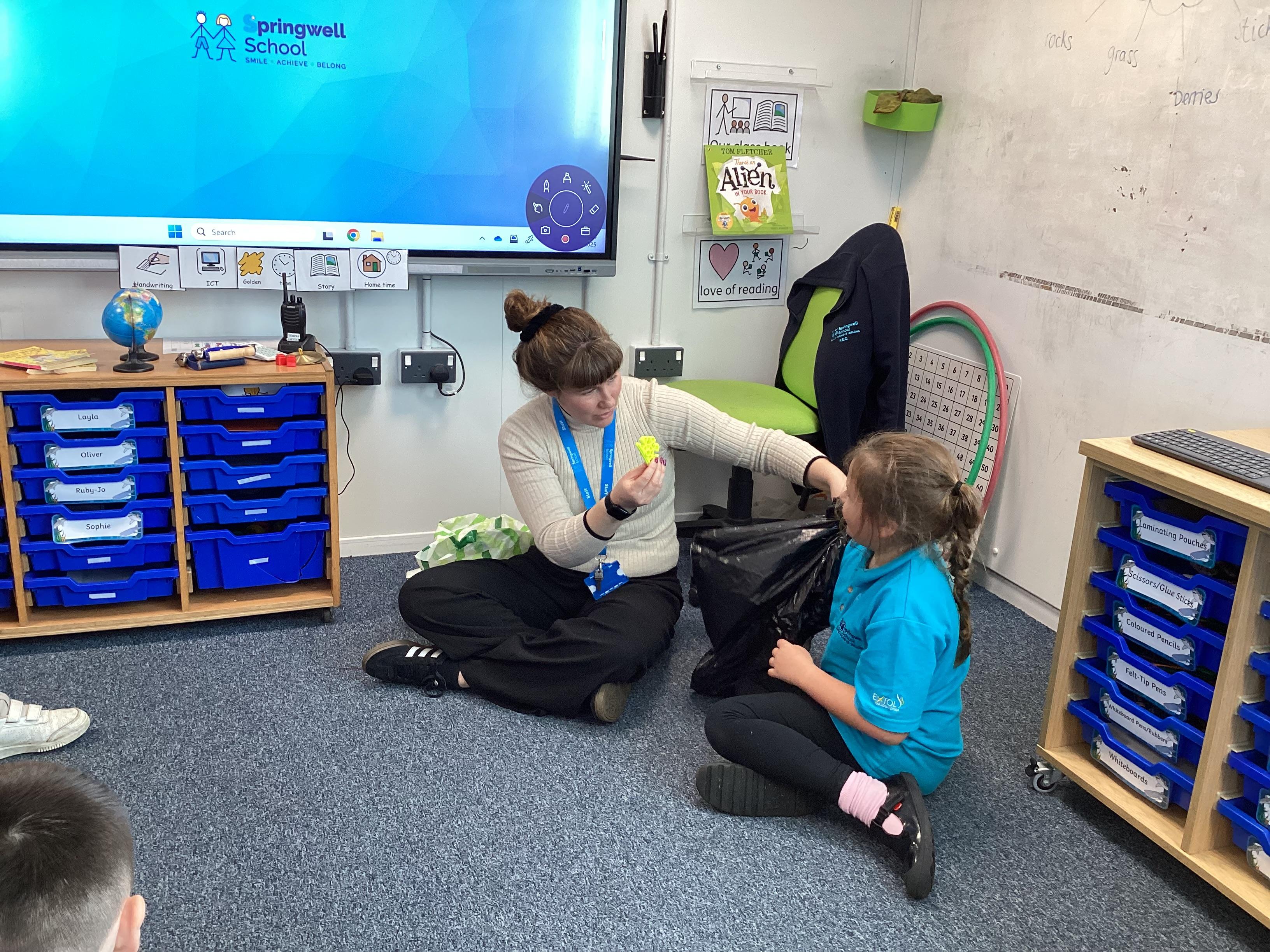 Friday 19th December 2025 - Santa came to visit us at Springwell School this afternoon. He brought lovely presents for all the children in Shark Class. Thank you, Santa!!!!!