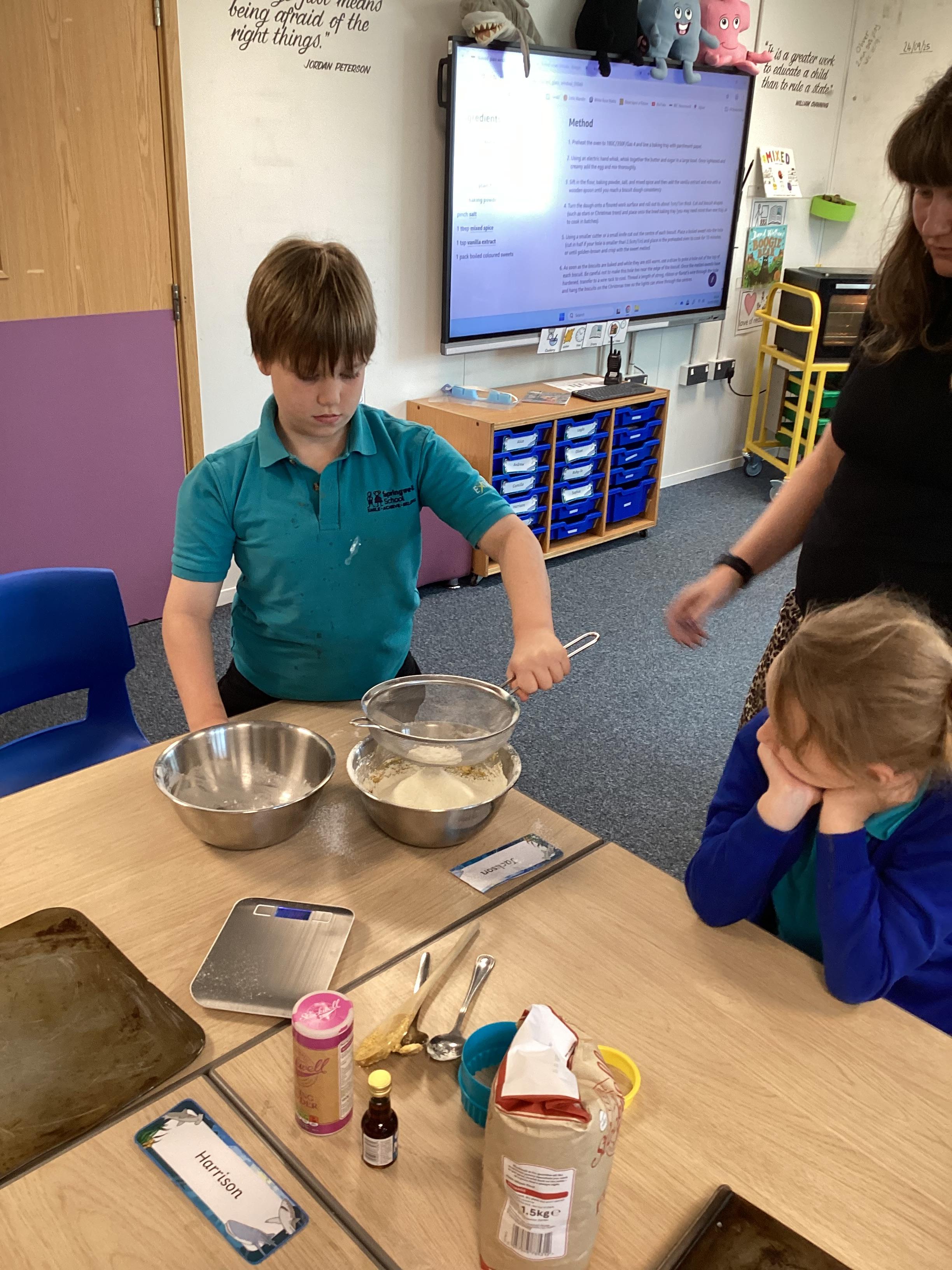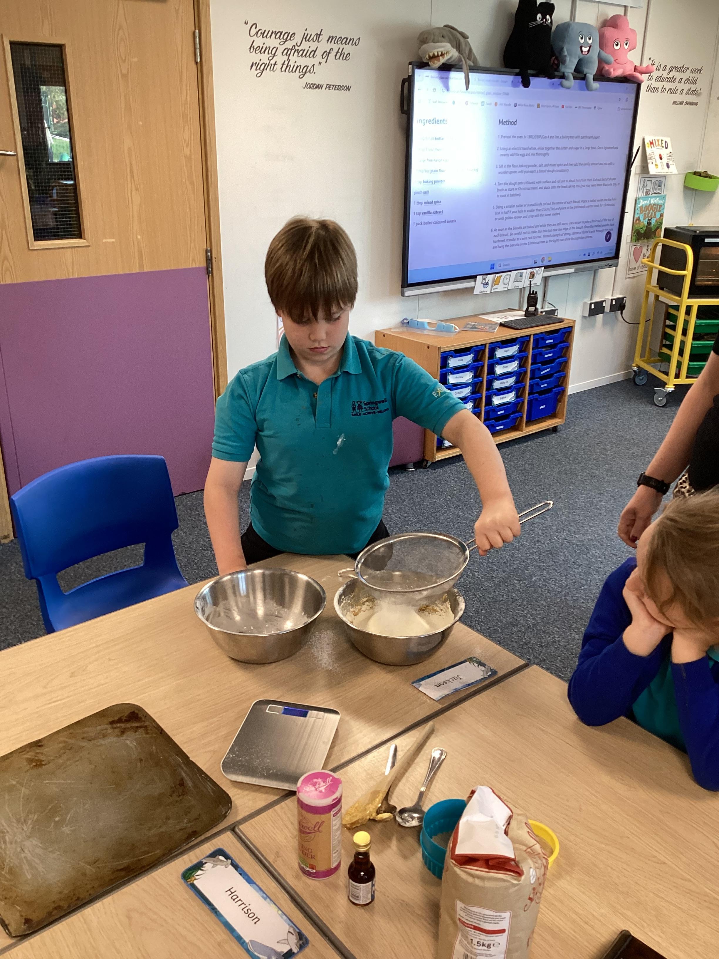 Wednesday 24th September 2025 - In Cookery today, we made some Translucent Biscuits, to link with our Science topic. We measured out the ingredients and mixed them together to make the dough. We then cut out the biscuit shapes, with a hole in the middle, then added a boiled sweet. Once they were cooked, they had a translucent (partly see-through) window in. They tasted delicious too!