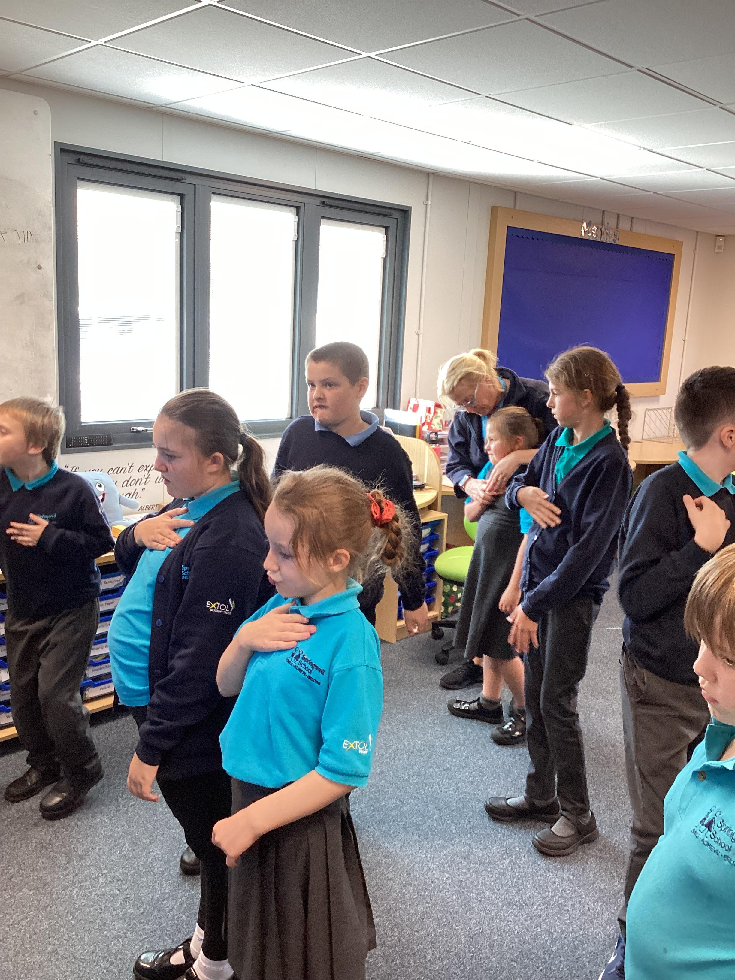 Thursday 18th September 2025 - In PSHRE today, we have been learning about how to stay healthy. We had to guess the different sports being described (football, tennis, trampoline etc). We then felt our hearts and talked about how they were beating. After jumping on the spot for a minute and felt our hearts again, we found that they were beating very fast and we felt tired.