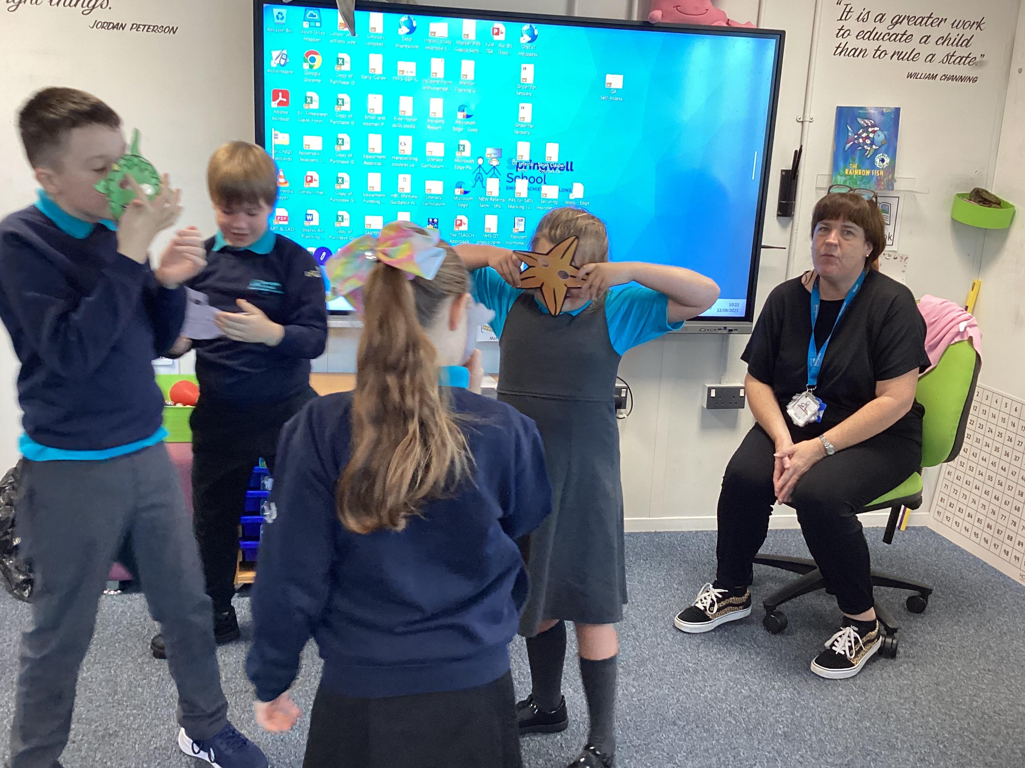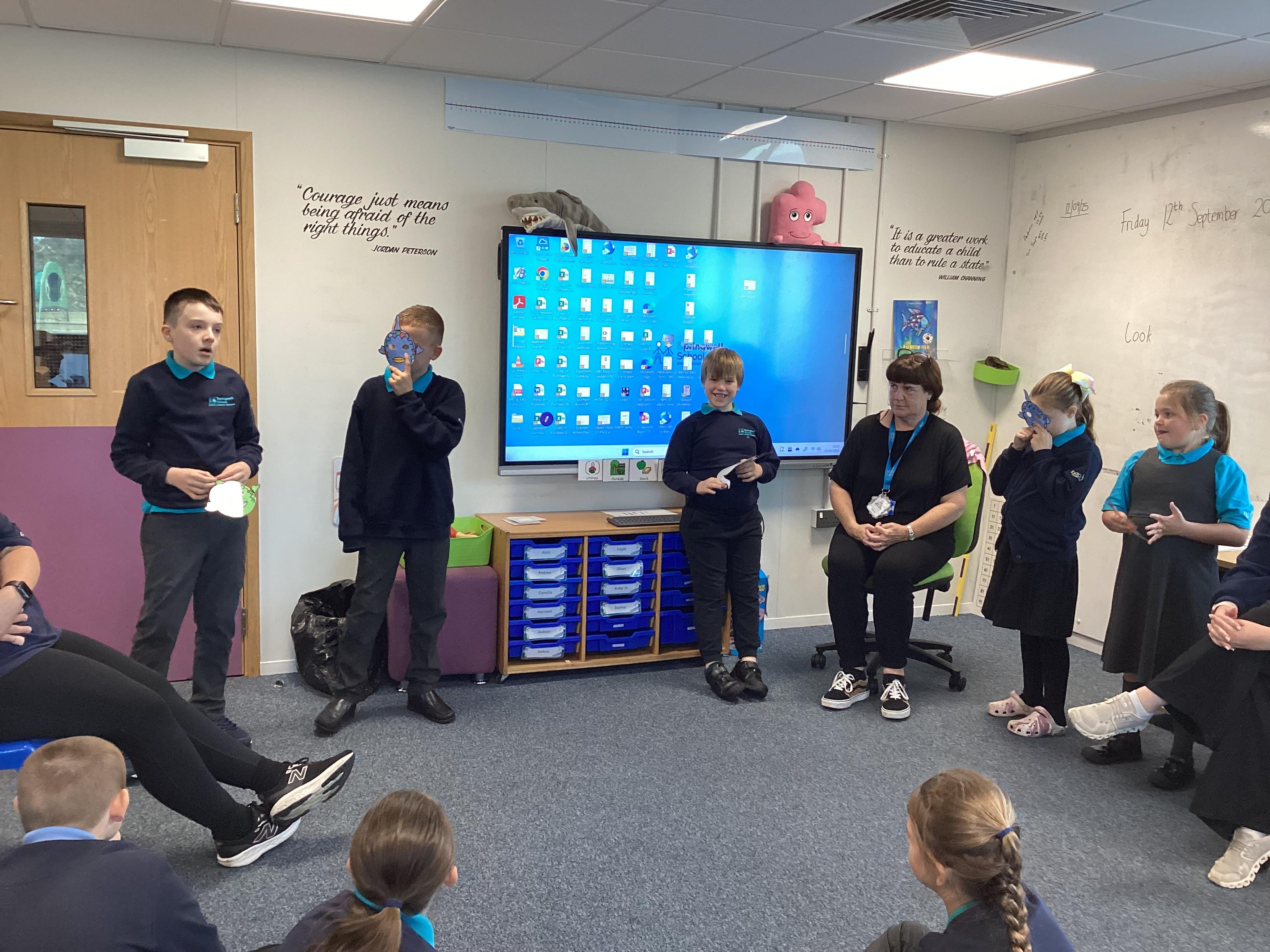 Friday 12th September 2025 - In Literacy today, we had lots of fun role-playing the story of 'The Rainbow Fish'. This has been our topic book for the last two weeks. Lots of fantastic acting!