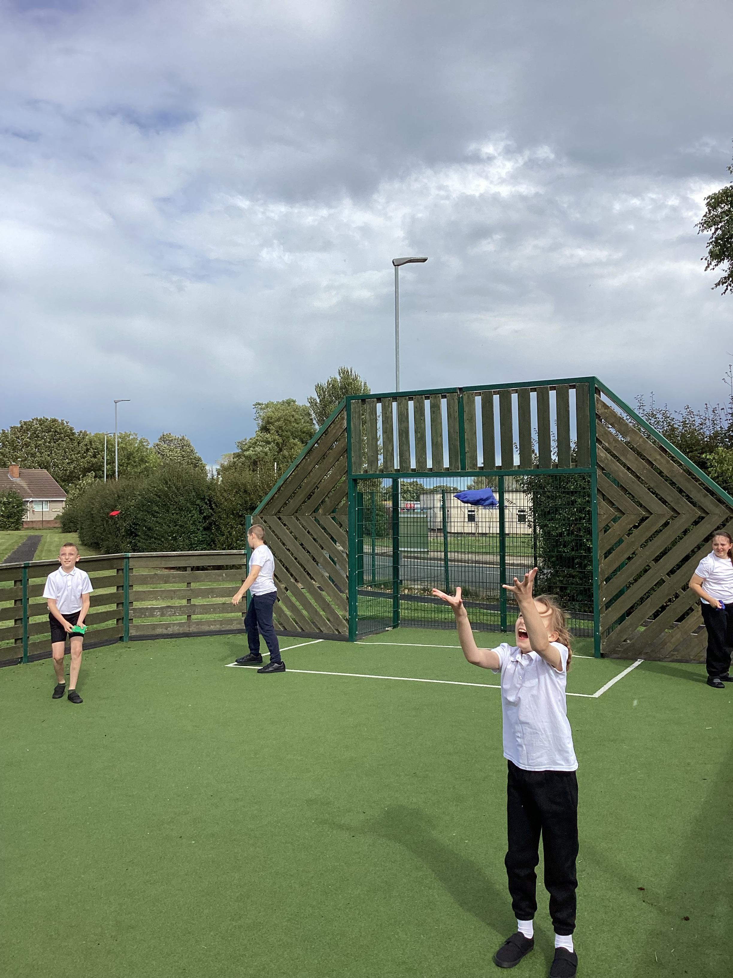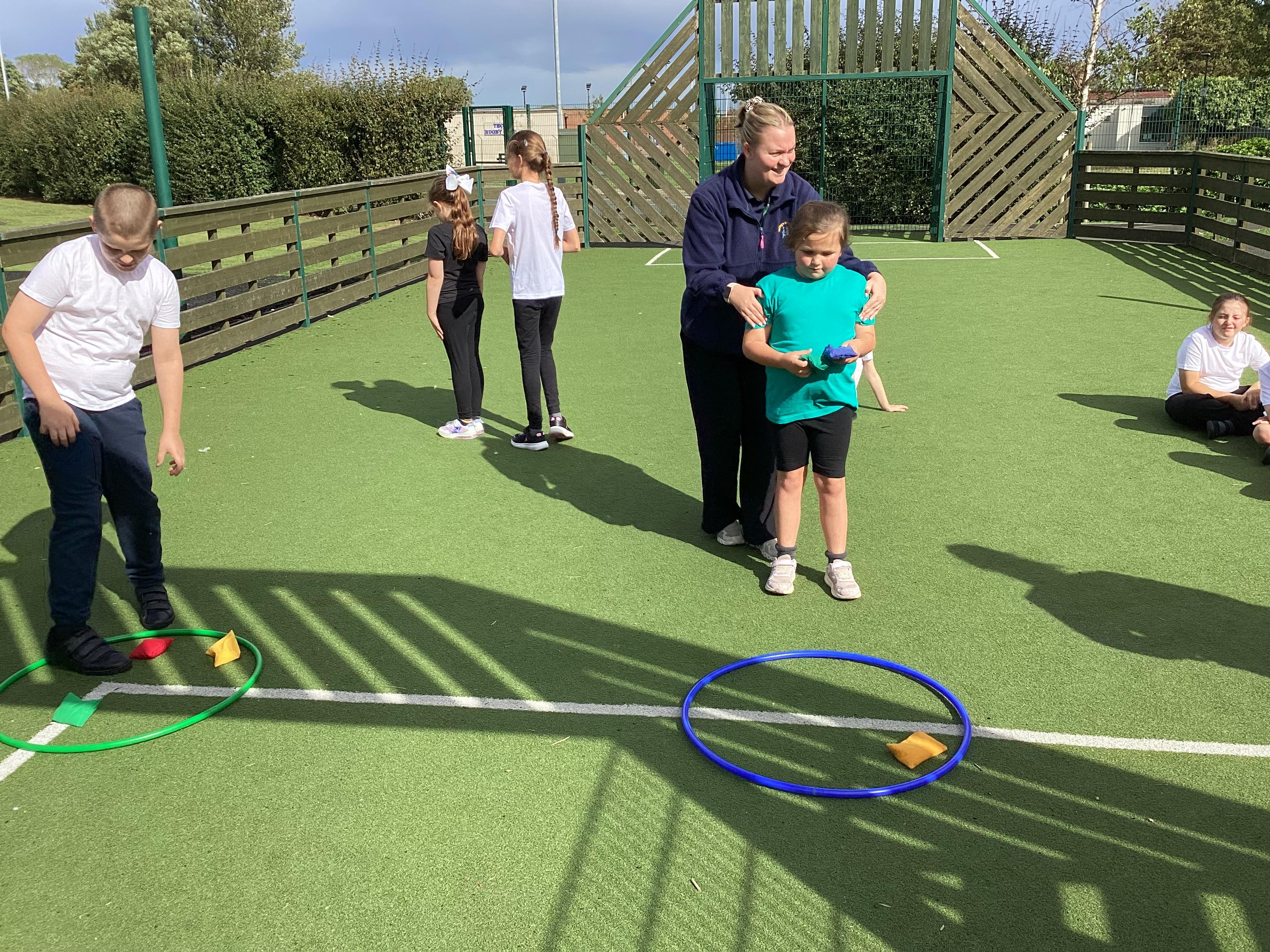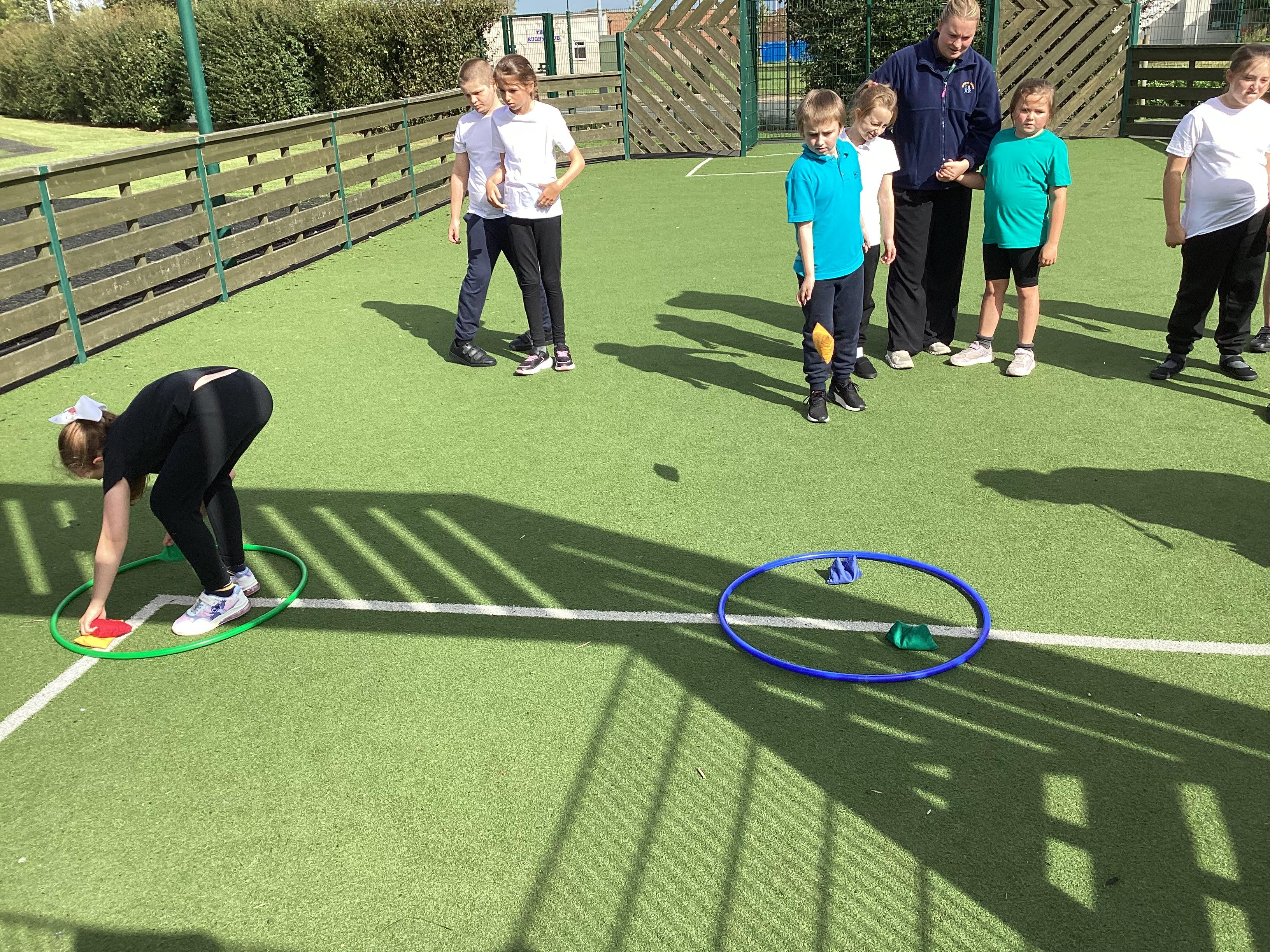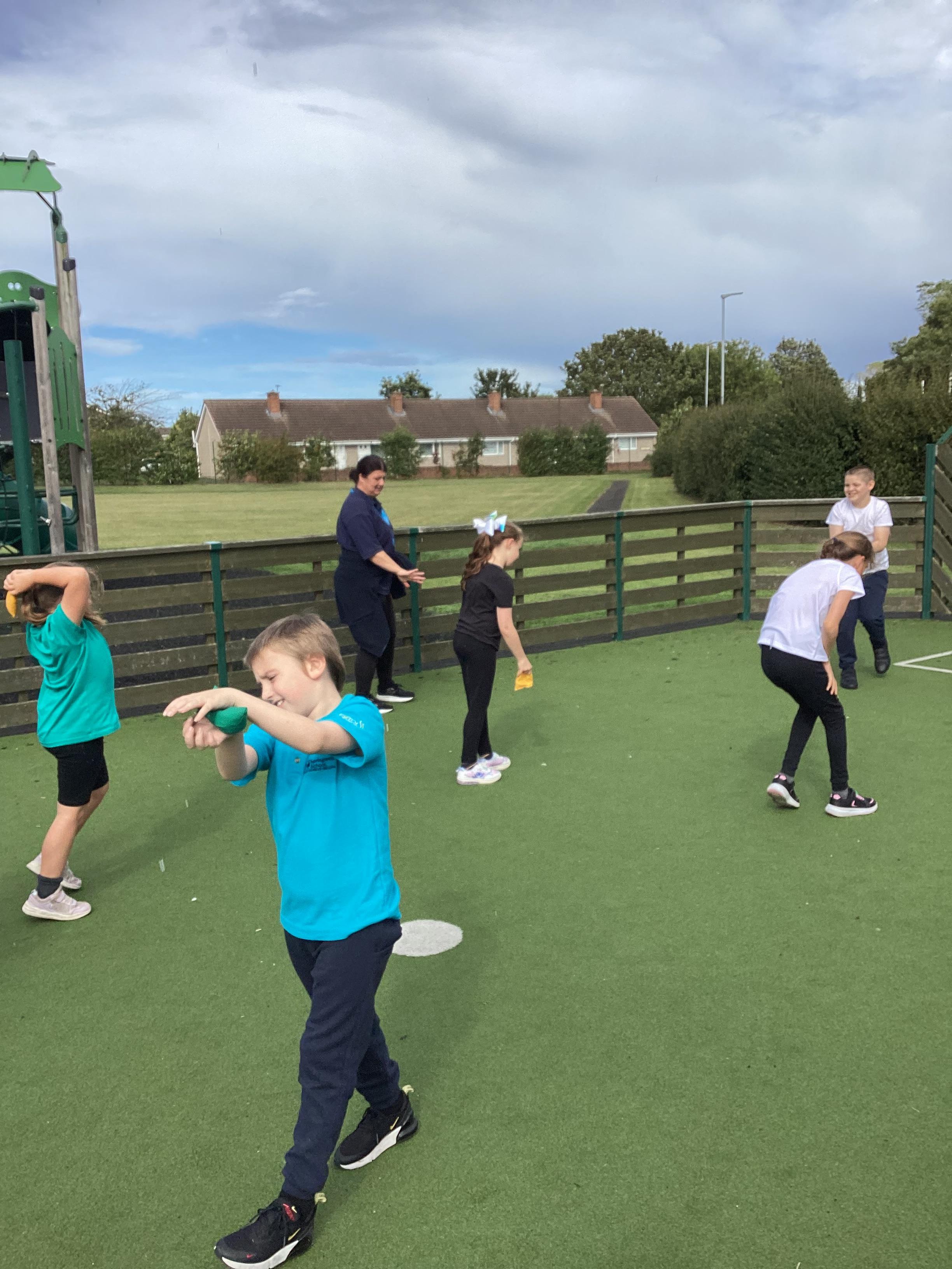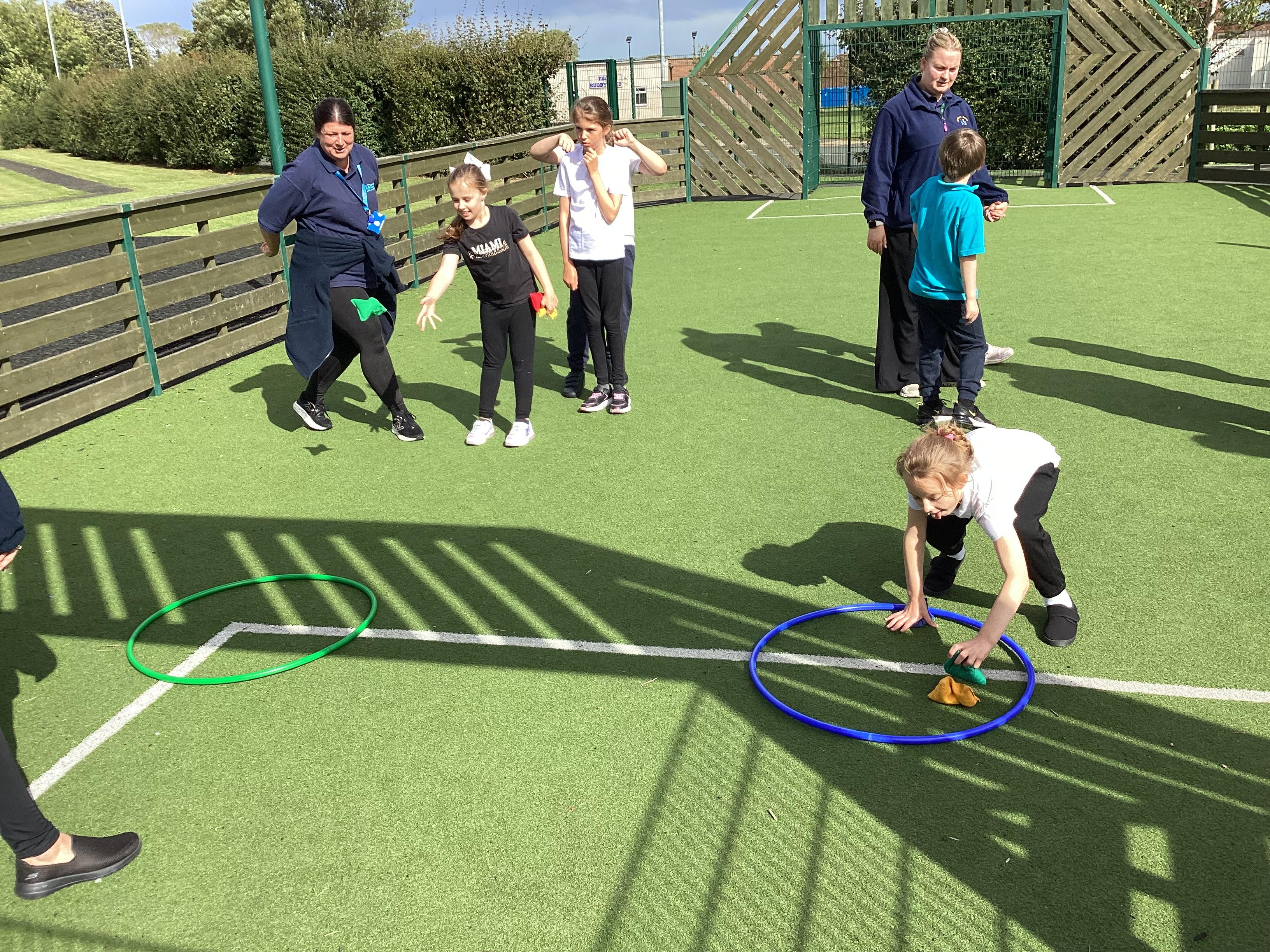 Thursday 11th September 2025 - In PE today, we have been practising our throwing. We were throwing beanbags high and low. We then took turn to throw beanbags into hoops.