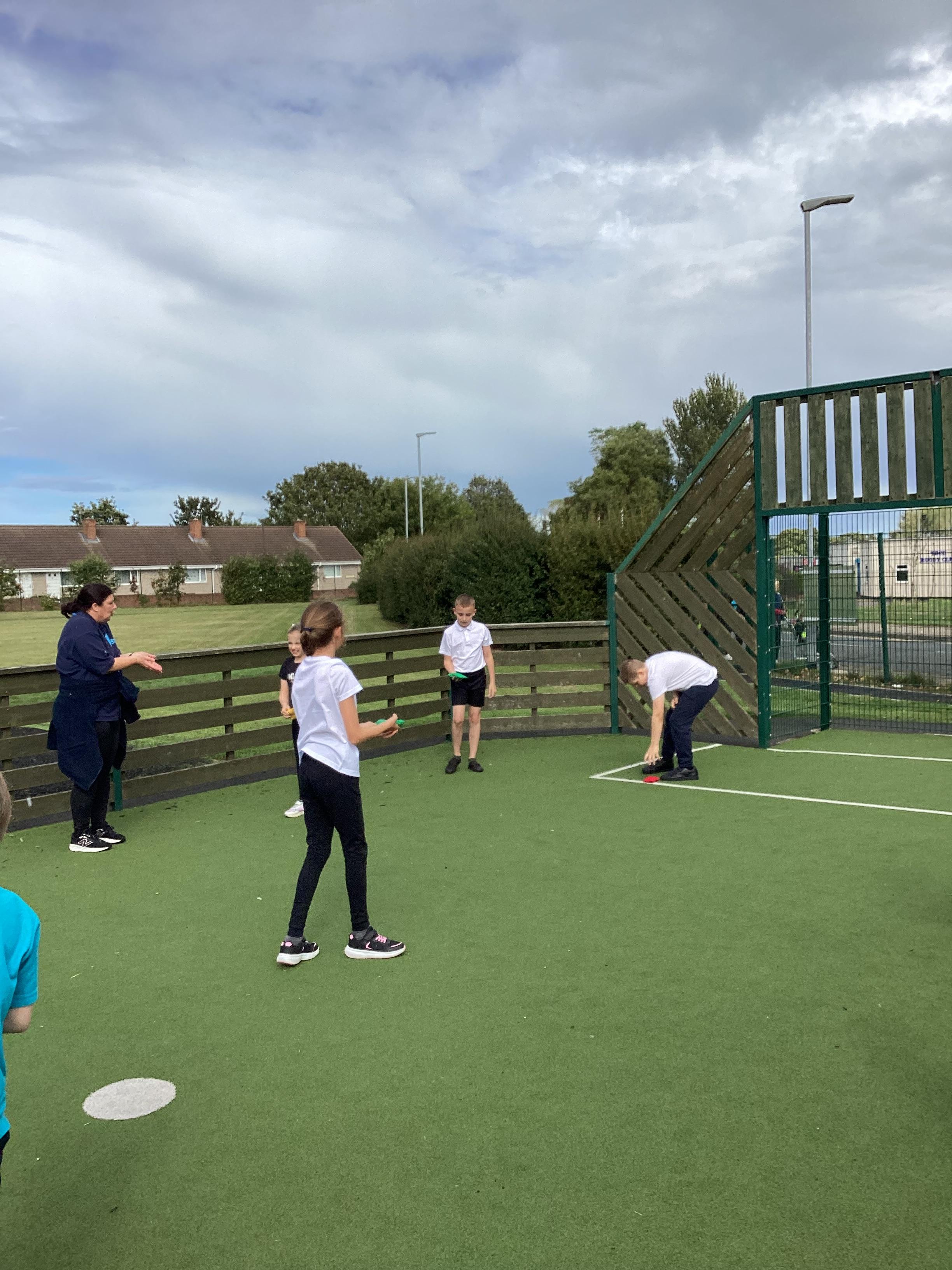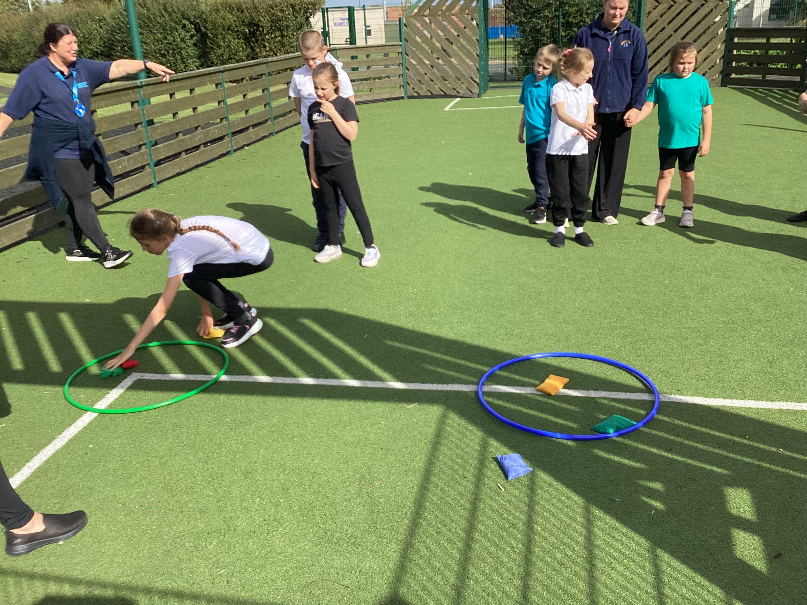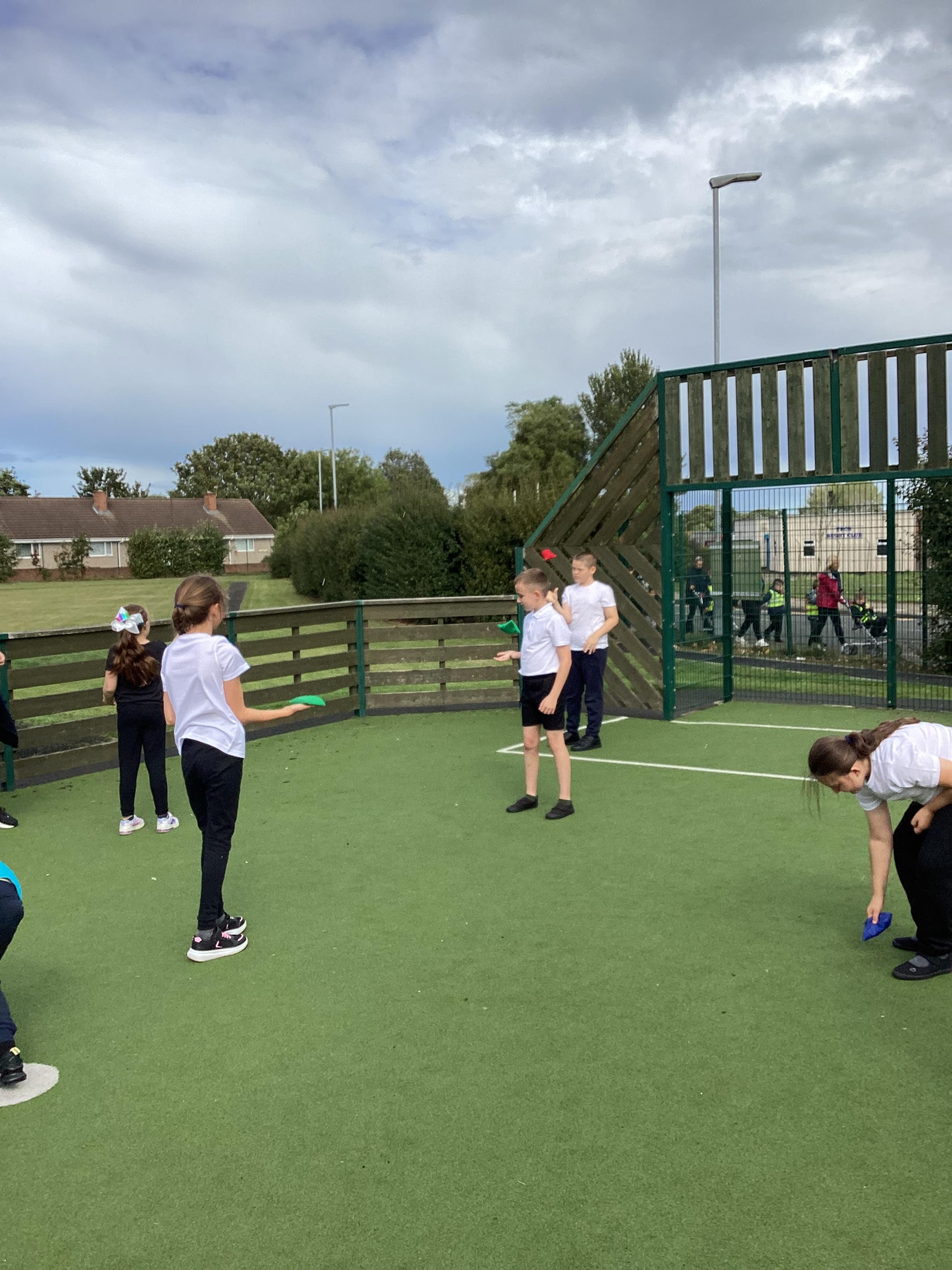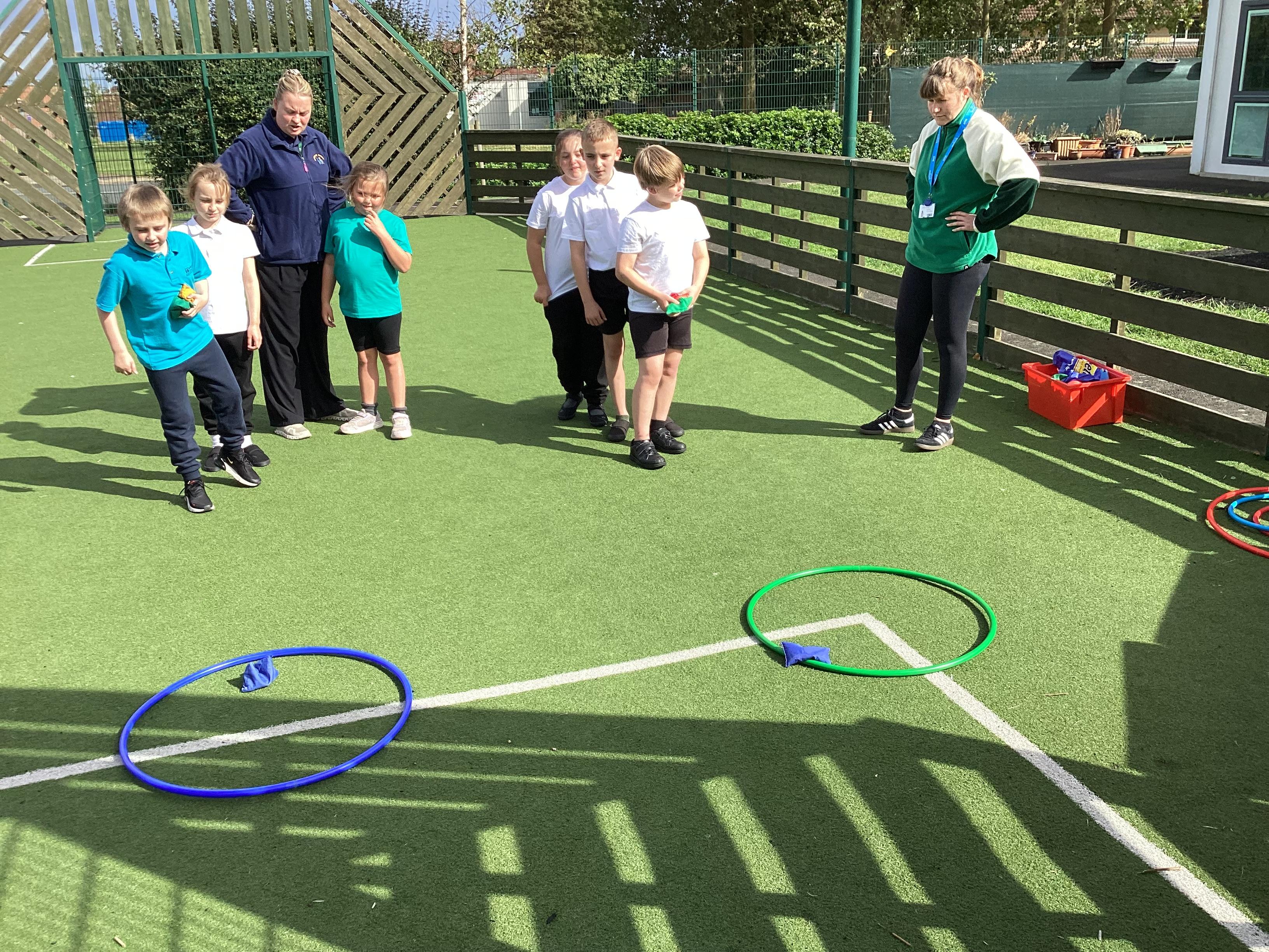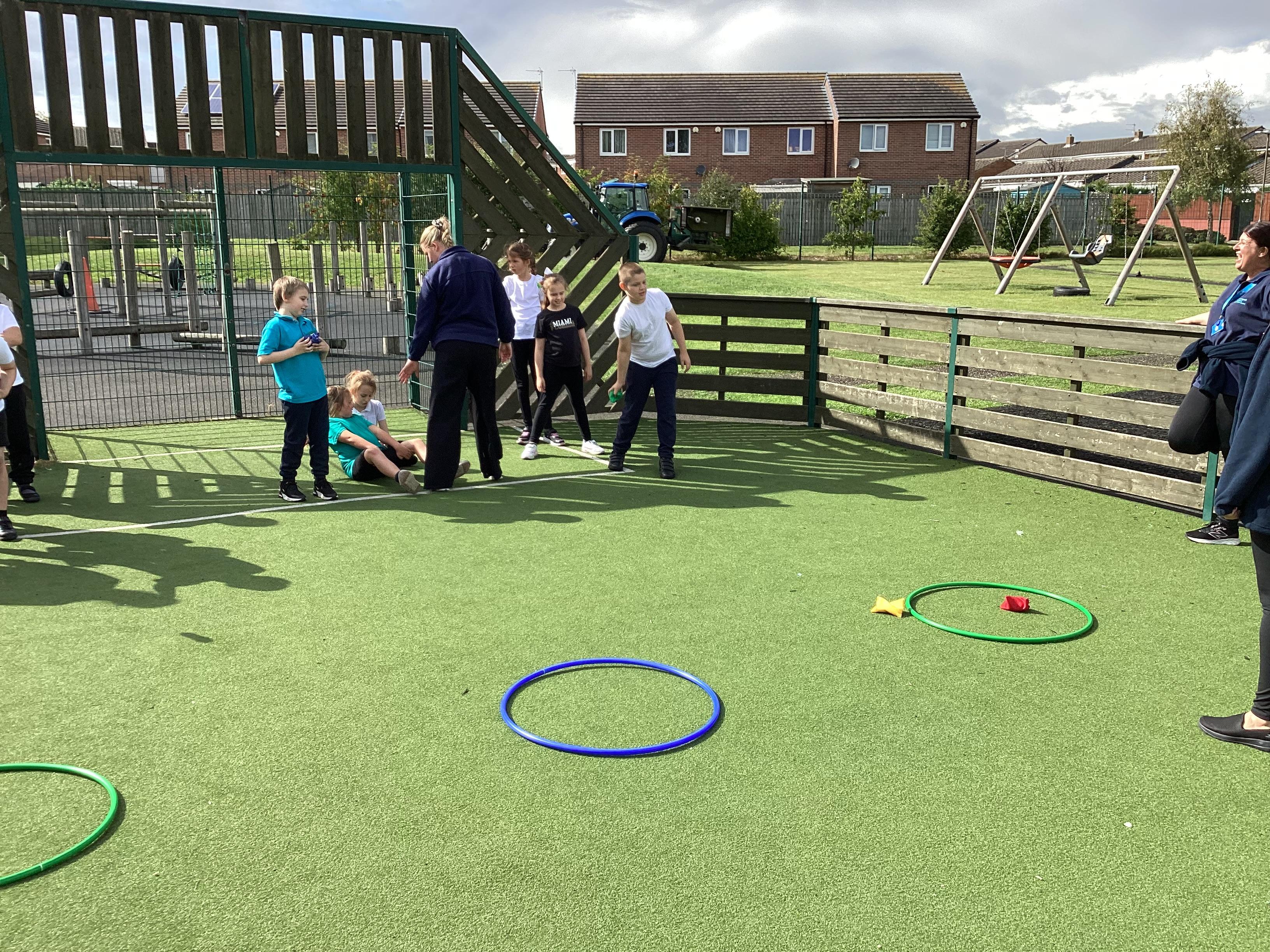 Thursday 11th September 2025 - In PE today, we have been practising our throwing. We were throwing beanbags high and low. We then took turn to throw beanbags into hoops.