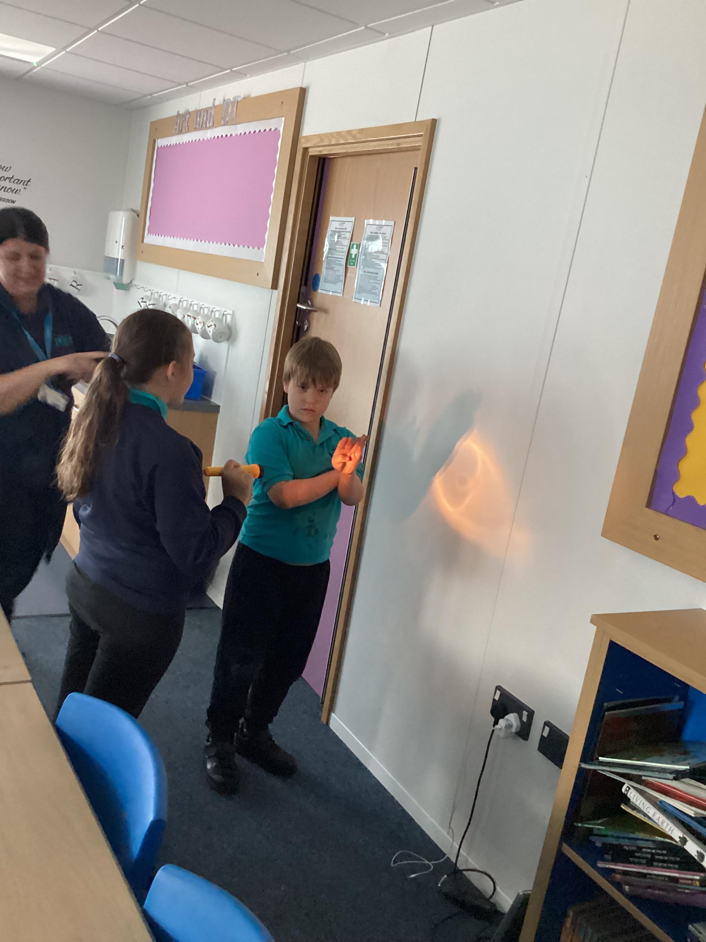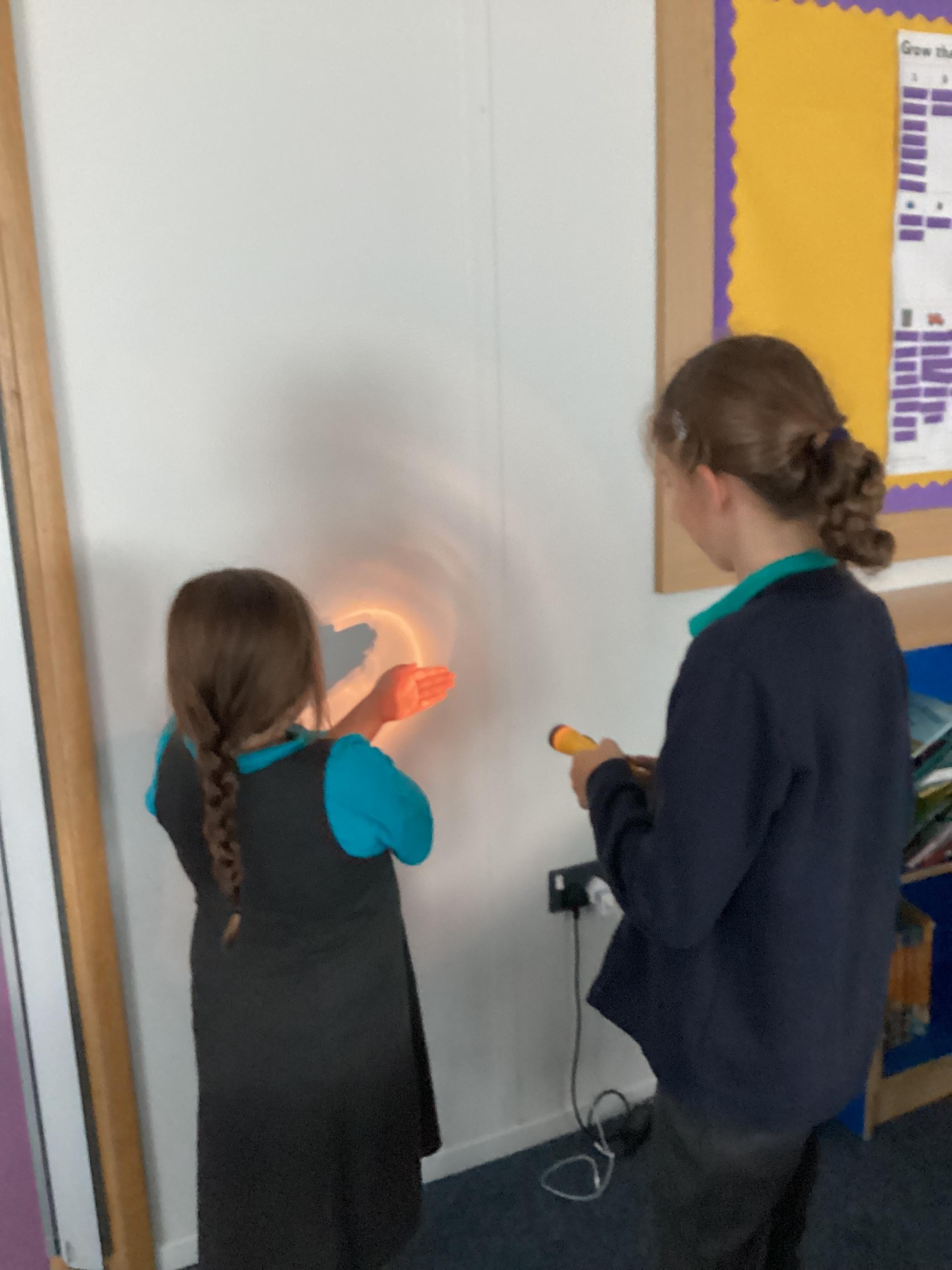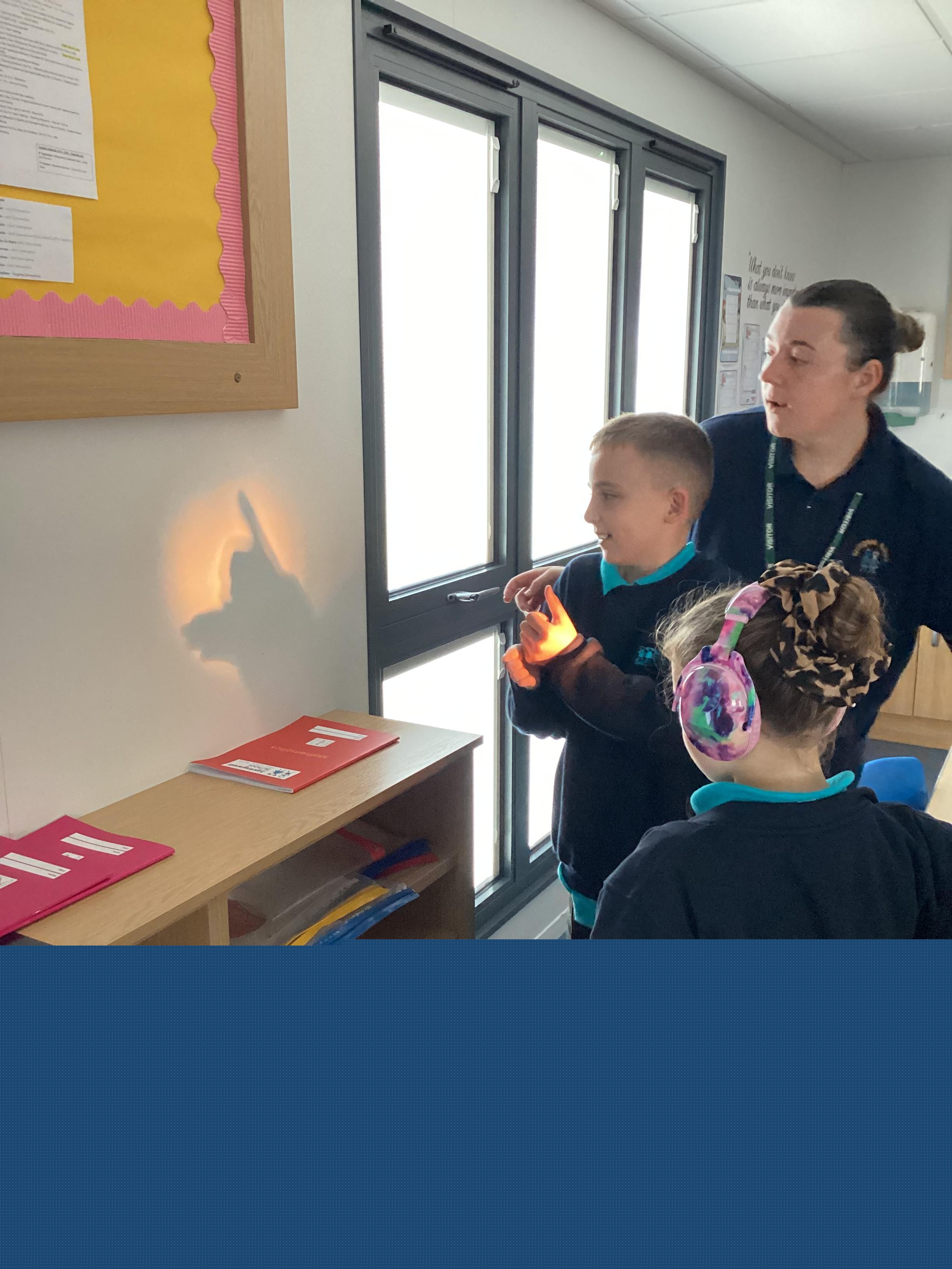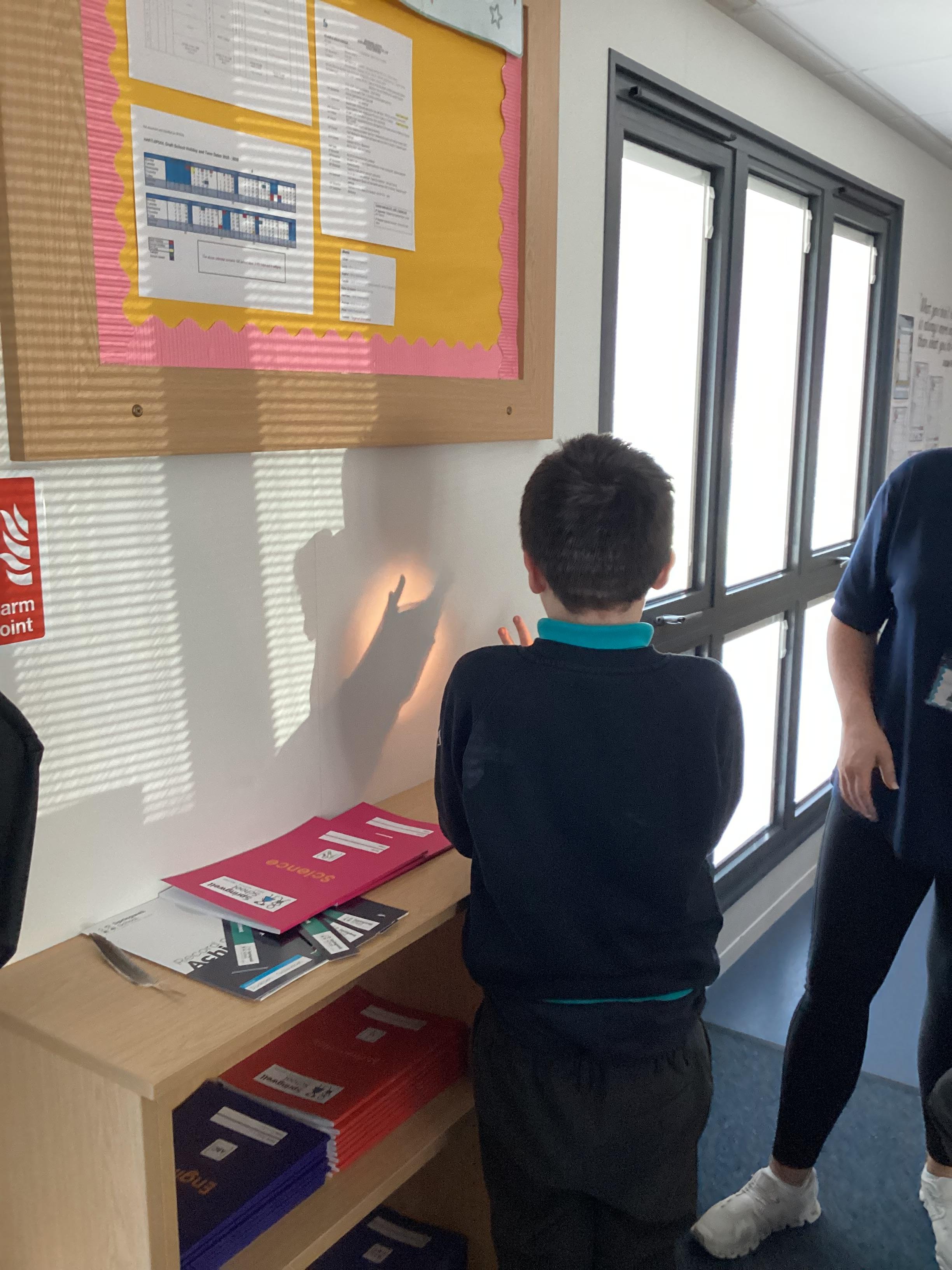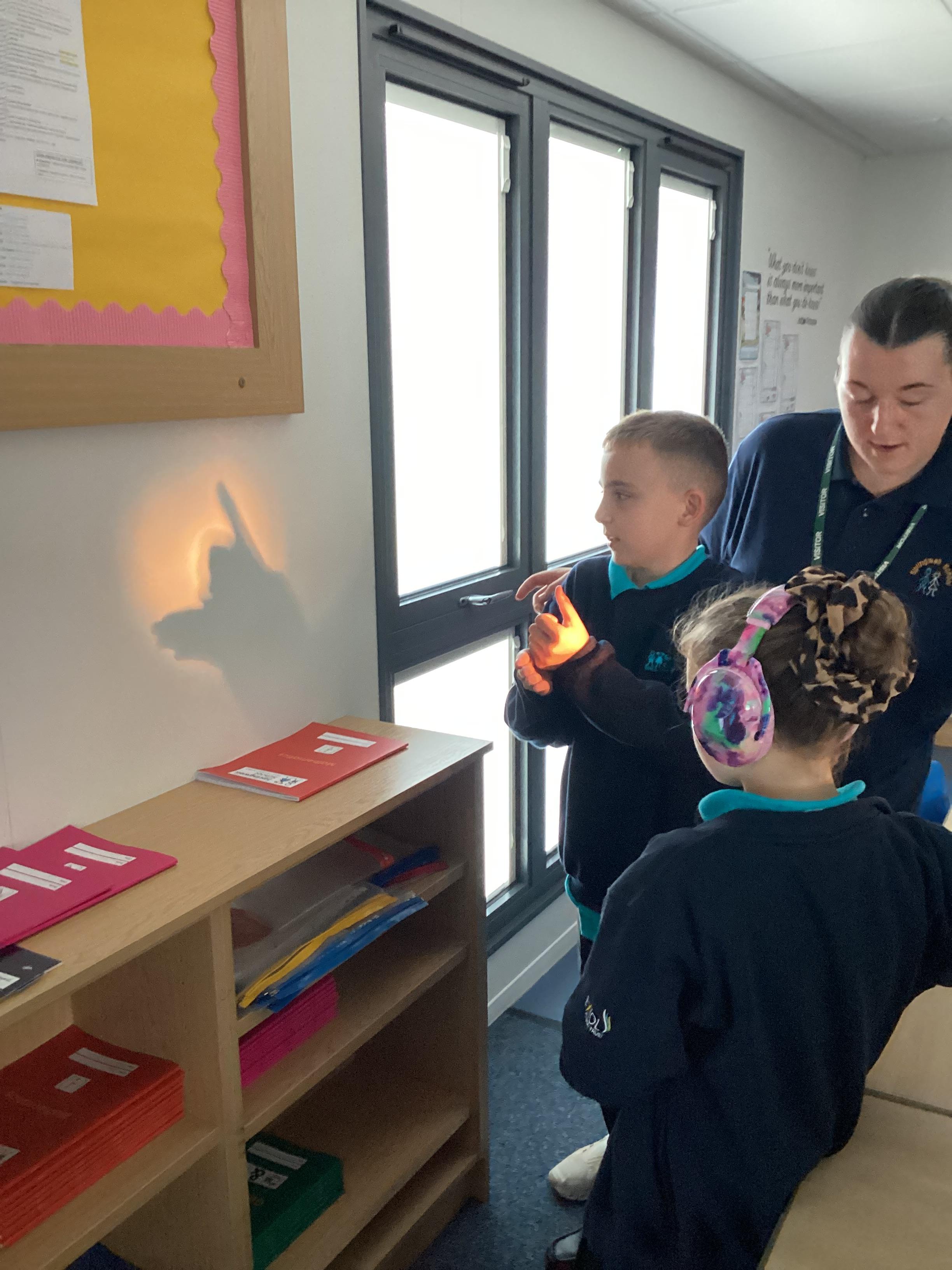Tuesday 9th September 2025 - In Science this week we are learning all about light sources. Today, we have been talking all about shadows and how they are made. We used torches and our hands to make hand puppets. We then went into the school yard and made various shaped shadows using the sun. This was a really fun lesson!