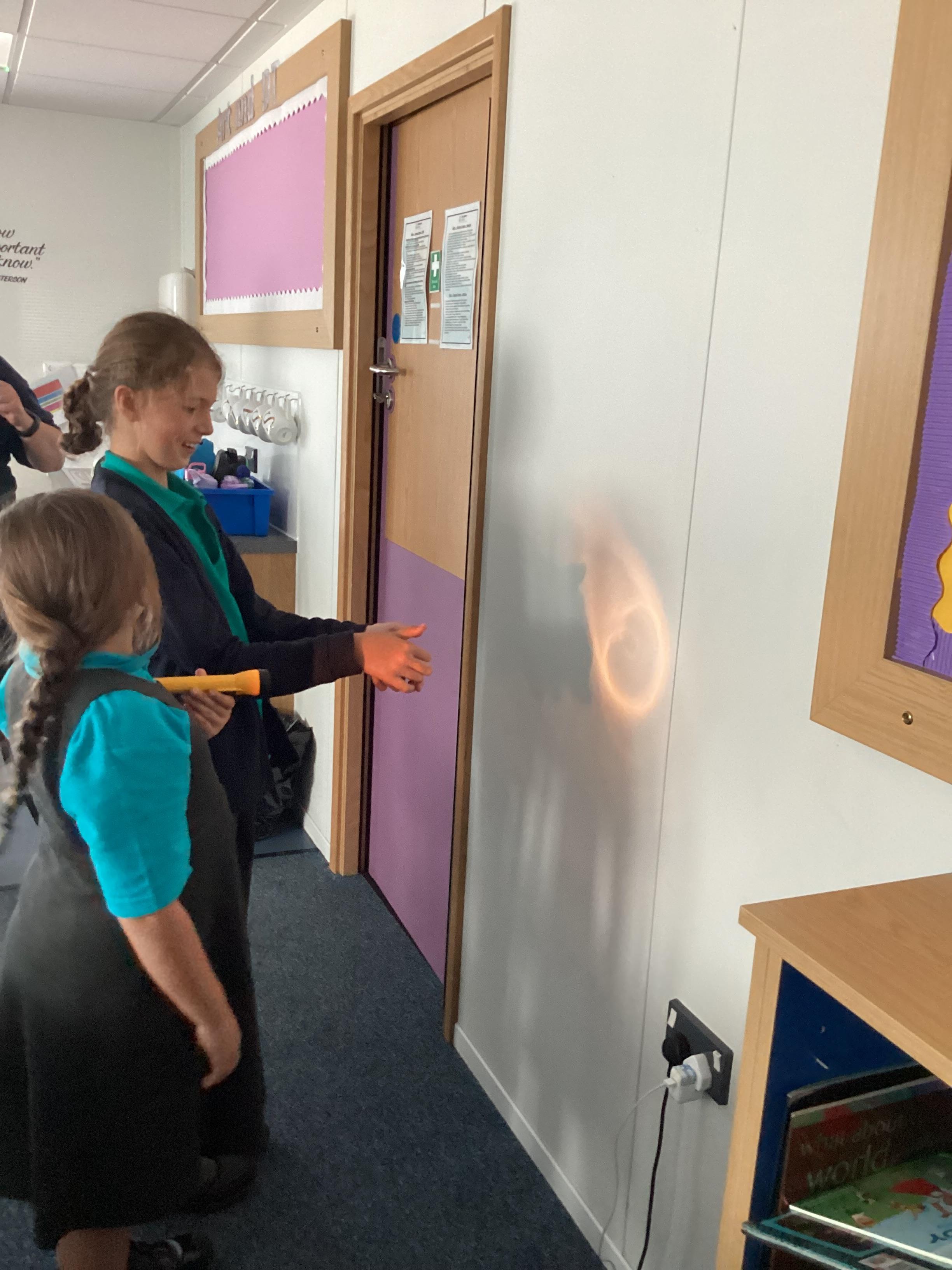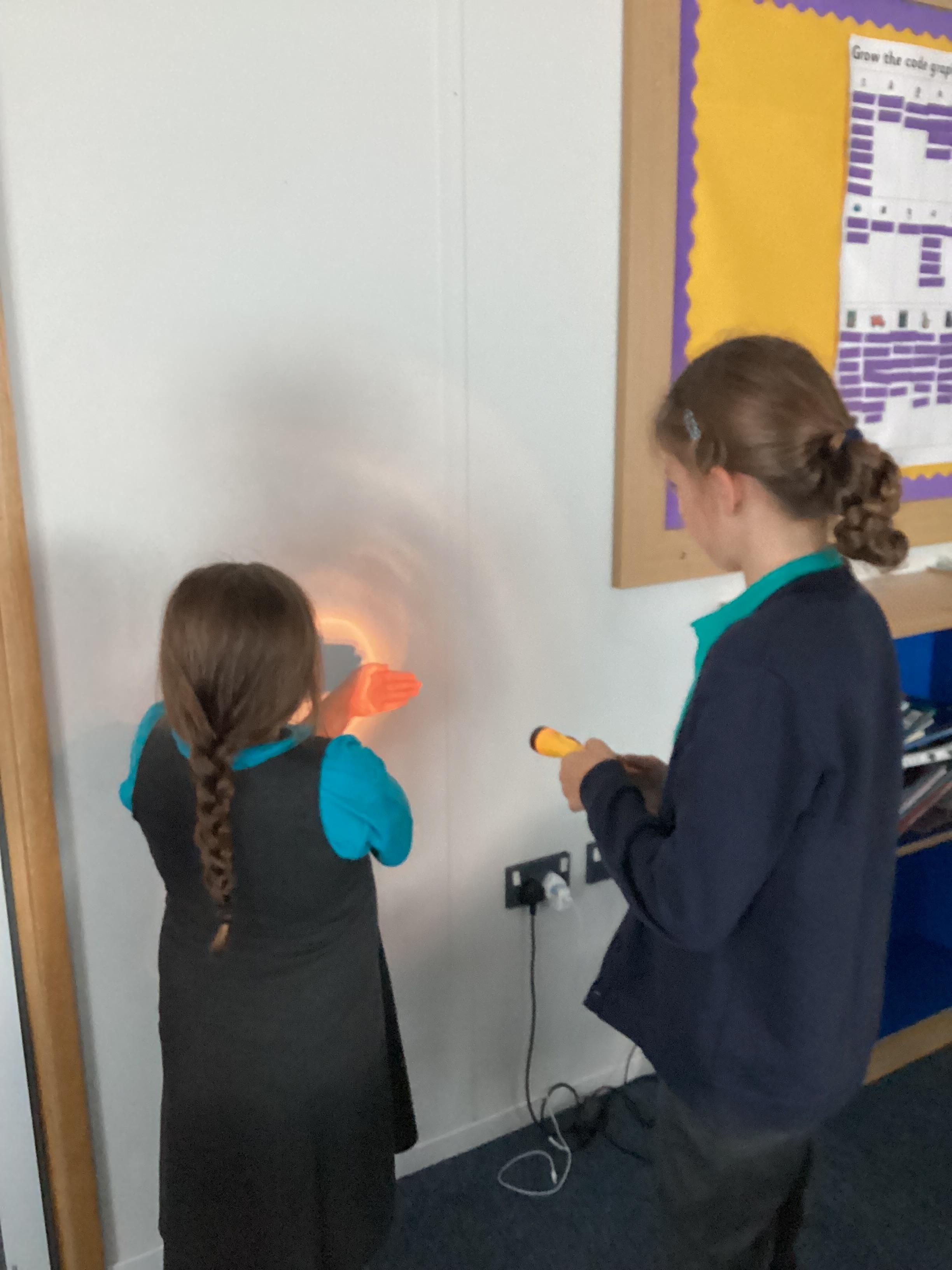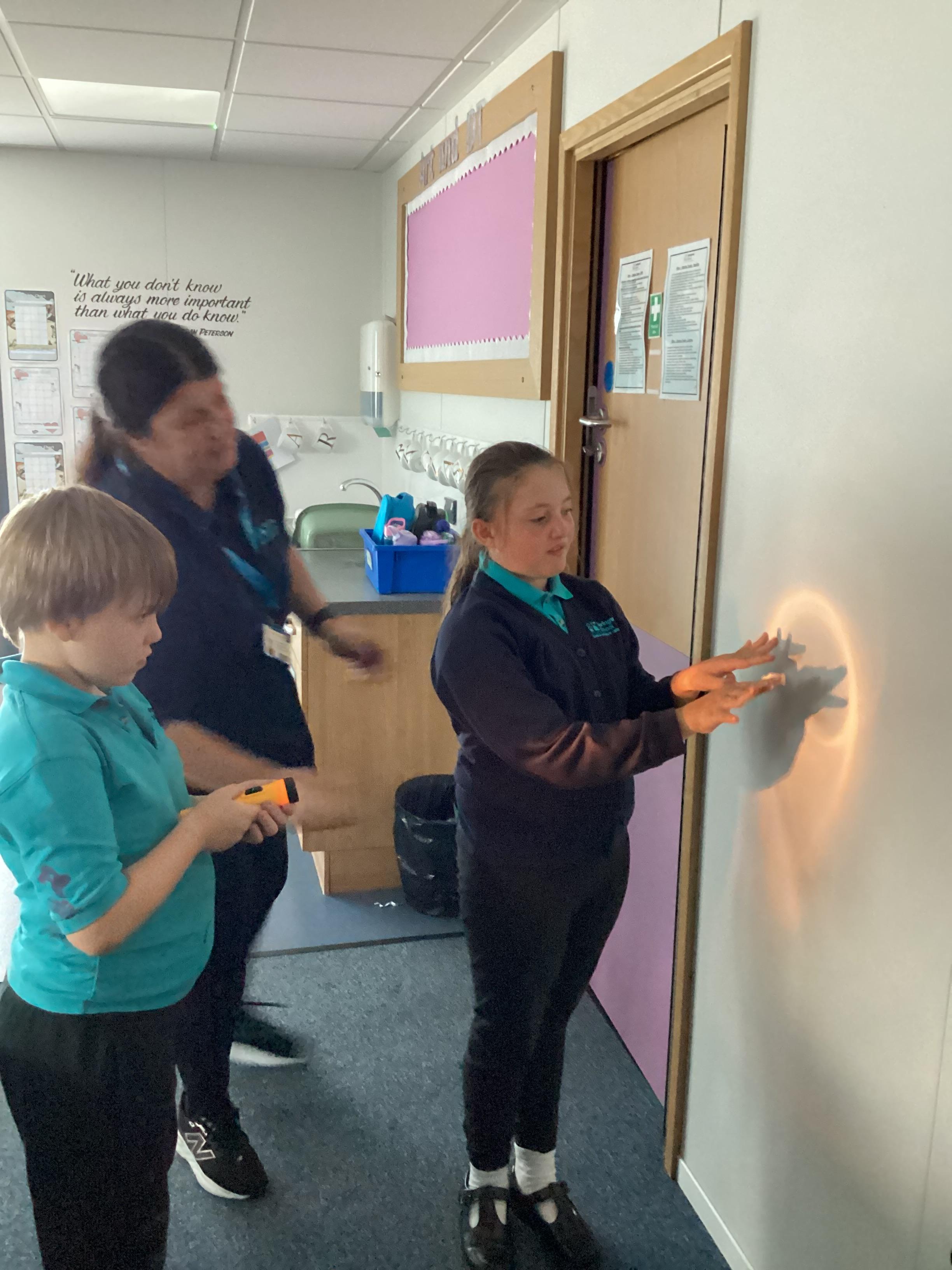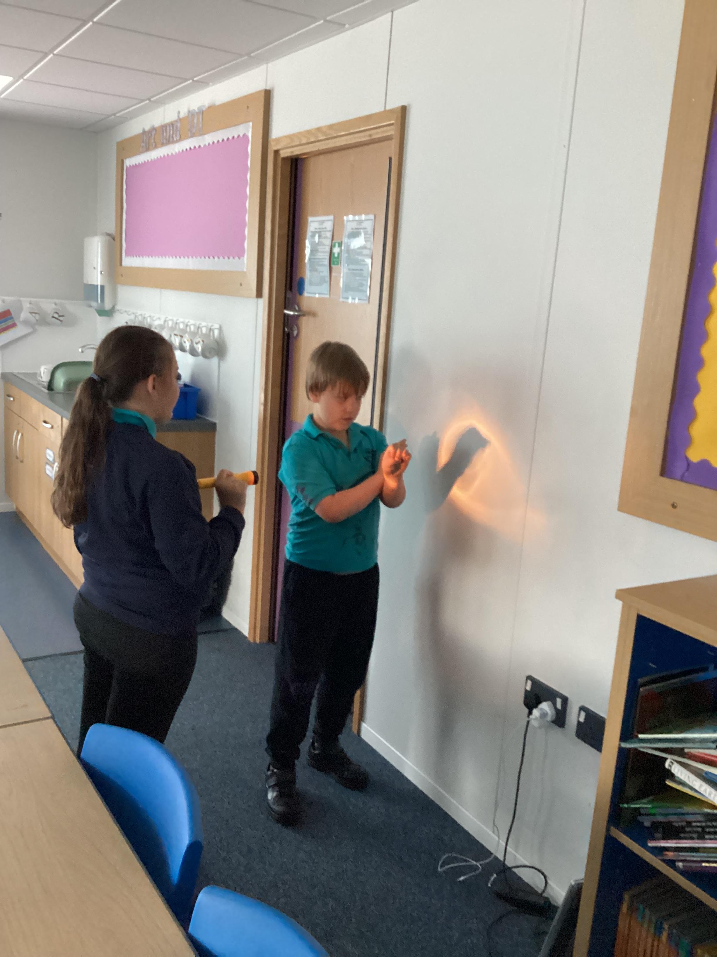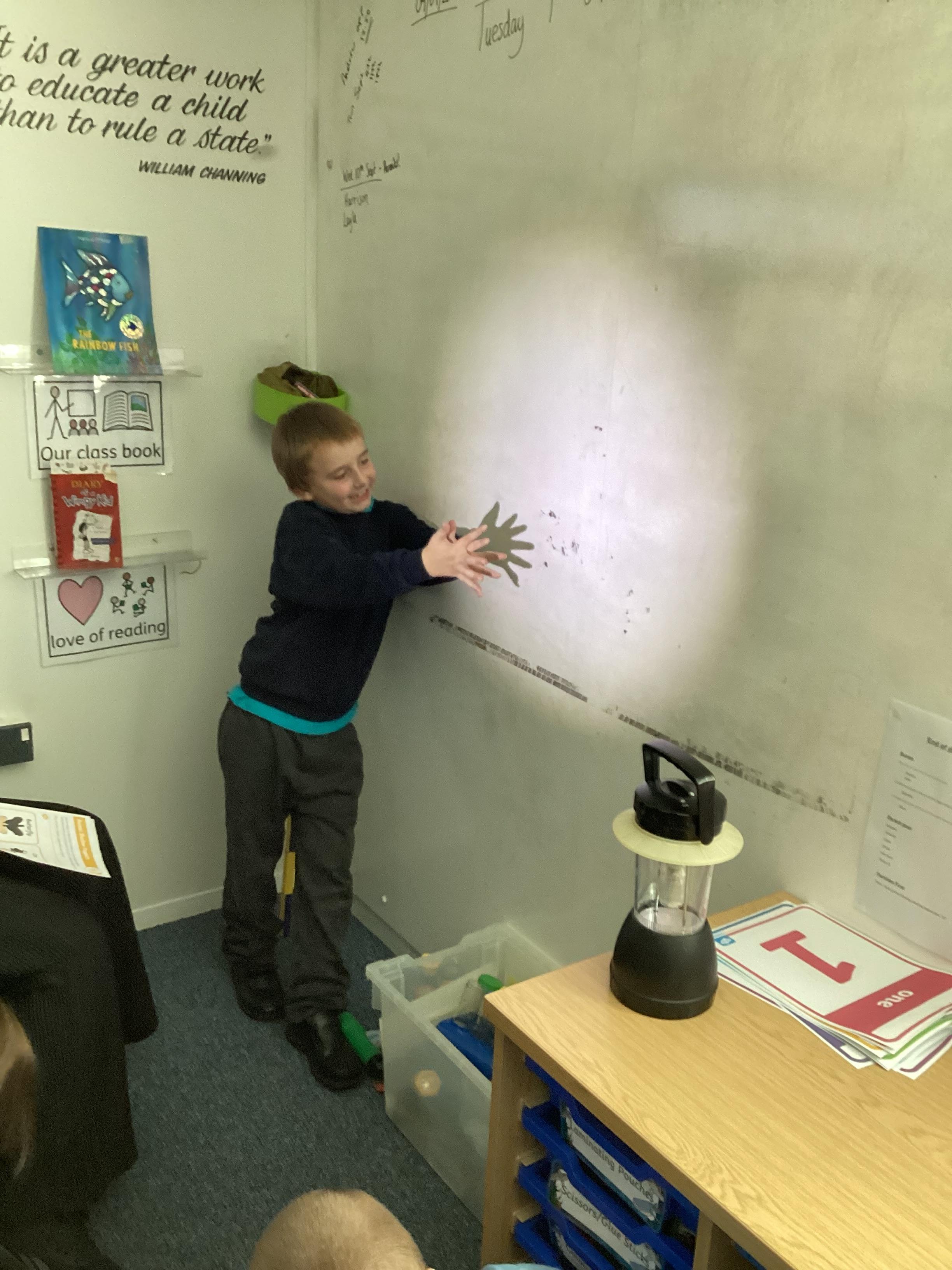 Tuesday 9th September 2025 - In Science this week we are learning all about light sources. Today, we have been talking all about shadows and how they are made. We used torches and our hands to make hand puppets. We then went into the school yard and made various shaped shadows using the sun. This was a really fun lesson!