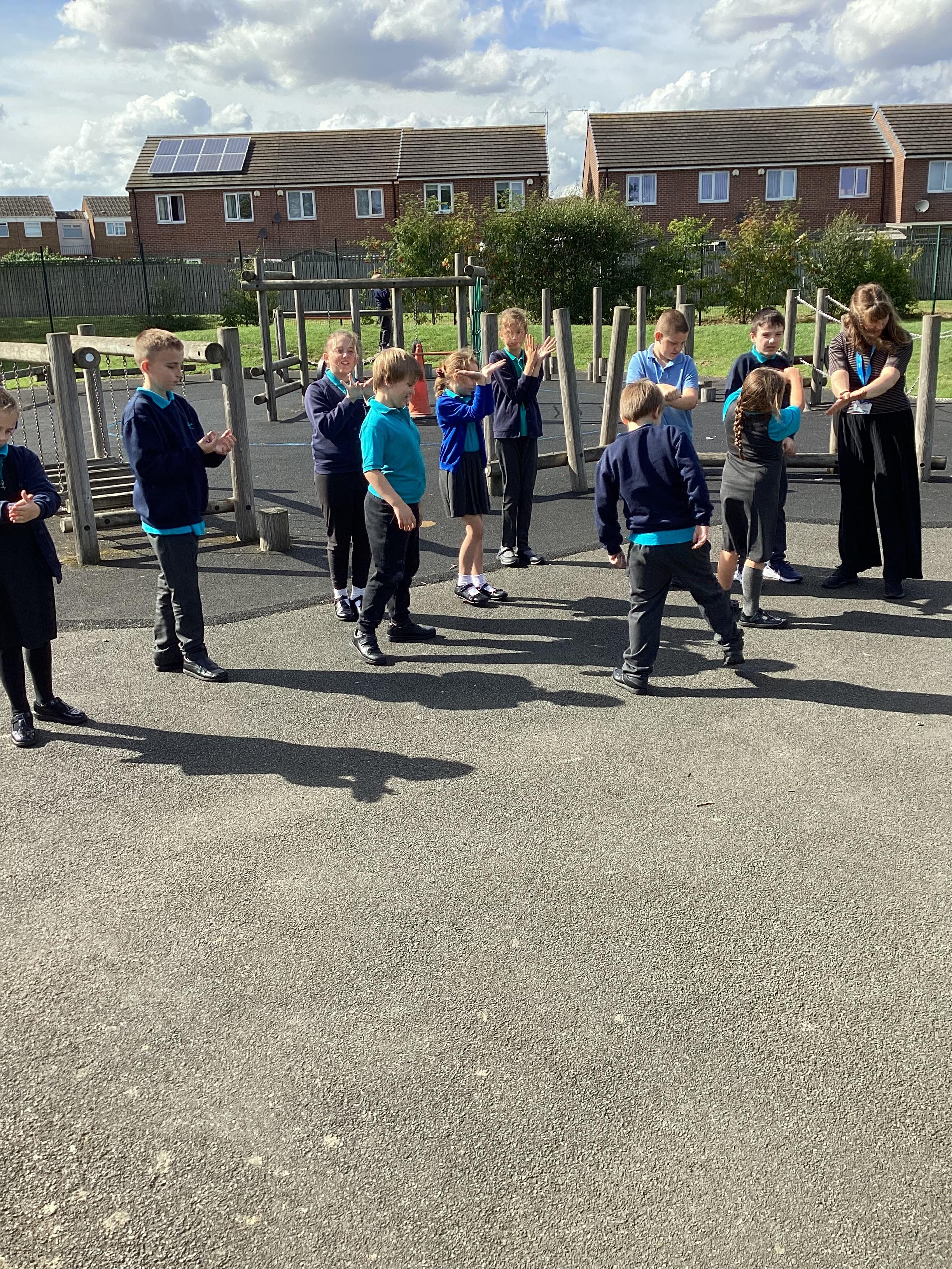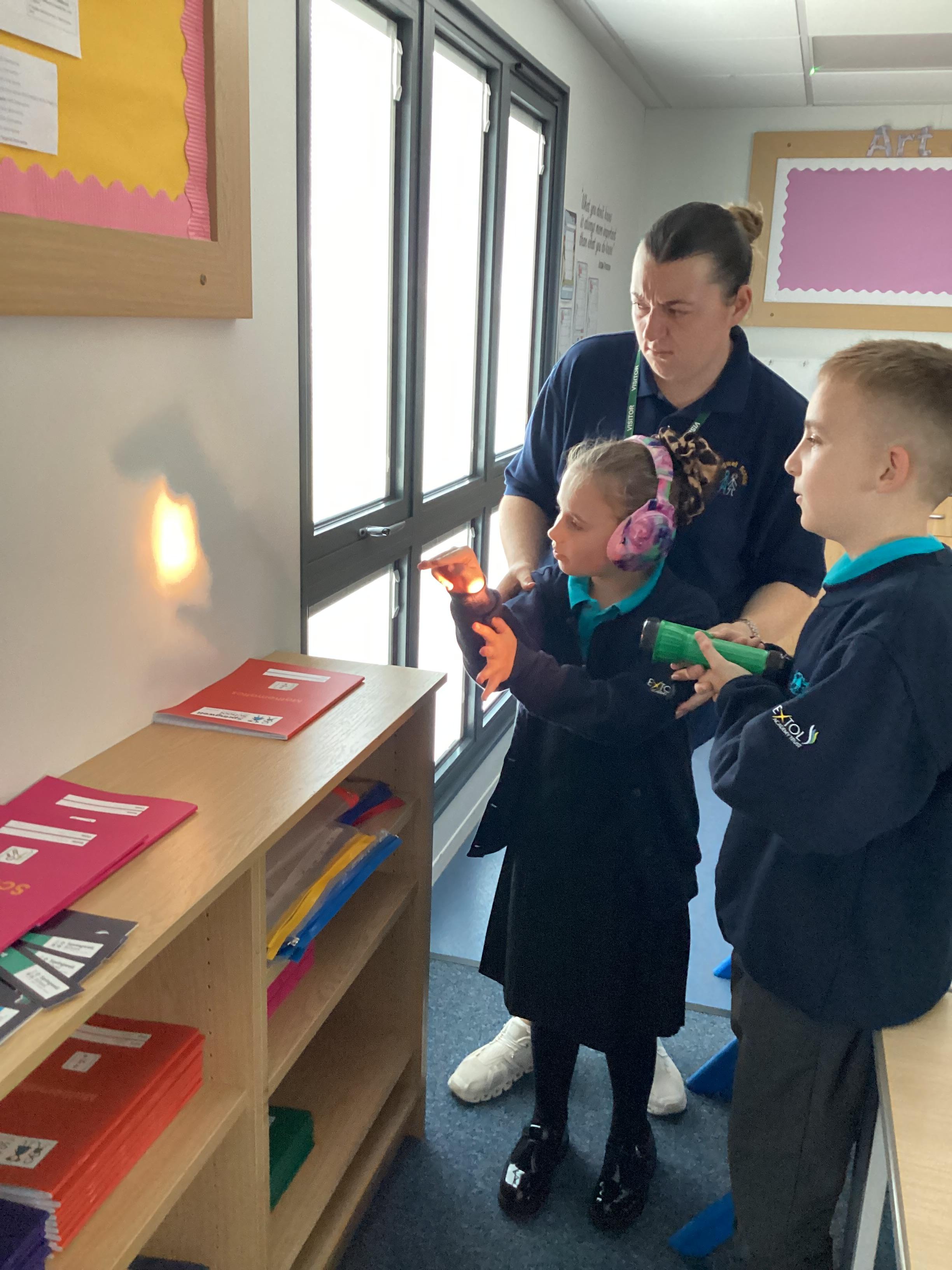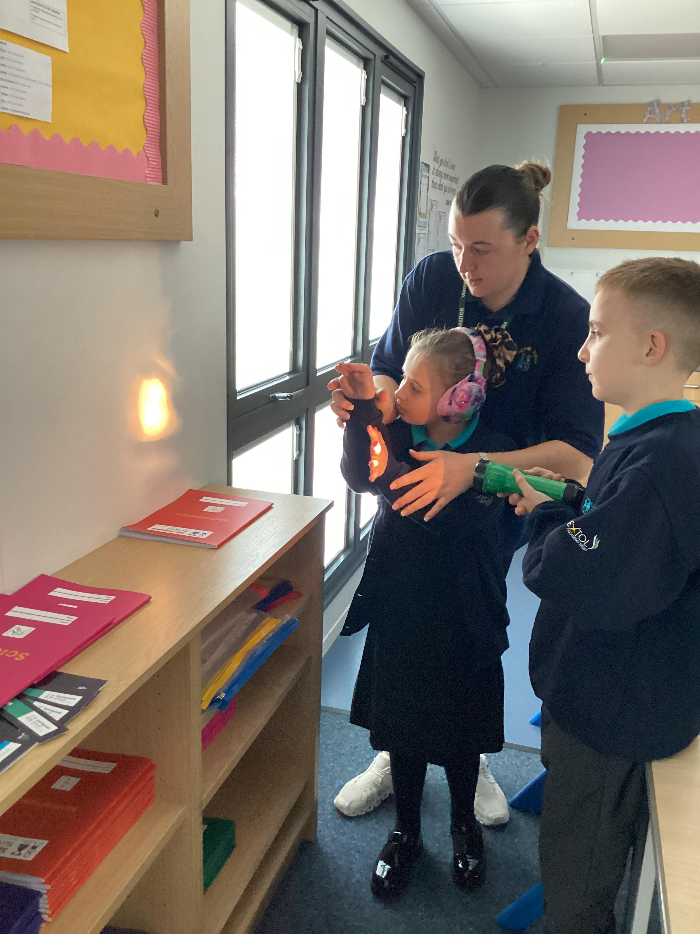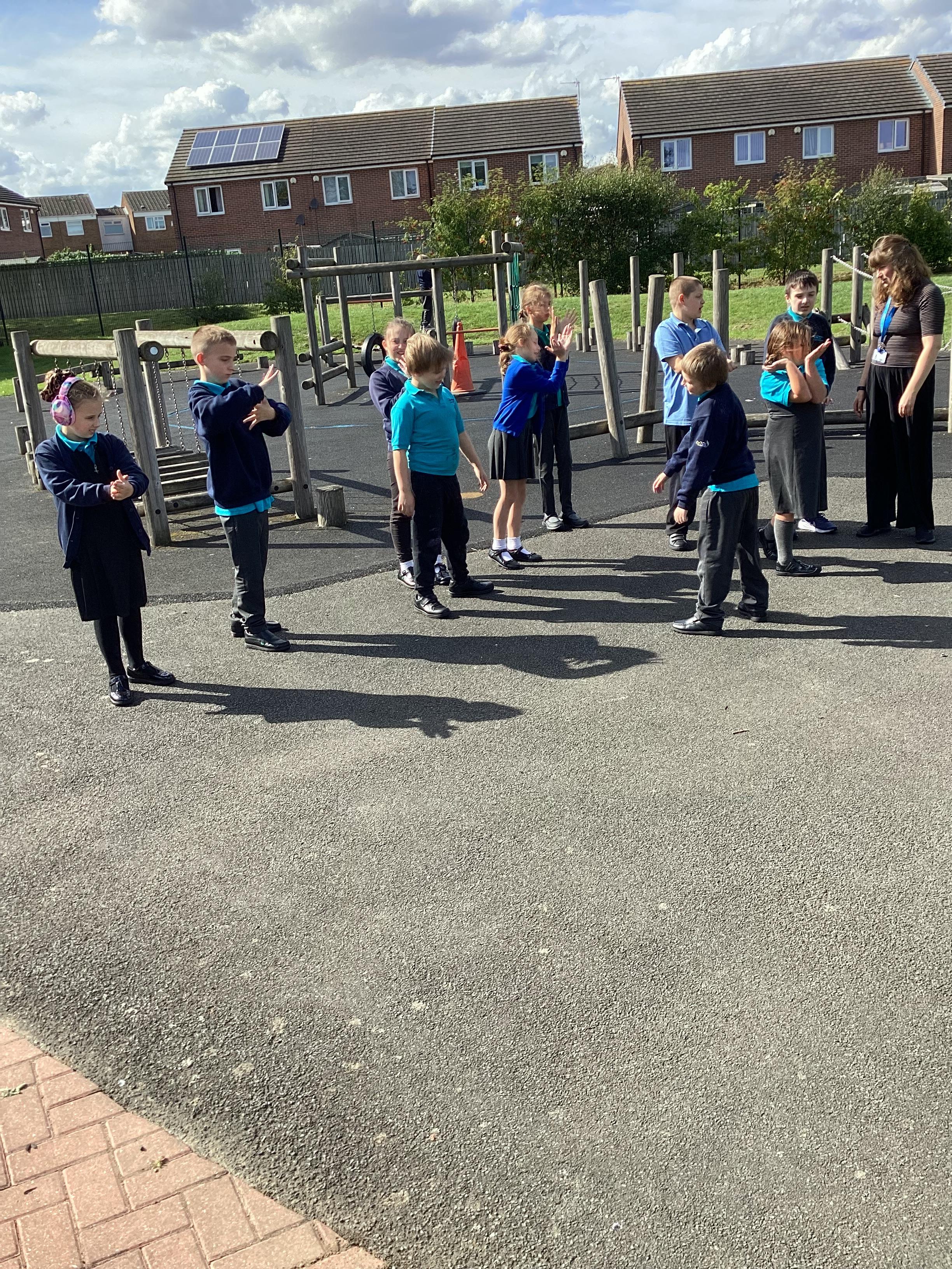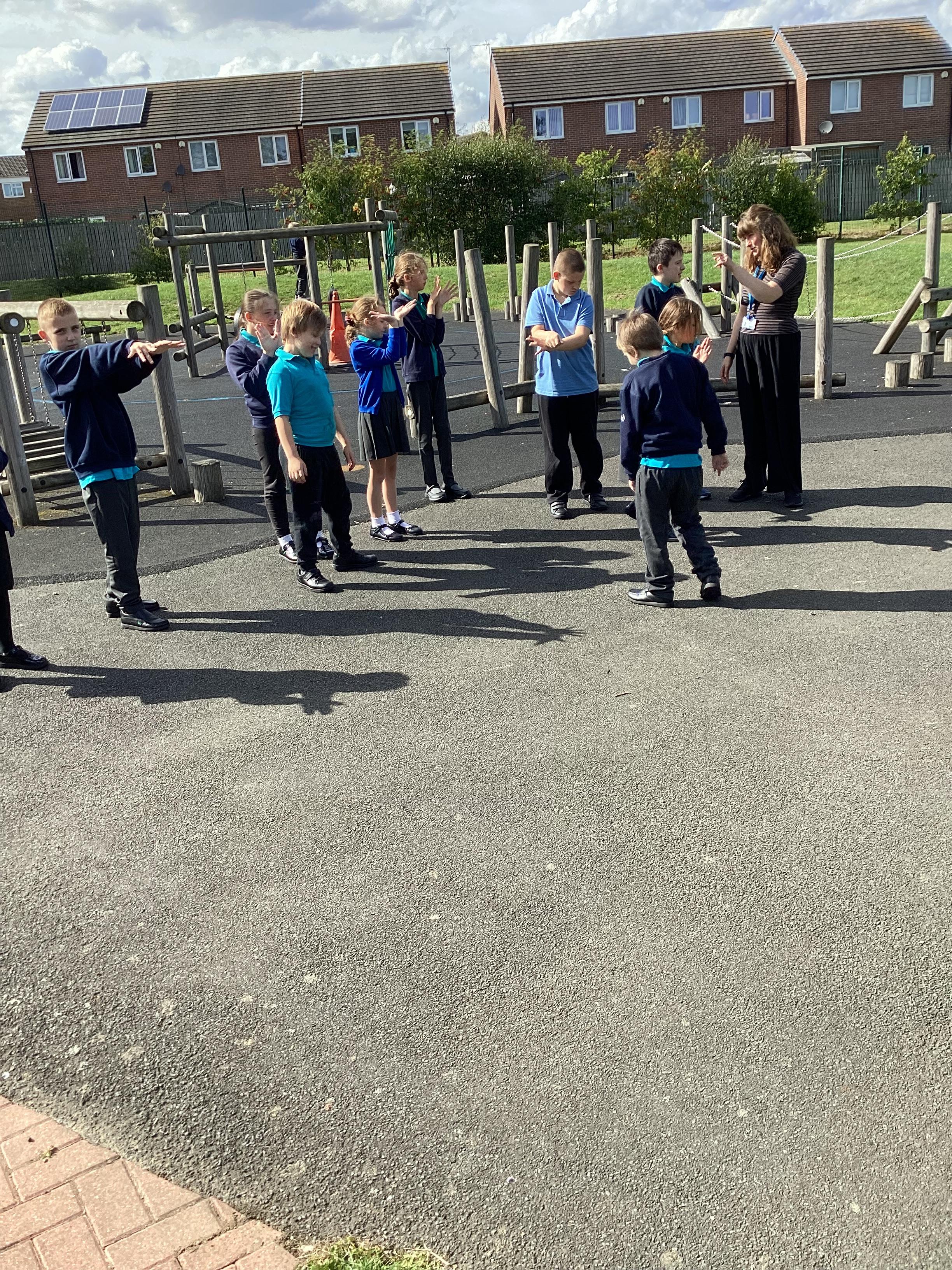 Tuesday 9th September 2025 - In Science this week we are learning all about light sources. Today, we have been talking all about shadows and how they are made. We used torches and our hands to make hand puppets. We then went into the school yard and made various shaped shadows using the sun. This was a really fun lesson!