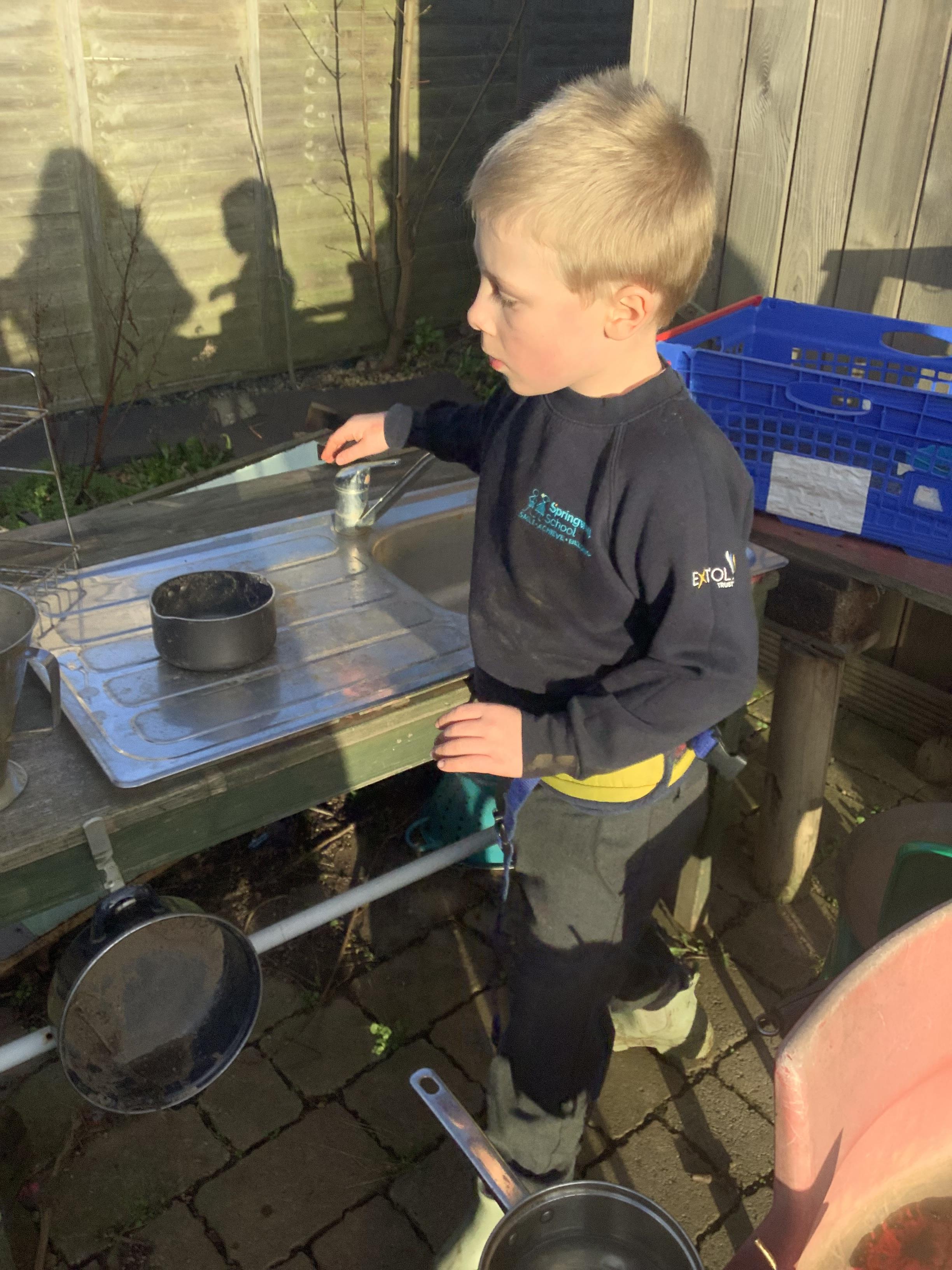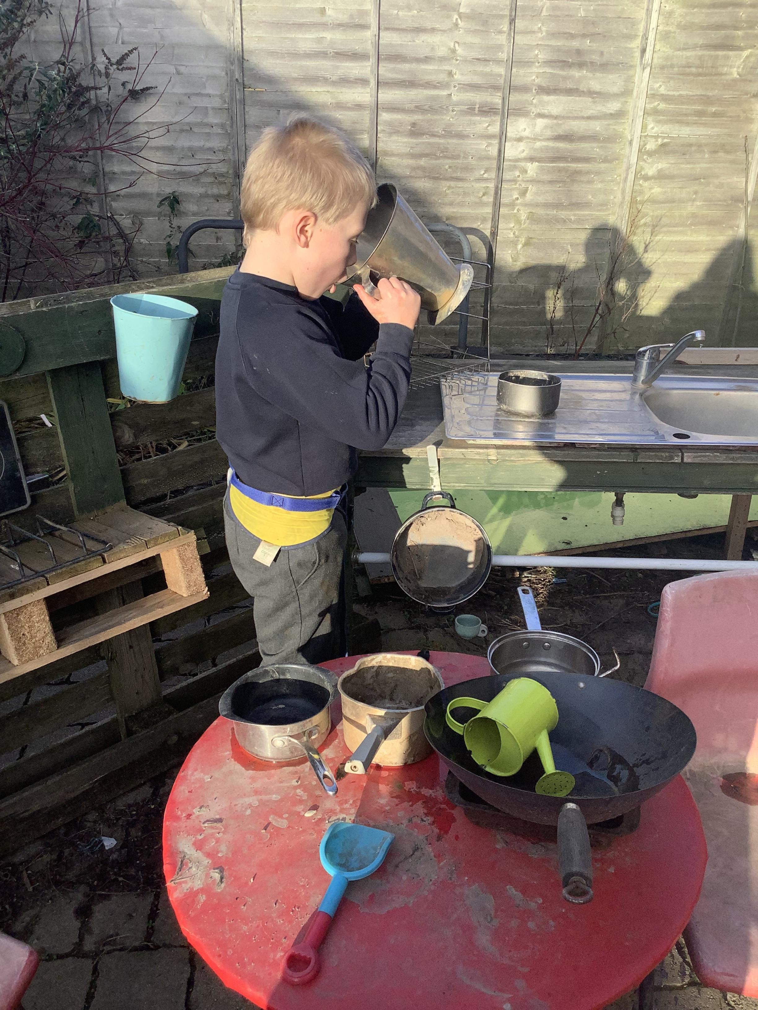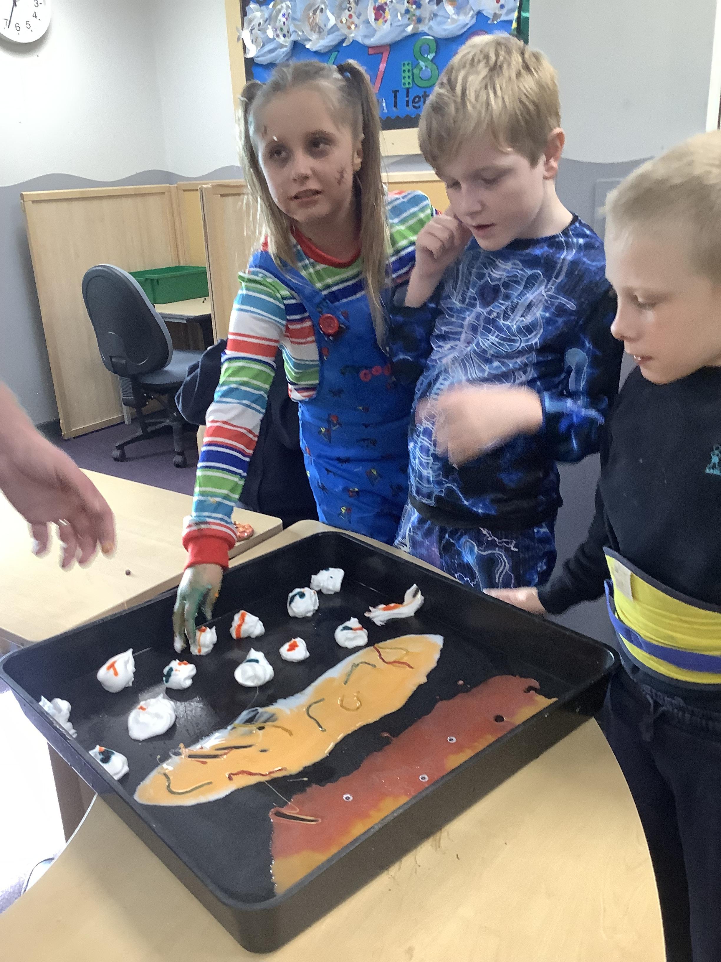 The children in Pangolin class enjoyed getting messy in our outdoor sensory corner, exploring the textures and colours with jelly, flour, shaving foam and paint.