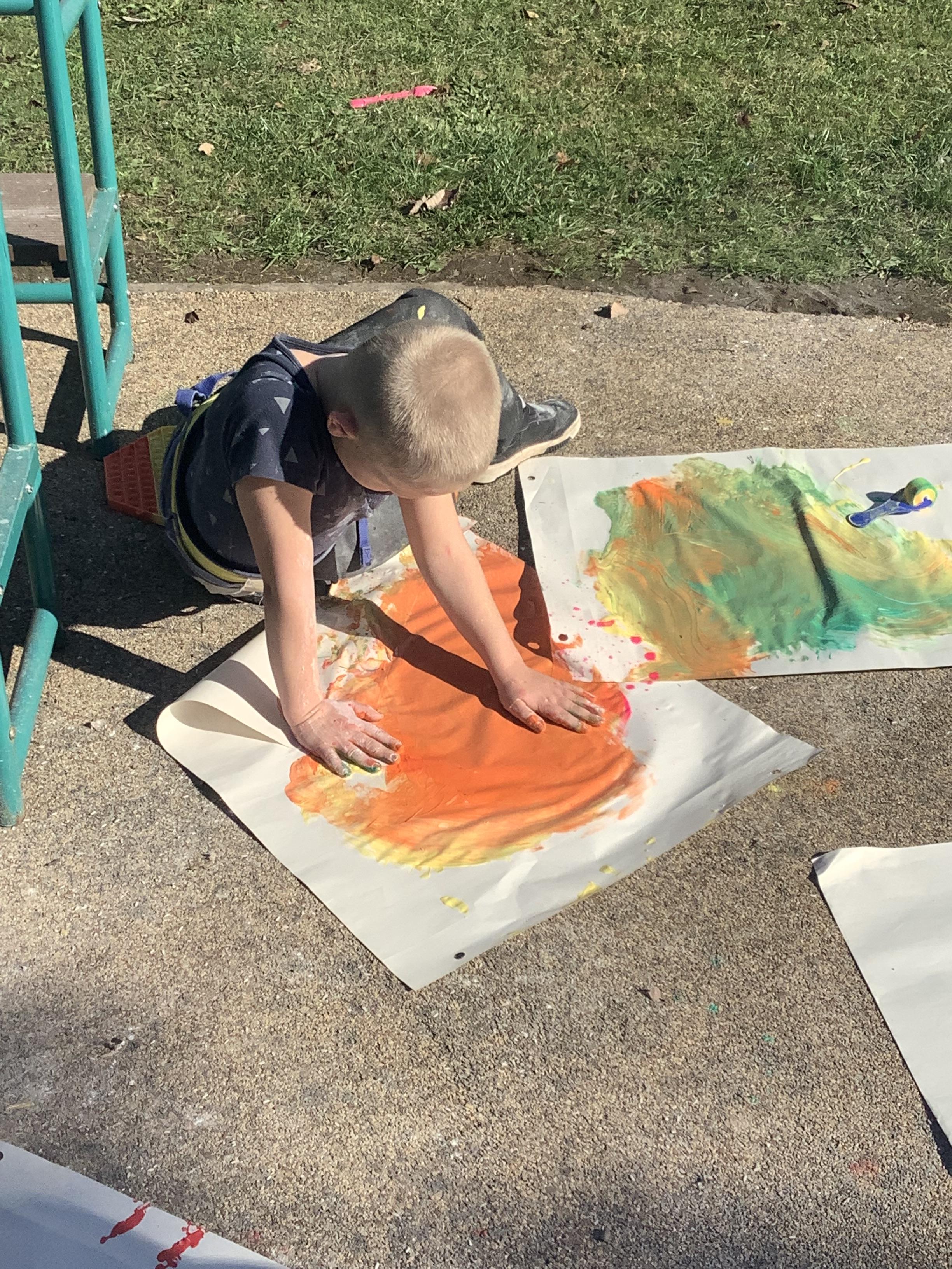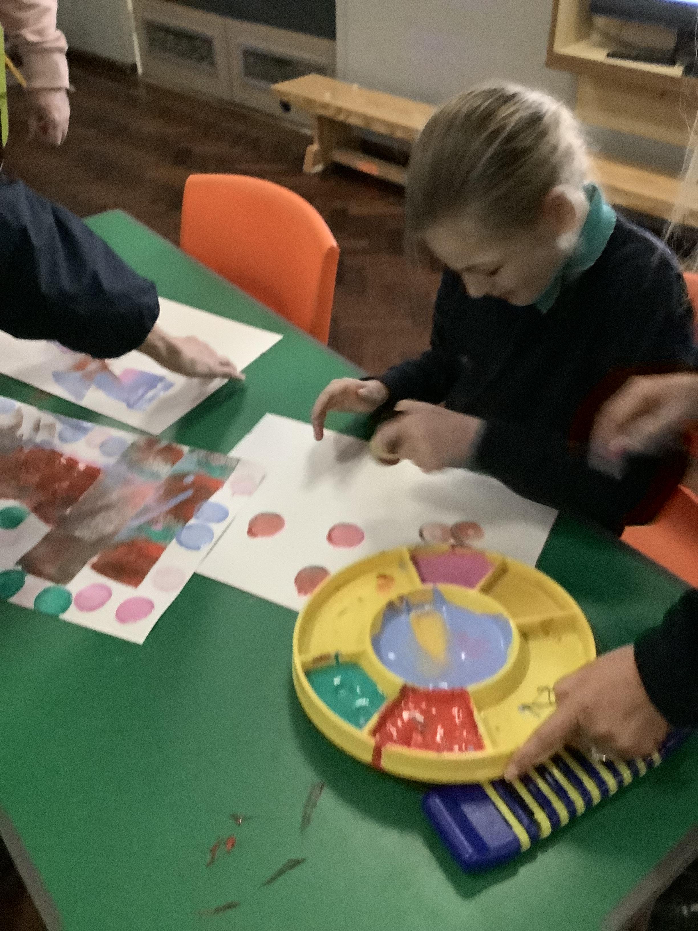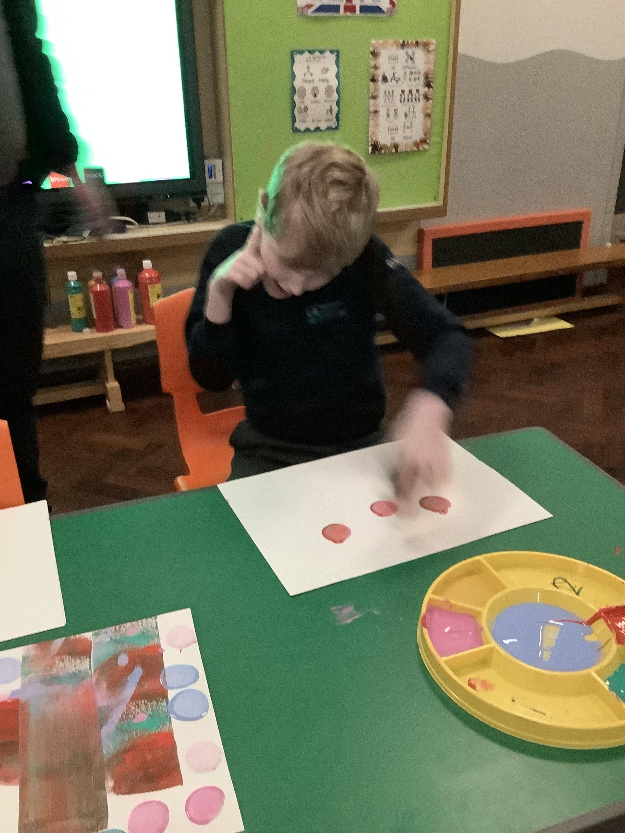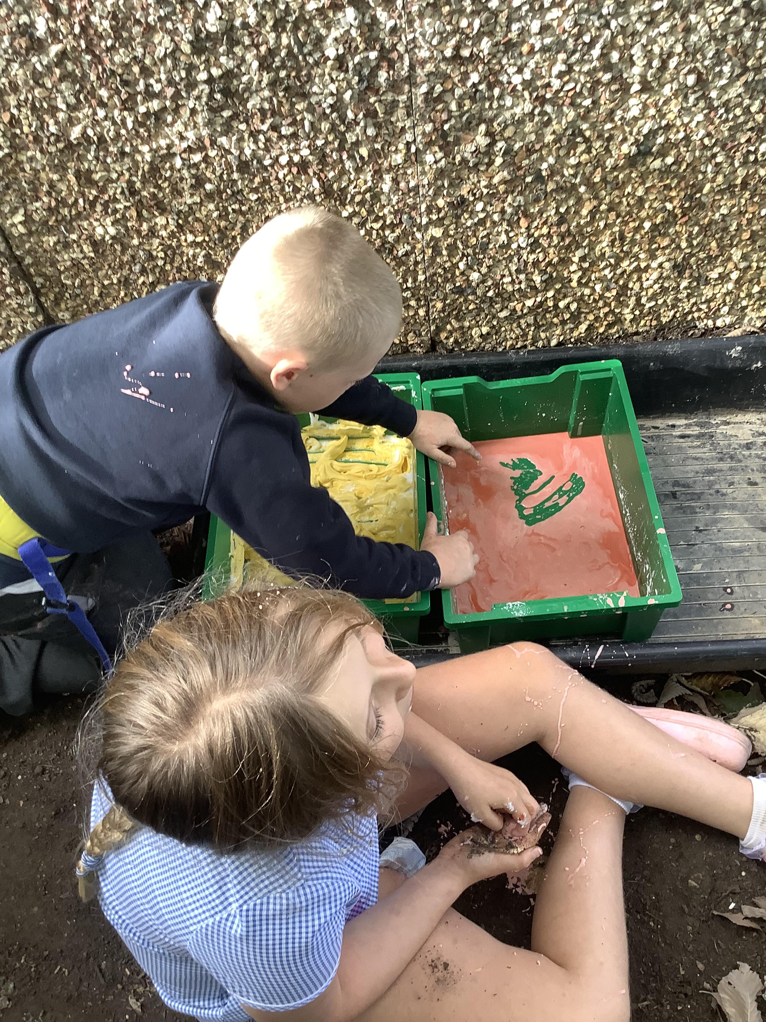 Pangolin class enjoyed exploring with different coloured paints and getting messy.