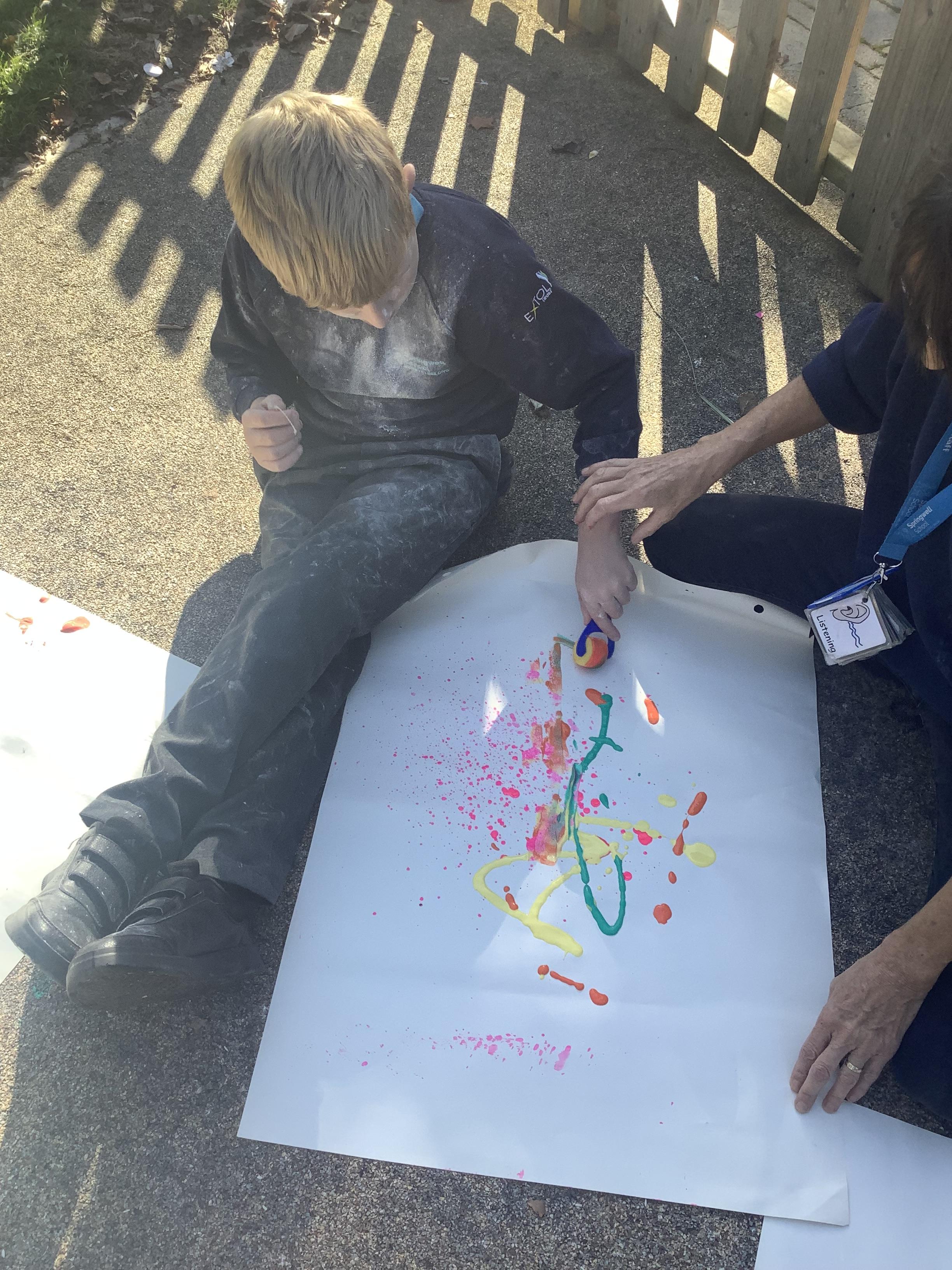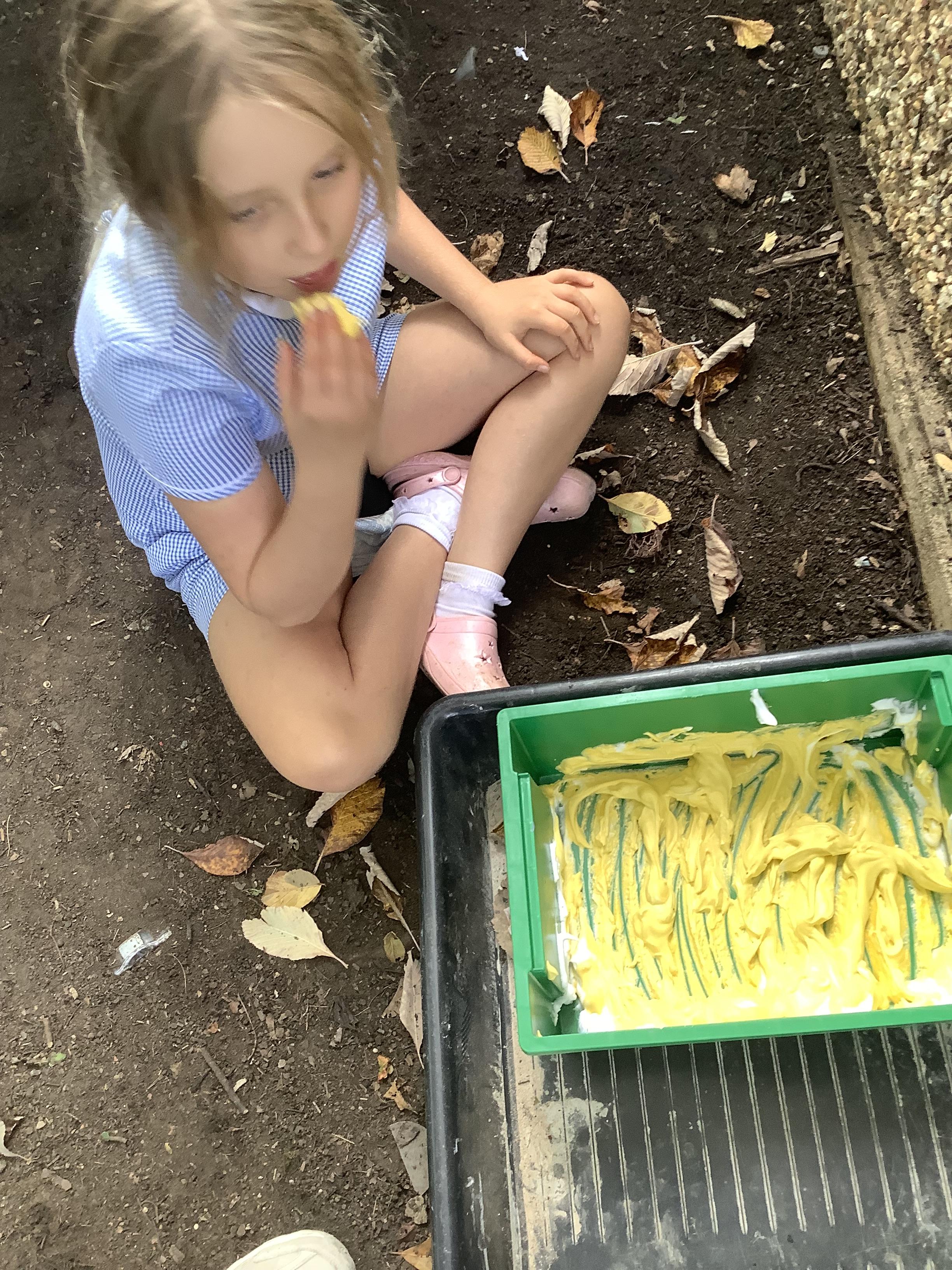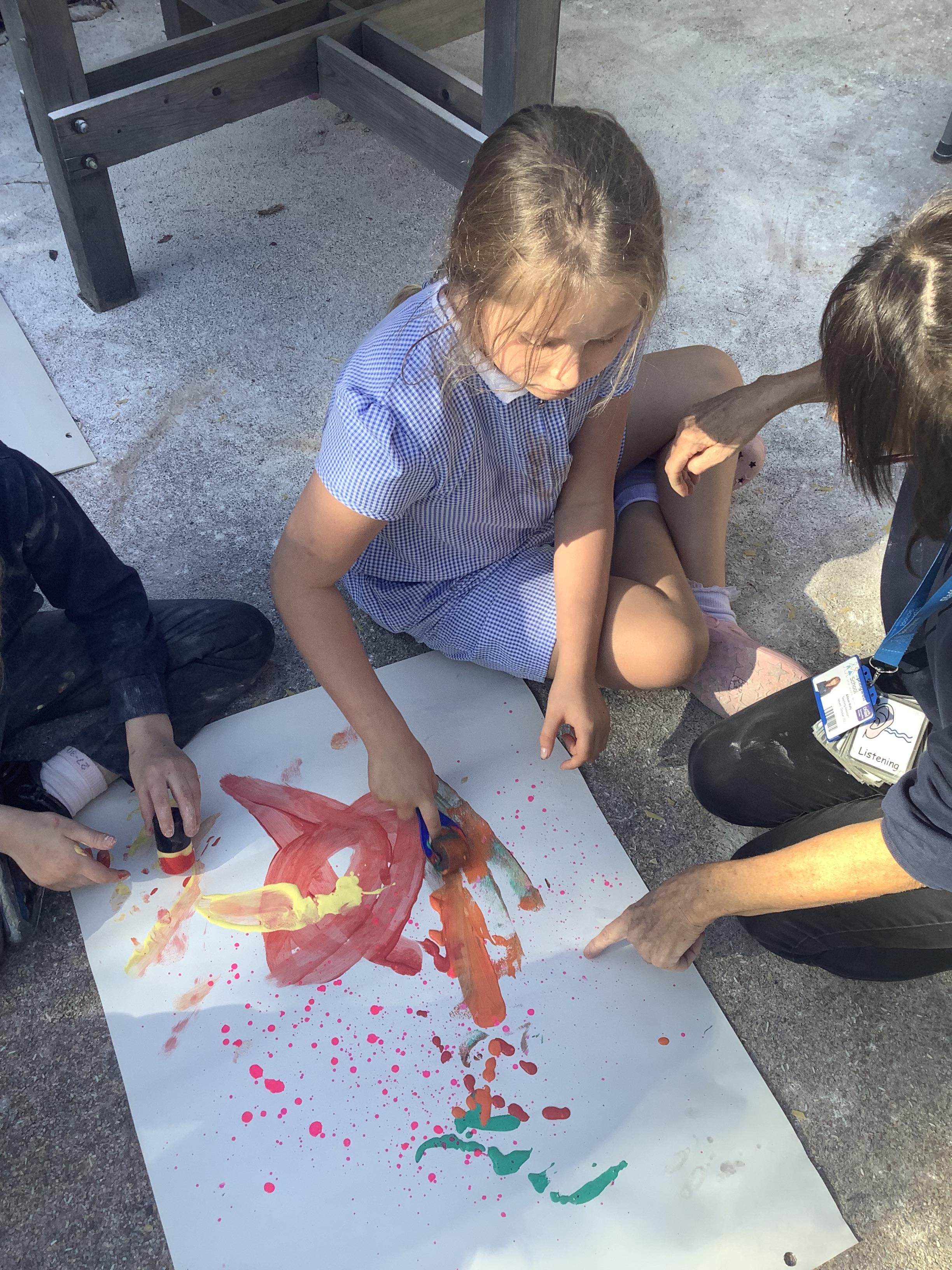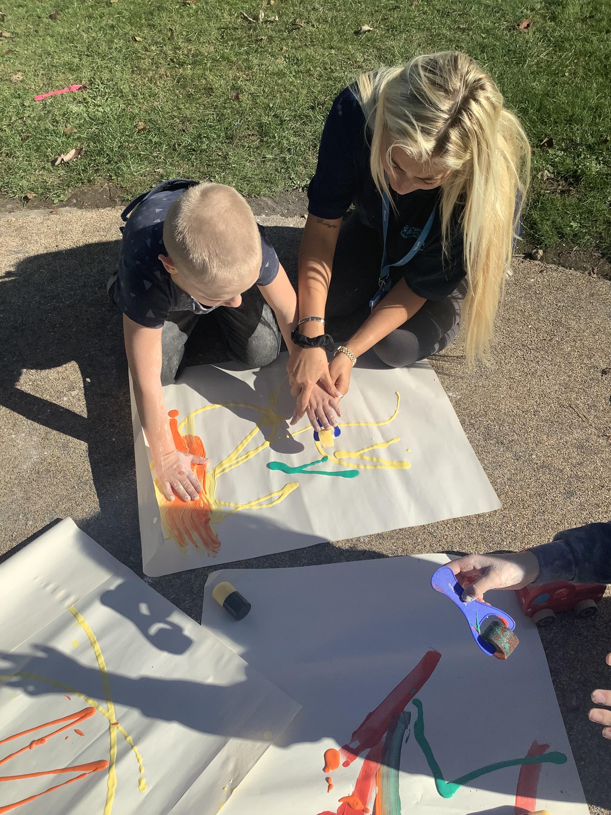 Pangolin class enjoyed exploring with different coloured paints and getting messy.