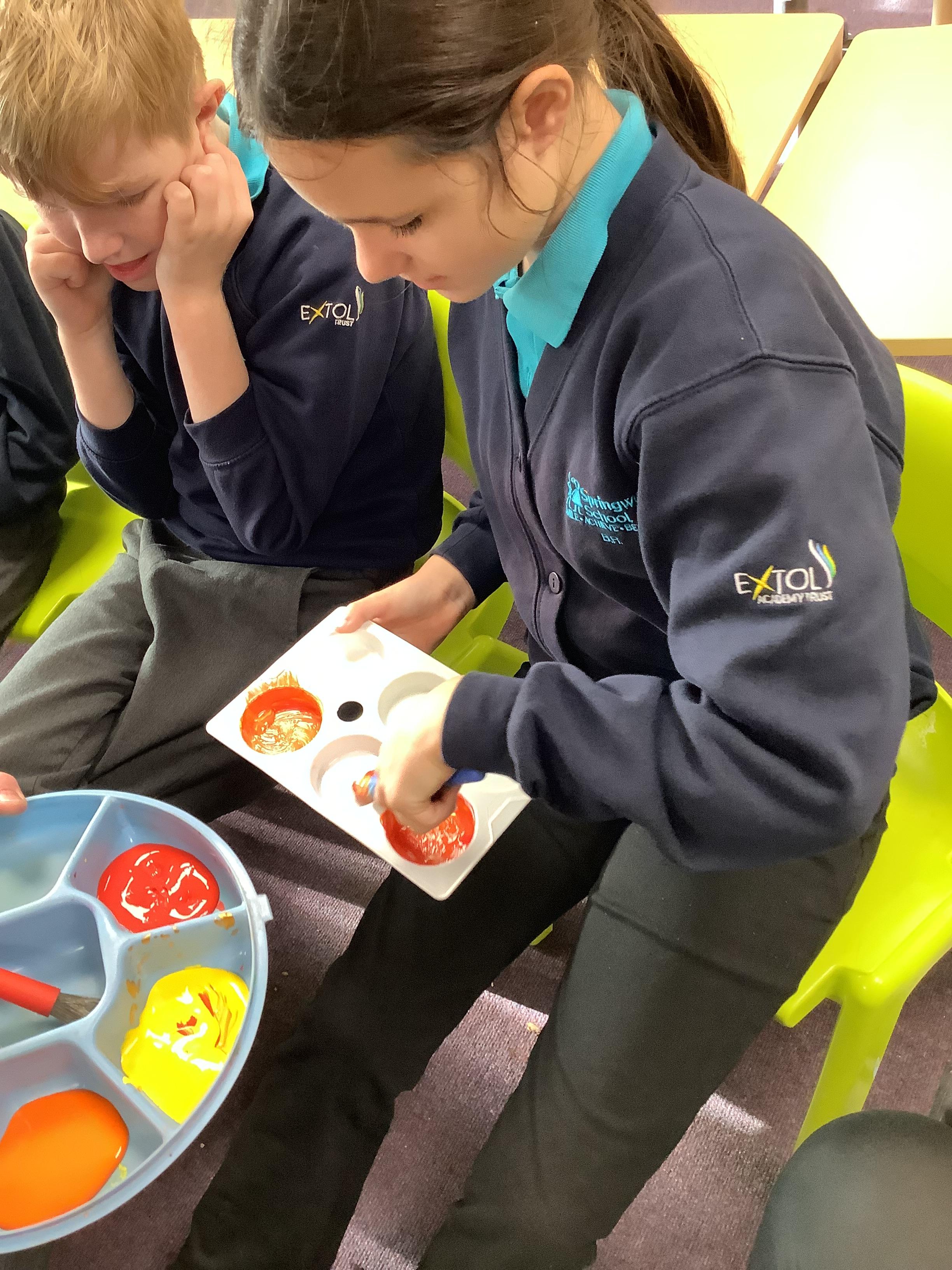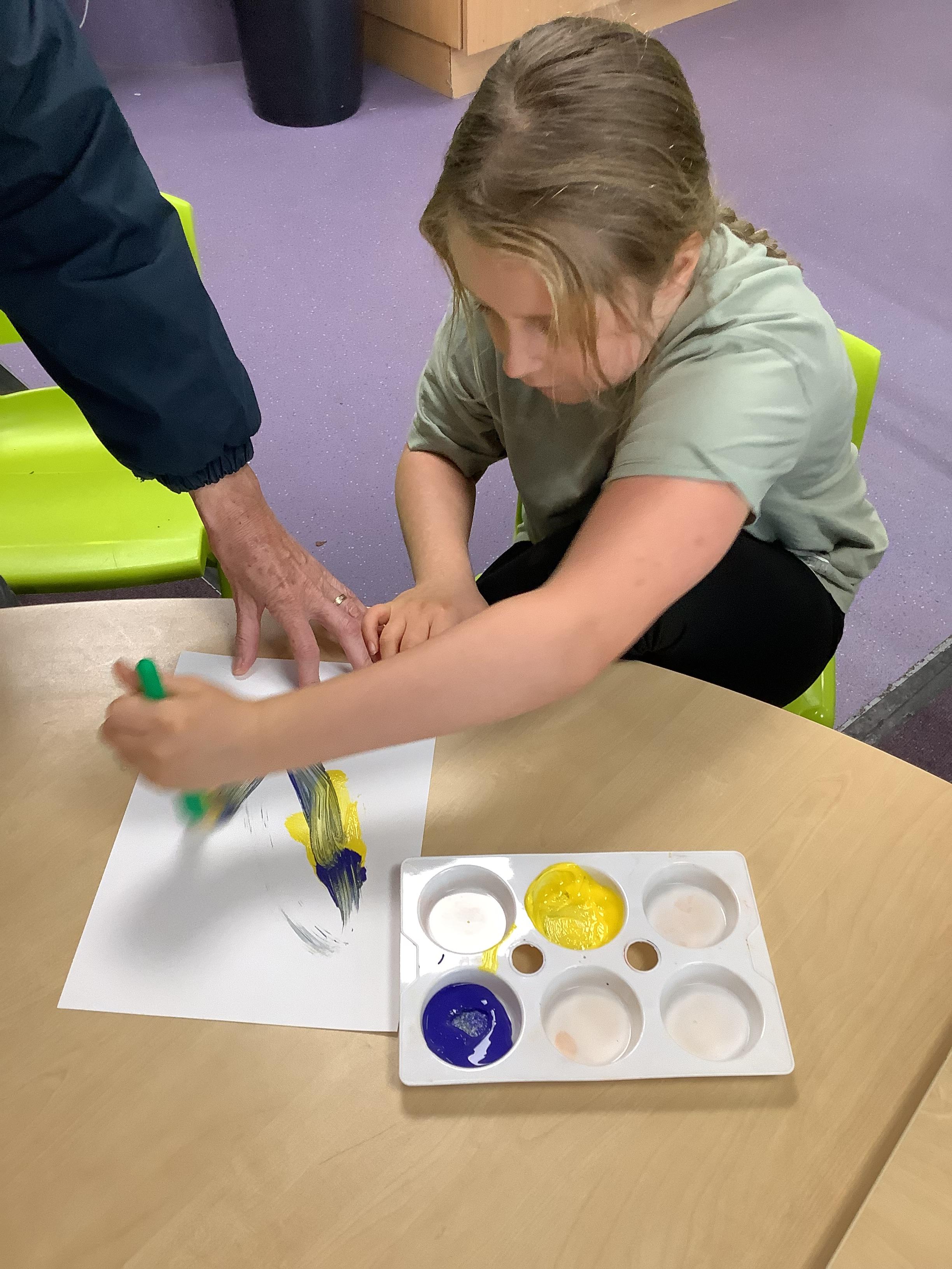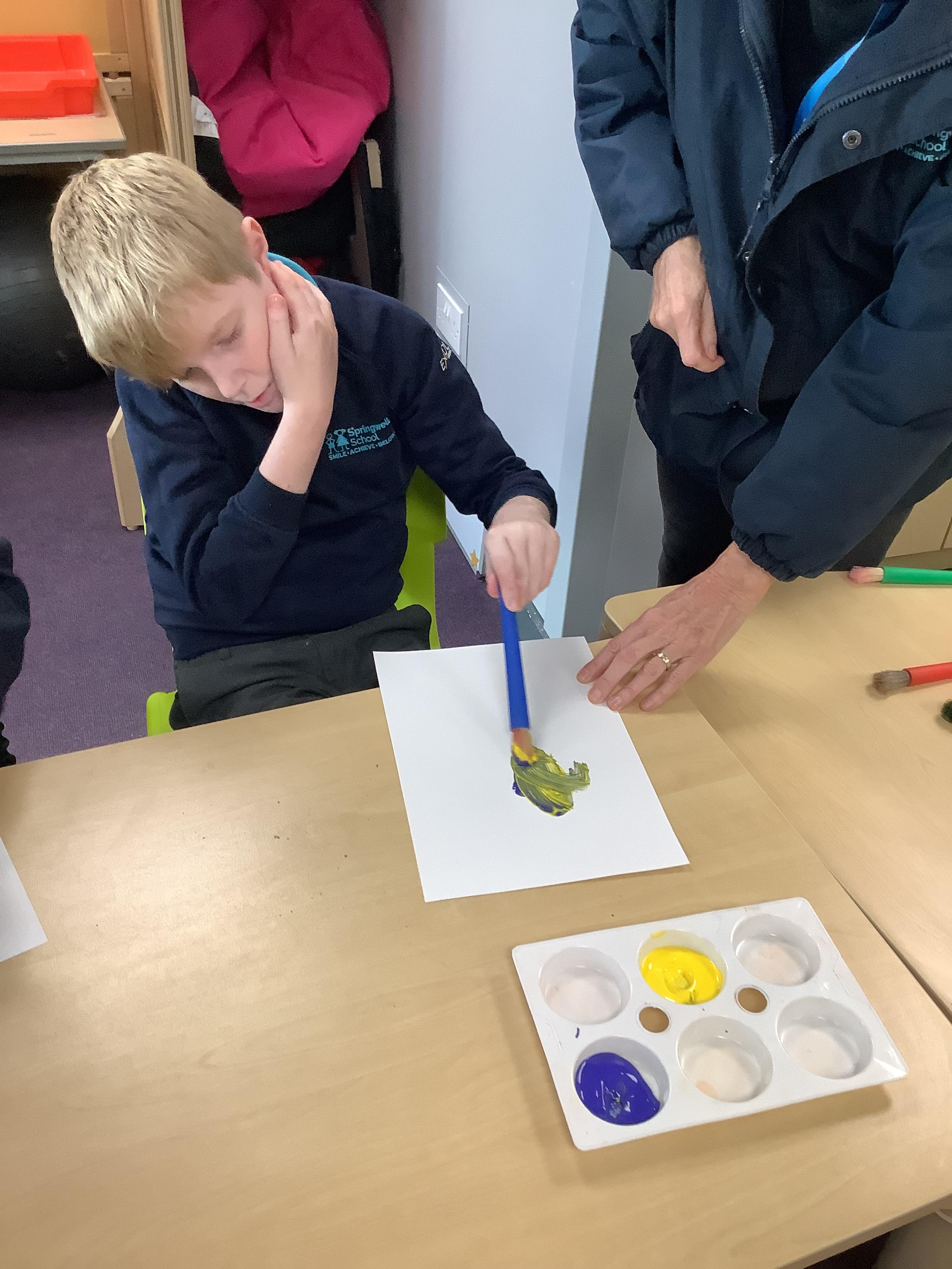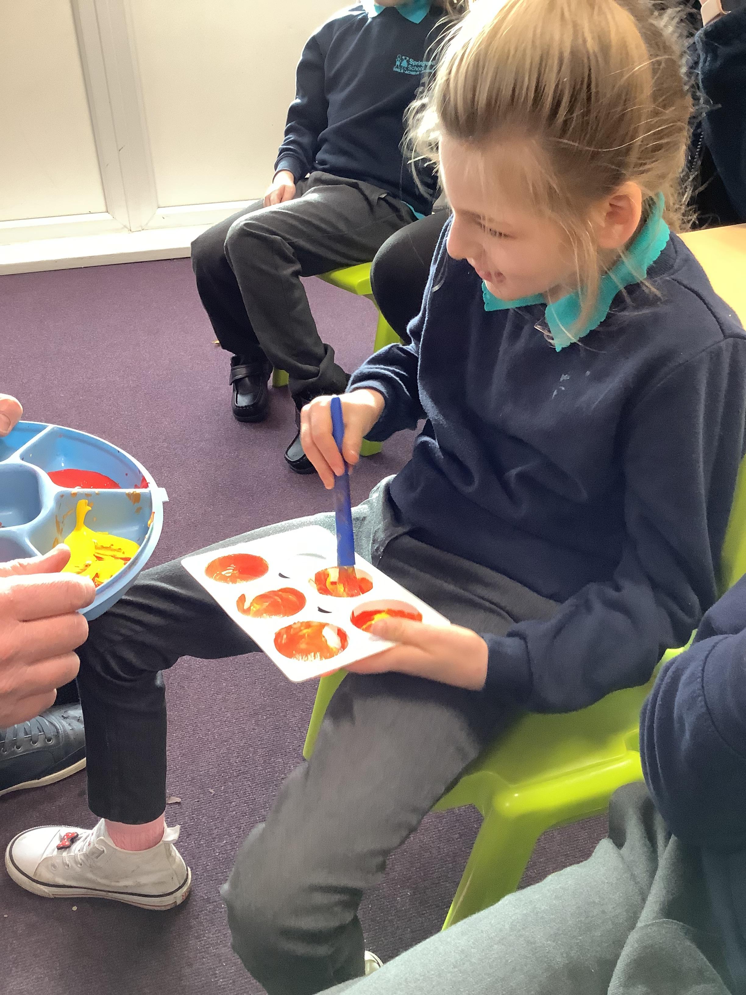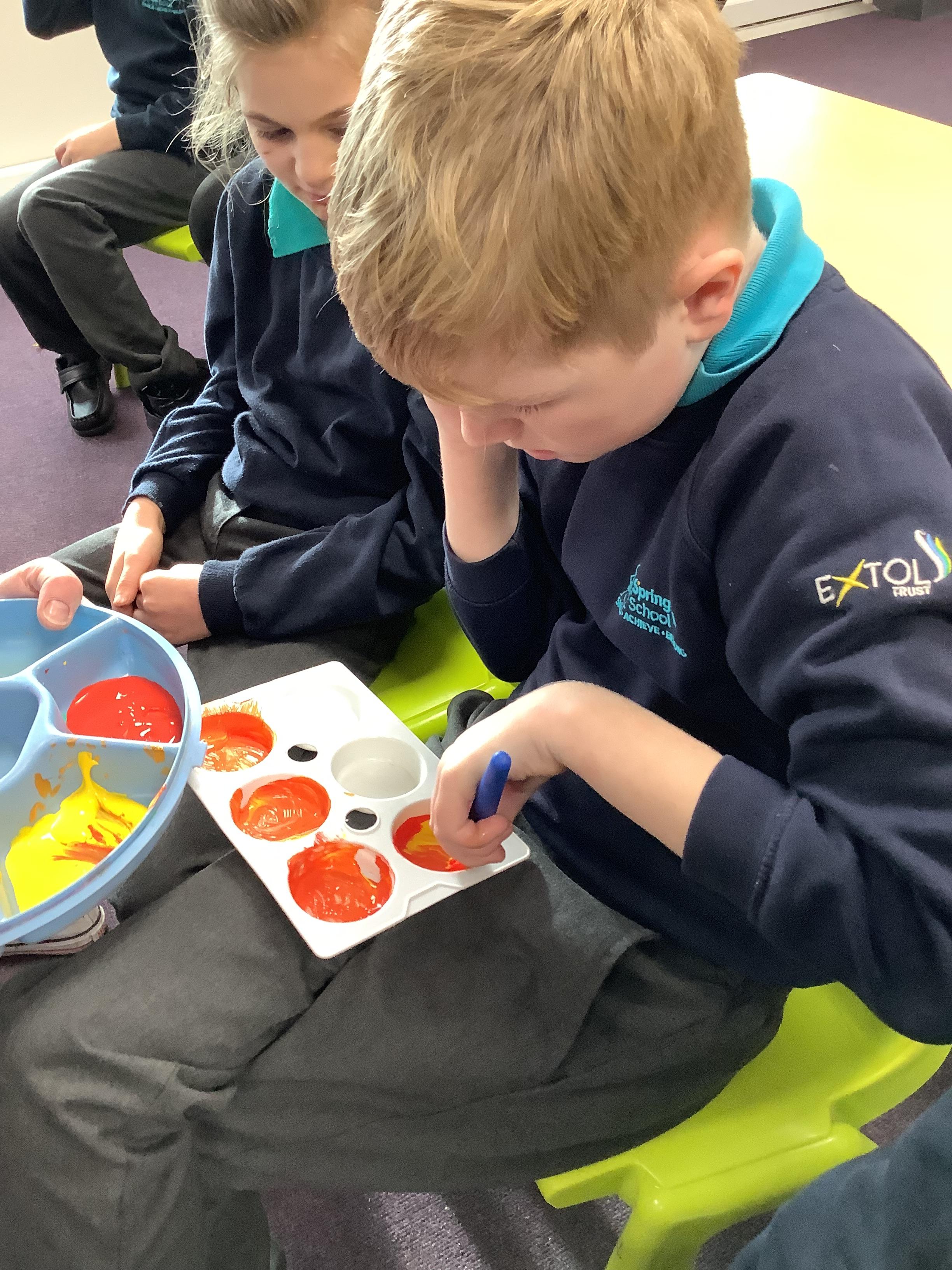 Pangolin class enjoyed exploring with different coloured paints and getting messy.
