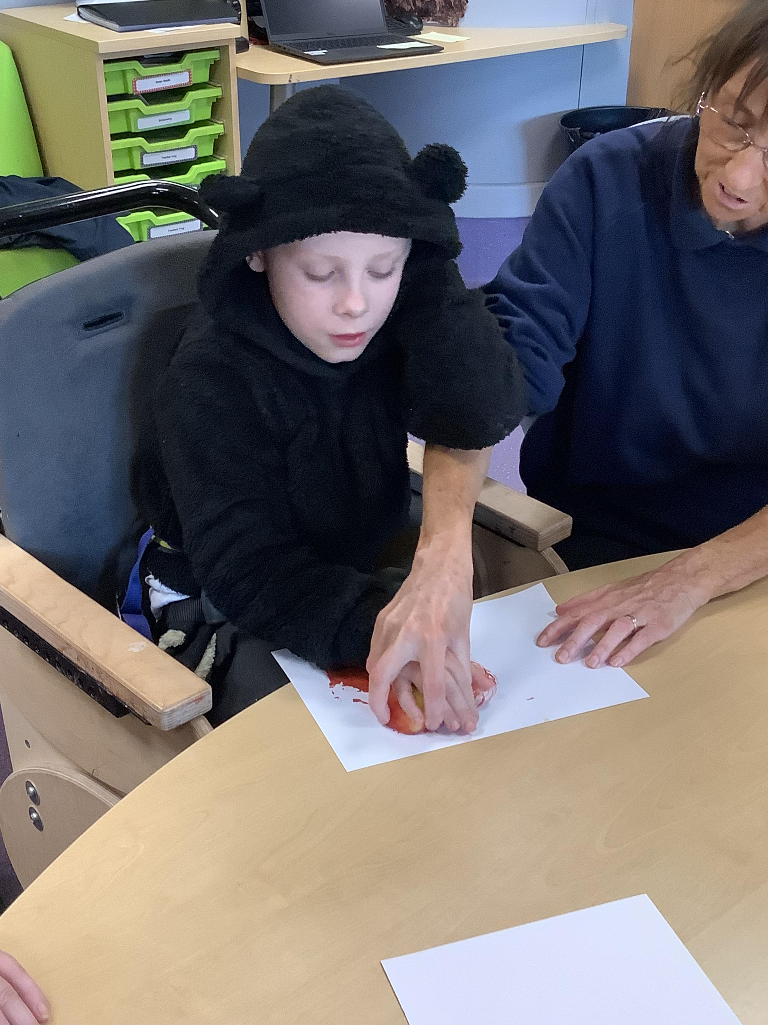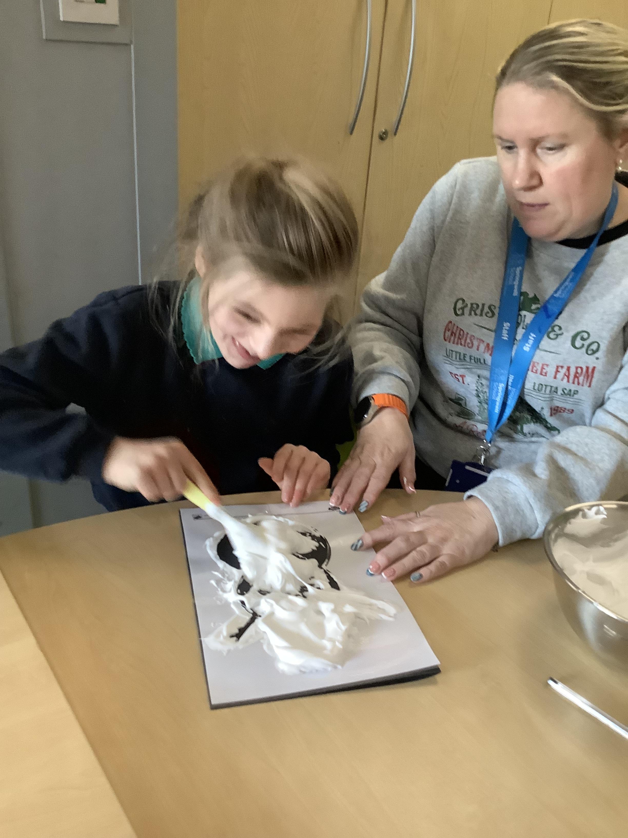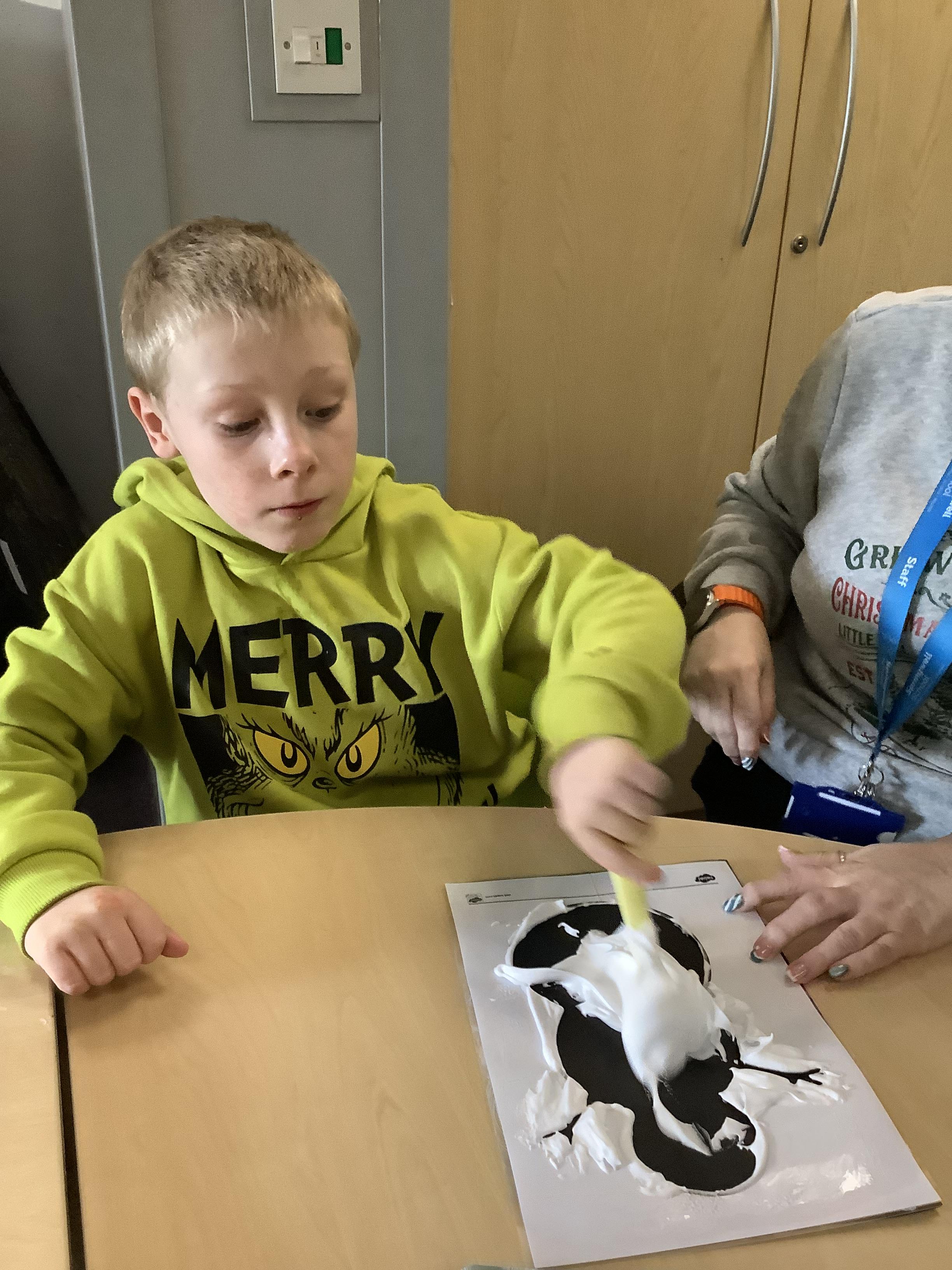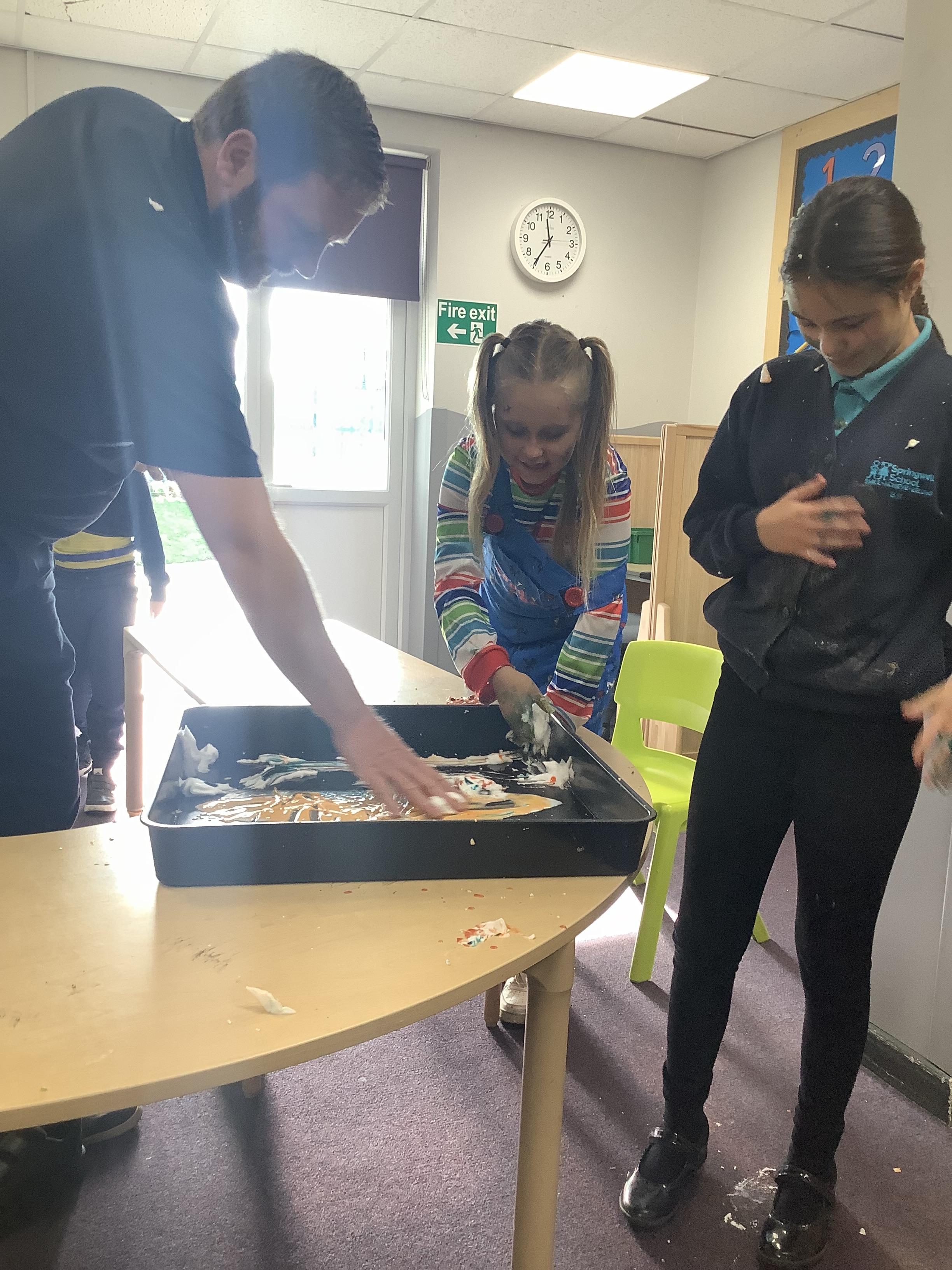 Pangolin class enjoyed exploring with different coloured paints and getting messy.